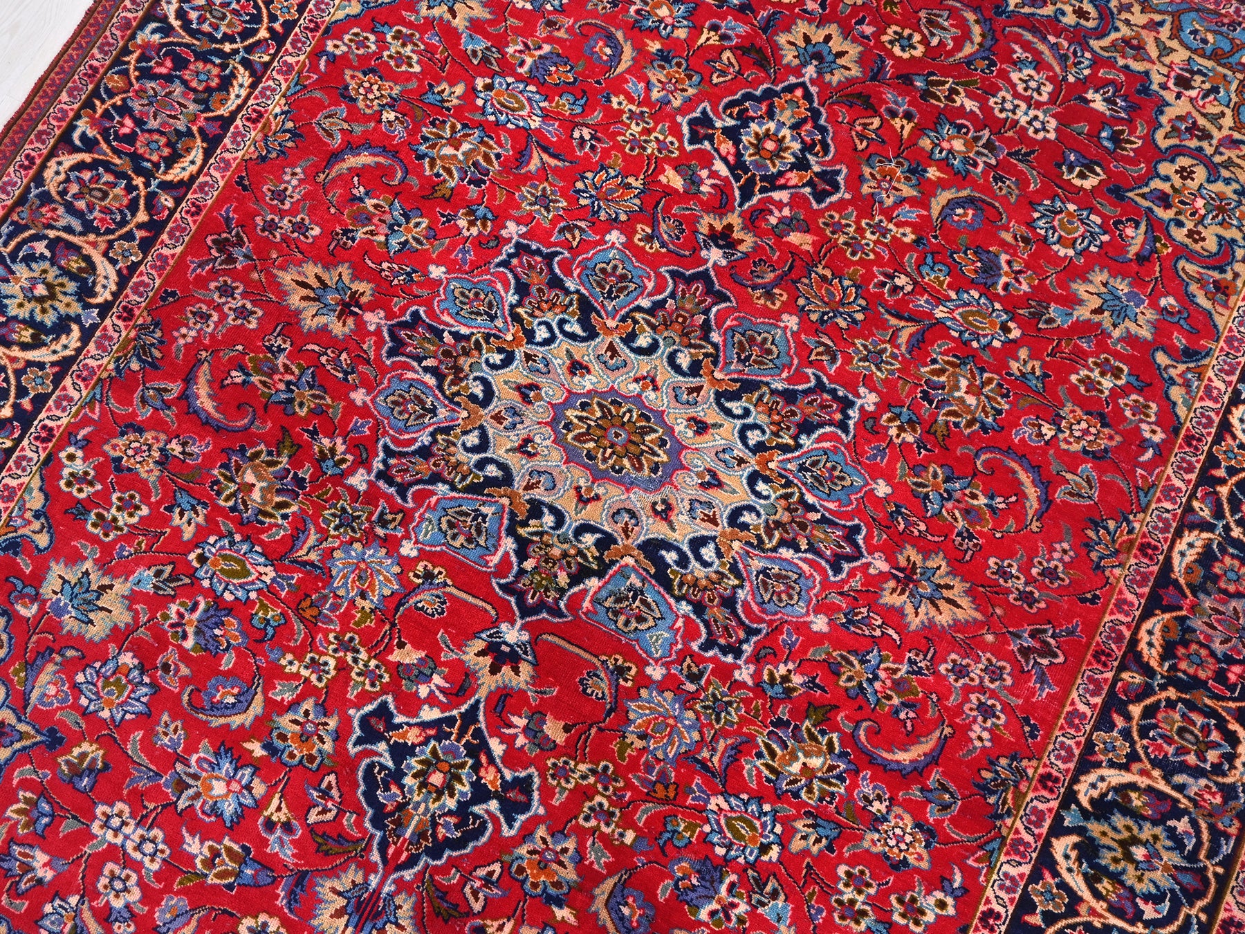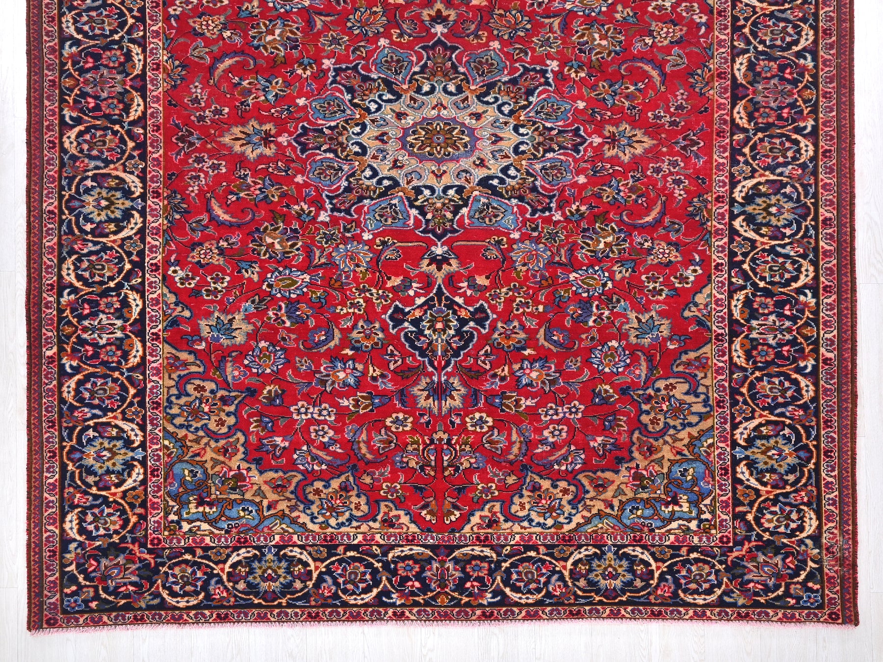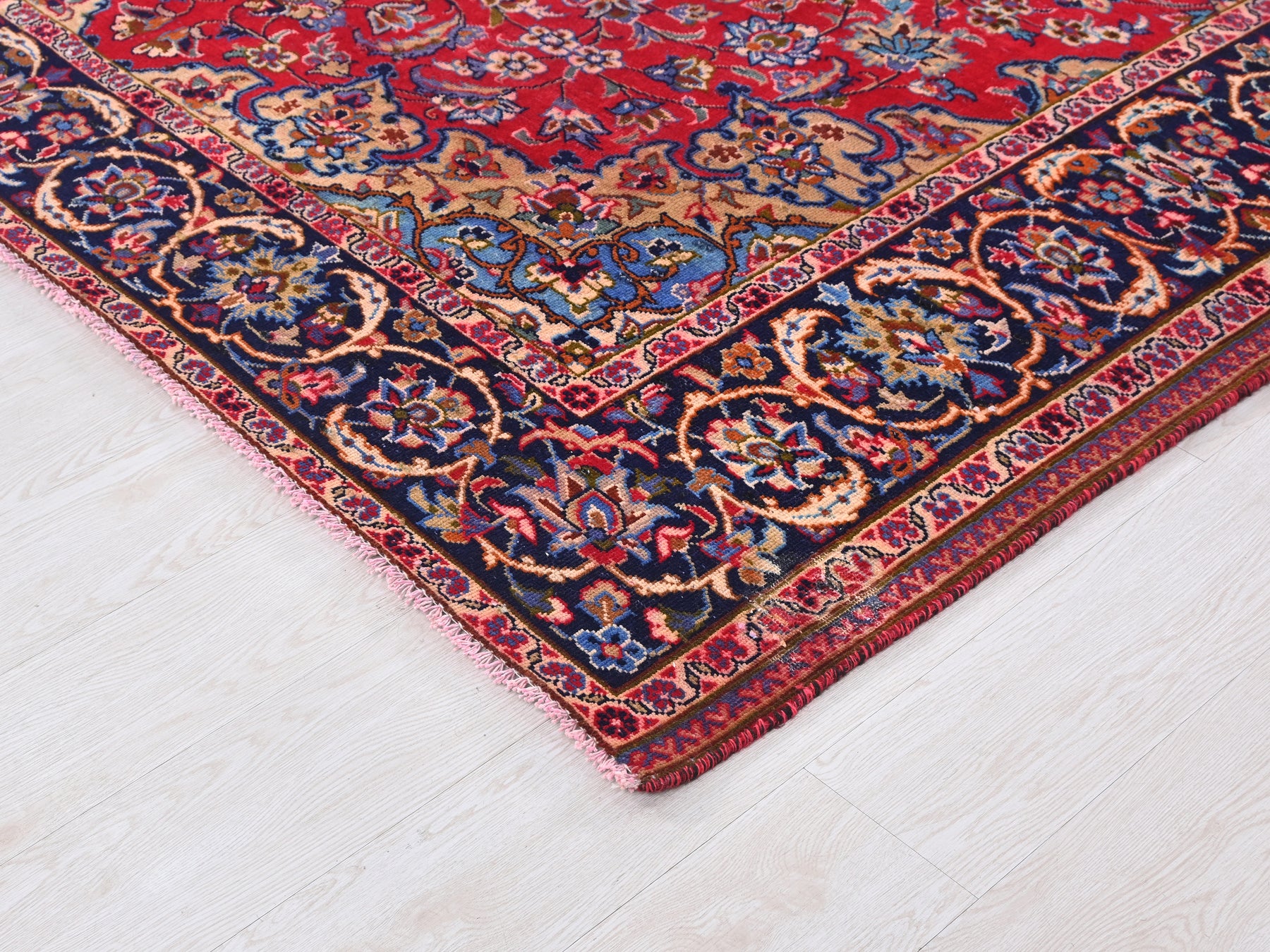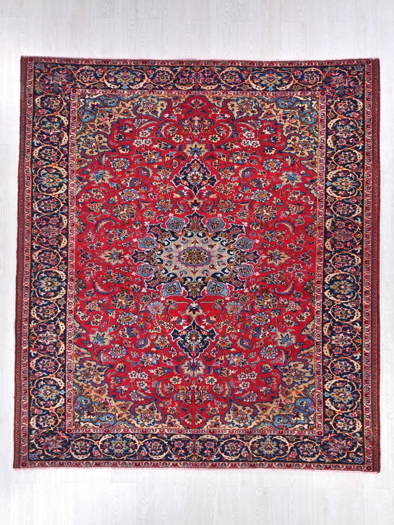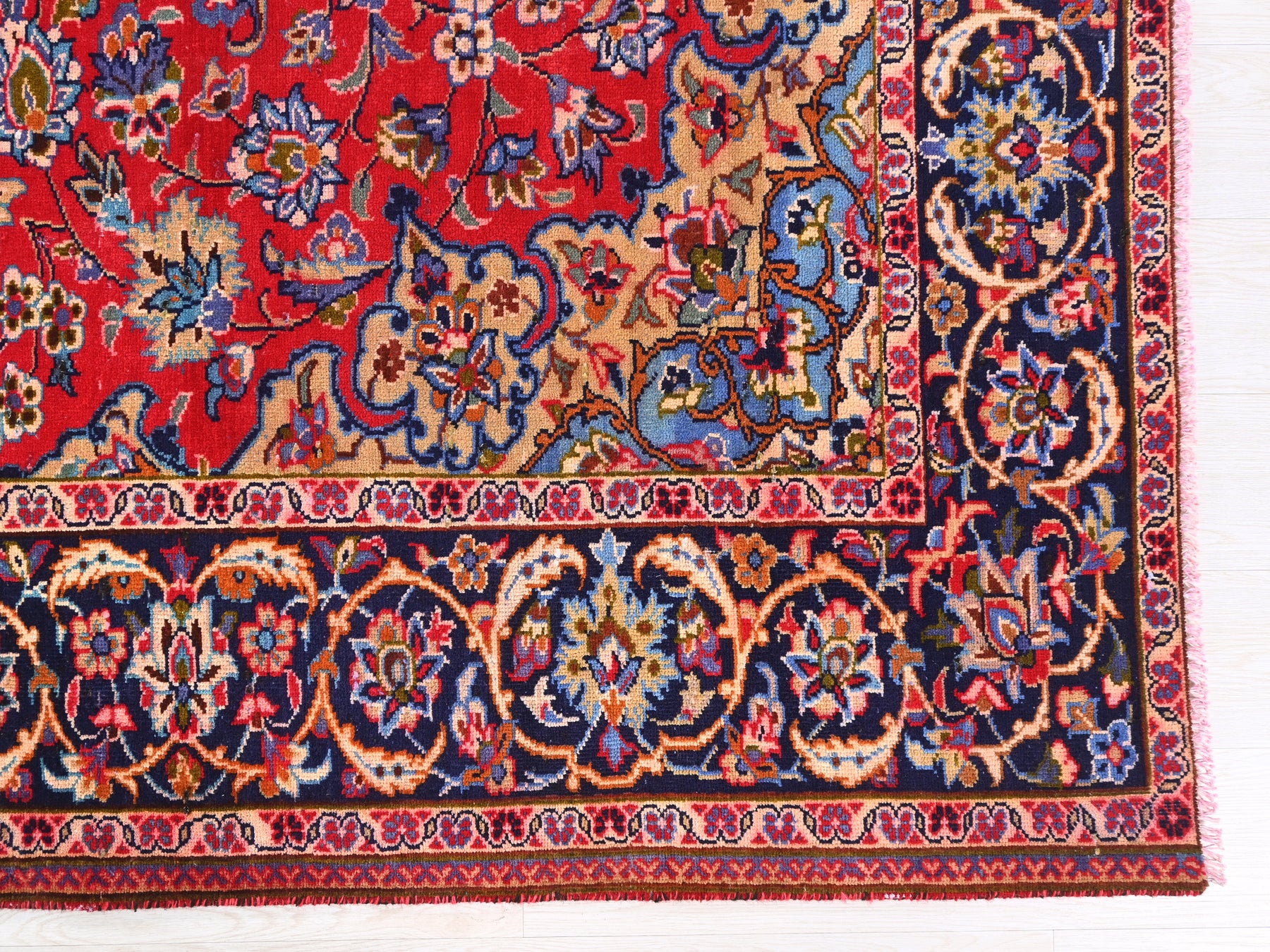 This is a hand-knotted, one-of-a-kind vintage rug. Due to the nature of this piece, there may be slight imperfections in its wear, shape, dimensions, and color. All of our rugs are professionally cleaned and repaired.