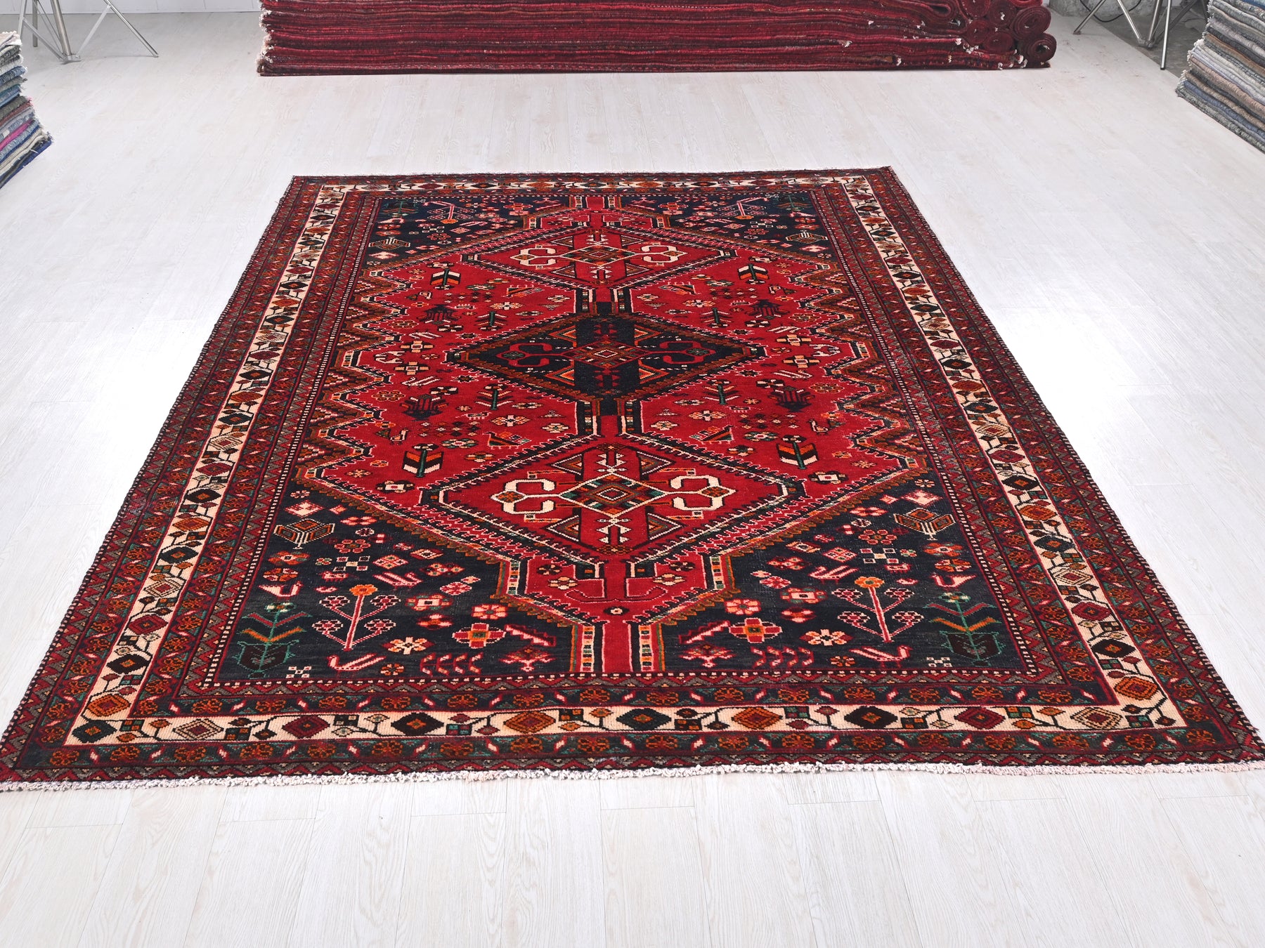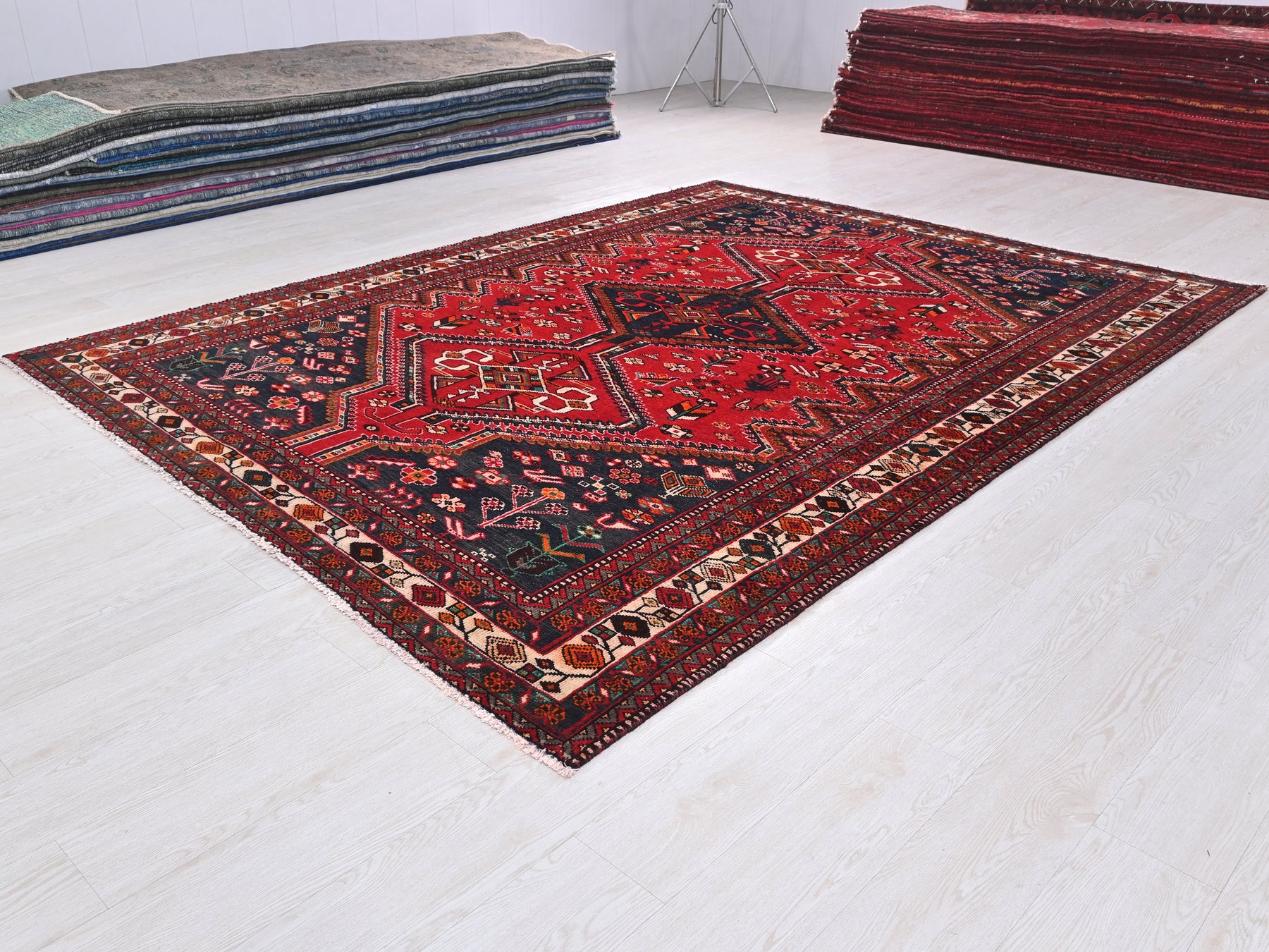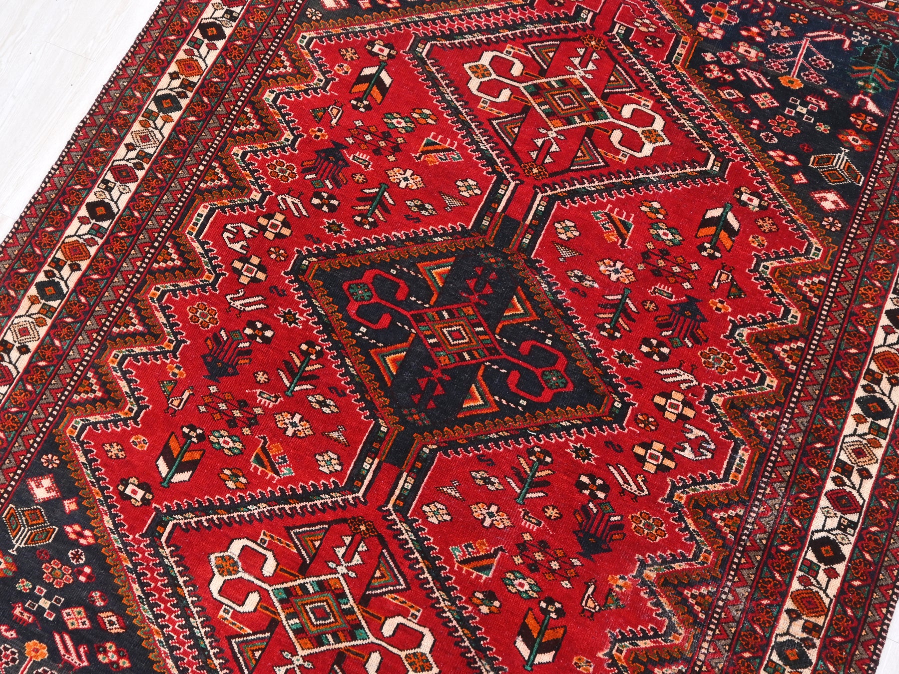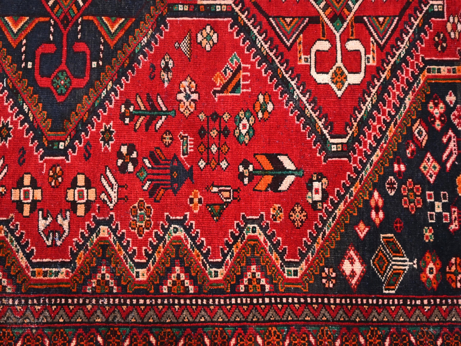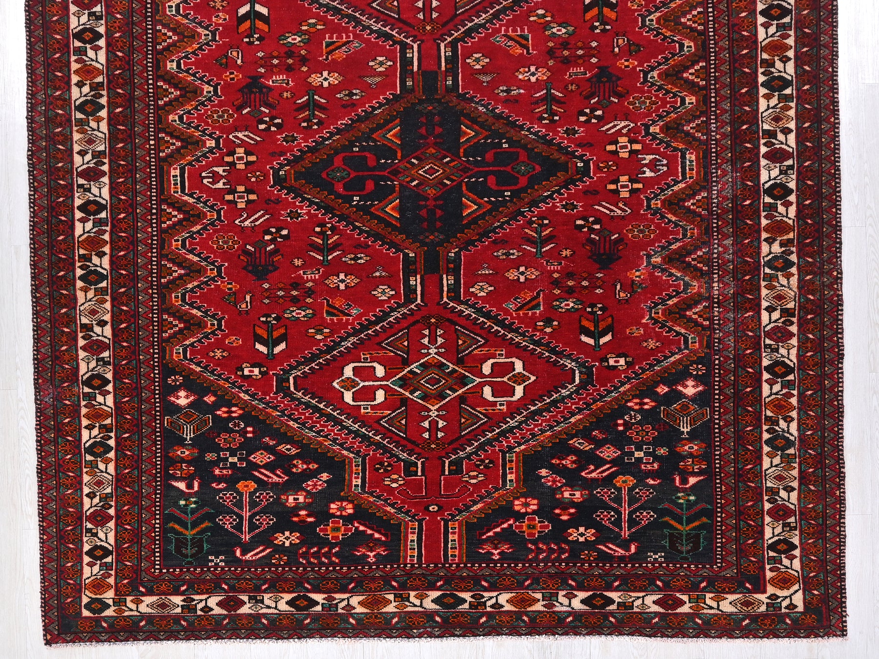 This is a hand-knotted, one-of-a-kind vintage rug. Due to the nature of this piece, there may be slight imperfections in its wear, shape, dimensions, and color. All of our rugs are professionally cleaned and repaired.
