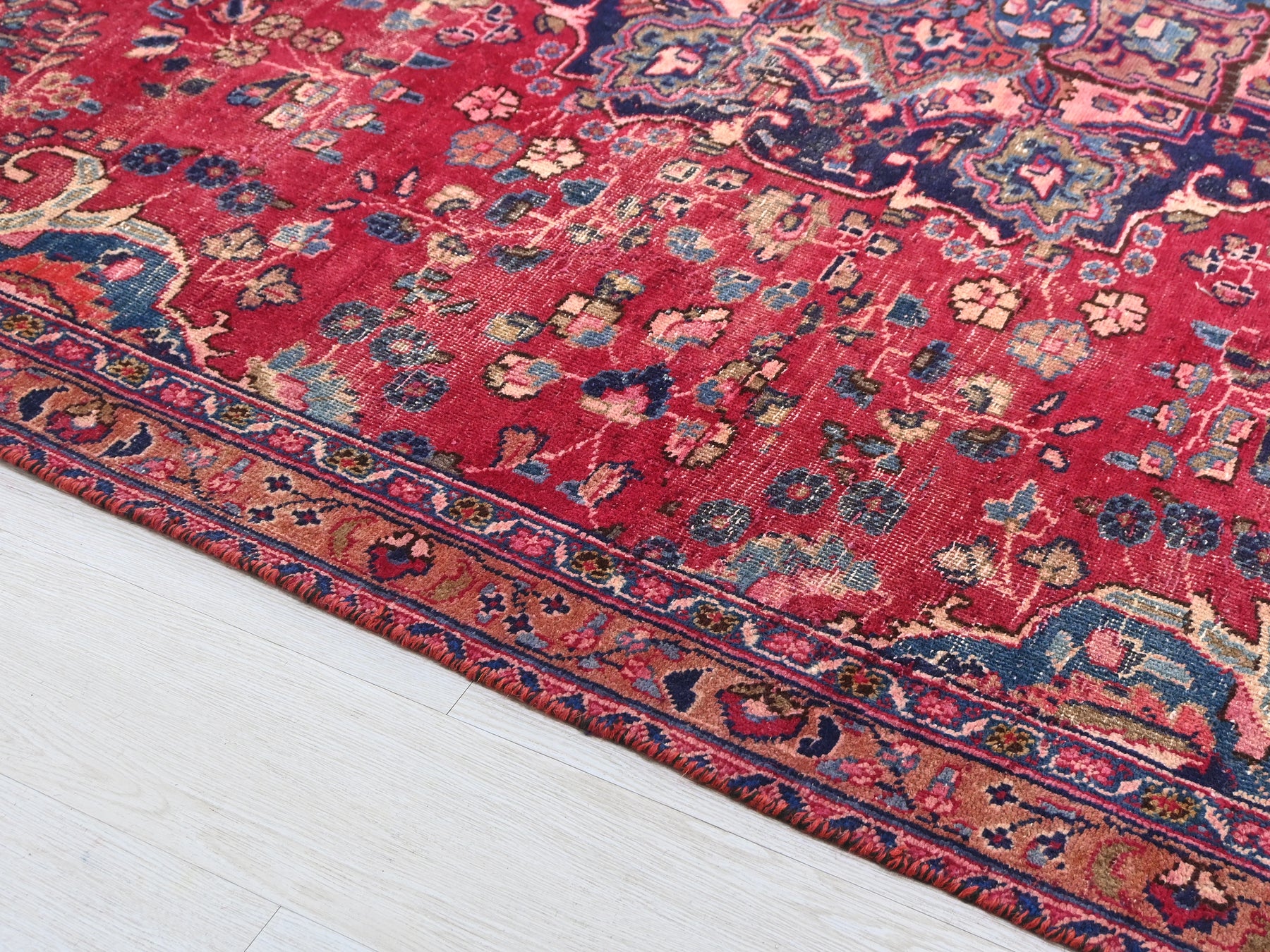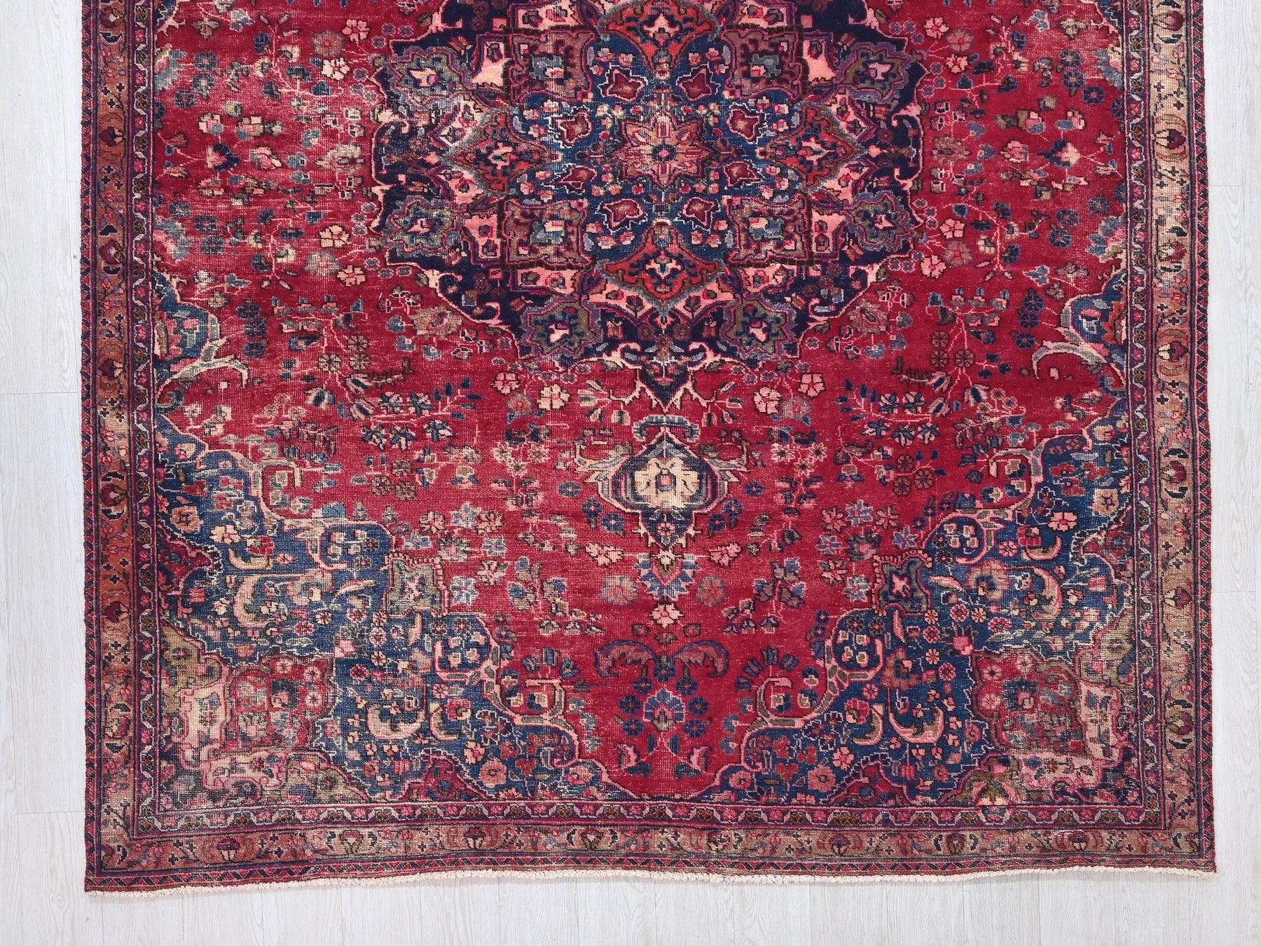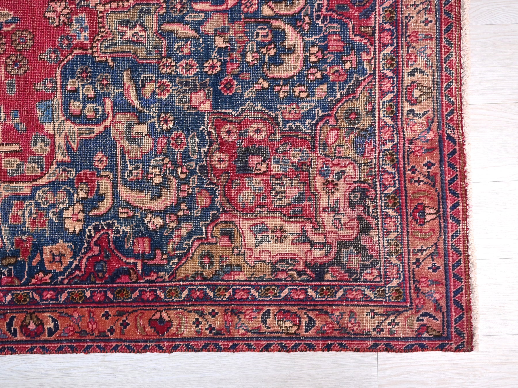 This is a hand-knotted, one-of-a-kind vintage rug. Due to the nature of this piece, there may be slight imperfections in its wear, shape, dimensions, and color. All of our rugs are professionally cleaned and repaired.