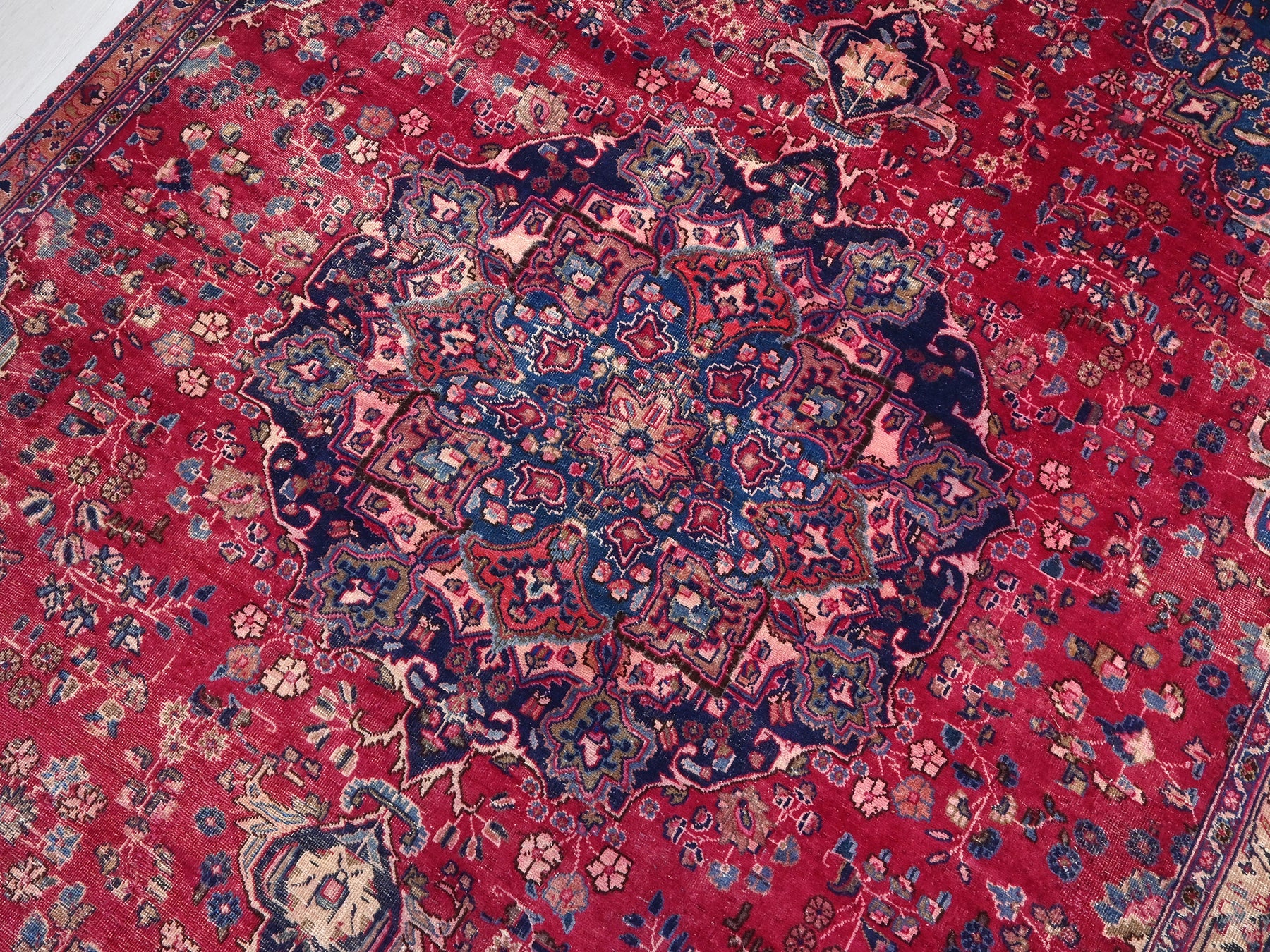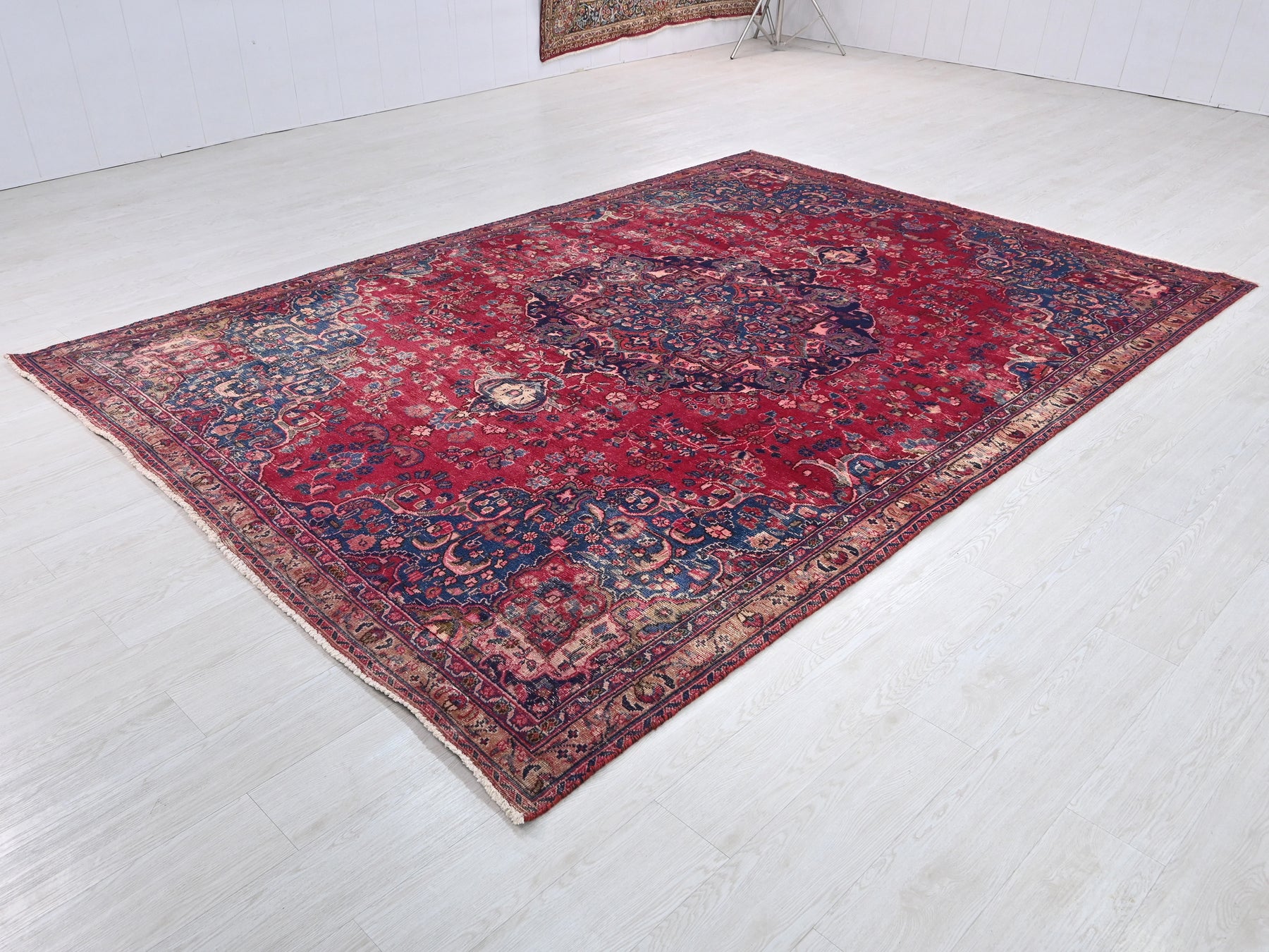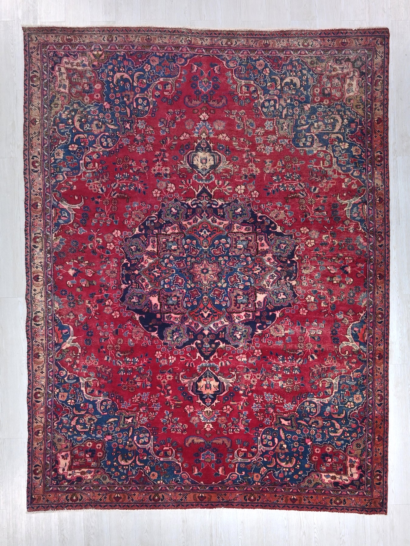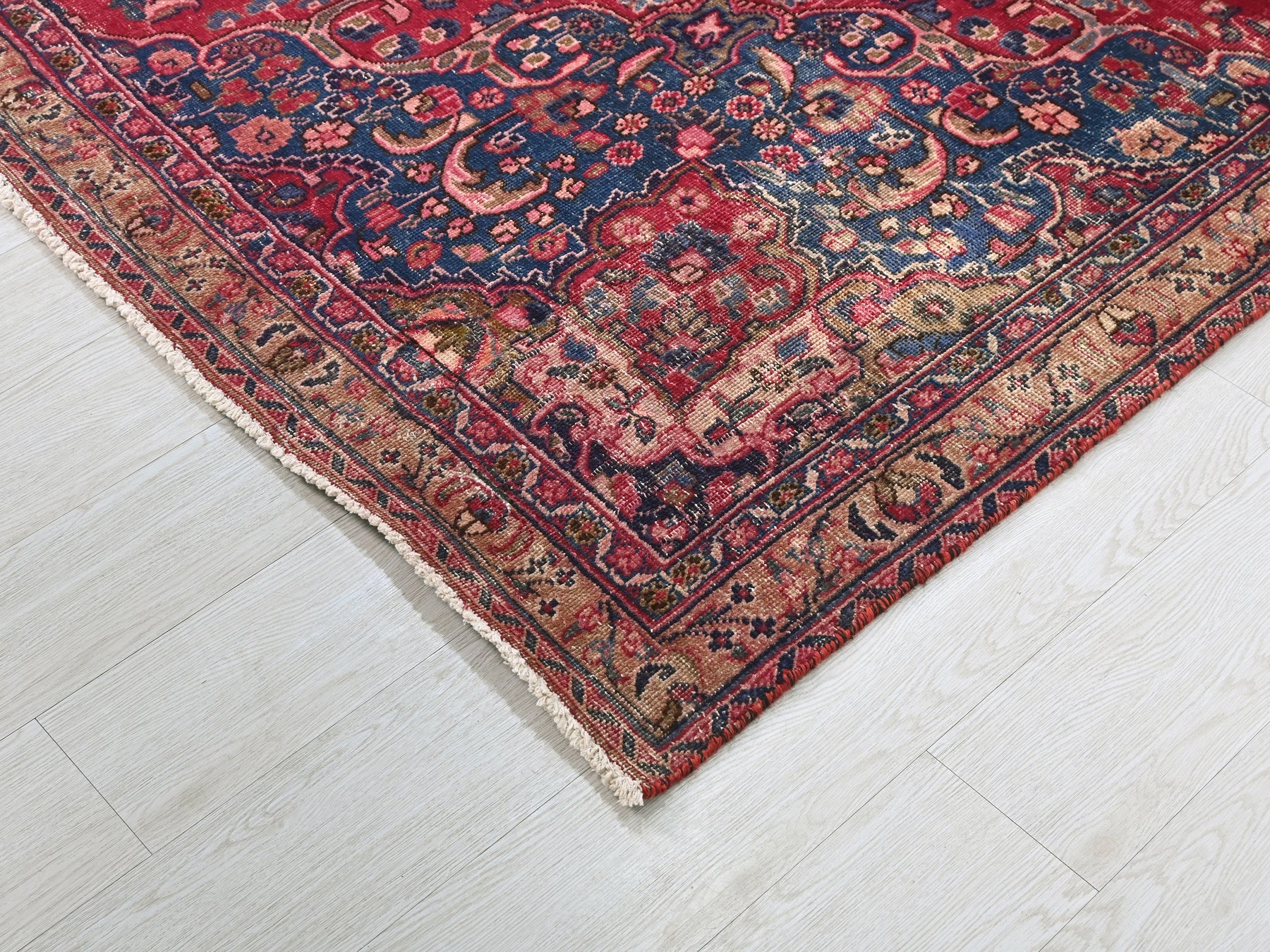 This is a hand-knotted, one-of-a-kind vintage rug. Due to the nature of this piece, there may be slight imperfections in its wear, shape, dimensions, and color. All of our rugs are professionally cleaned and repaired.