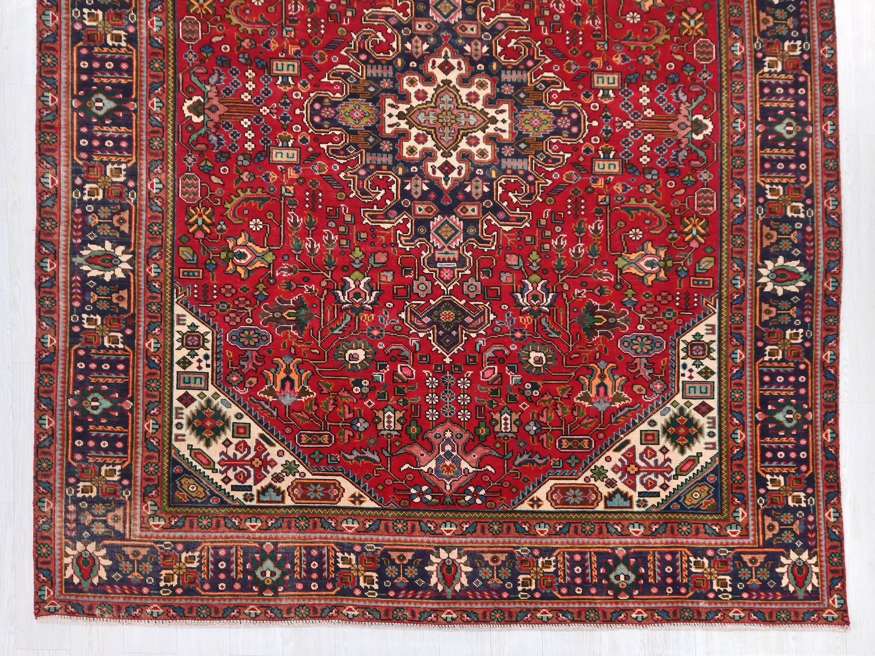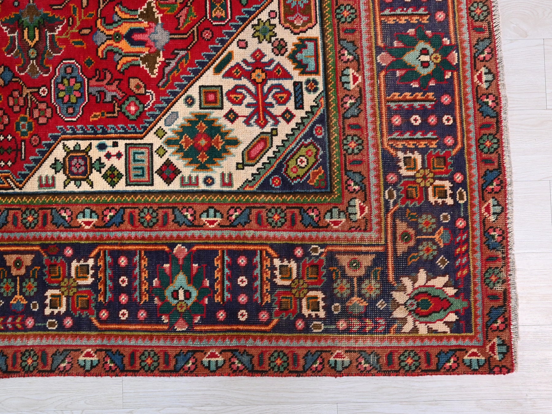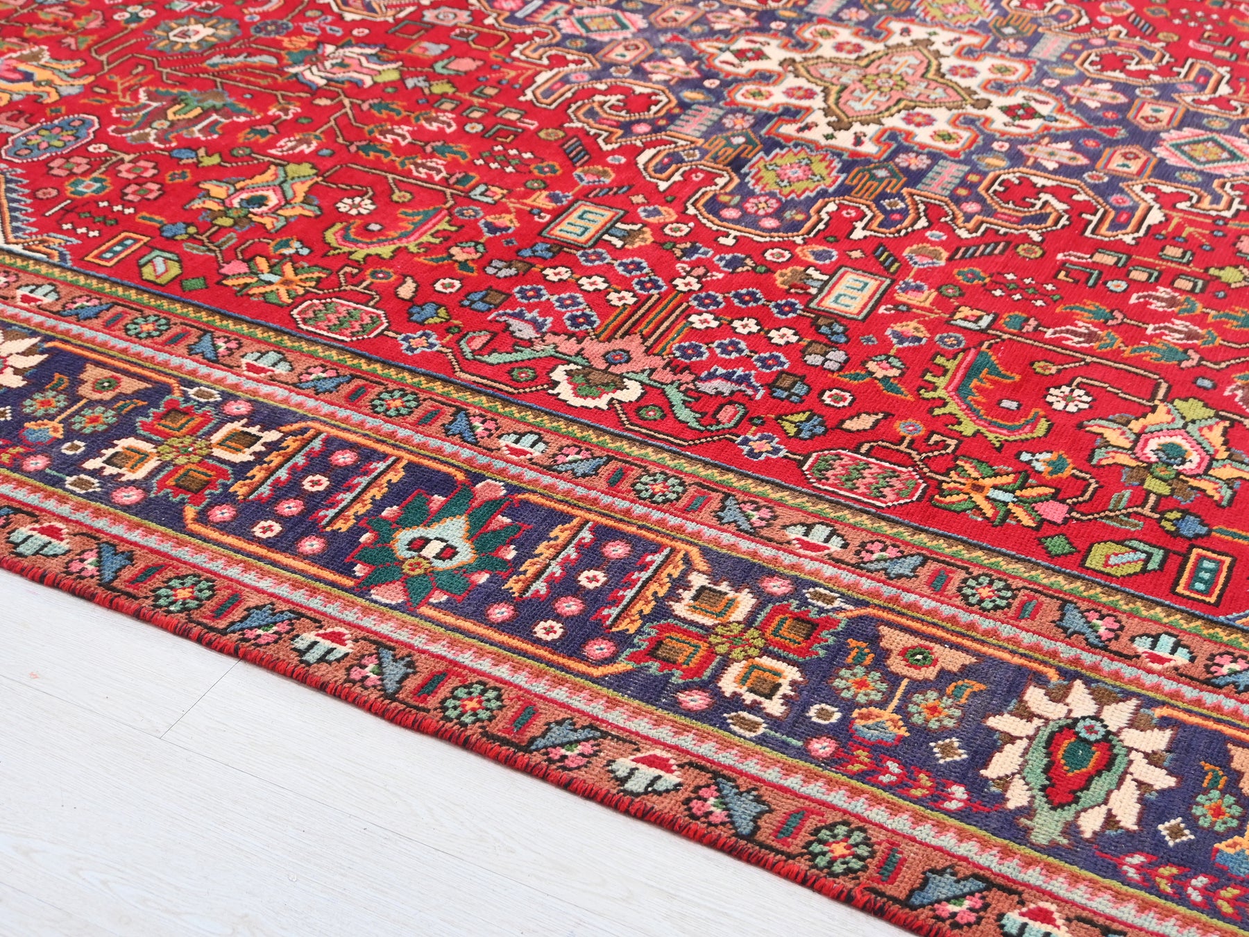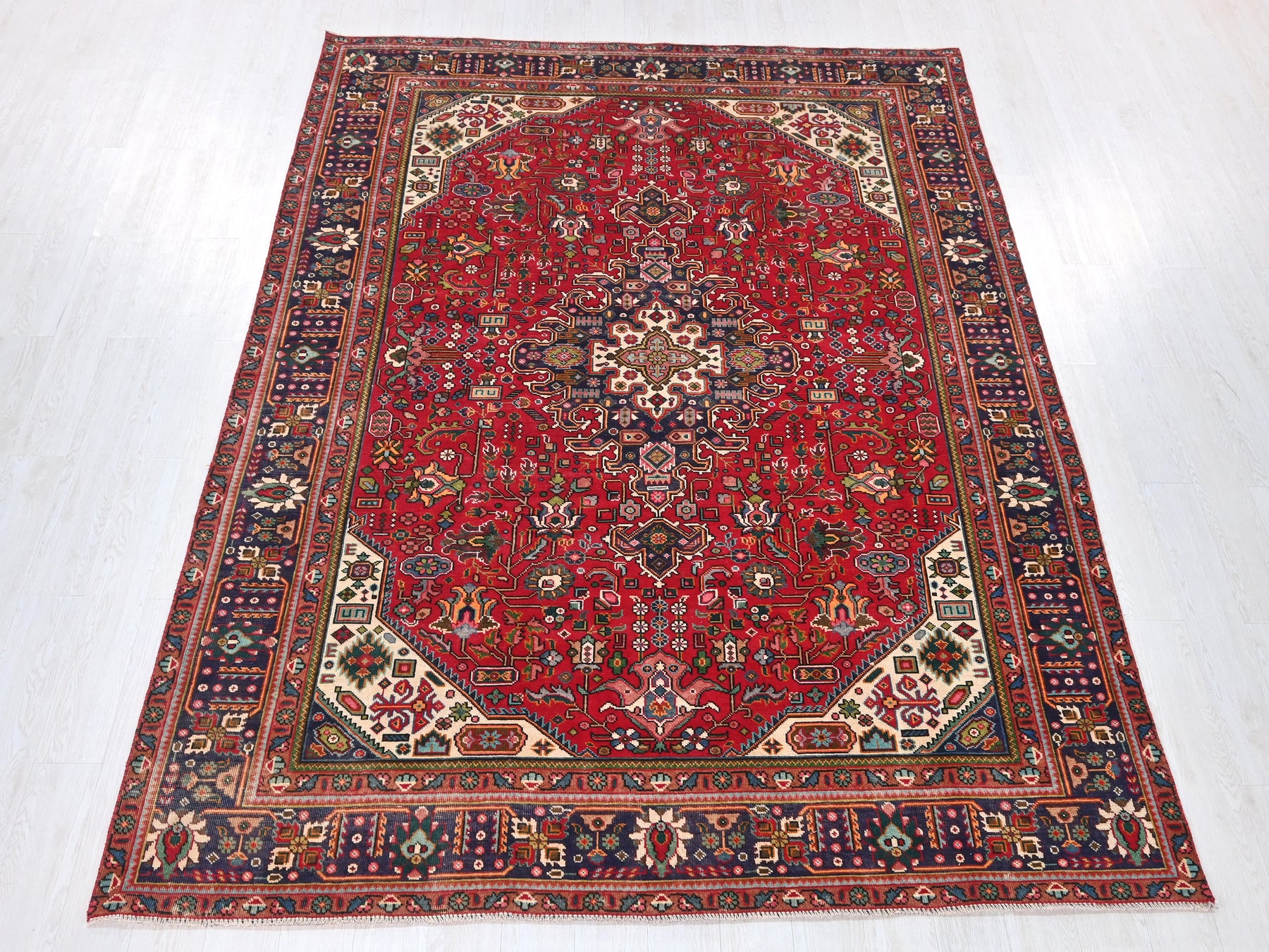 This is a hand-knotted, one-of-a-kind vintage rug. Due to the nature of this piece, there may be slight imperfections in its wear, shape, dimensions, and color. All of our rugs are professionally cleaned and repaired.