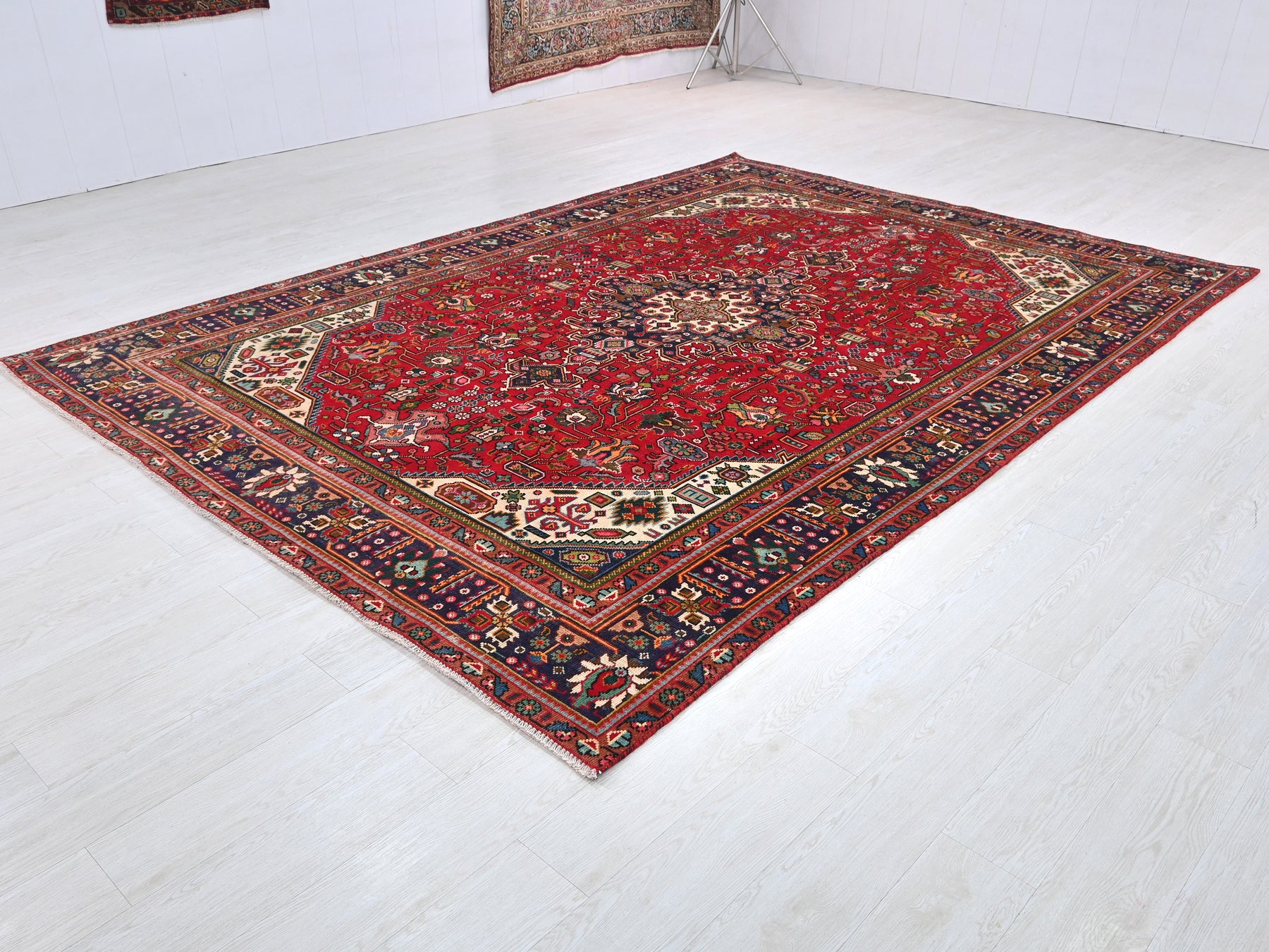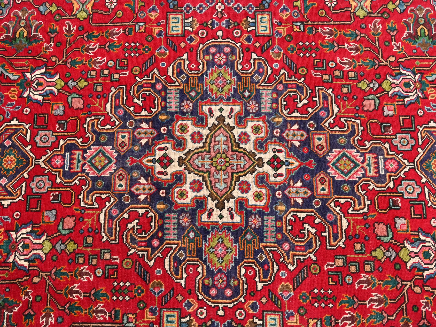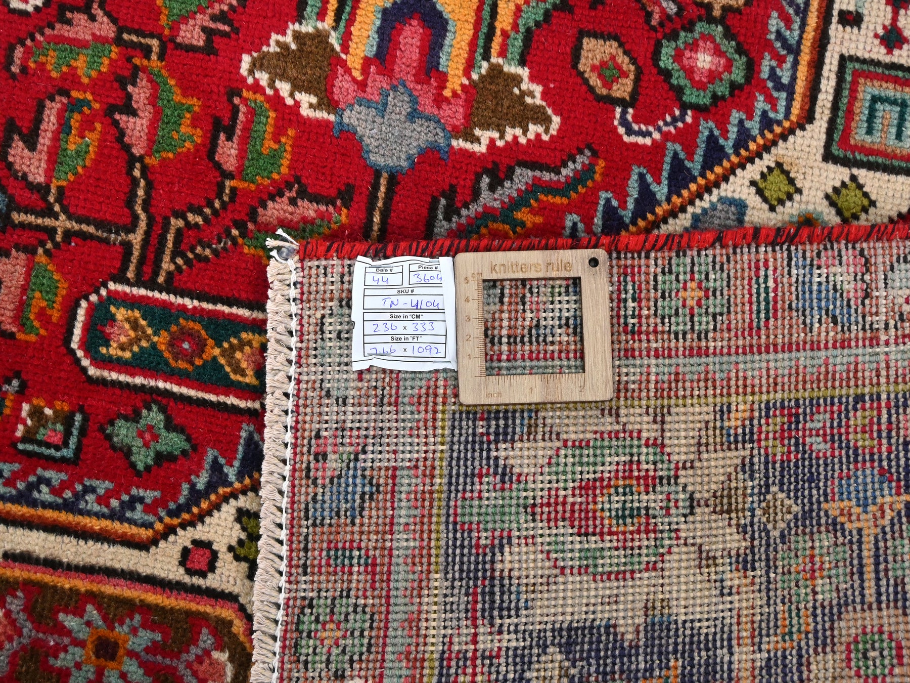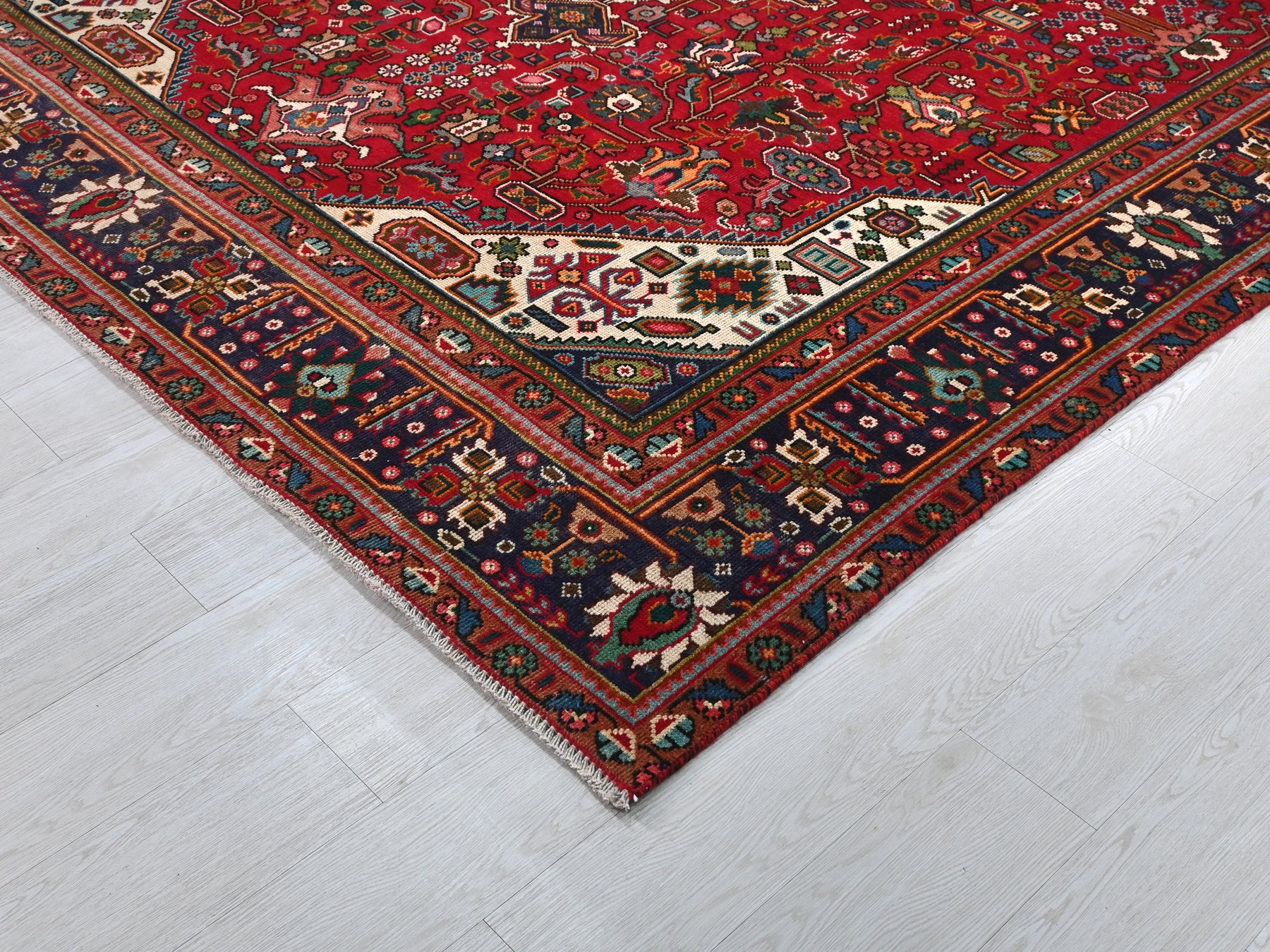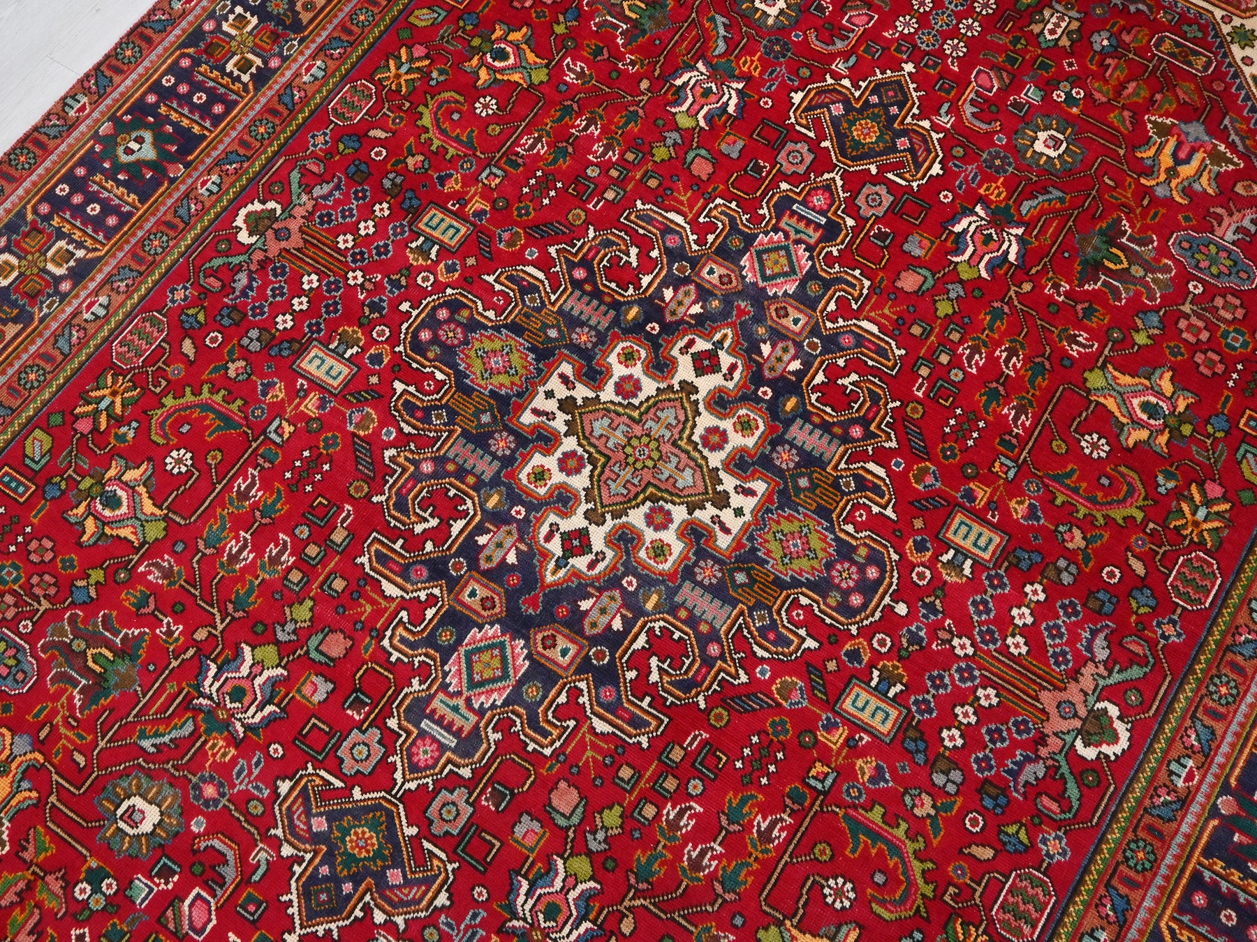 This is a hand-knotted, one-of-a-kind vintage rug. Due to the nature of this piece, there may be slight imperfections in its wear, shape, dimensions, and color. All of our rugs are professionally cleaned and repaired.