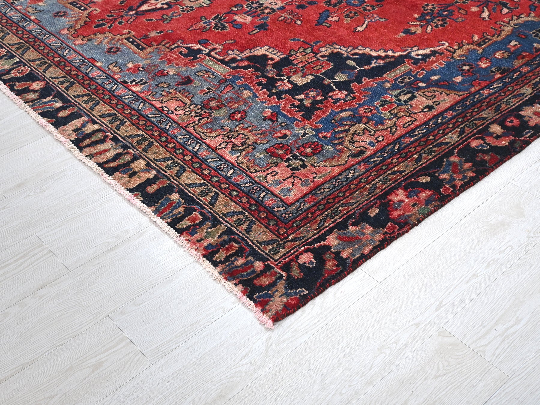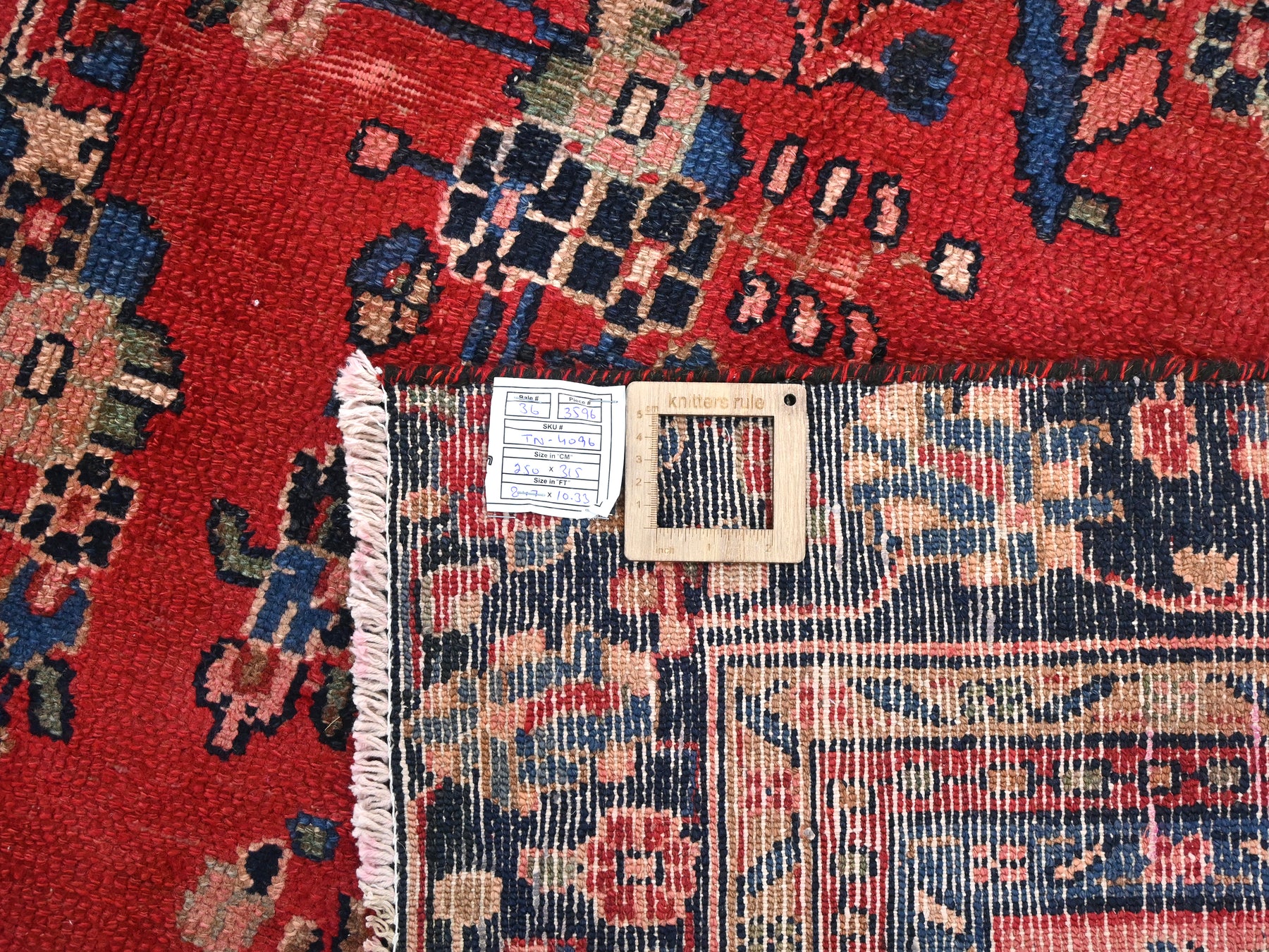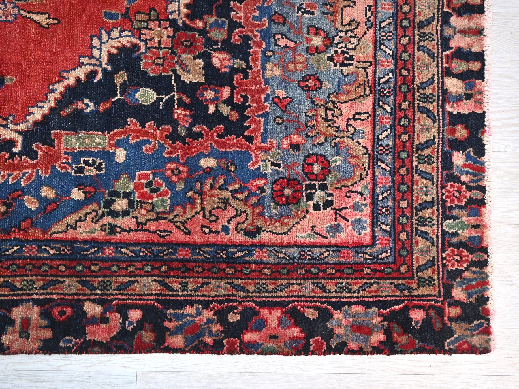 This is a hand-knotted, one-of-a-kind vintage rug. Due to the nature of this piece, there may be slight imperfections in its wear, shape, dimensions, and color. All of our rugs are professionally cleaned and repaired.