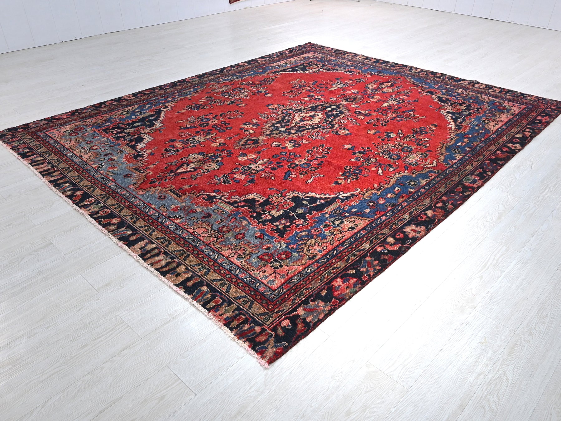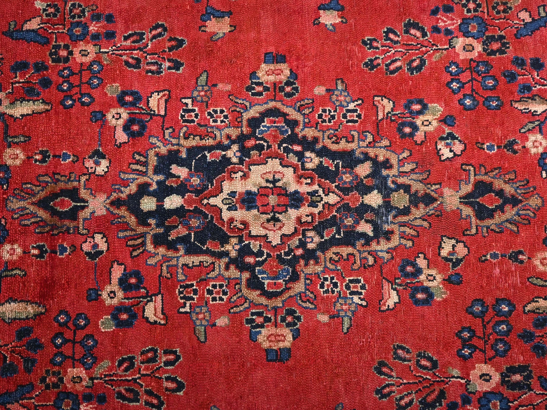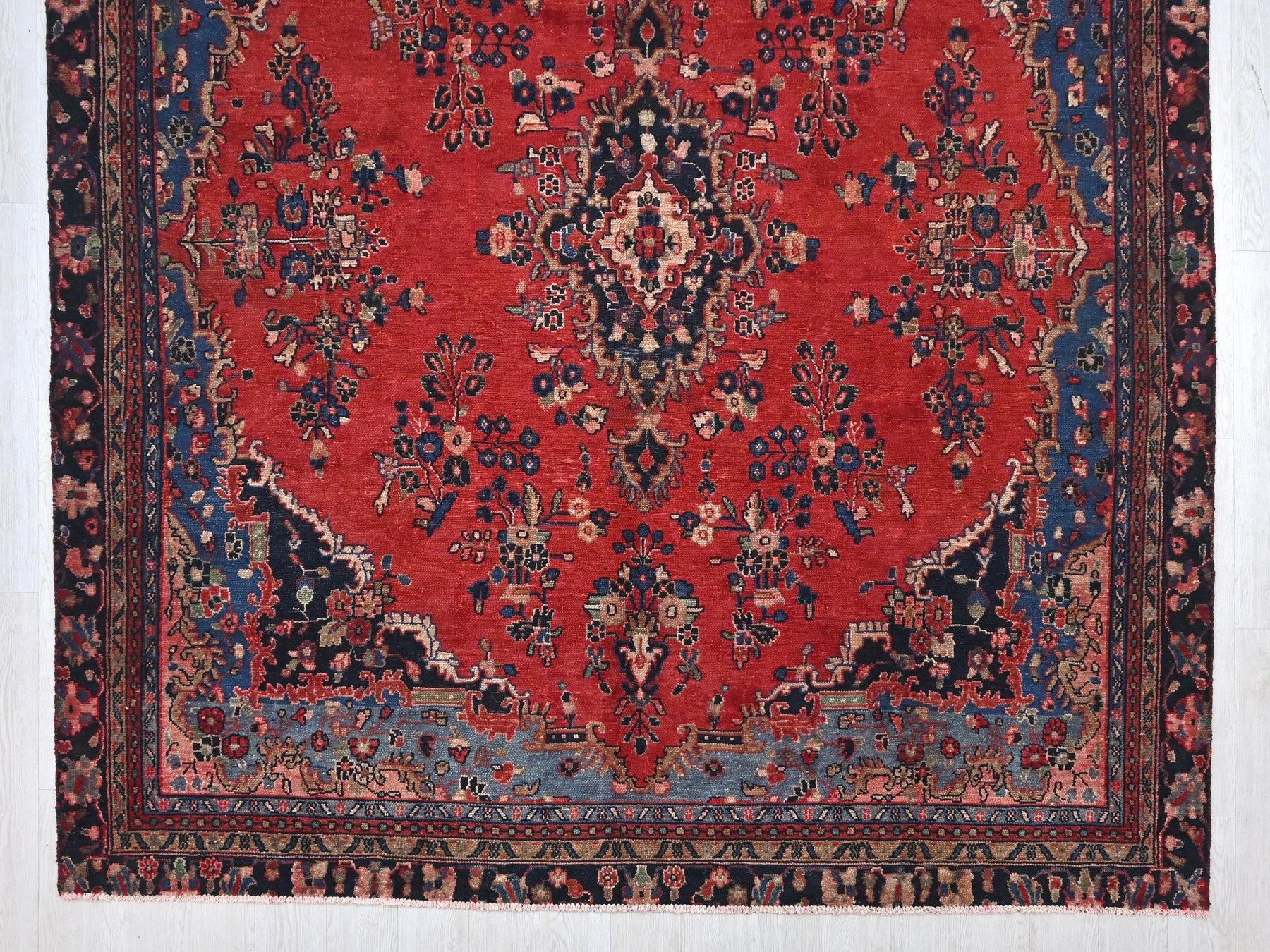 This is a hand-knotted, one-of-a-kind vintage rug. Due to the nature of this piece, there may be slight imperfections in its wear, shape, dimensions, and color. All of our rugs are professionally cleaned and repaired.
