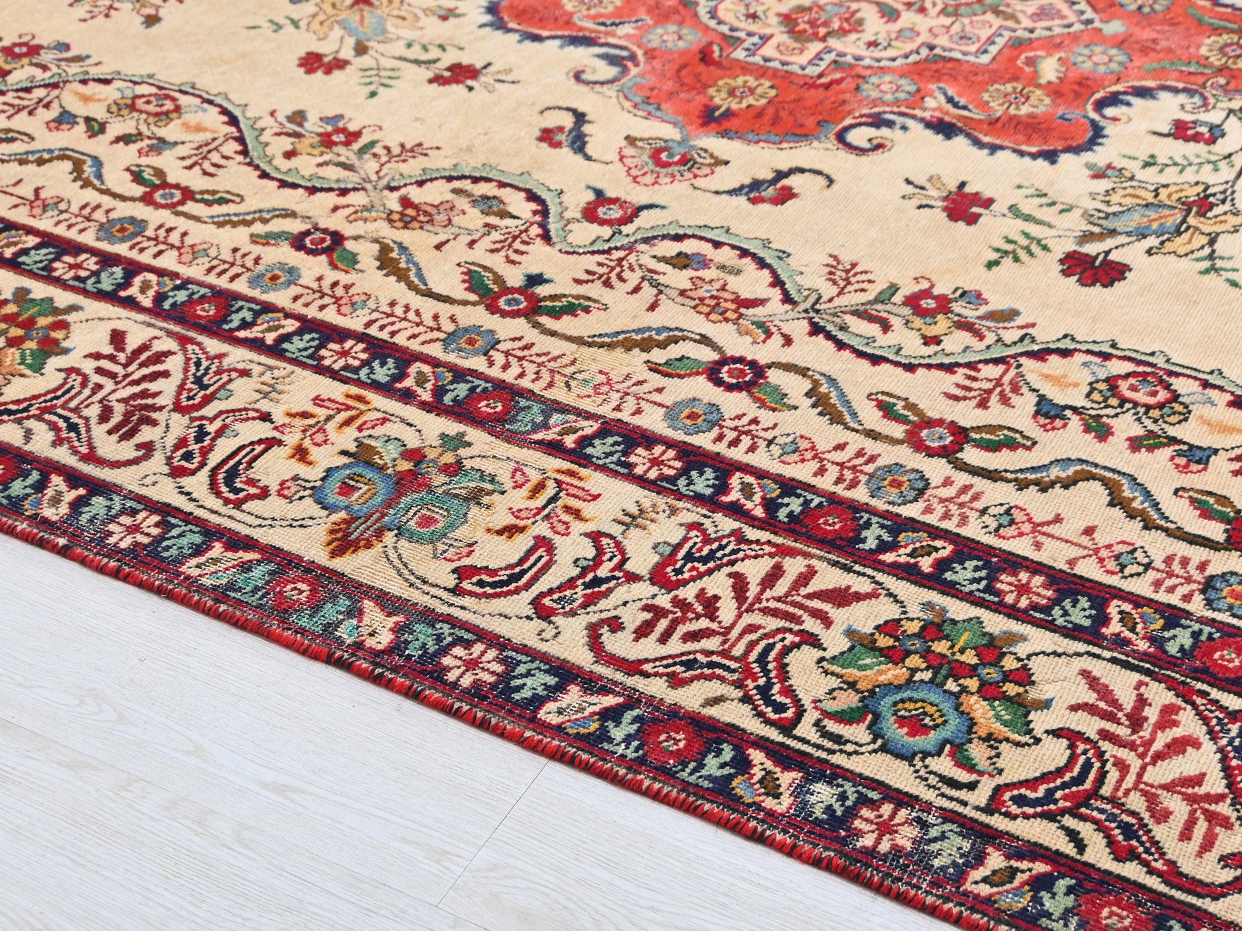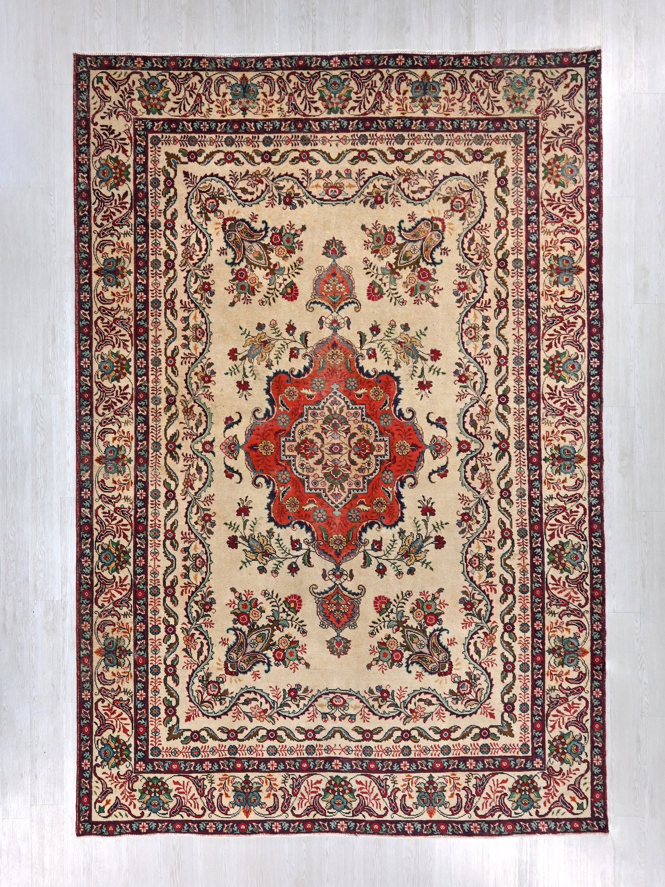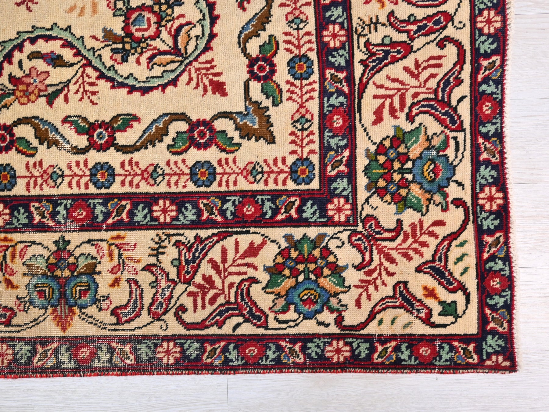 This is a hand-knotted, one-of-a-kind vintage rug. Due to the nature of this piece, there may be slight imperfections in its wear, shape, dimensions, and color. All of our rugs are professionally cleaned and repaired.
