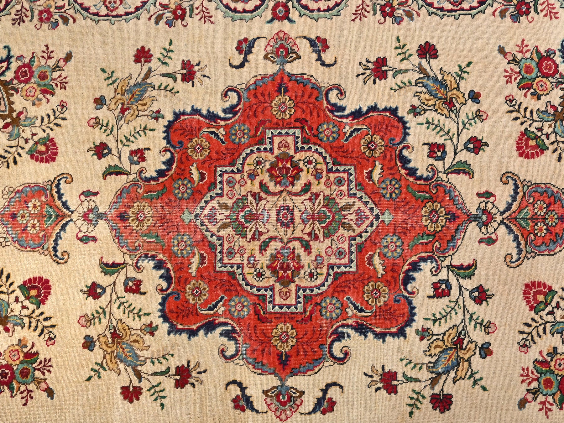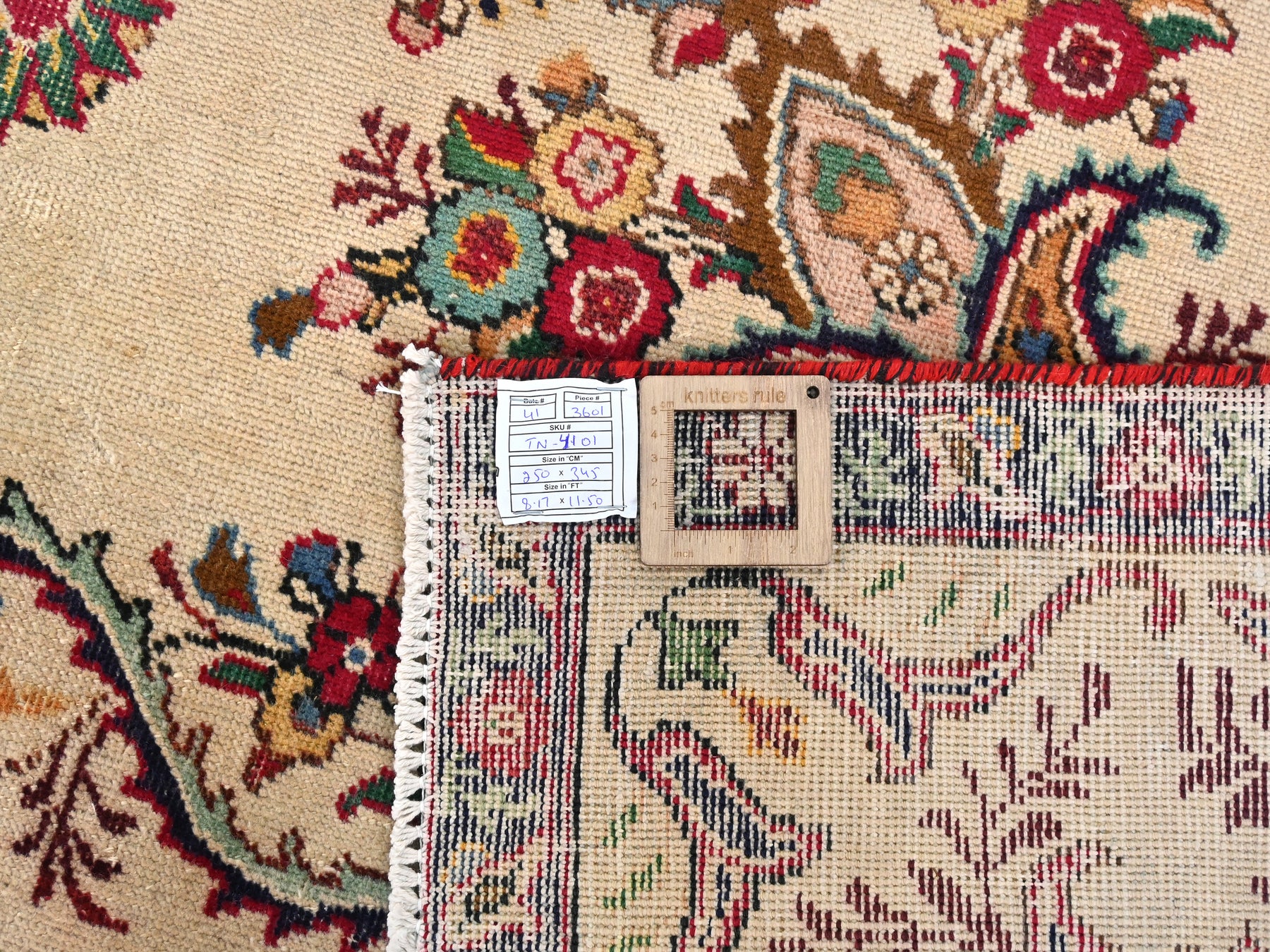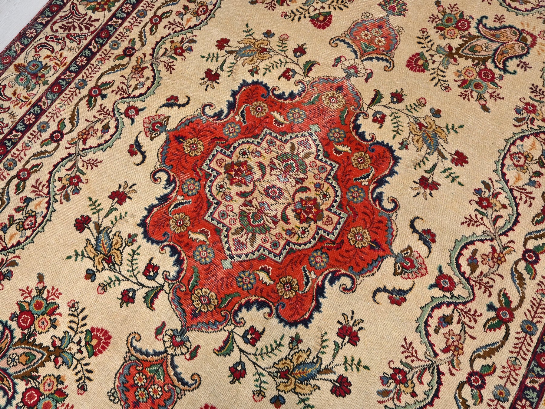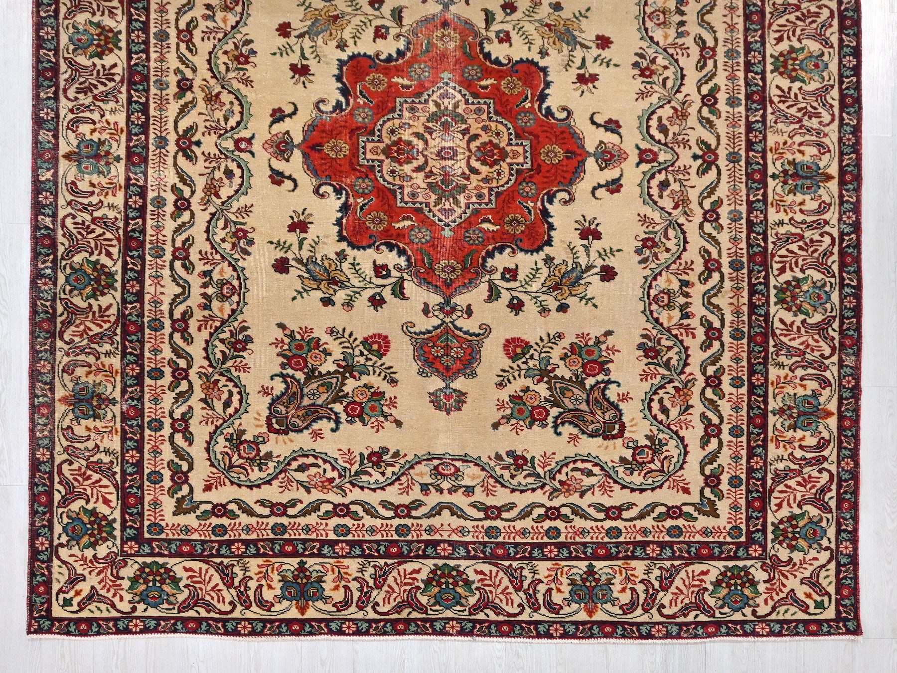 This is a hand-knotted, one-of-a-kind vintage rug. Due to the nature of this piece, there may be slight imperfections in its wear, shape, dimensions, and color. All of our rugs are professionally cleaned and repaired.