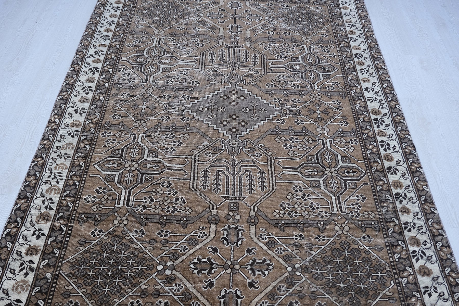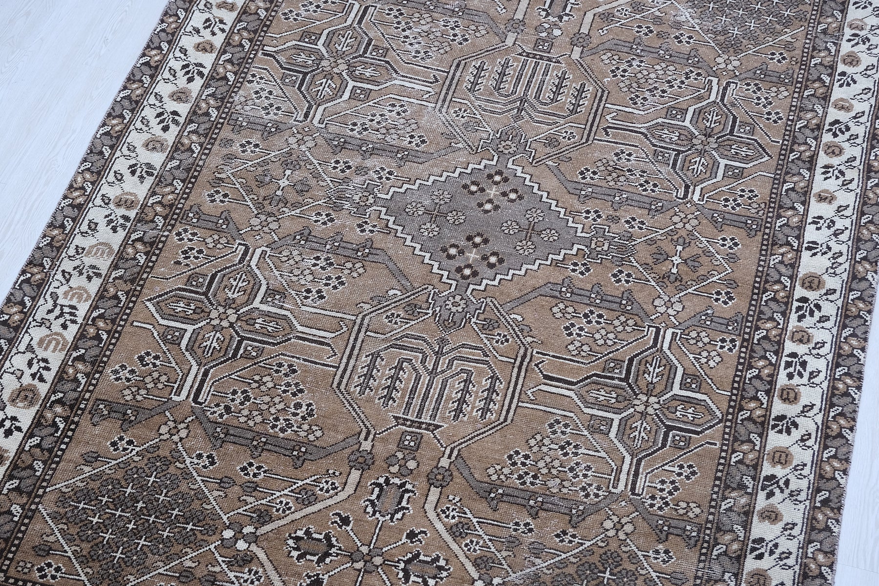 This is a hand-knotted, one-of-a-kind vintage rug. Due to the nature of this piece, there may be slight imperfections in its wear, shape, dimensions, and color. All of our rugs are professionally cleaned and repaired.