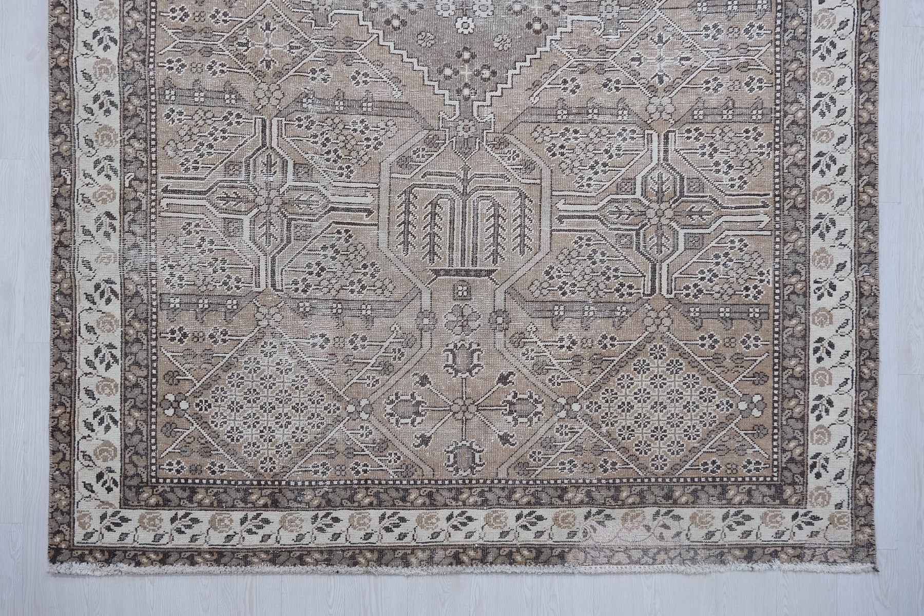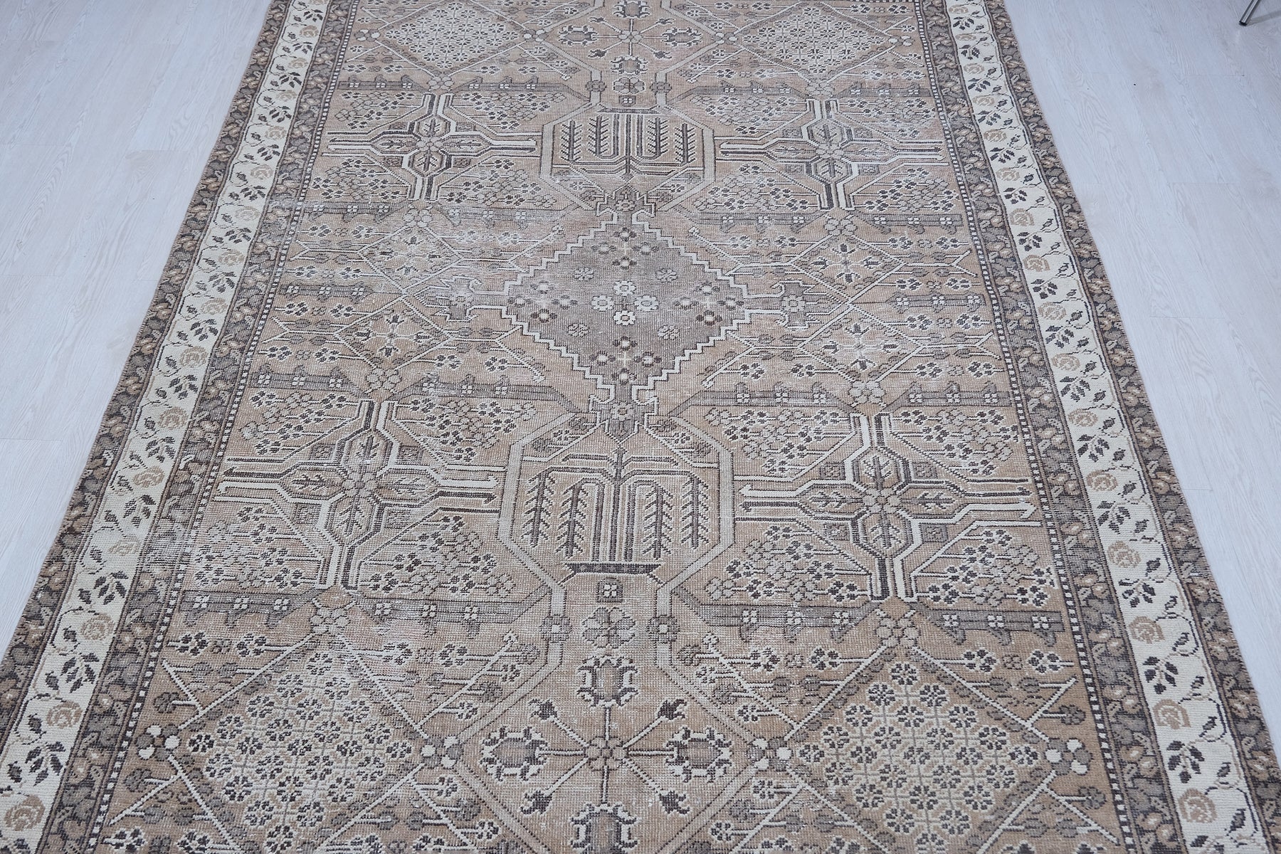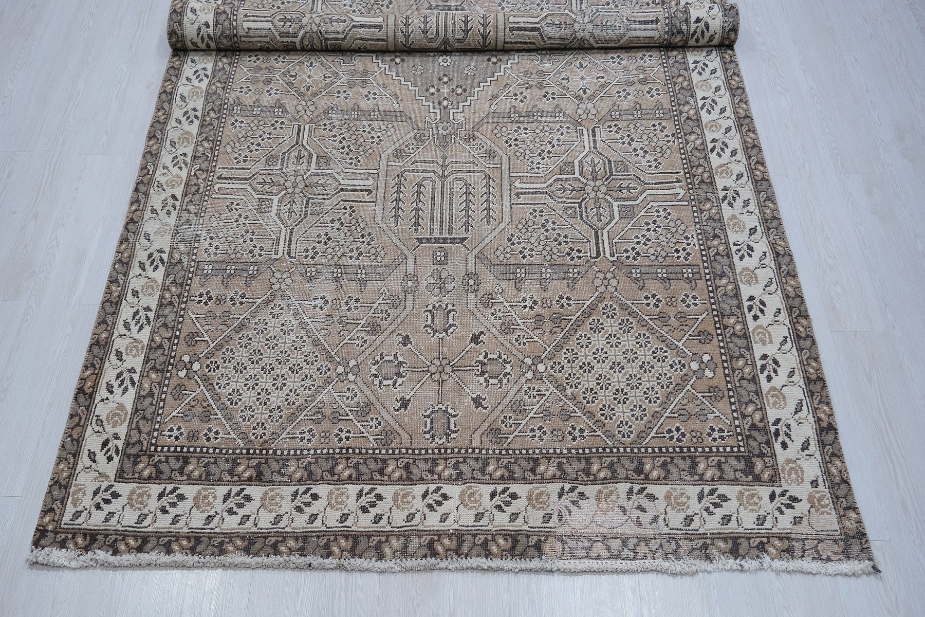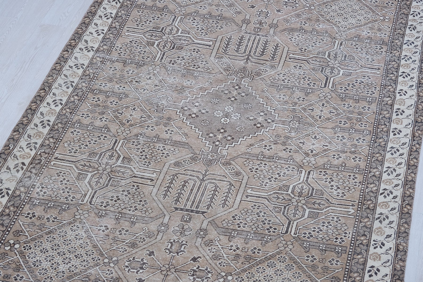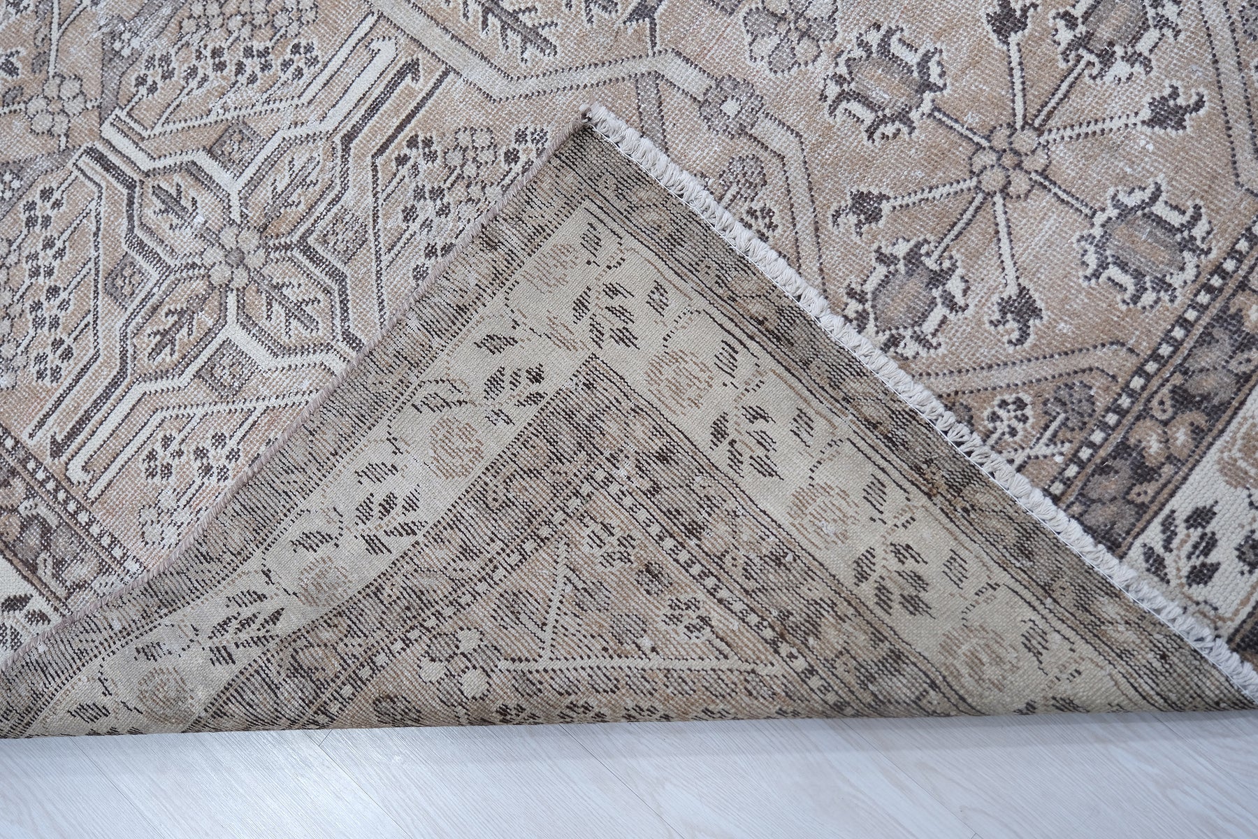 This is a hand-knotted, one-of-a-kind vintage rug. Due to the nature of this piece, there may be slight imperfections in its wear, shape, dimensions, and color. All of our rugs are professionally cleaned and repaired.