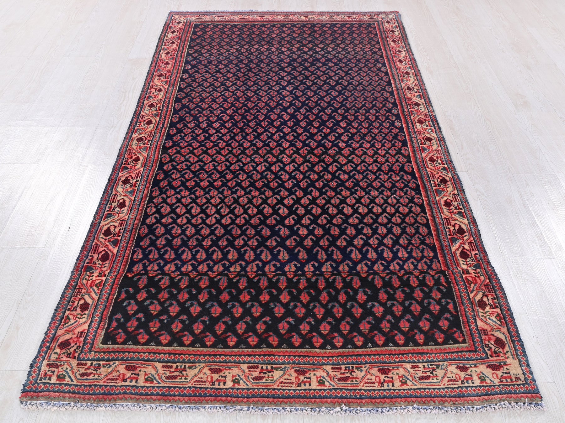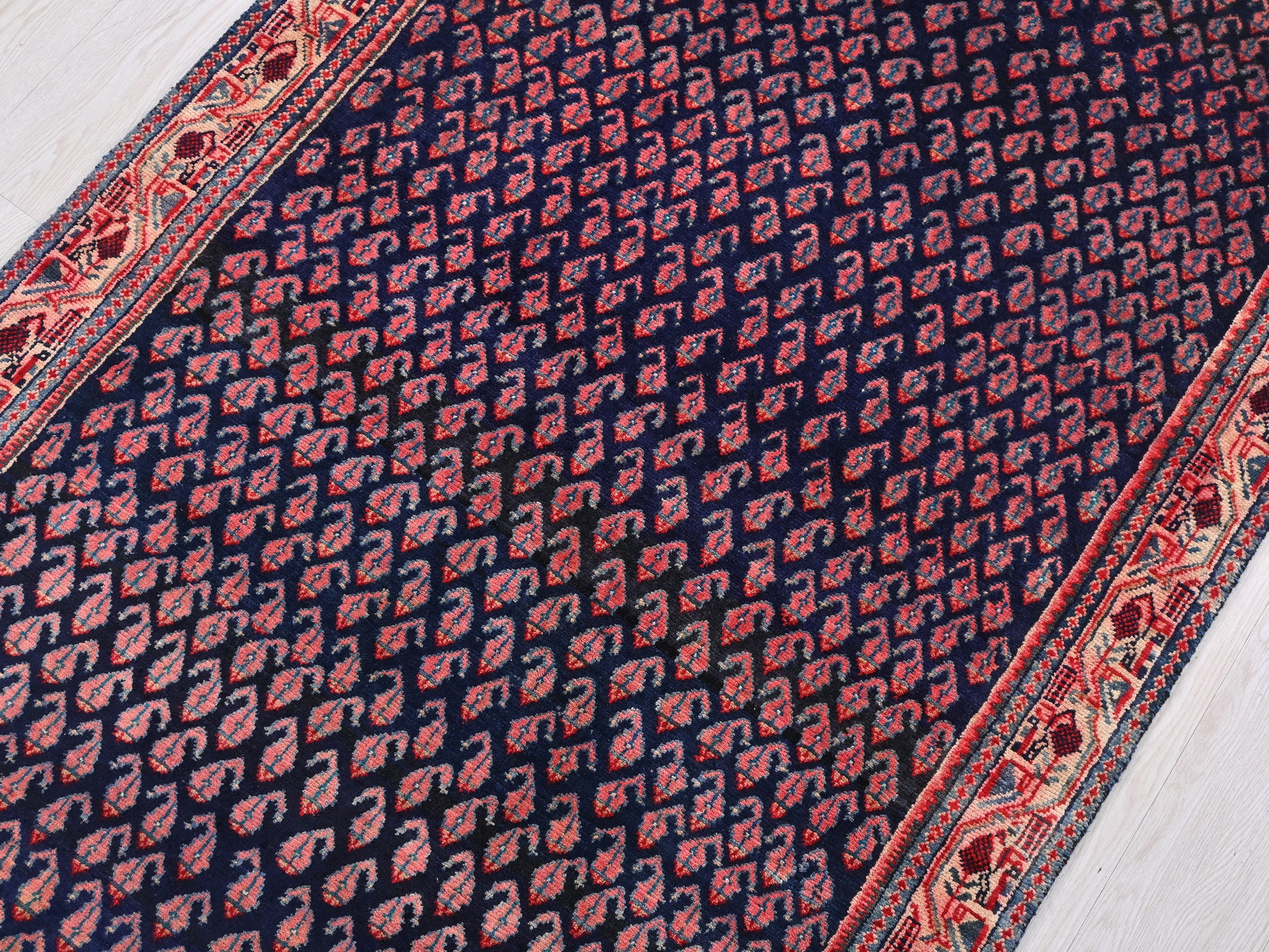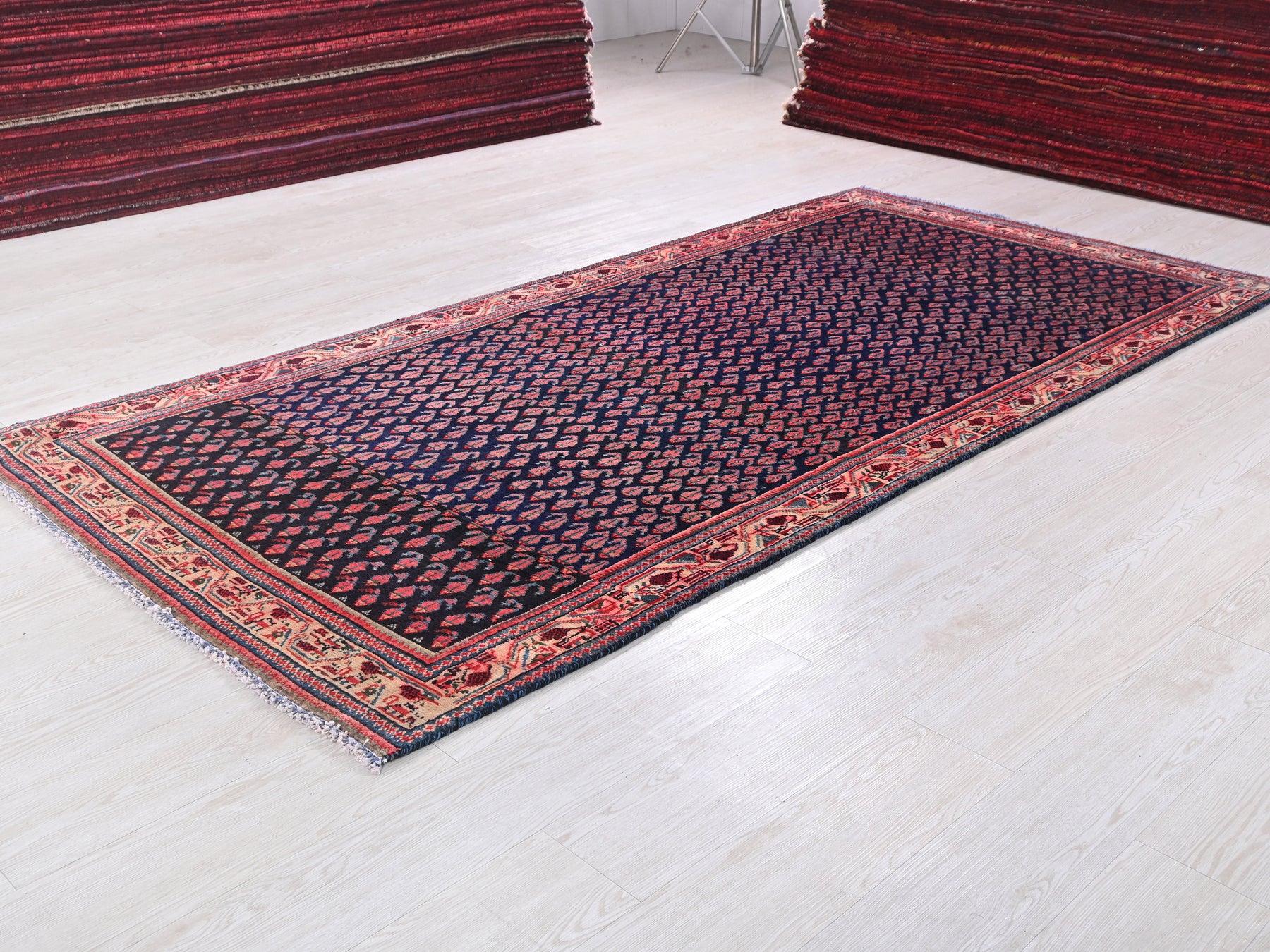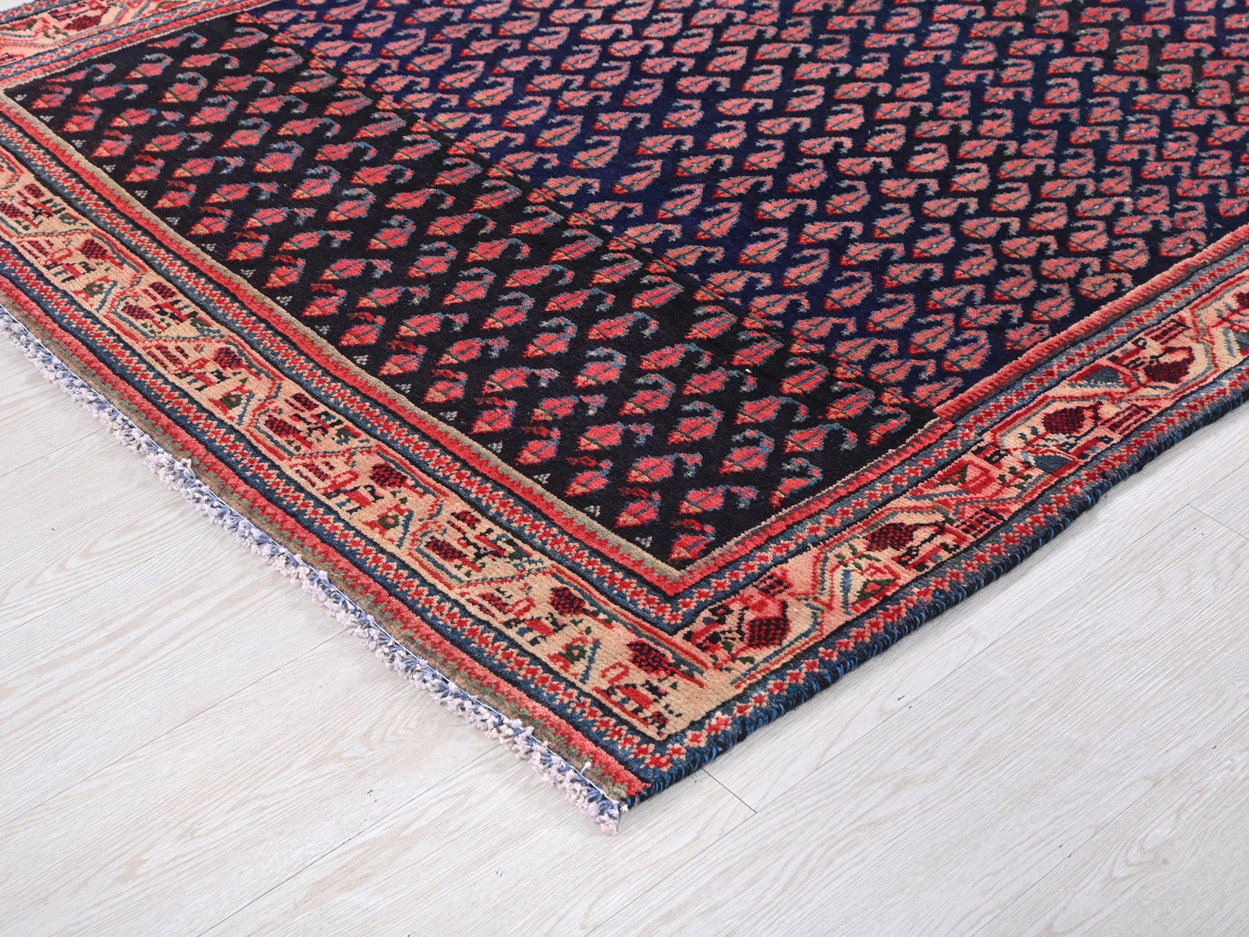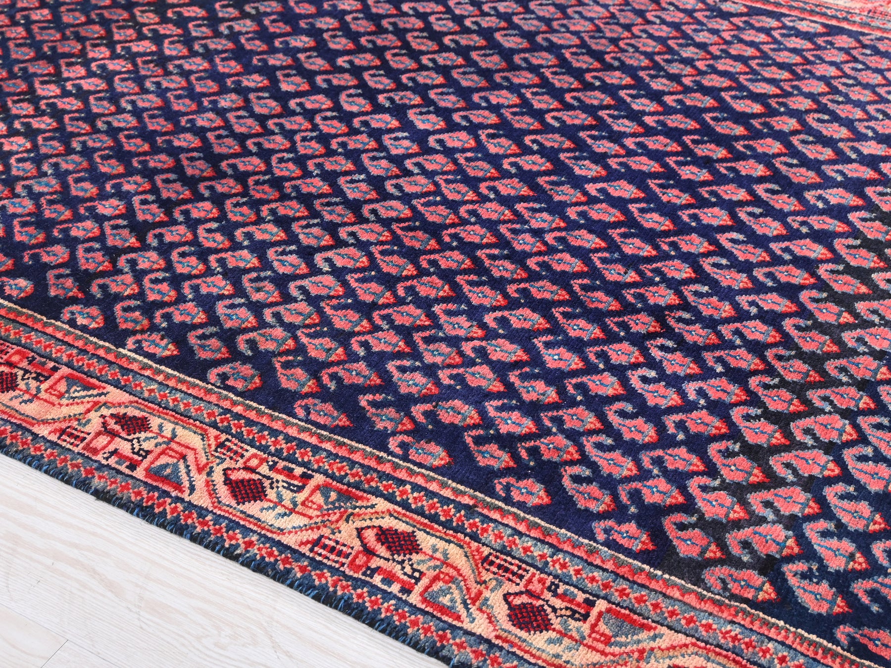 This is a hand-knotted, one-of-a-kind vintage rug. Due to the nature of this piece, there may be slight imperfections in its wear, shape, dimensions, and color. All of our rugs are professionally cleaned and repaired.