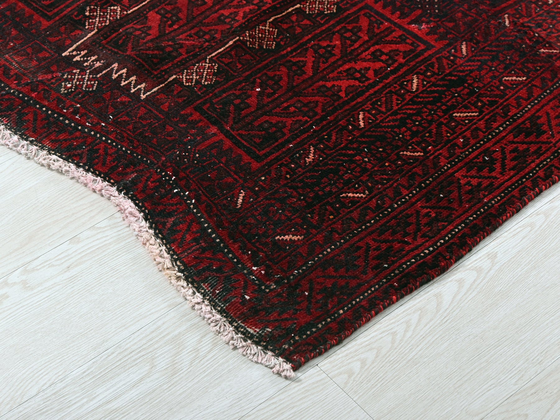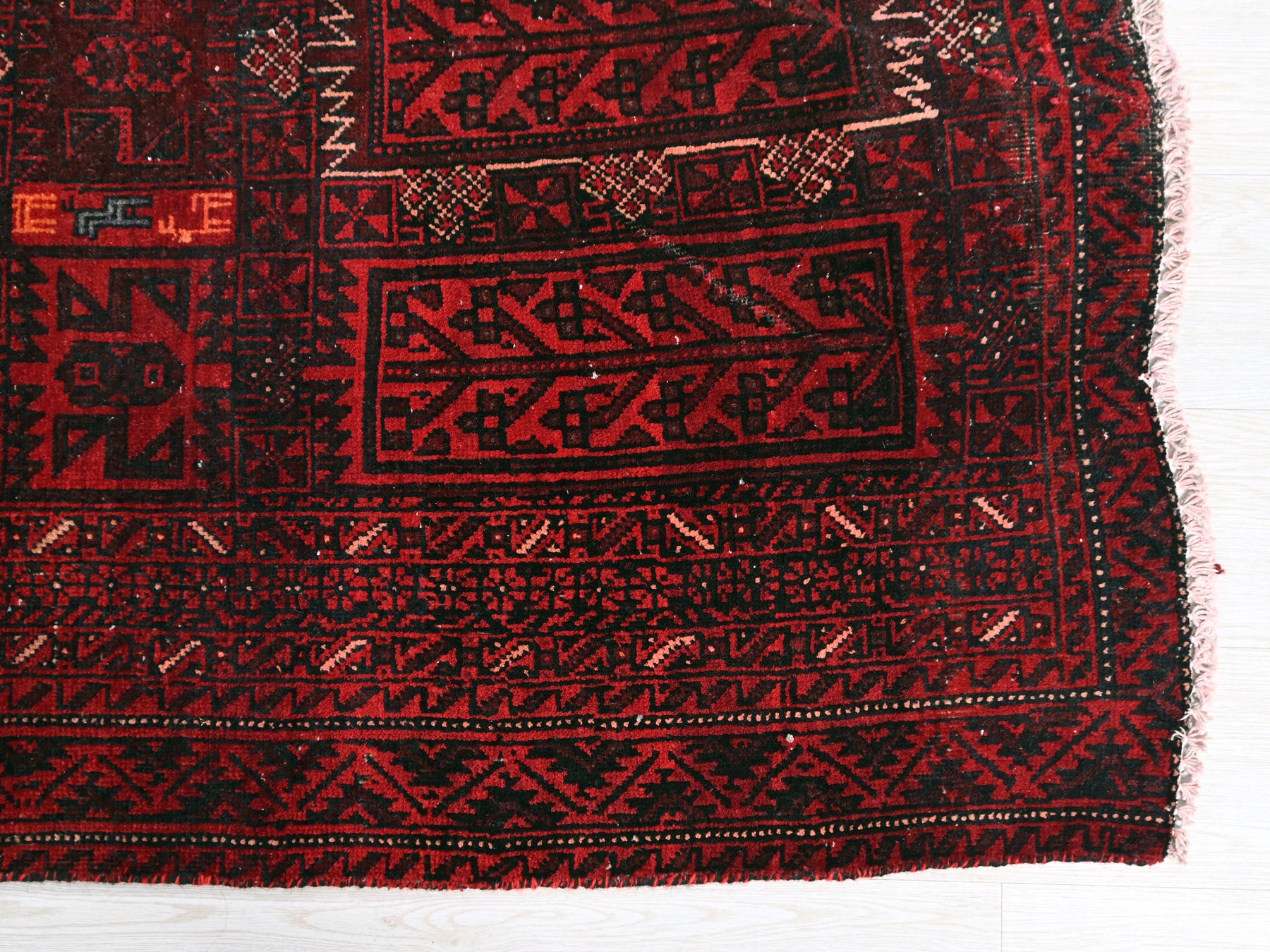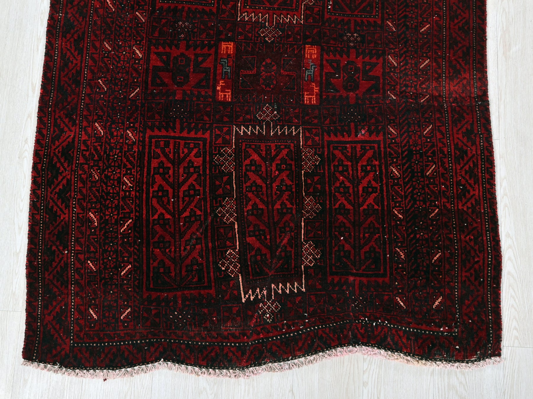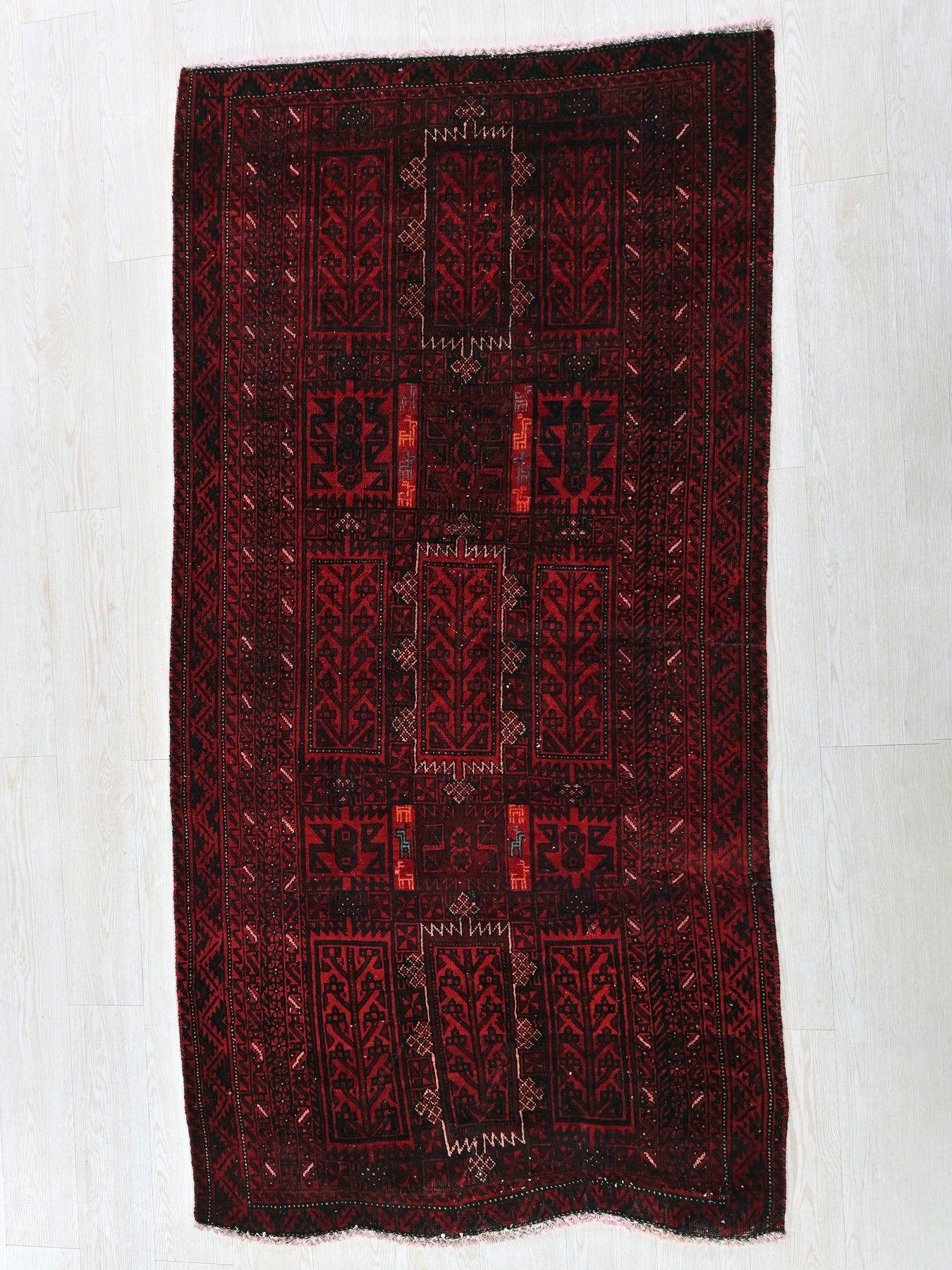 This is a hand-knotted, one-of-a-kind vintage rug. Due to the nature of this piece, there may be slight imperfections in its wear, shape, dimensions, and color. All of our rugs are professionally cleaned and repaired.
