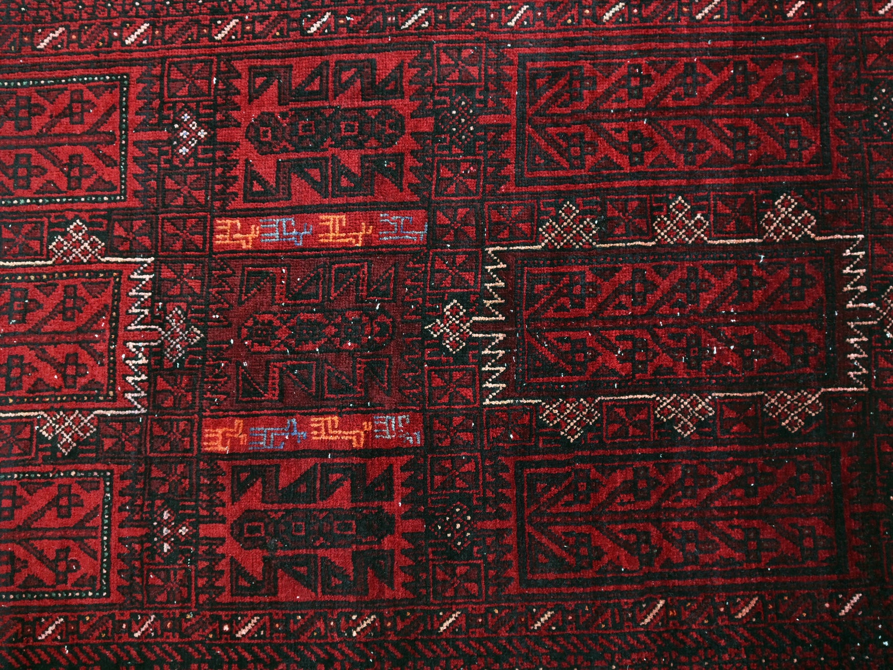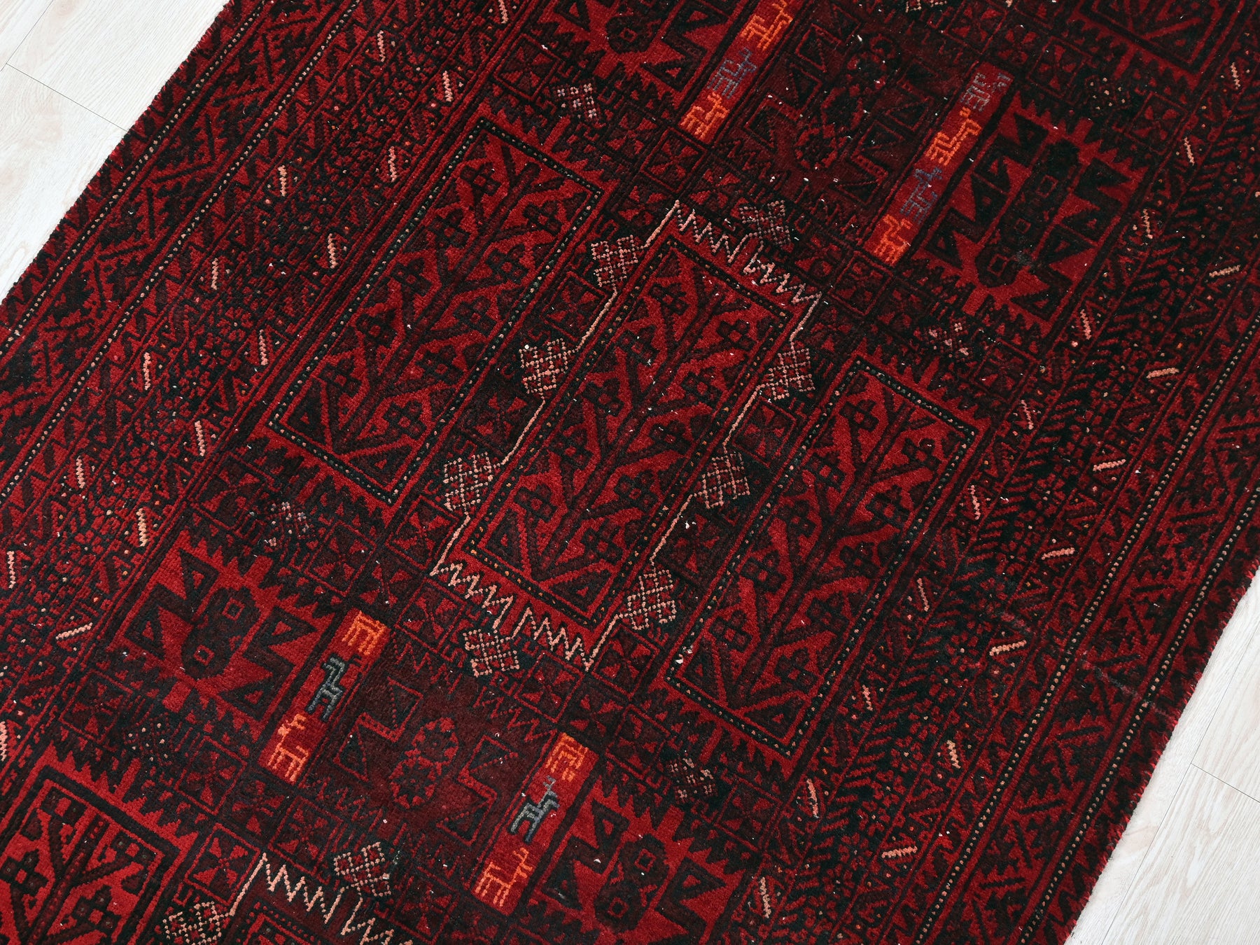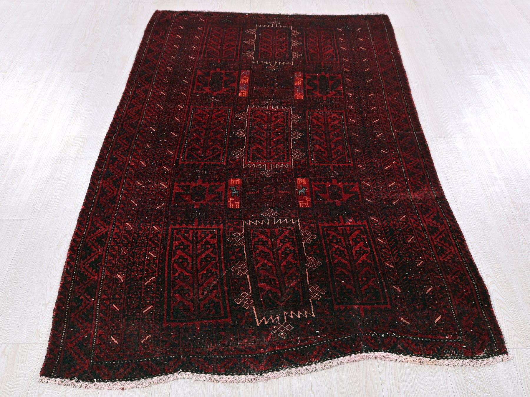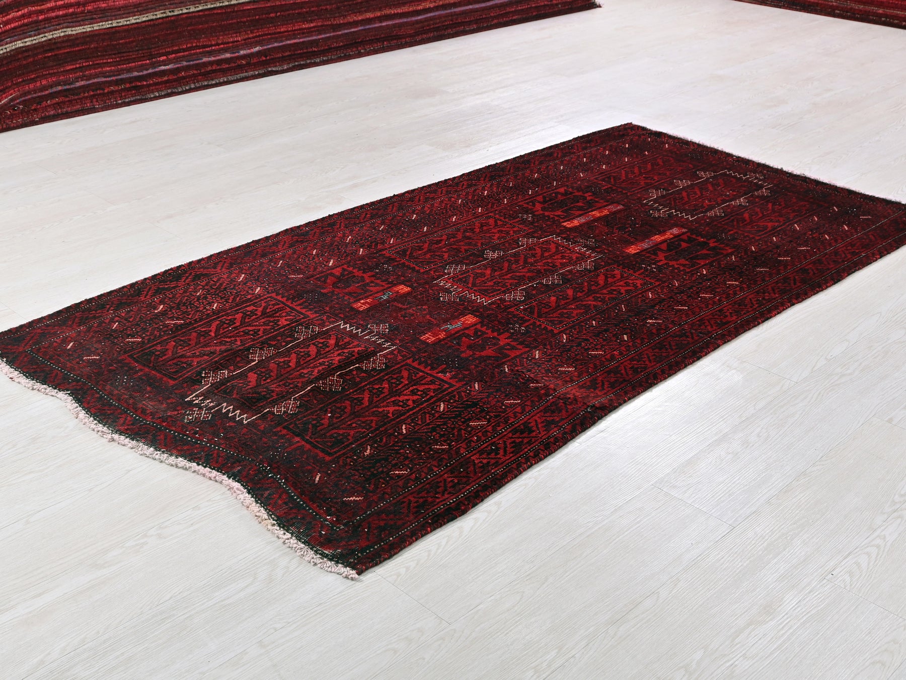 This is a hand-knotted, one-of-a-kind vintage rug. Due to the nature of this piece, there may be slight imperfections in its wear, shape, dimensions, and color. All of our rugs are professionally cleaned and repaired.