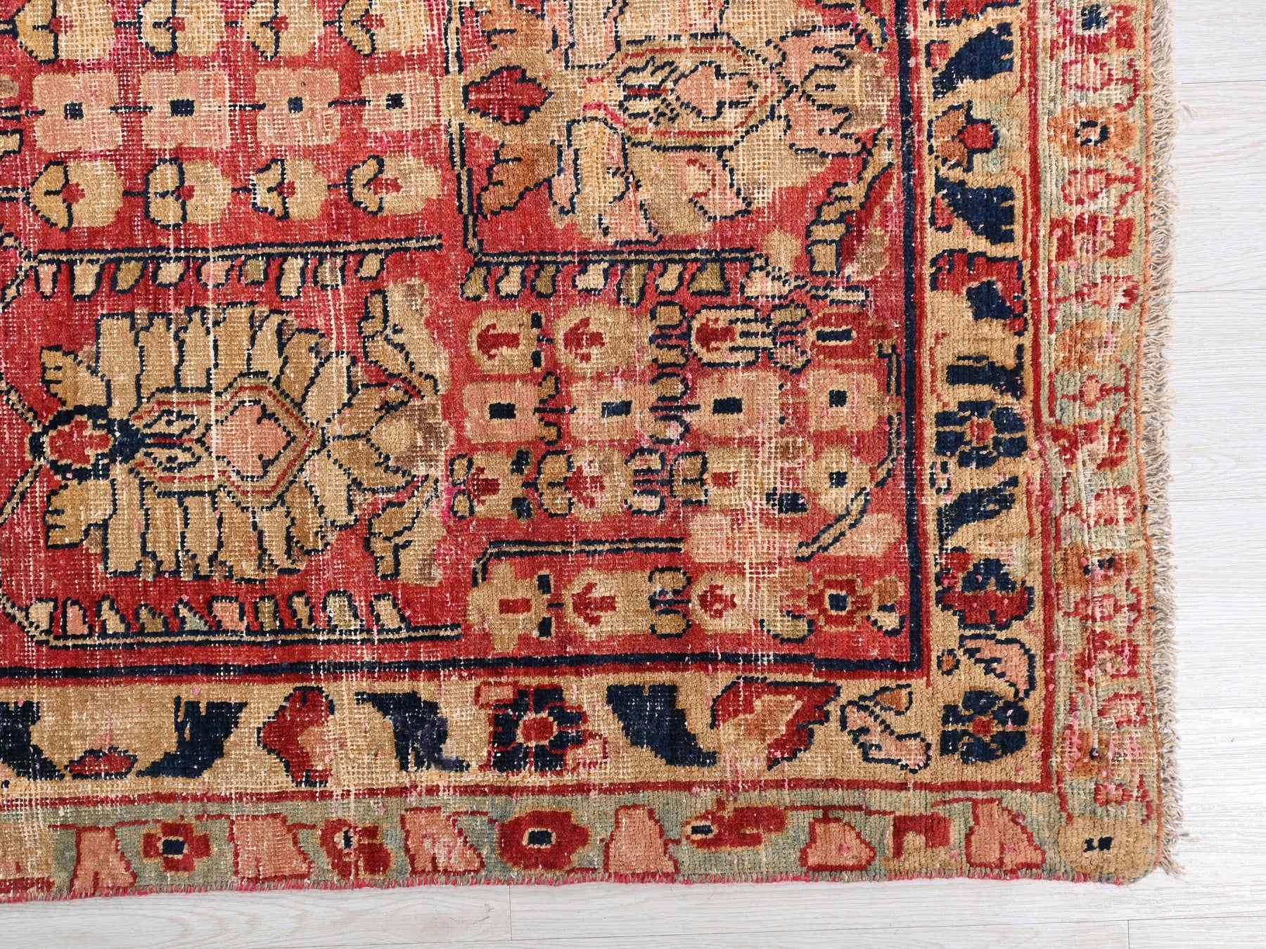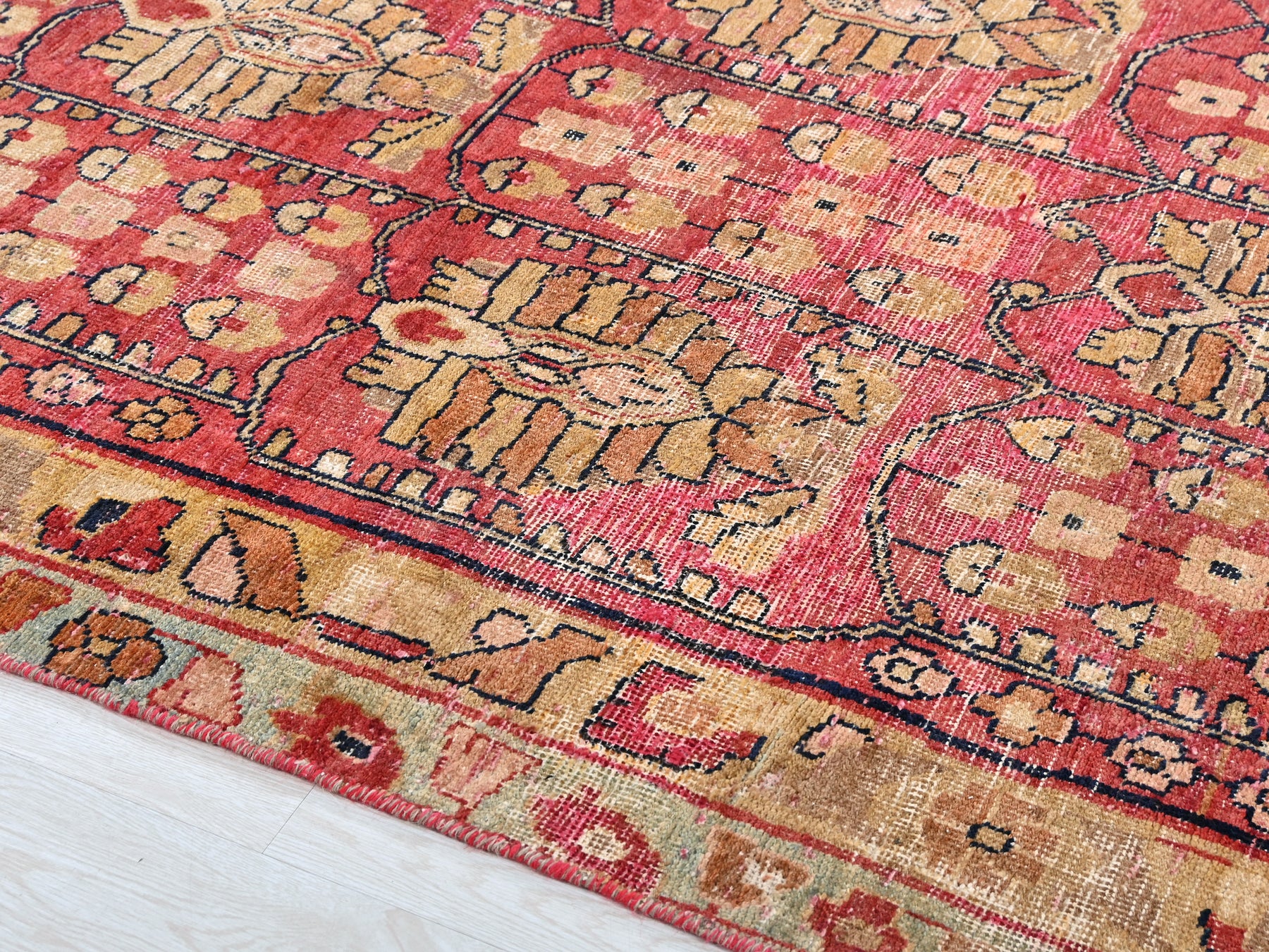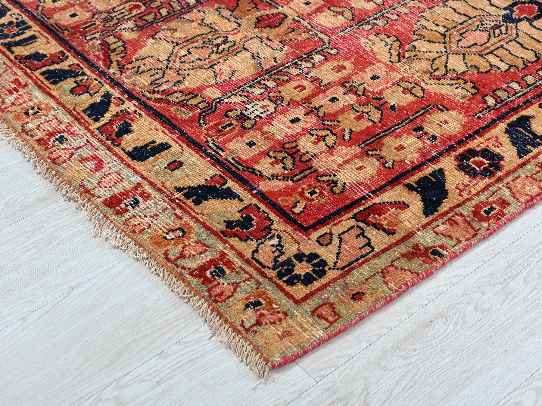 This is a hand-knotted, one-of-a-kind vintage rug. Due to the nature of this piece, there may be slight imperfections in its wear, shape, dimensions, and color. All of our rugs are professionally cleaned and repaired.