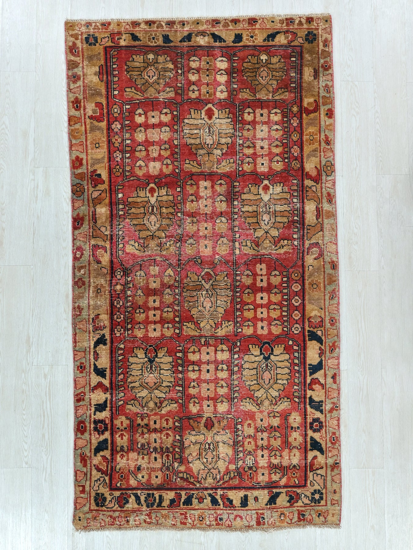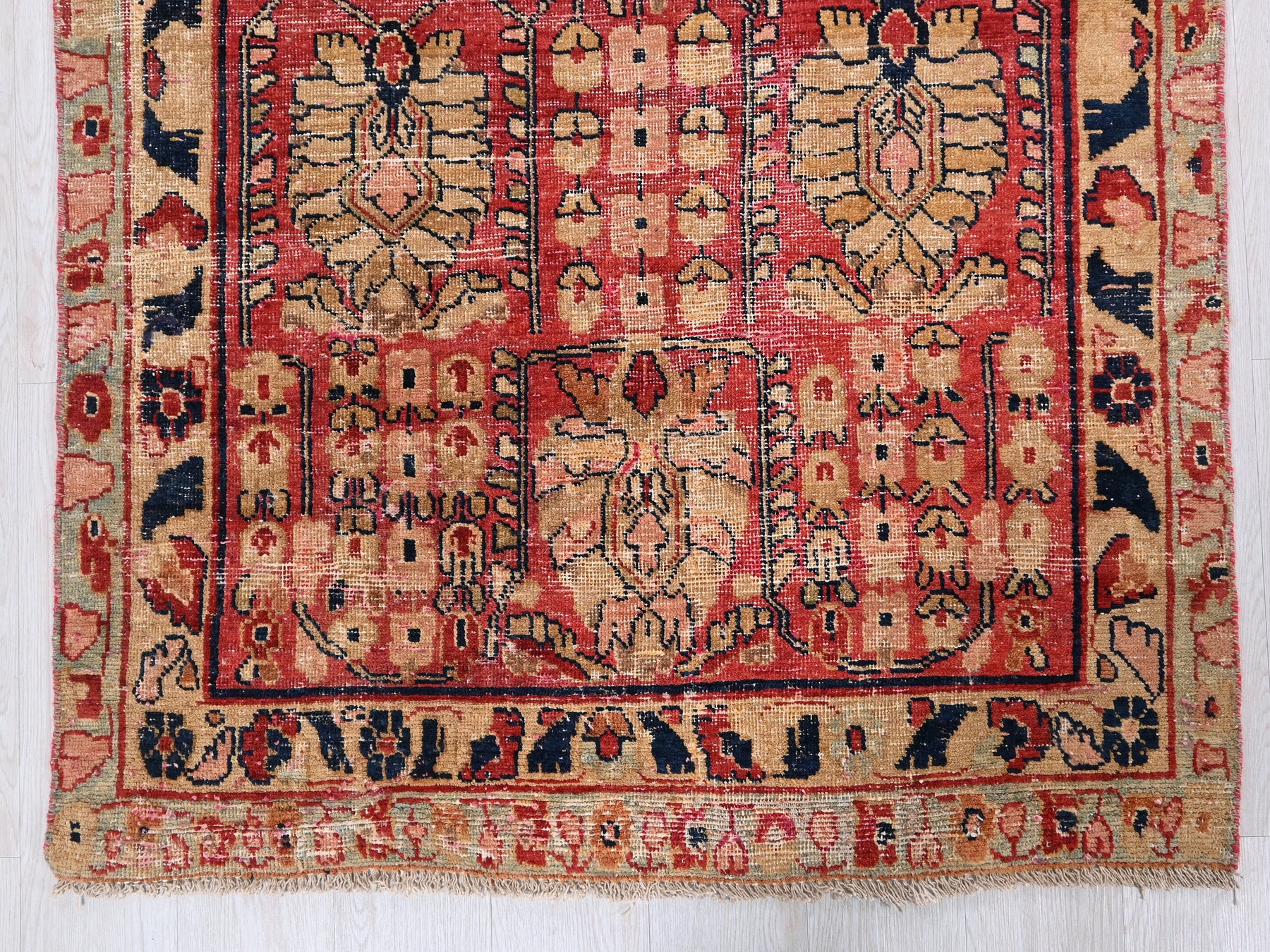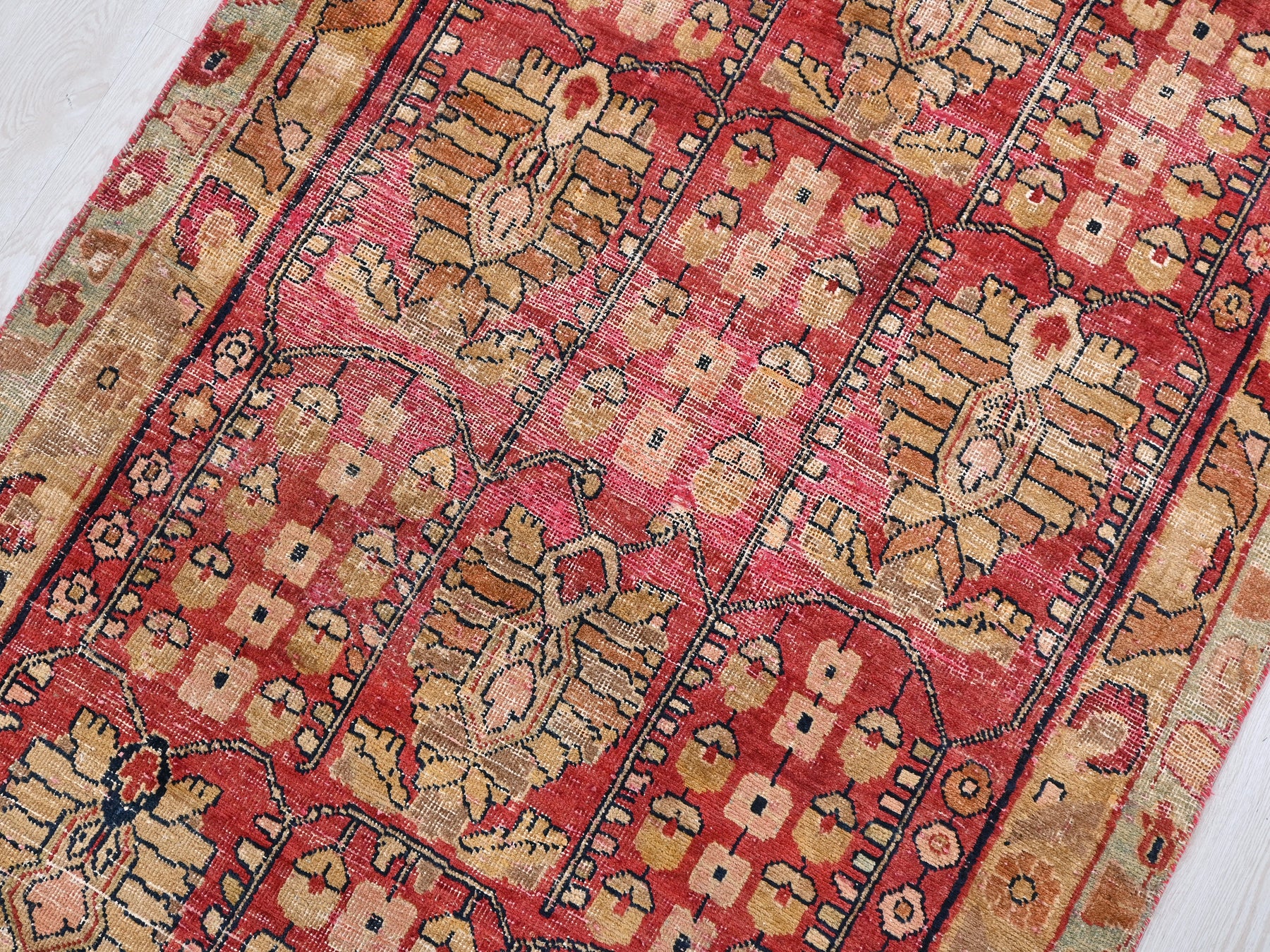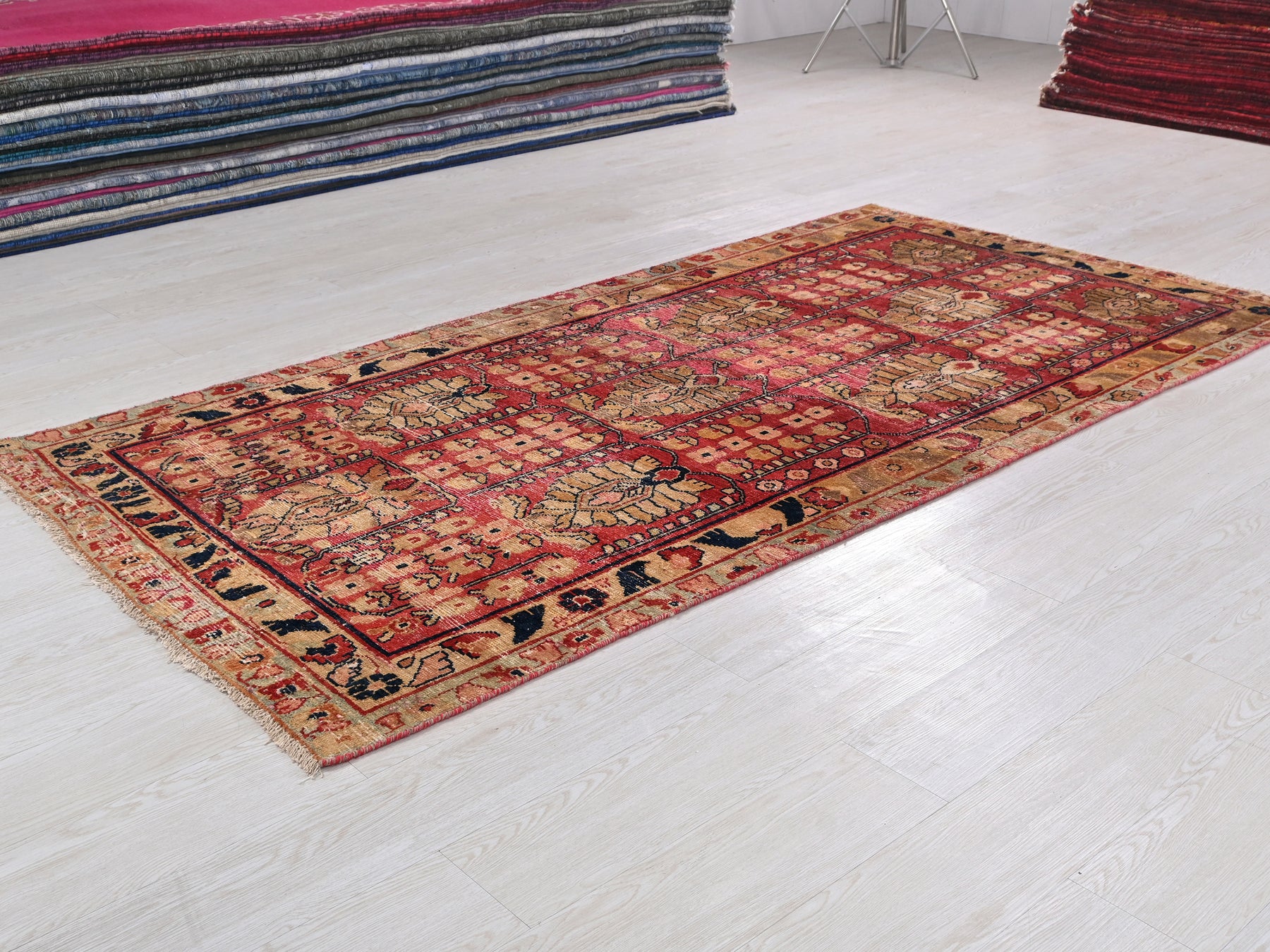 This is a hand-knotted, one-of-a-kind vintage rug. Due to the nature of this piece, there may be slight imperfections in its wear, shape, dimensions, and color. All of our rugs are professionally cleaned and repaired.