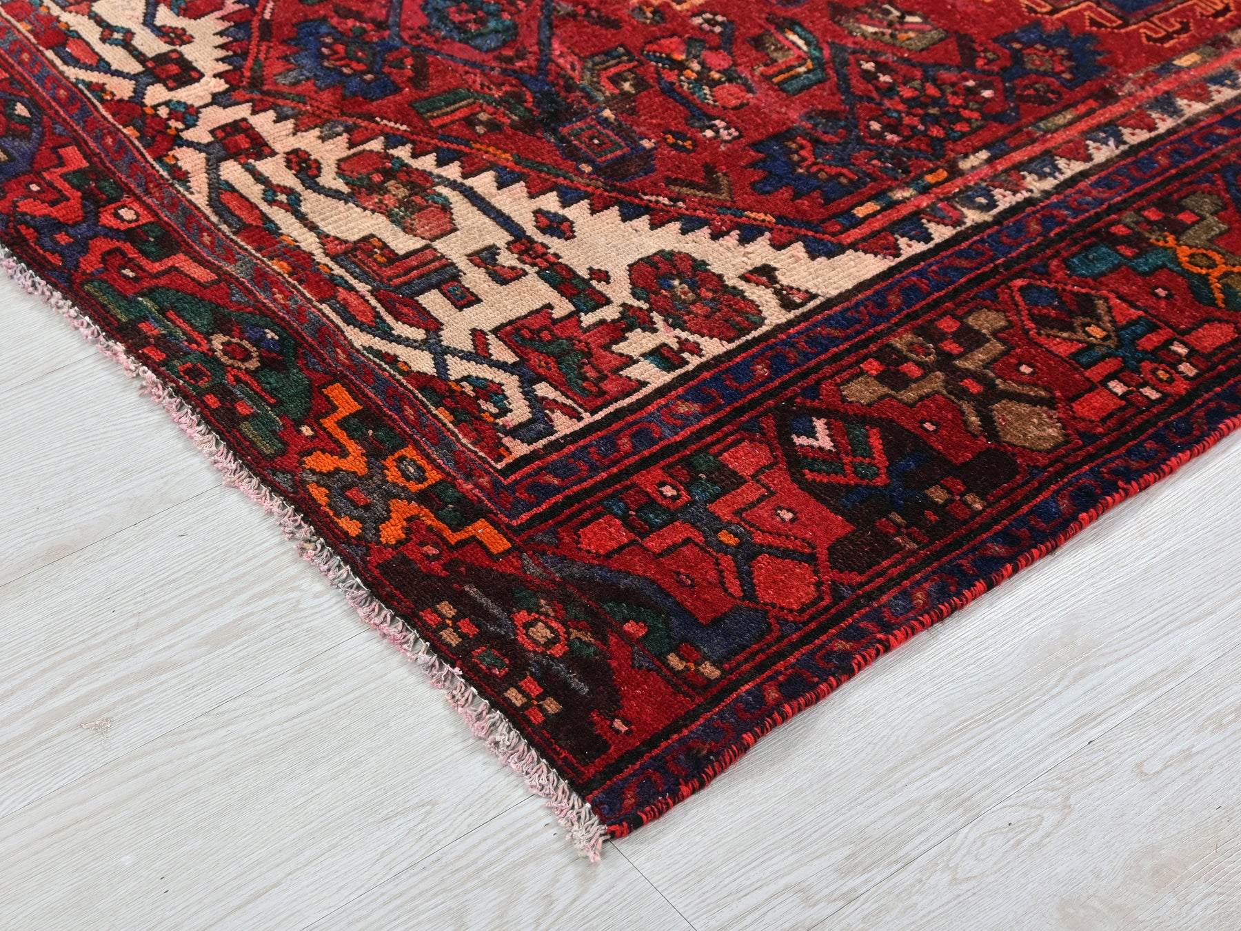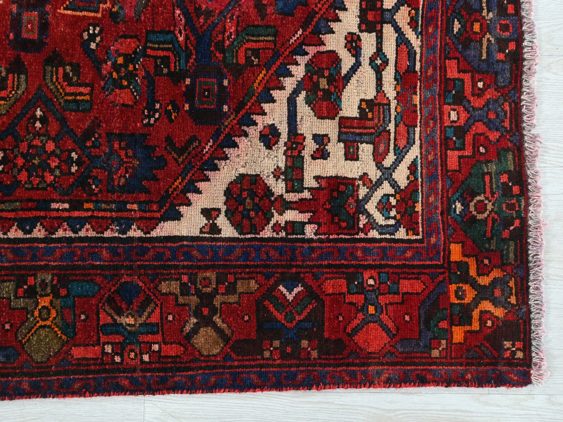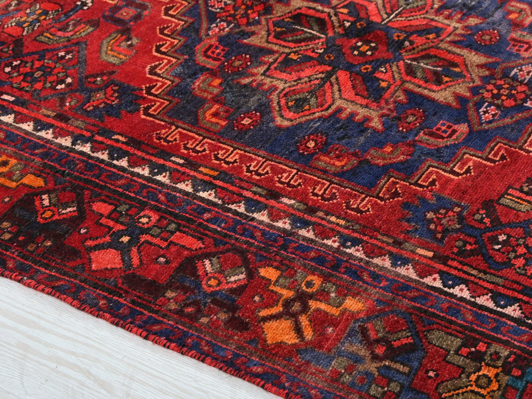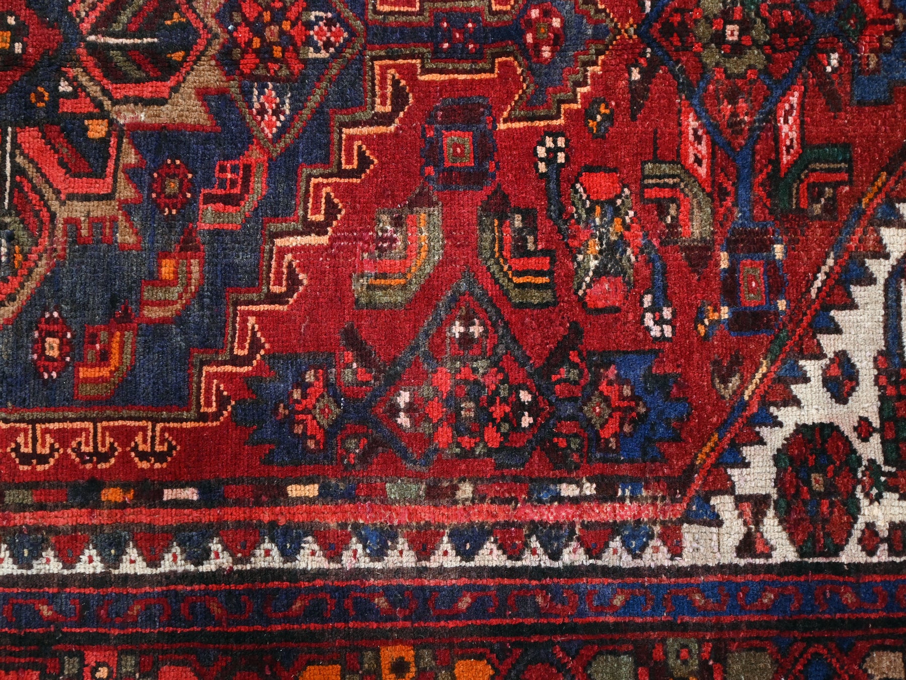 This is a hand-knotted, one-of-a-kind vintage rug. Due to the nature of this piece, there may be slight imperfections in its wear, shape, dimensions, and color. All of our rugs are professionally cleaned and repaired.