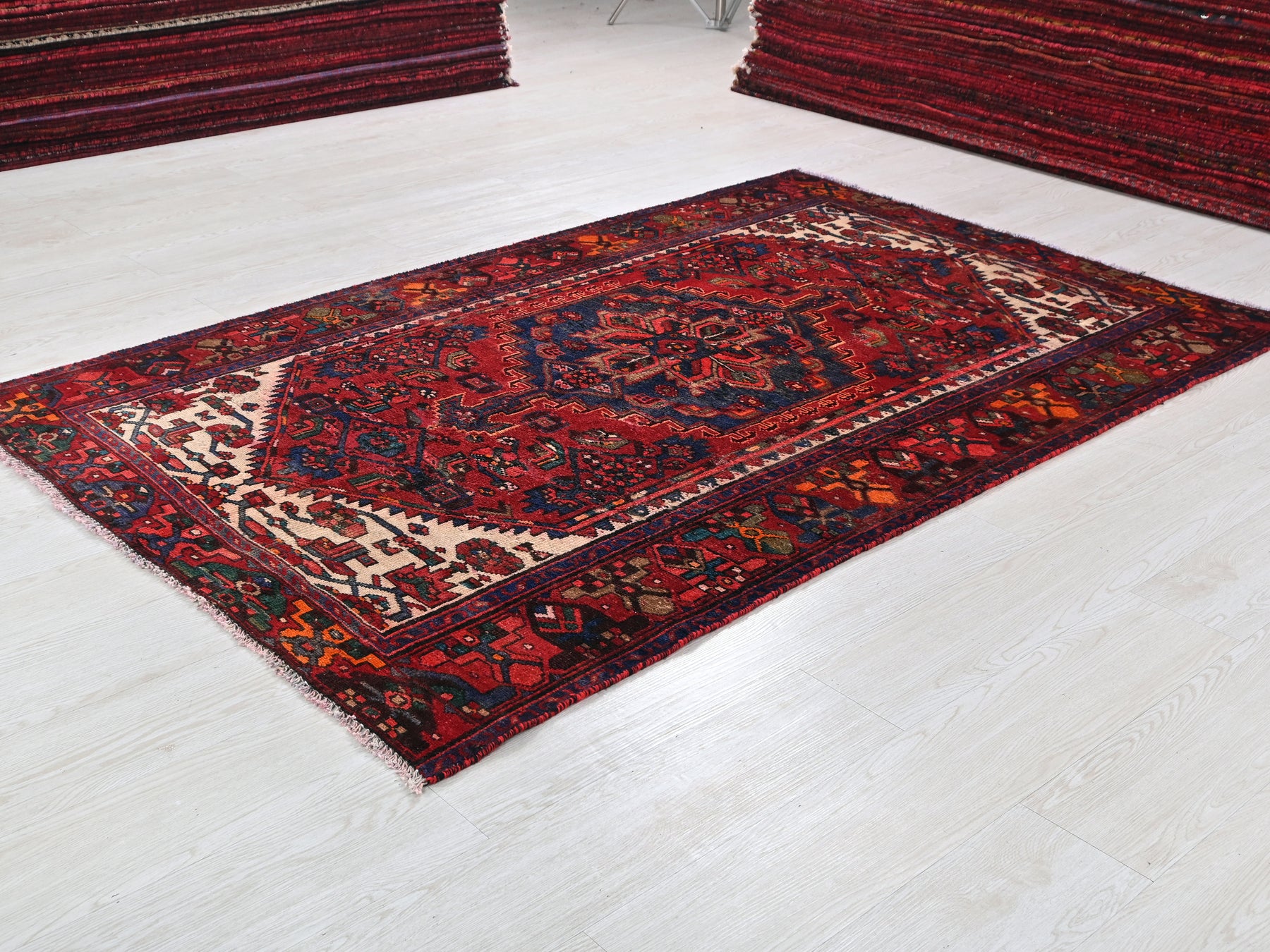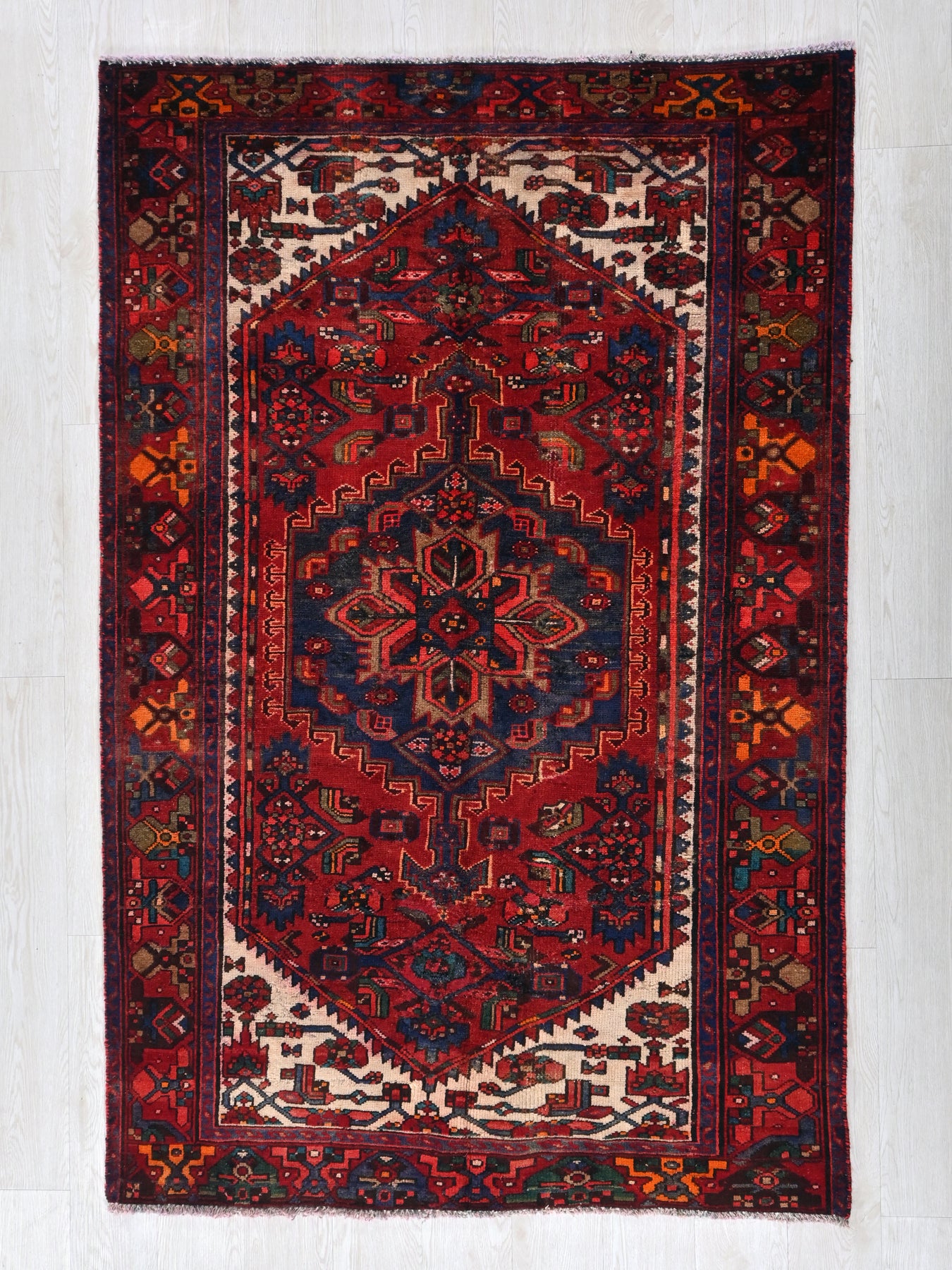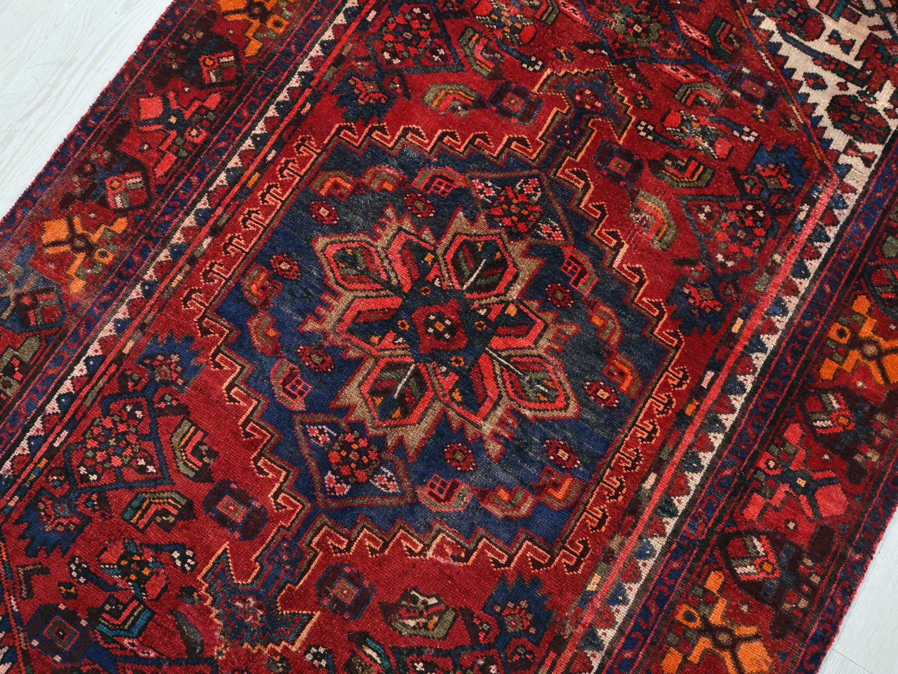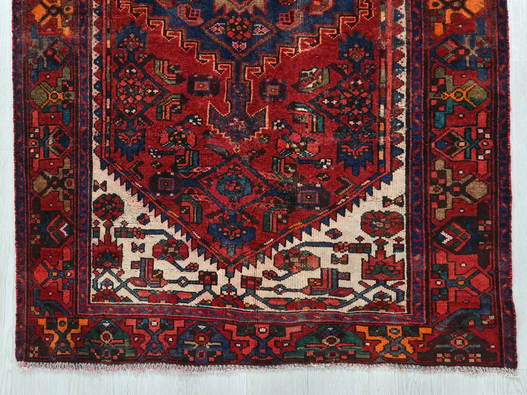 This is a hand-knotted, one-of-a-kind vintage rug. Due to the nature of this piece, there may be slight imperfections in its wear, shape, dimensions, and color. All of our rugs are professionally cleaned and repaired.