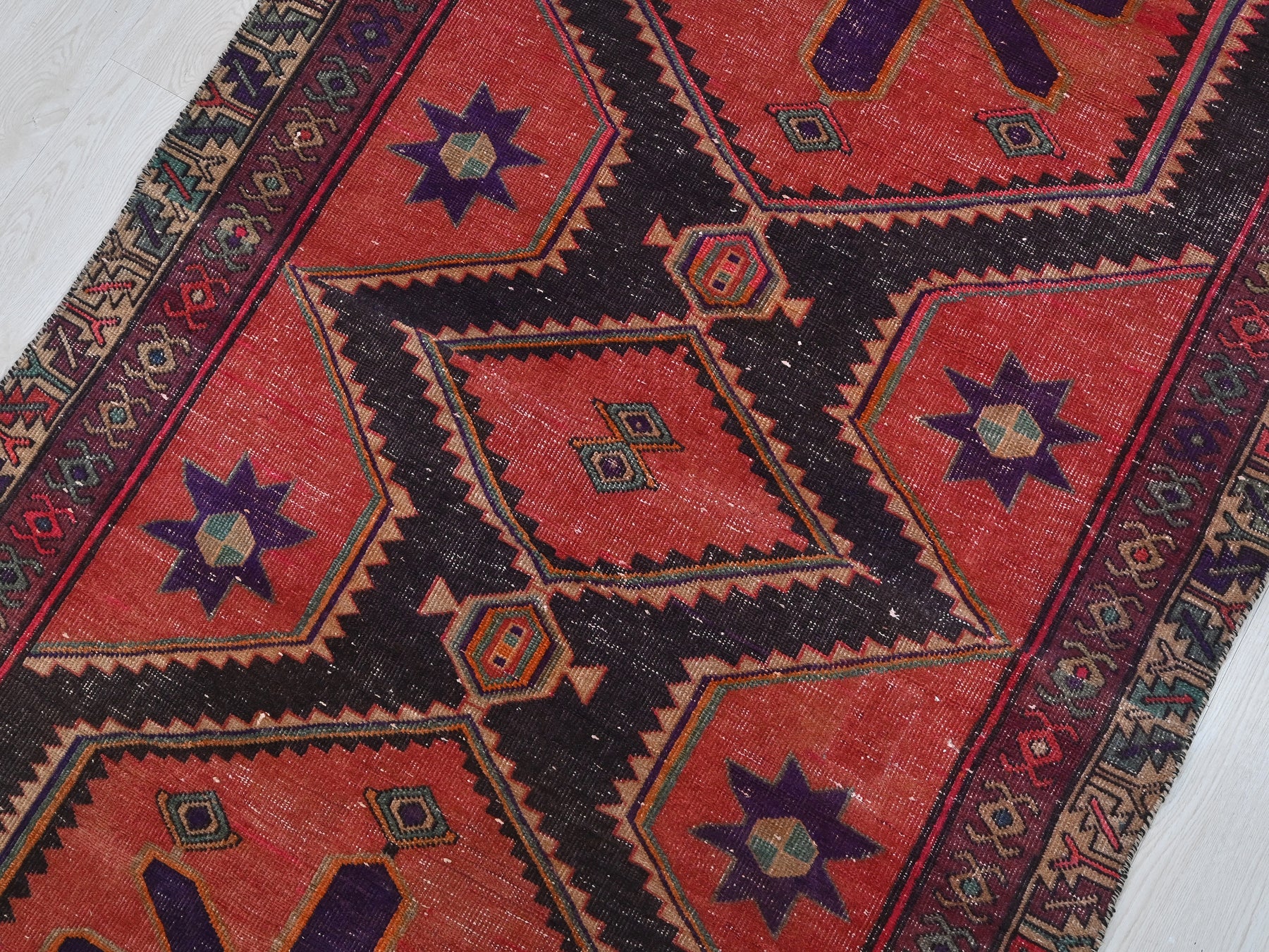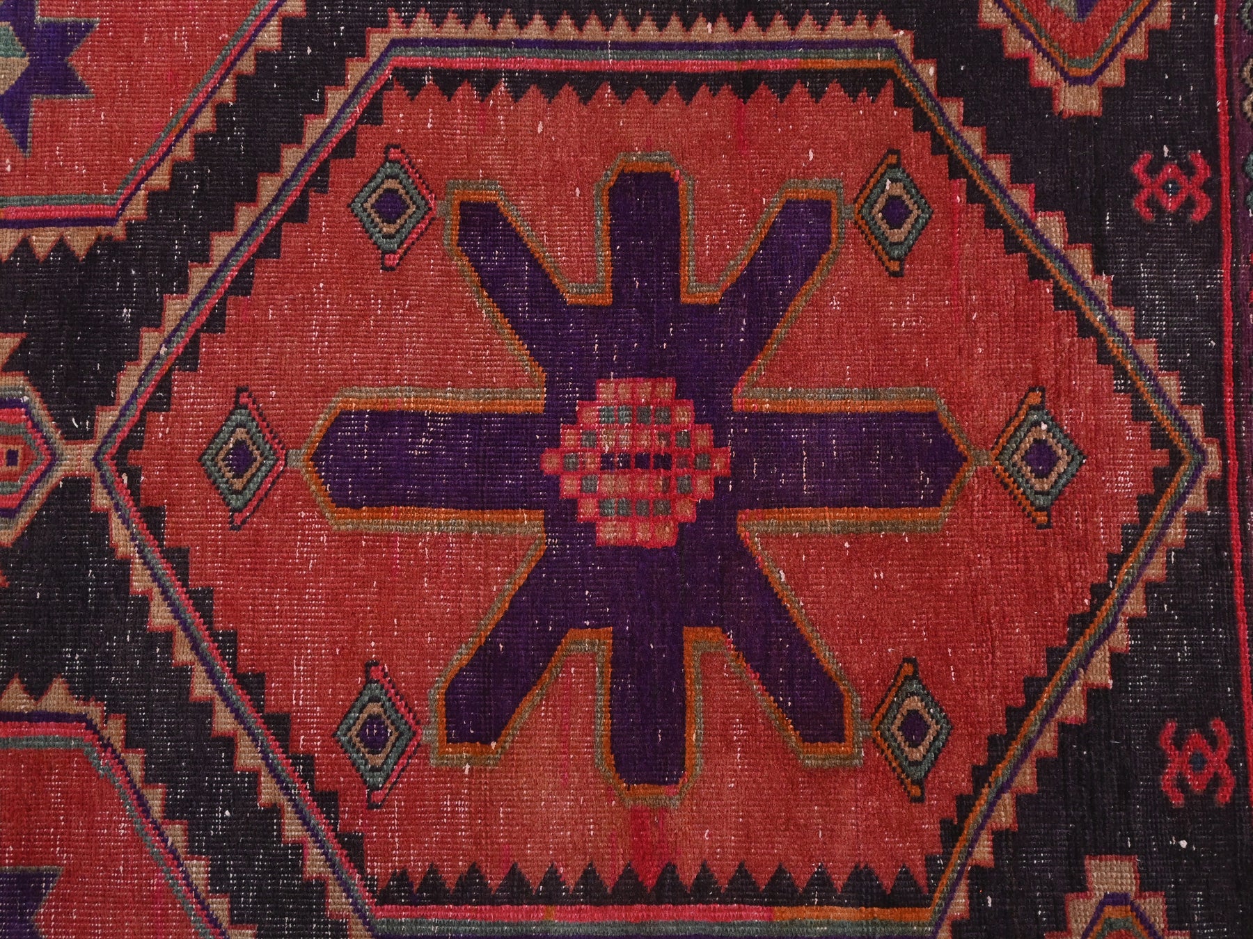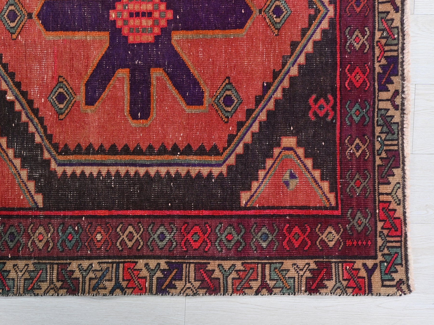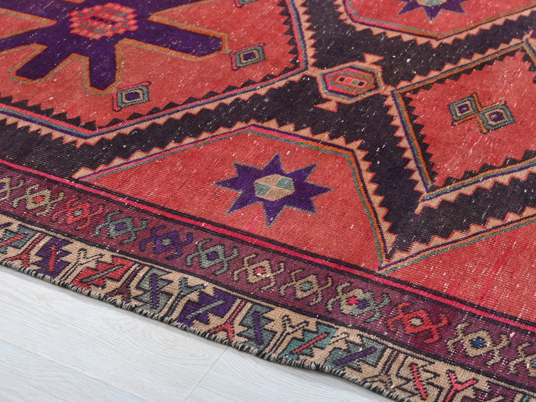 This is a hand-knotted, one-of-a-kind vintage rug. Due to the nature of this piece, there may be slight imperfections in its wear, shape, dimensions, and color. All of our rugs are professionally cleaned and repaired.