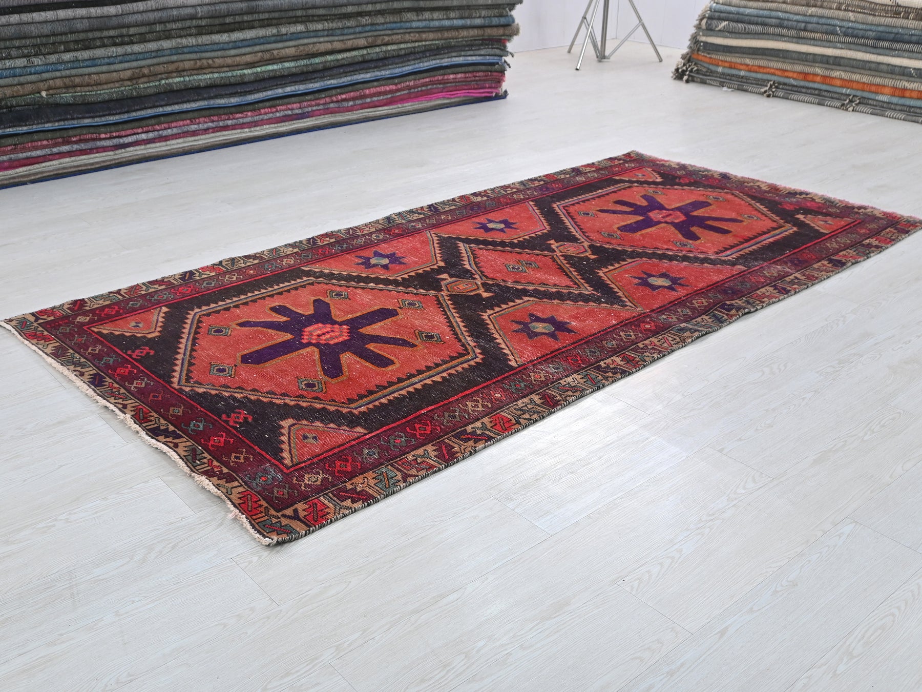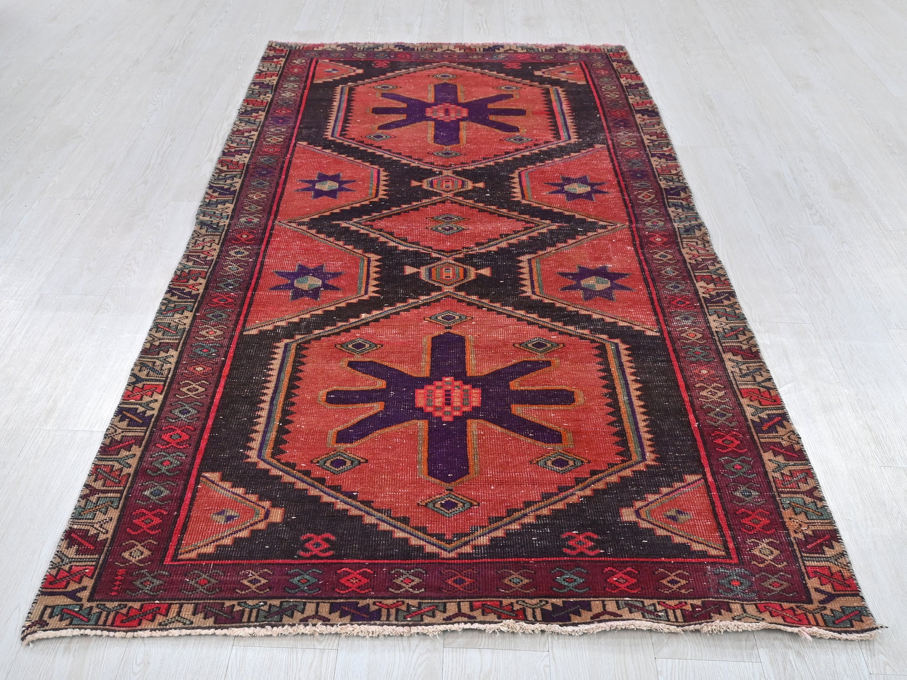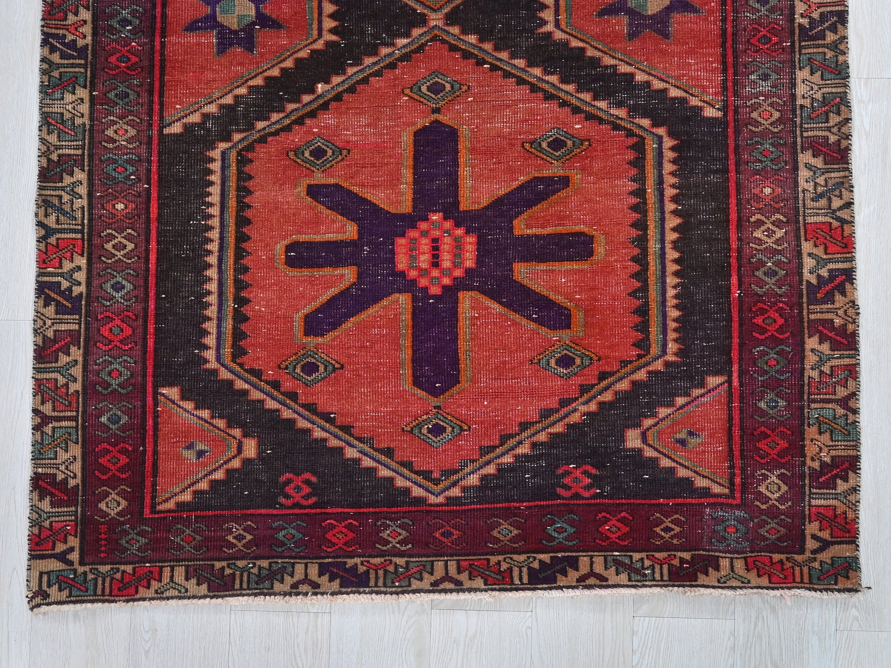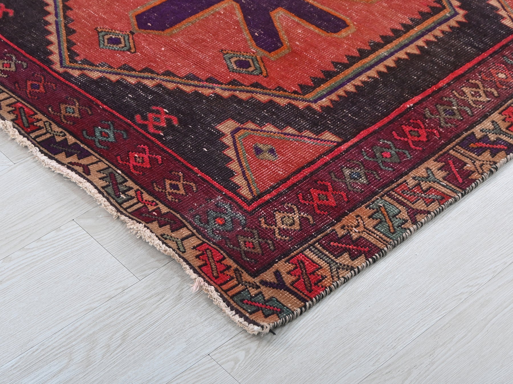 This is a hand-knotted, one-of-a-kind vintage rug. Due to the nature of this piece, there may be slight imperfections in its wear, shape, dimensions, and color. All of our rugs are professionally cleaned and repaired.