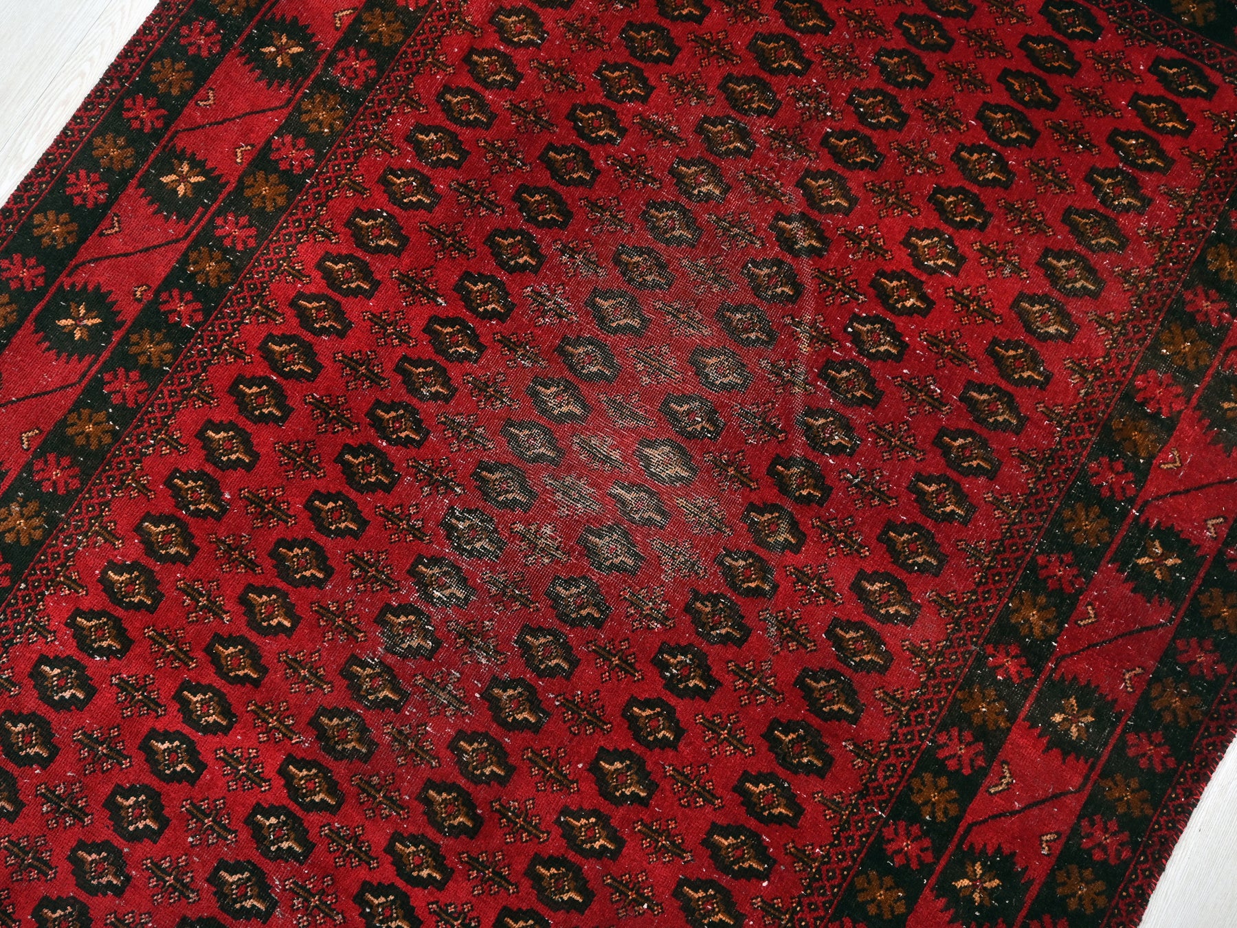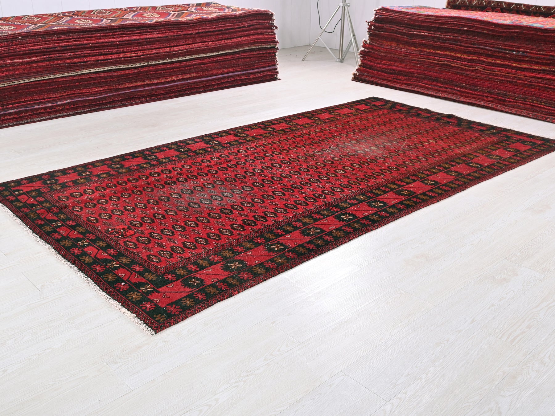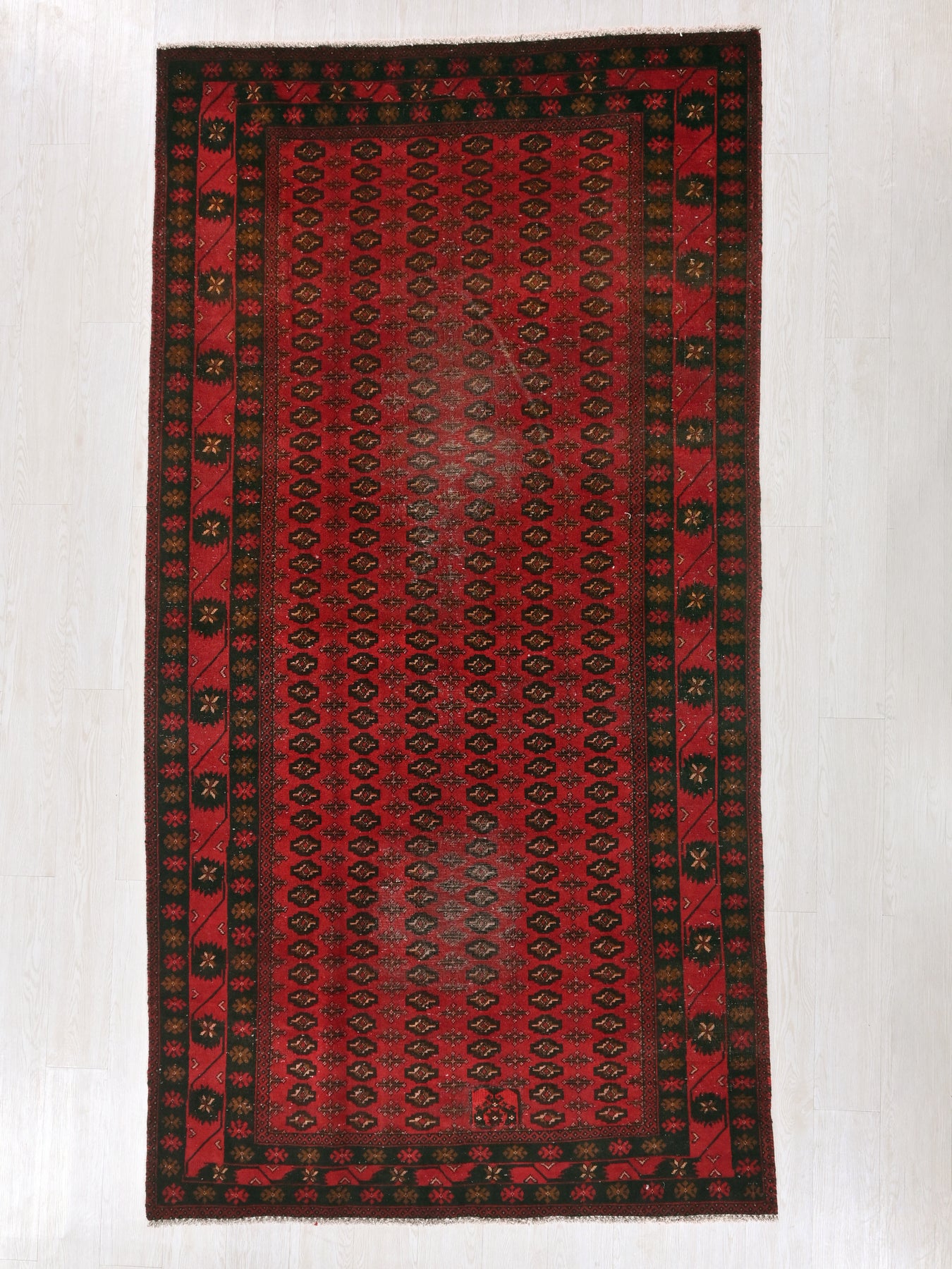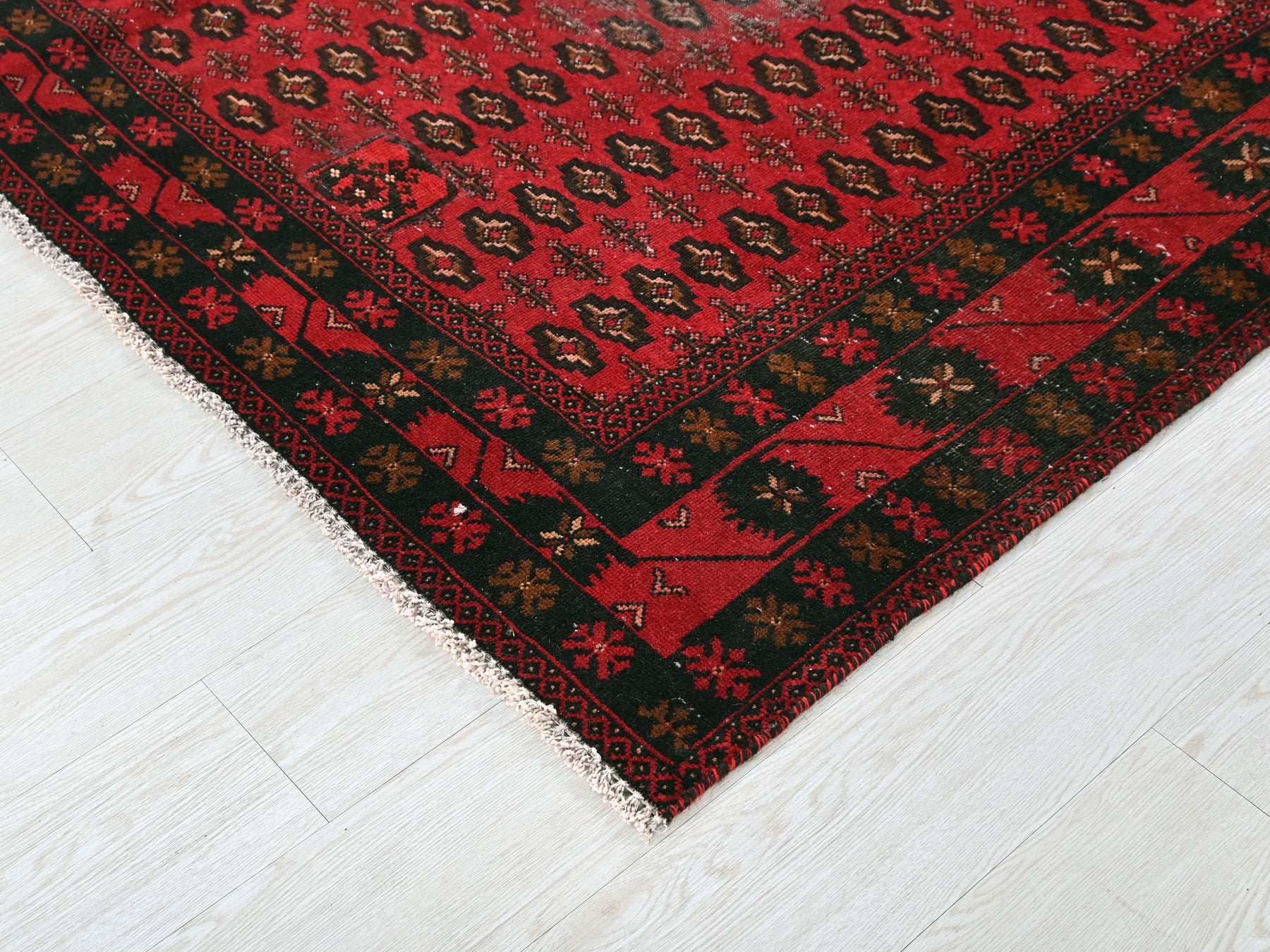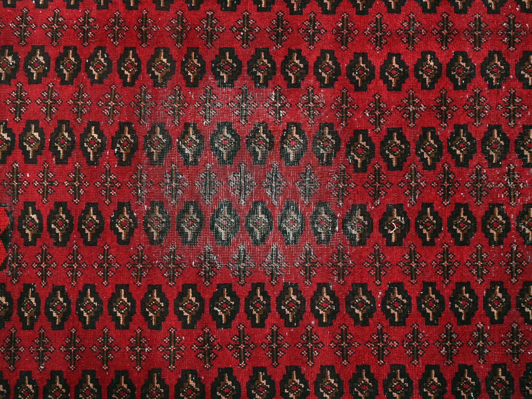 This is a hand-knotted, one-of-a-kind vintage rug. Due to the nature of this piece, there may be slight imperfections in its wear, shape, dimensions, and color. All of our rugs are professionally cleaned and repaired.