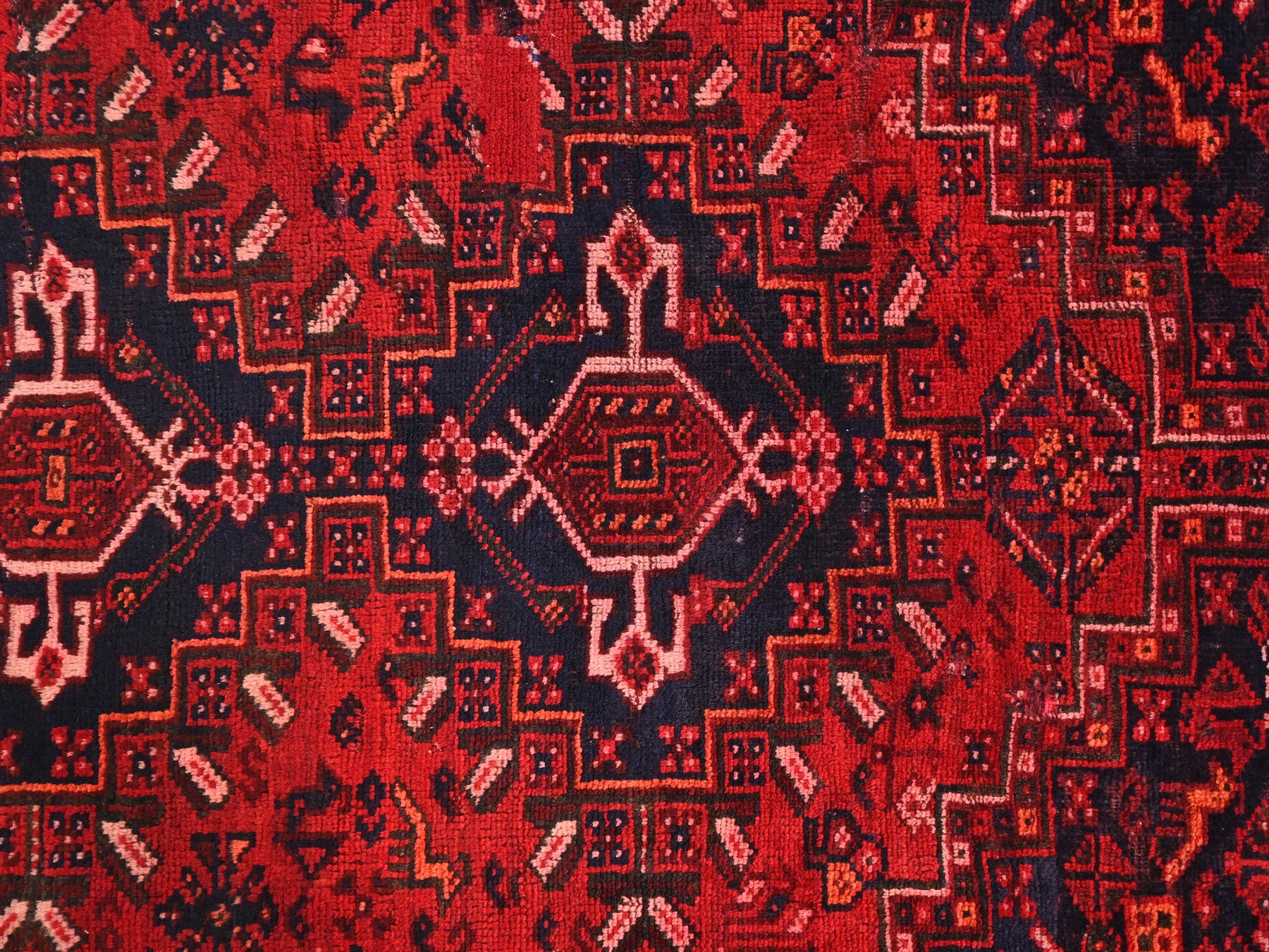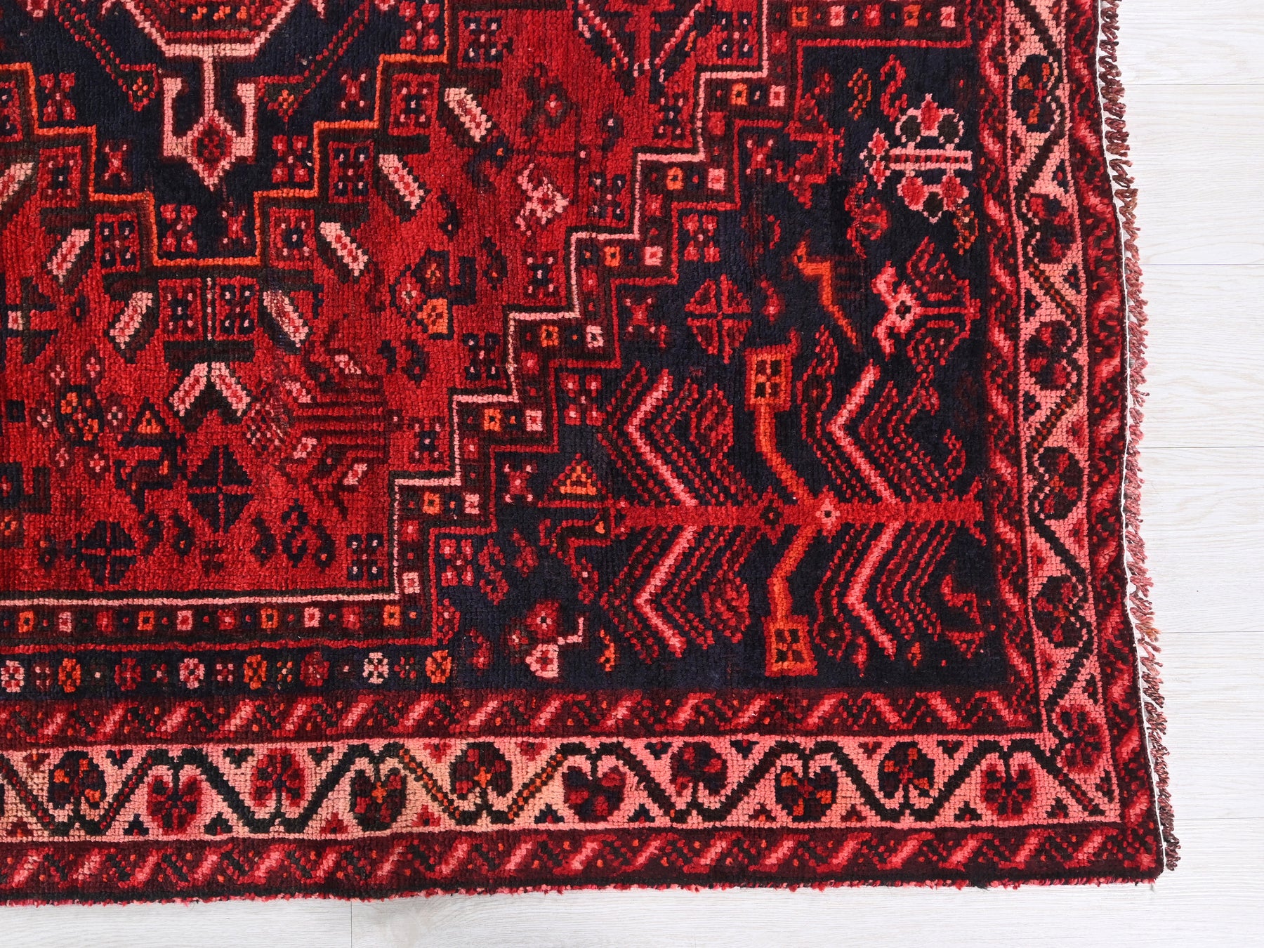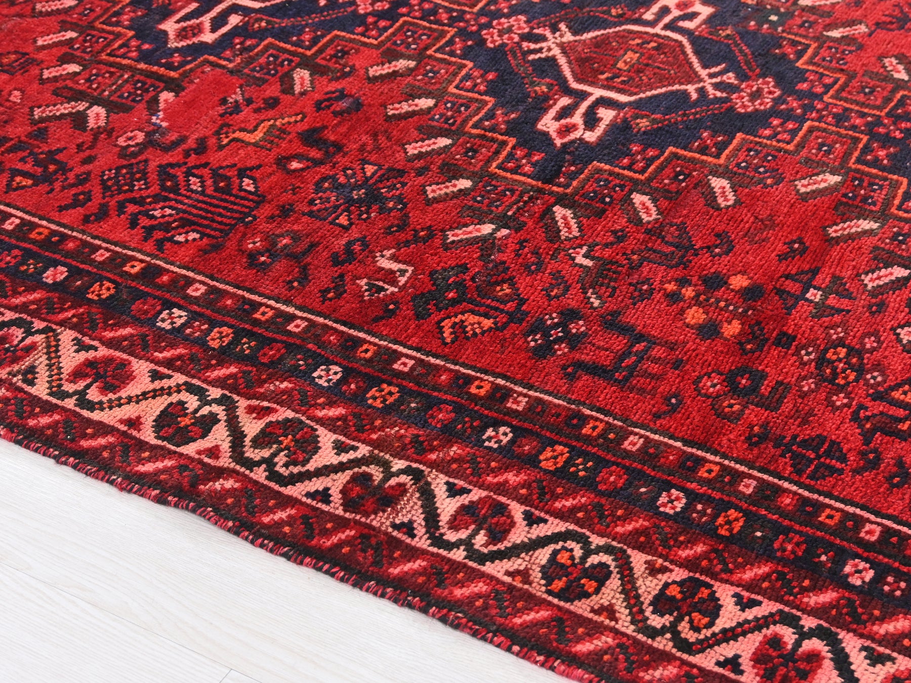 This is a hand-knotted, one-of-a-kind vintage rug. Due to the nature of this piece, there may be slight imperfections in its wear, shape, dimensions, and color. All of our rugs are professionally cleaned and repaired.