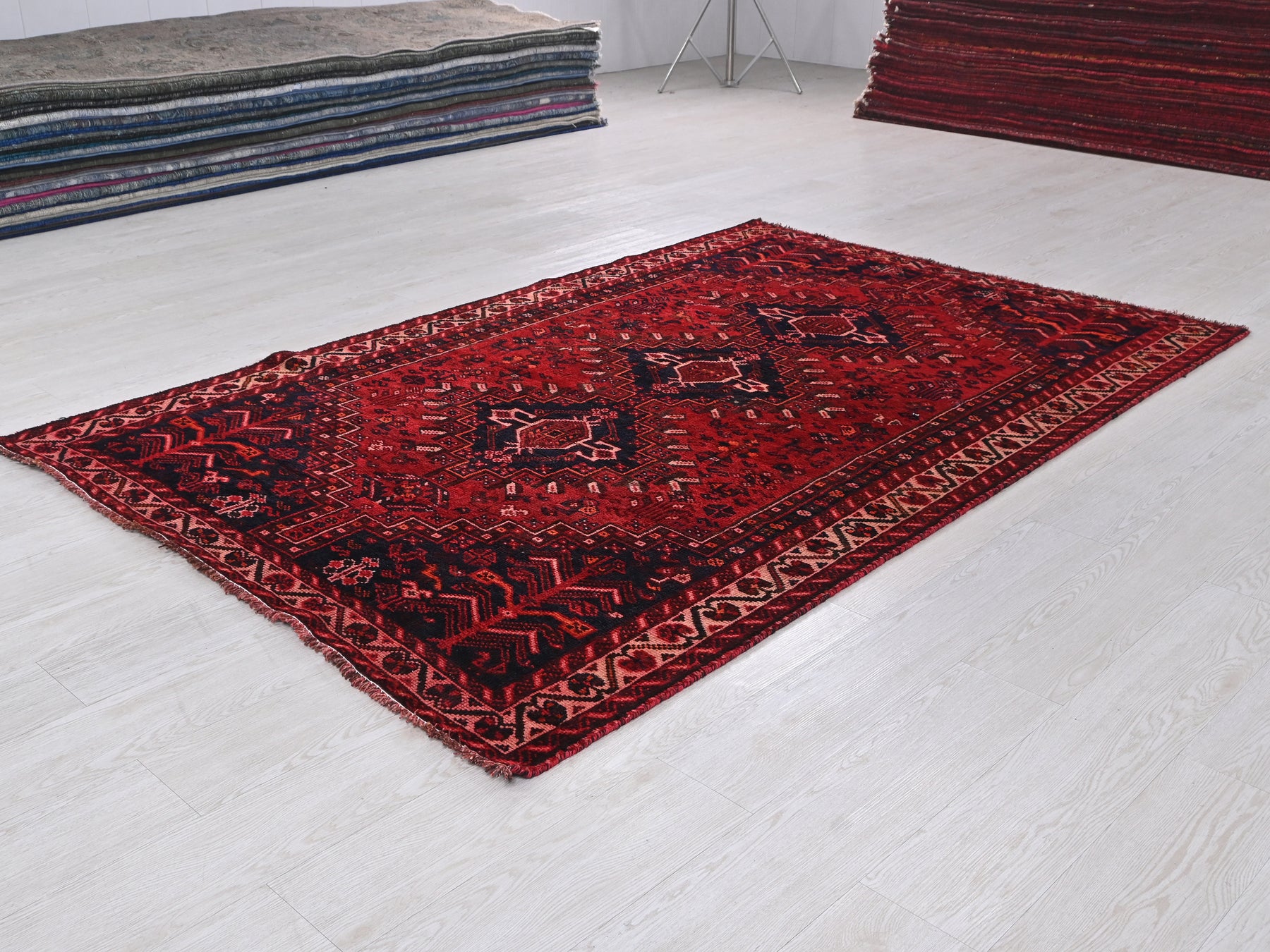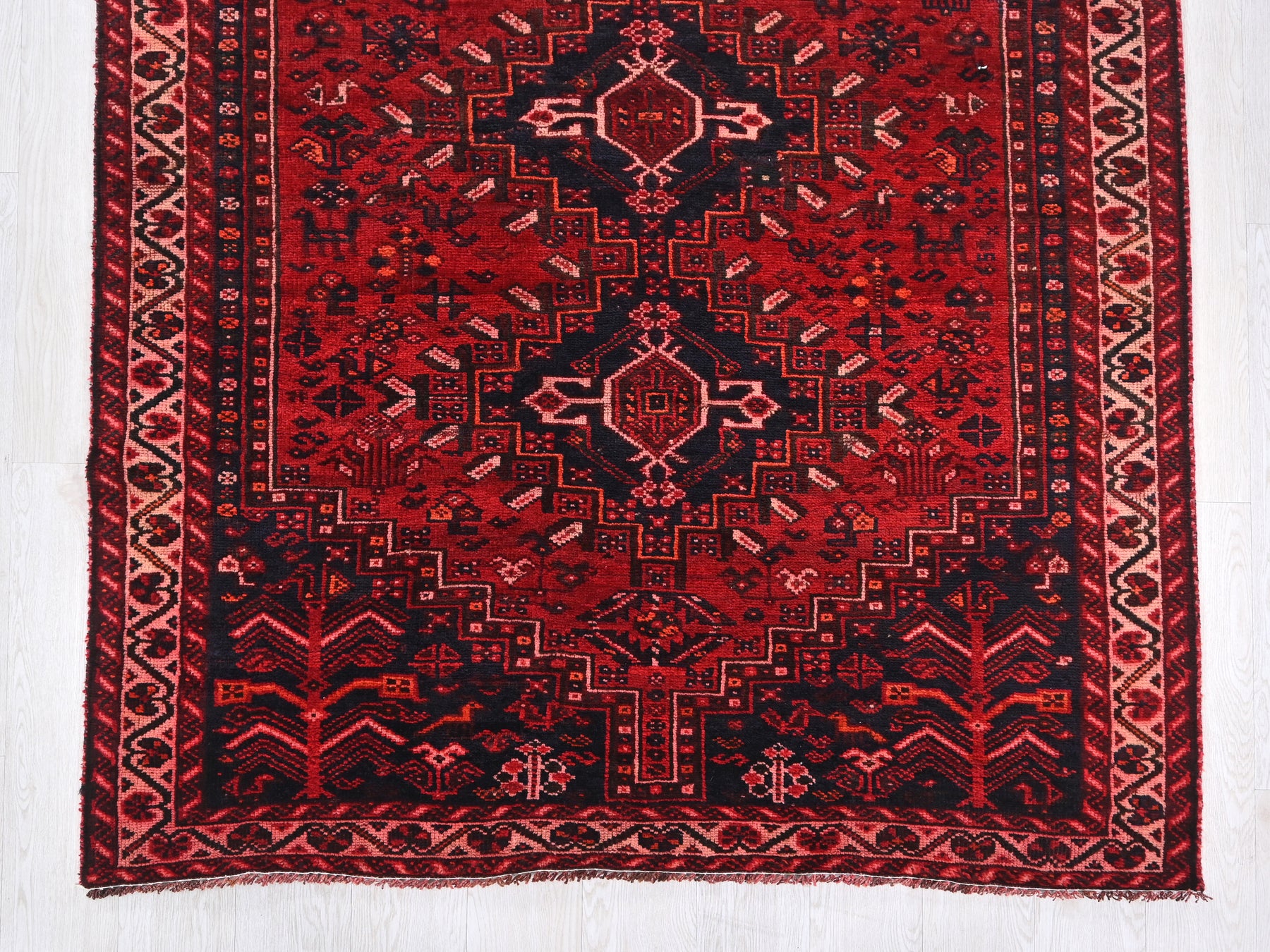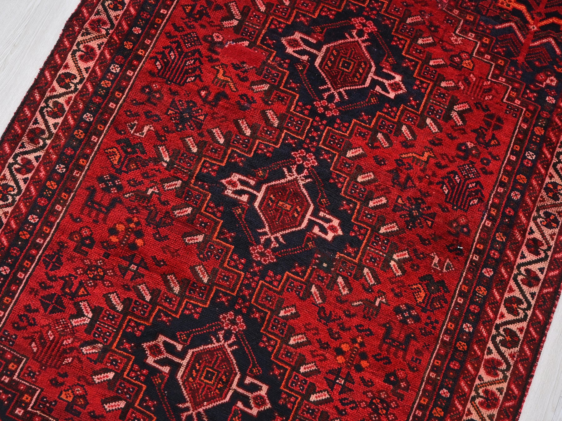This is a hand-knotted, one-of-a-kind vintage rug. Due to the nature of this piece, there may be slight imperfections in its wear, shape, dimensions, and color. All of our rugs are professionally cleaned and repaired.