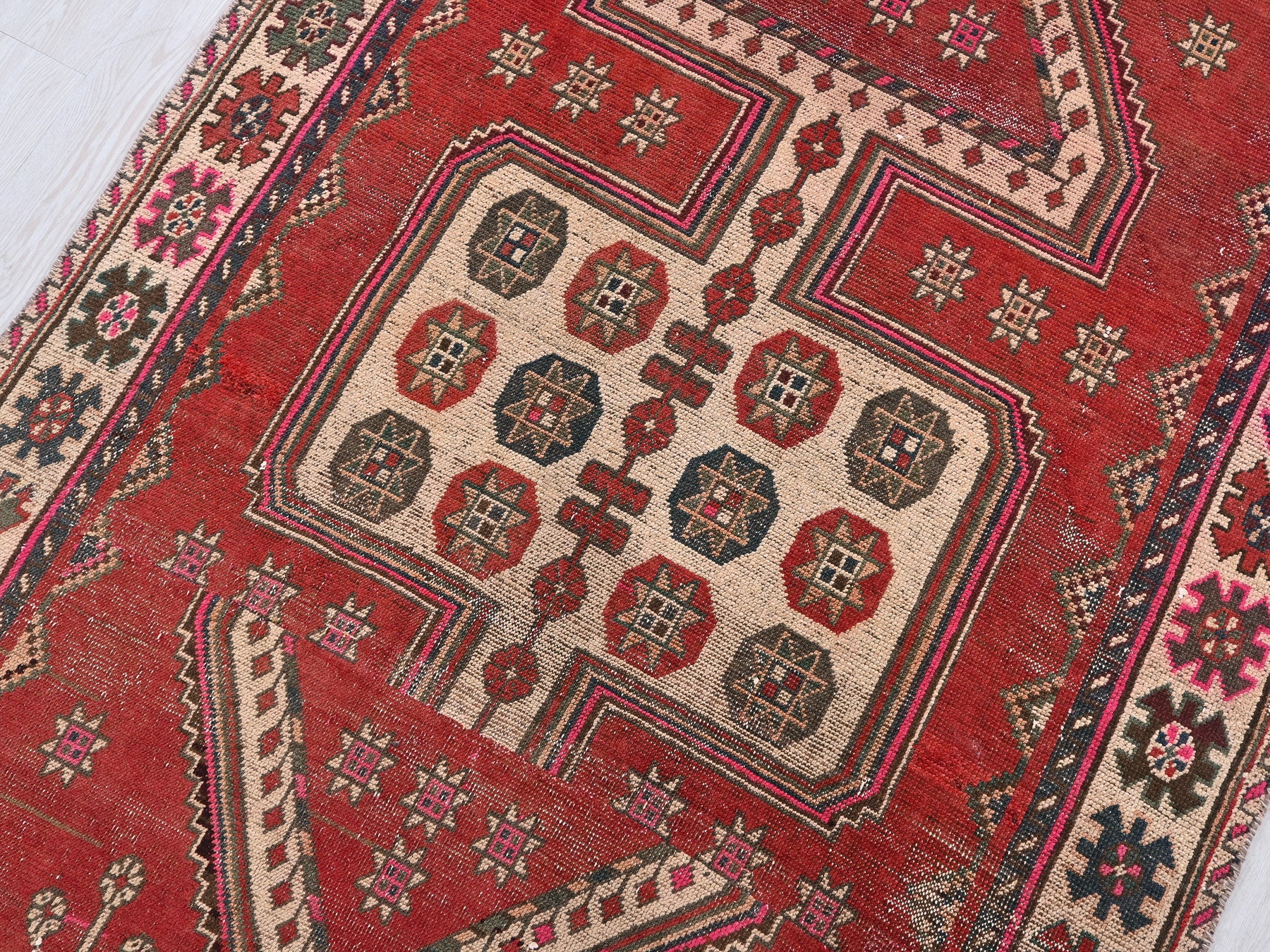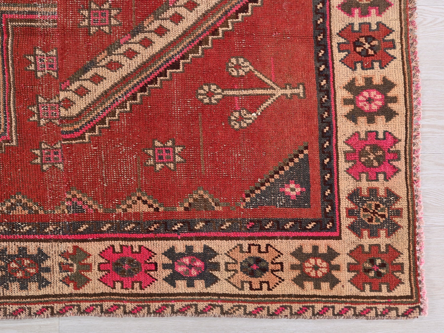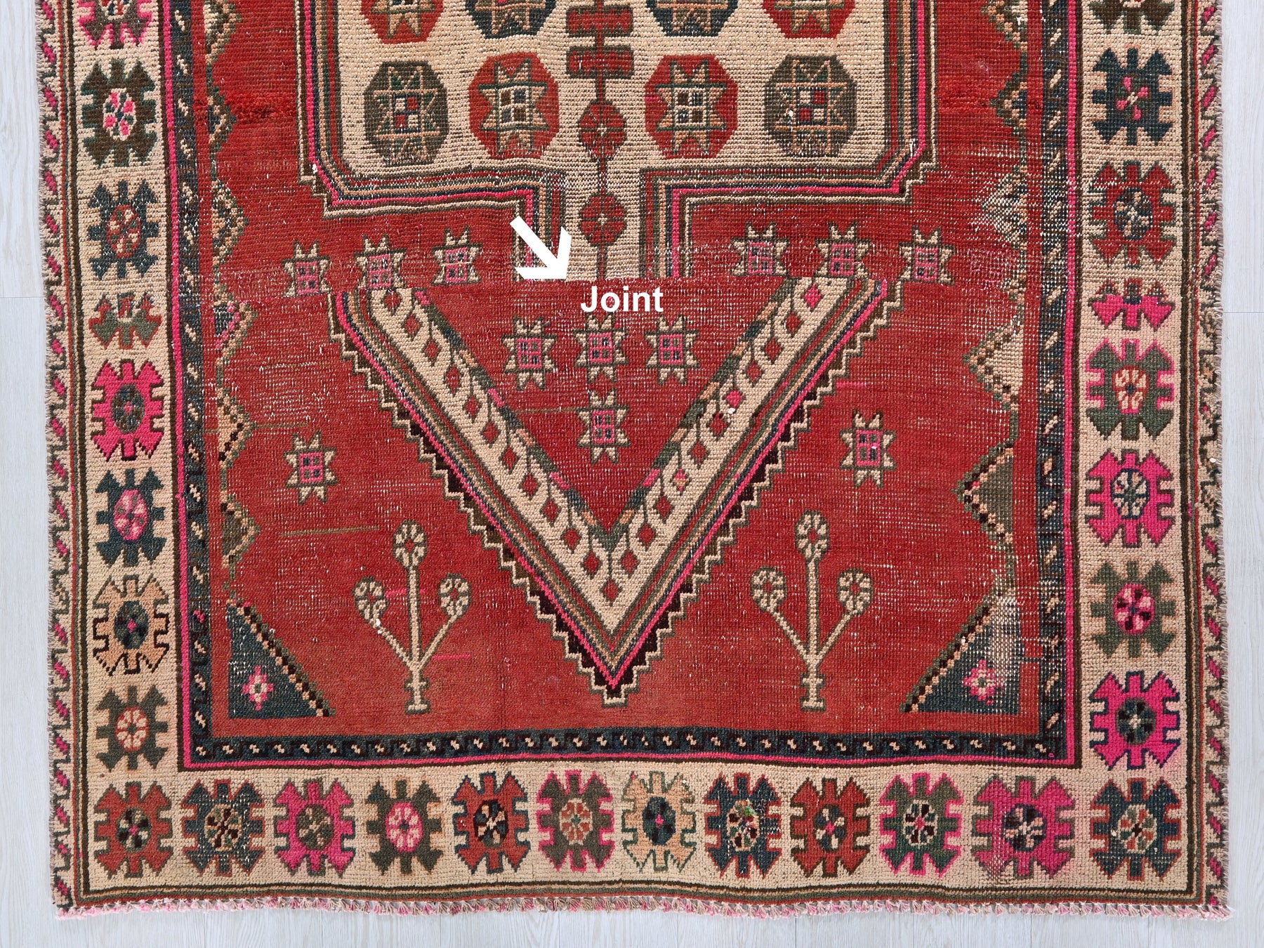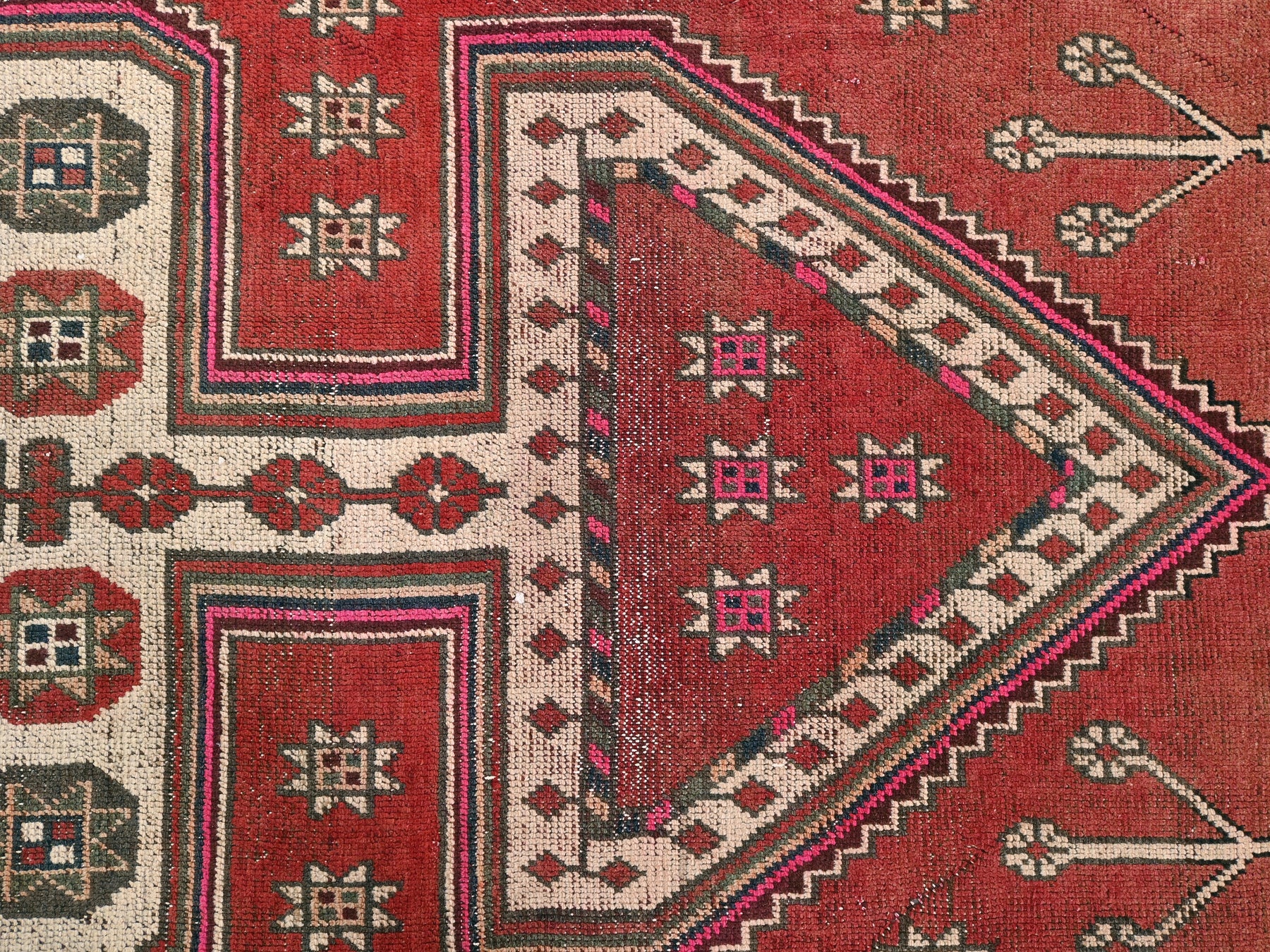 This is a hand-knotted, one-of-a-kind vintage rug. Due to the nature of this piece, there may be slight imperfections in its wear, shape, dimensions, and color. All of our rugs are professionally cleaned and repaired.