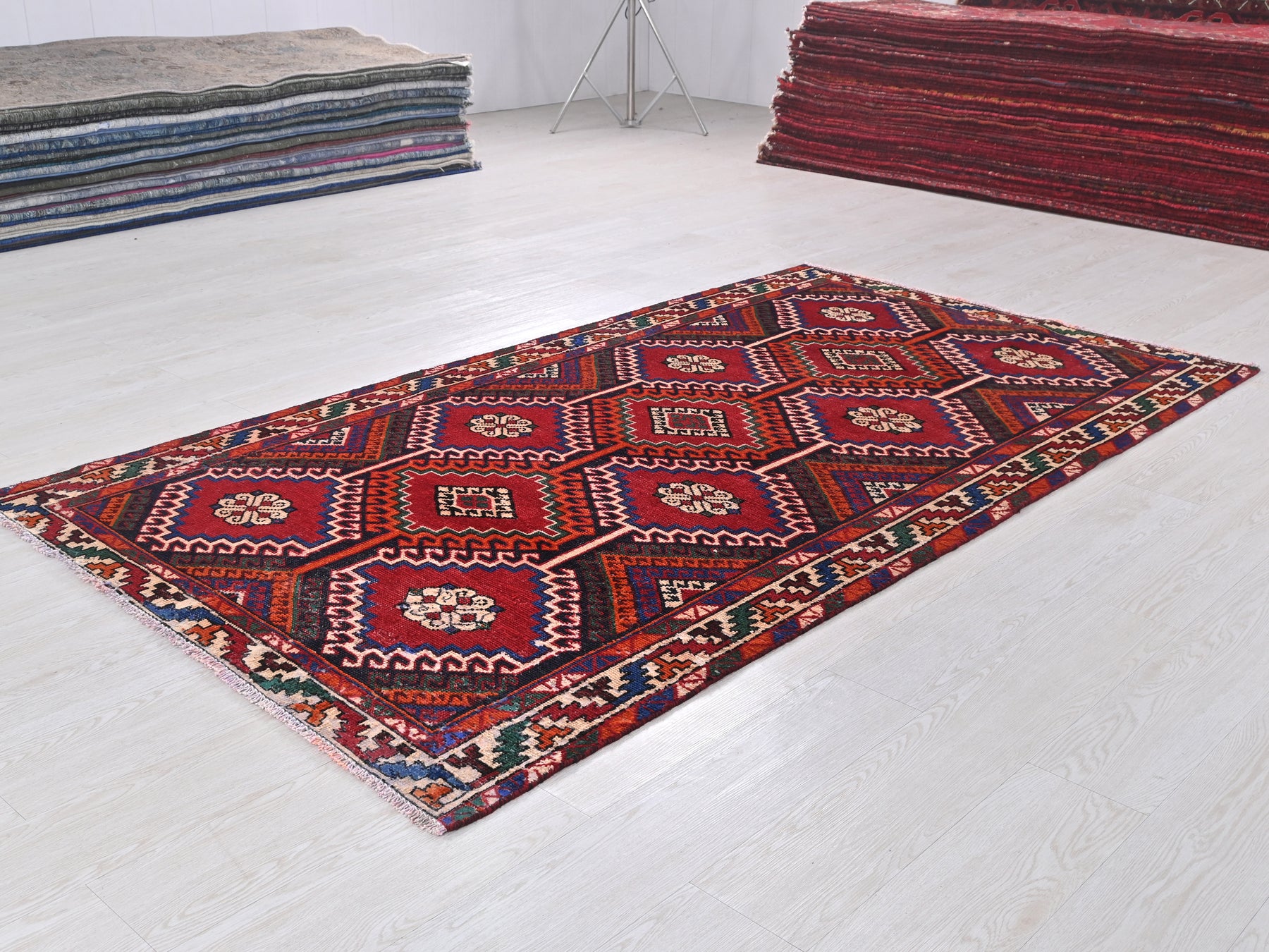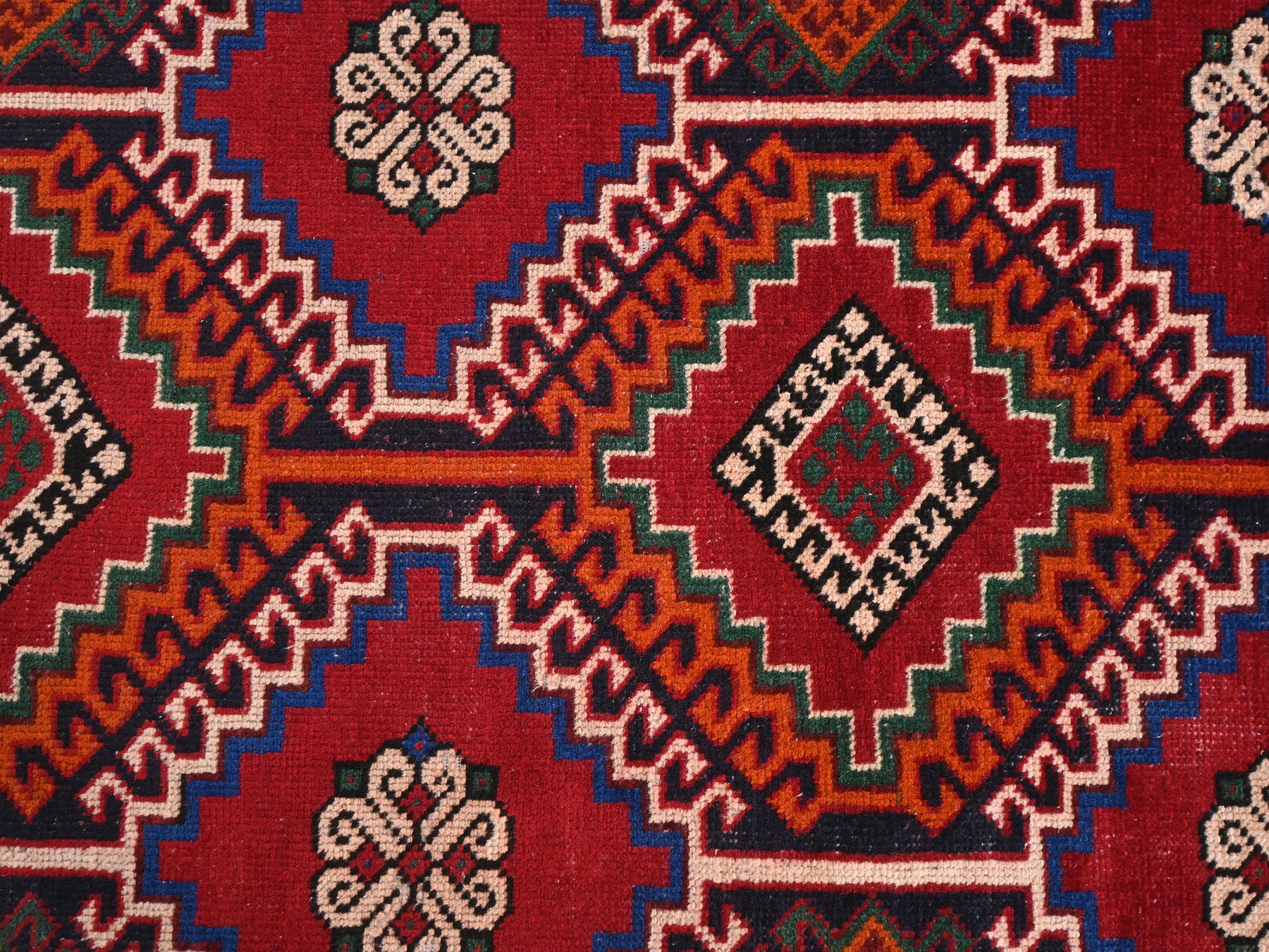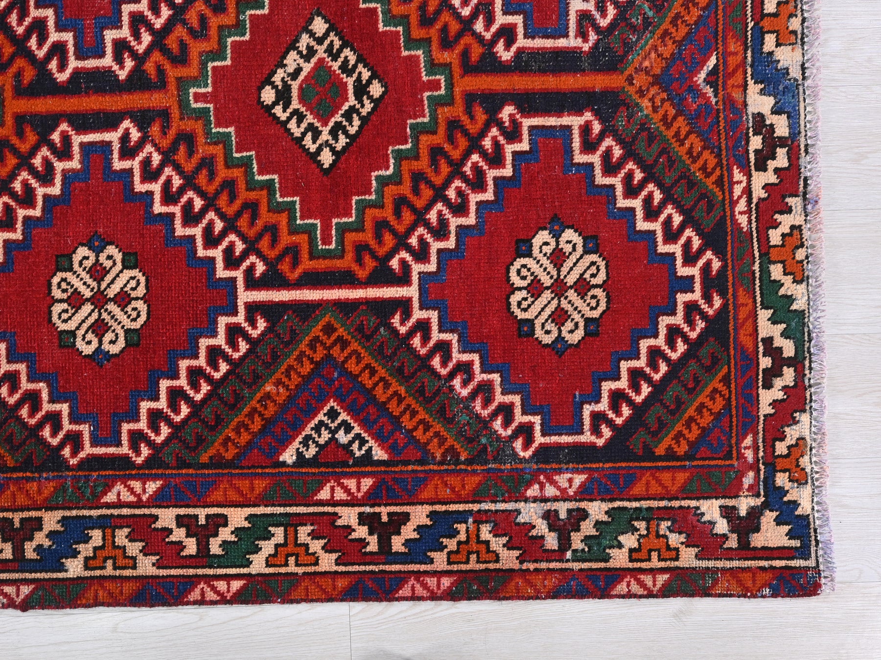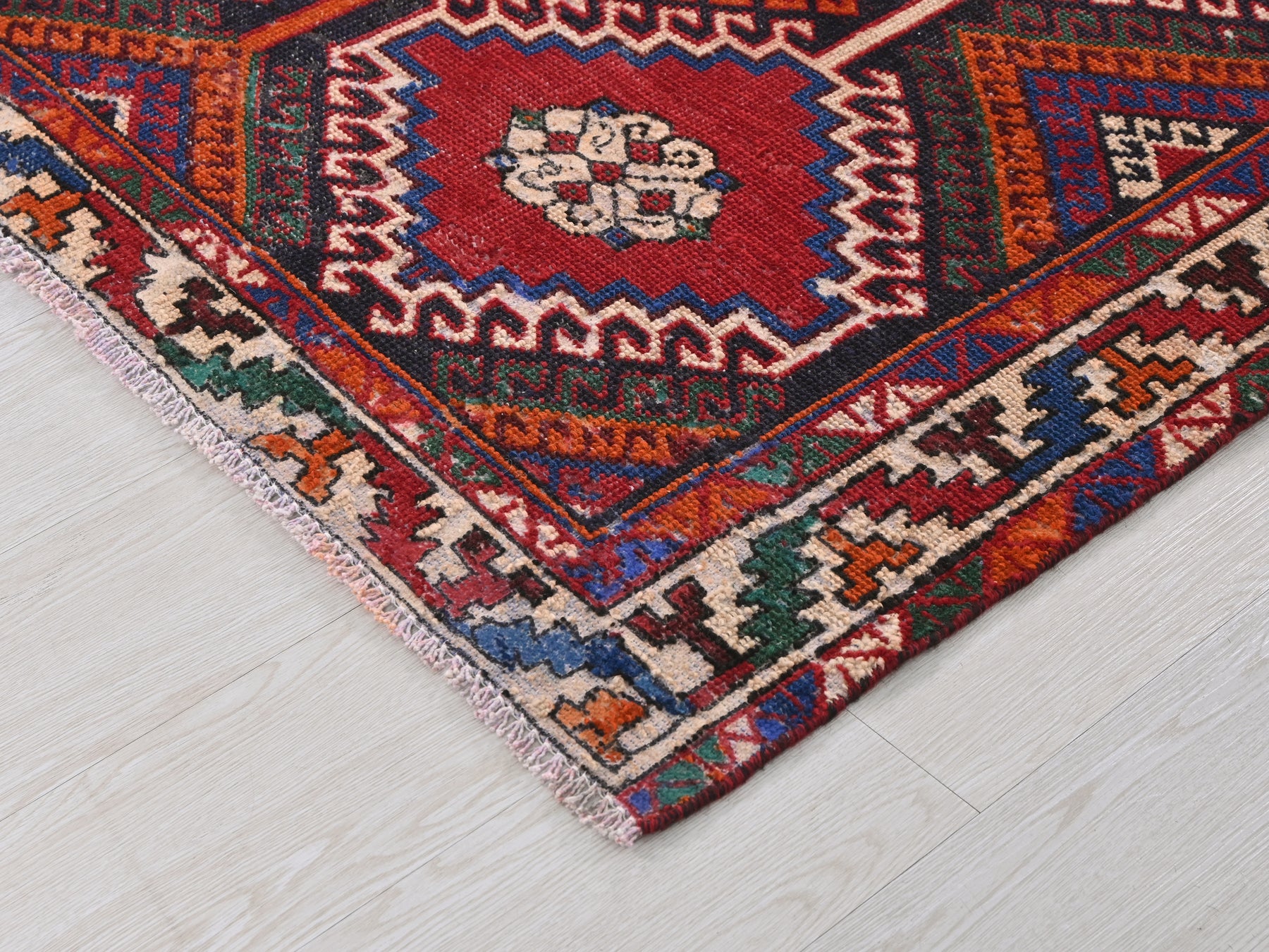 This is a hand-knotted, one-of-a-kind vintage rug. Due to the nature of this piece, there may be slight imperfections in its wear, shape, dimensions, and color. All of our rugs are professionally cleaned and repaired.