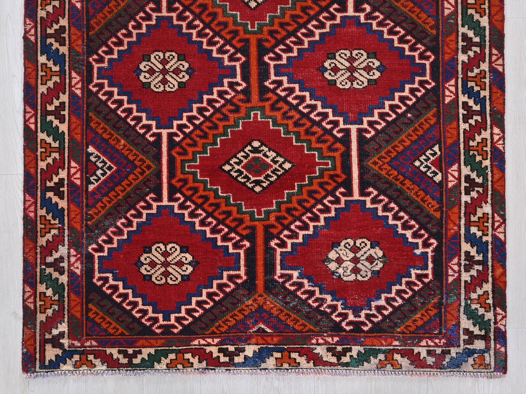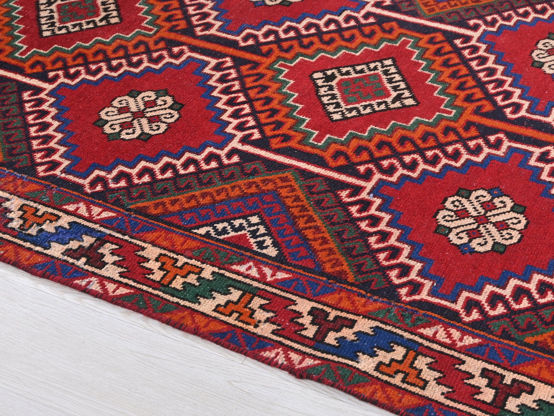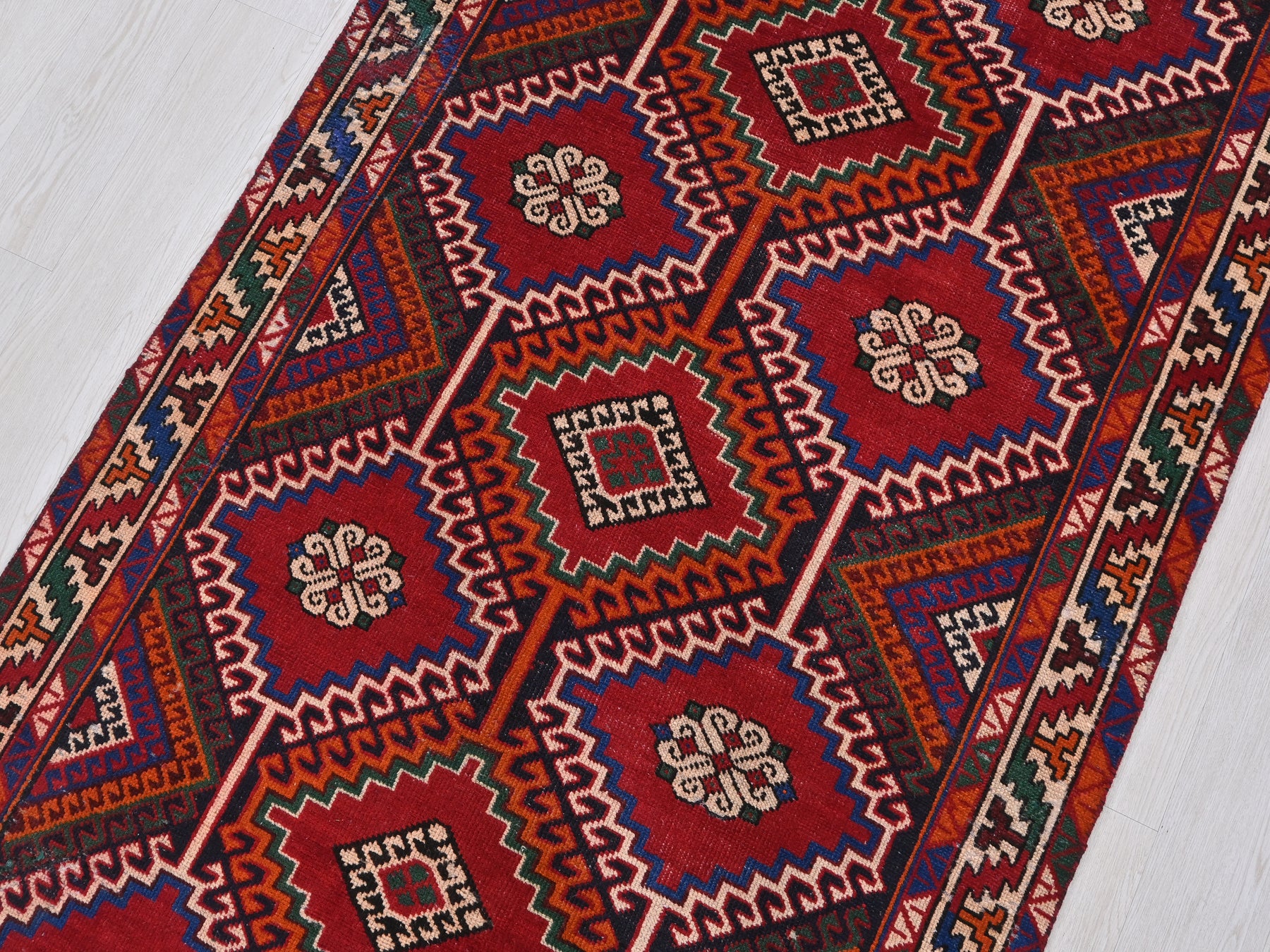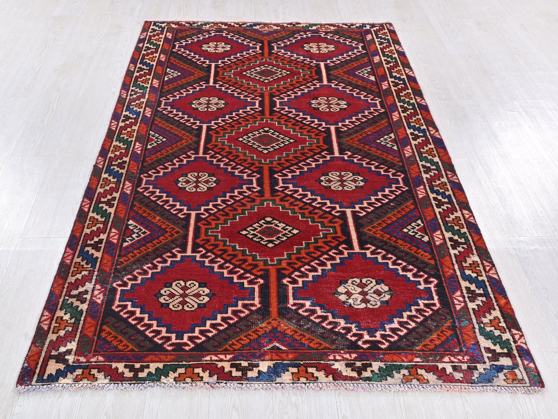 This is a hand-knotted, one-of-a-kind vintage rug. Due to the nature of this piece, there may be slight imperfections in its wear, shape, dimensions, and color. All of our rugs are professionally cleaned and repaired.