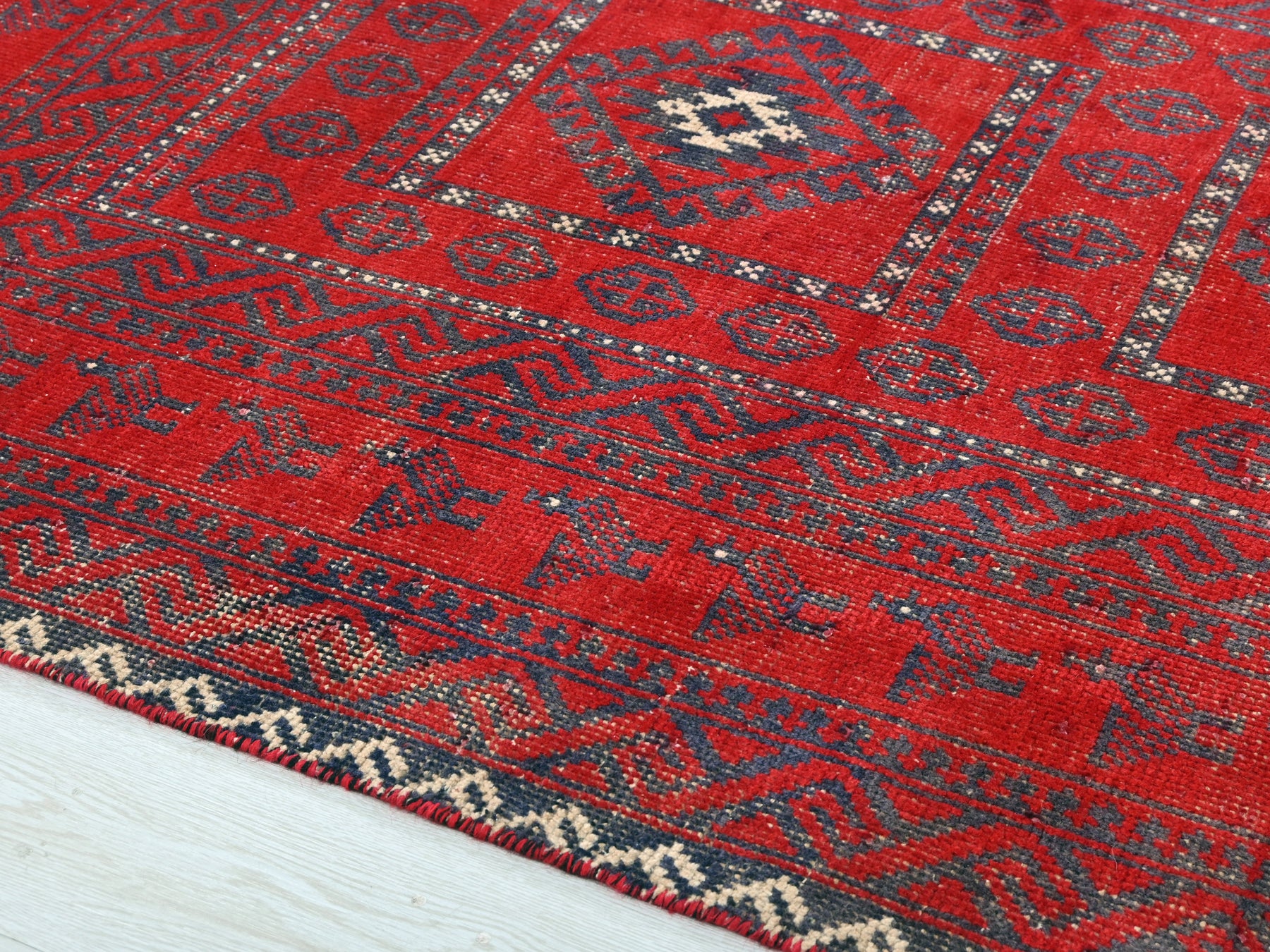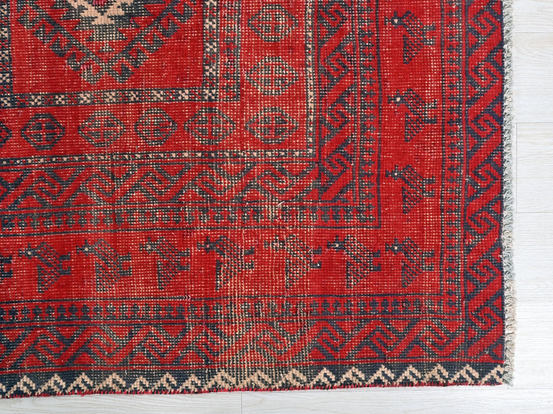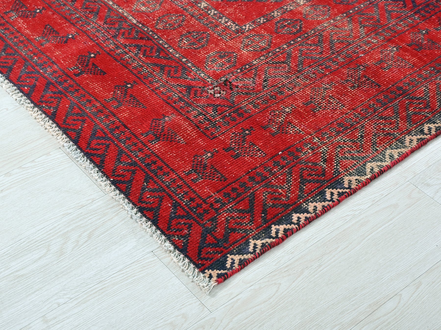 This is a hand-knotted, one-of-a-kind vintage rug. Due to the nature of this piece, there may be slight imperfections in its wear, shape, dimensions, and color. All of our rugs are professionally cleaned and repaired.