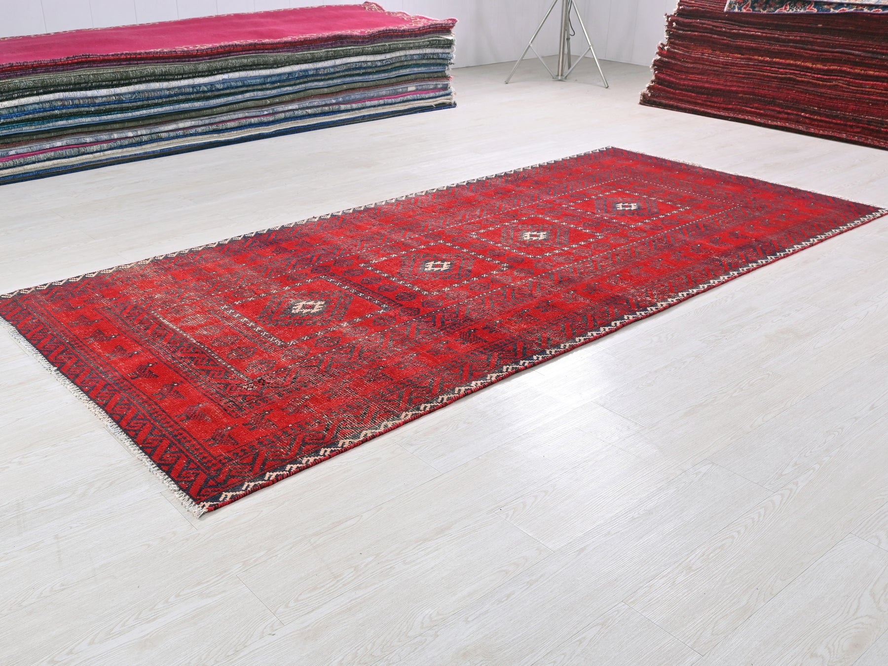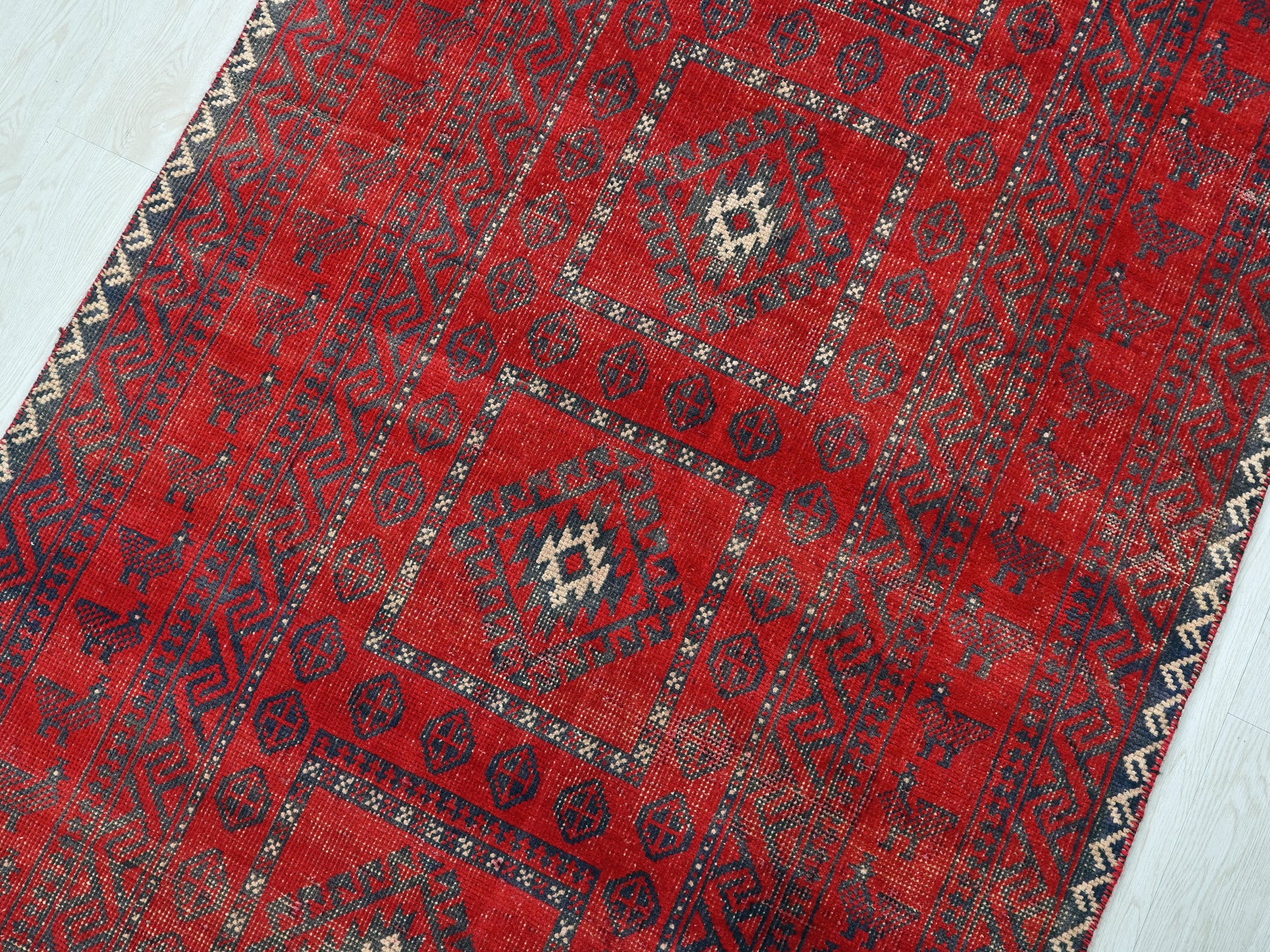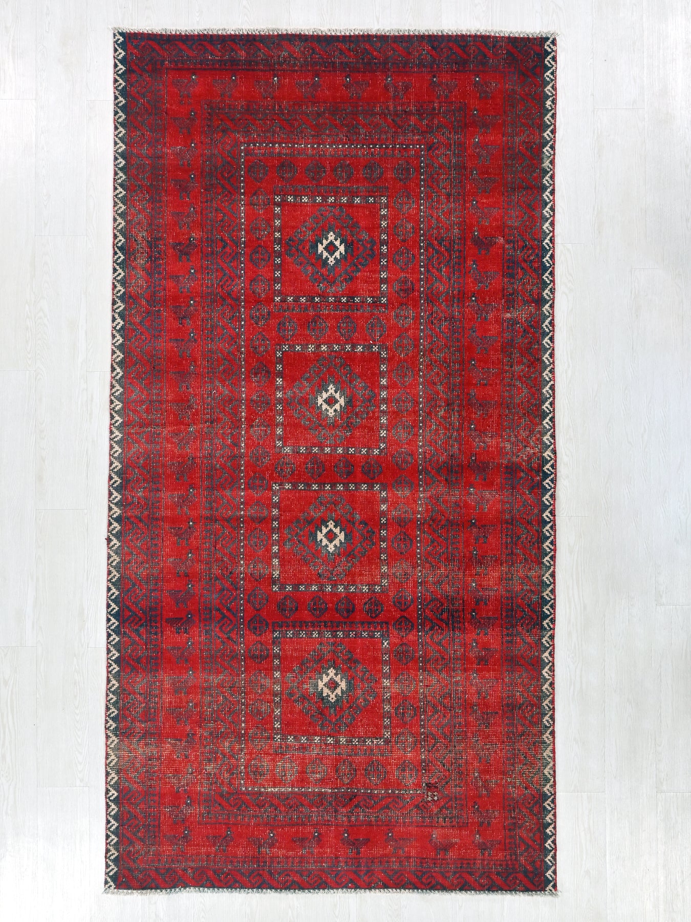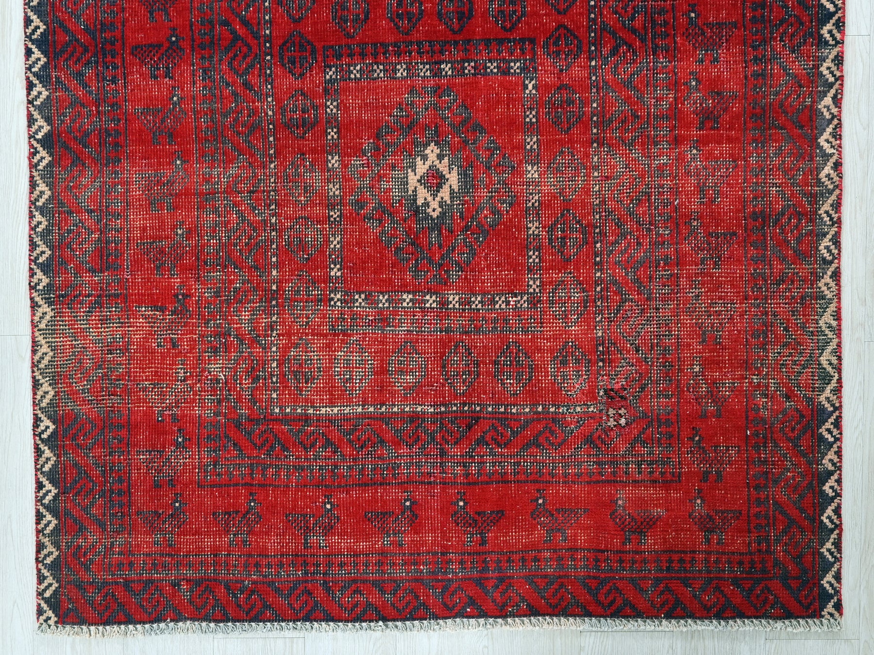 This is a hand-knotted, one-of-a-kind vintage rug. Due to the nature of this piece, there may be slight imperfections in its wear, shape, dimensions, and color. All of our rugs are professionally cleaned and repaired.