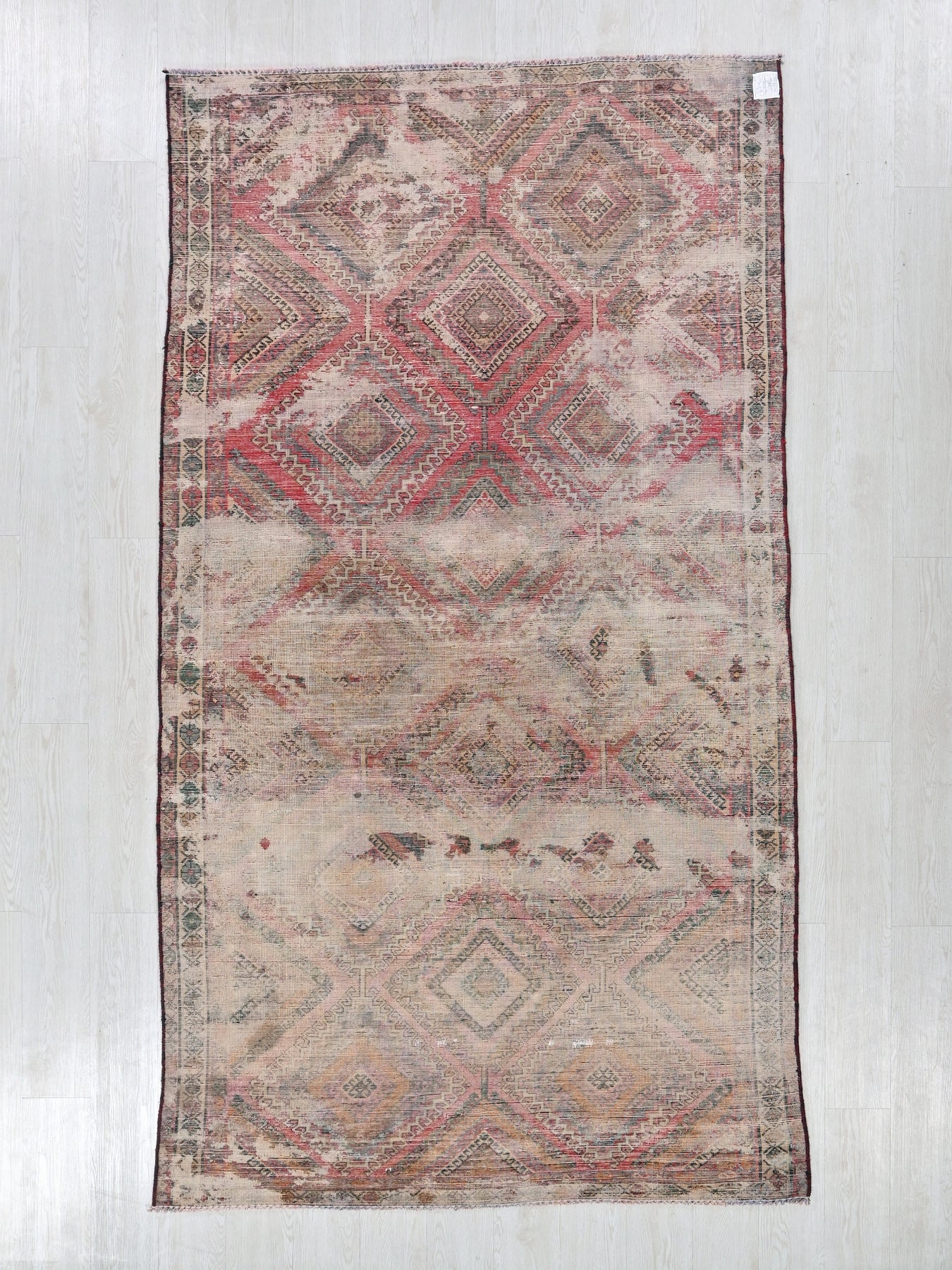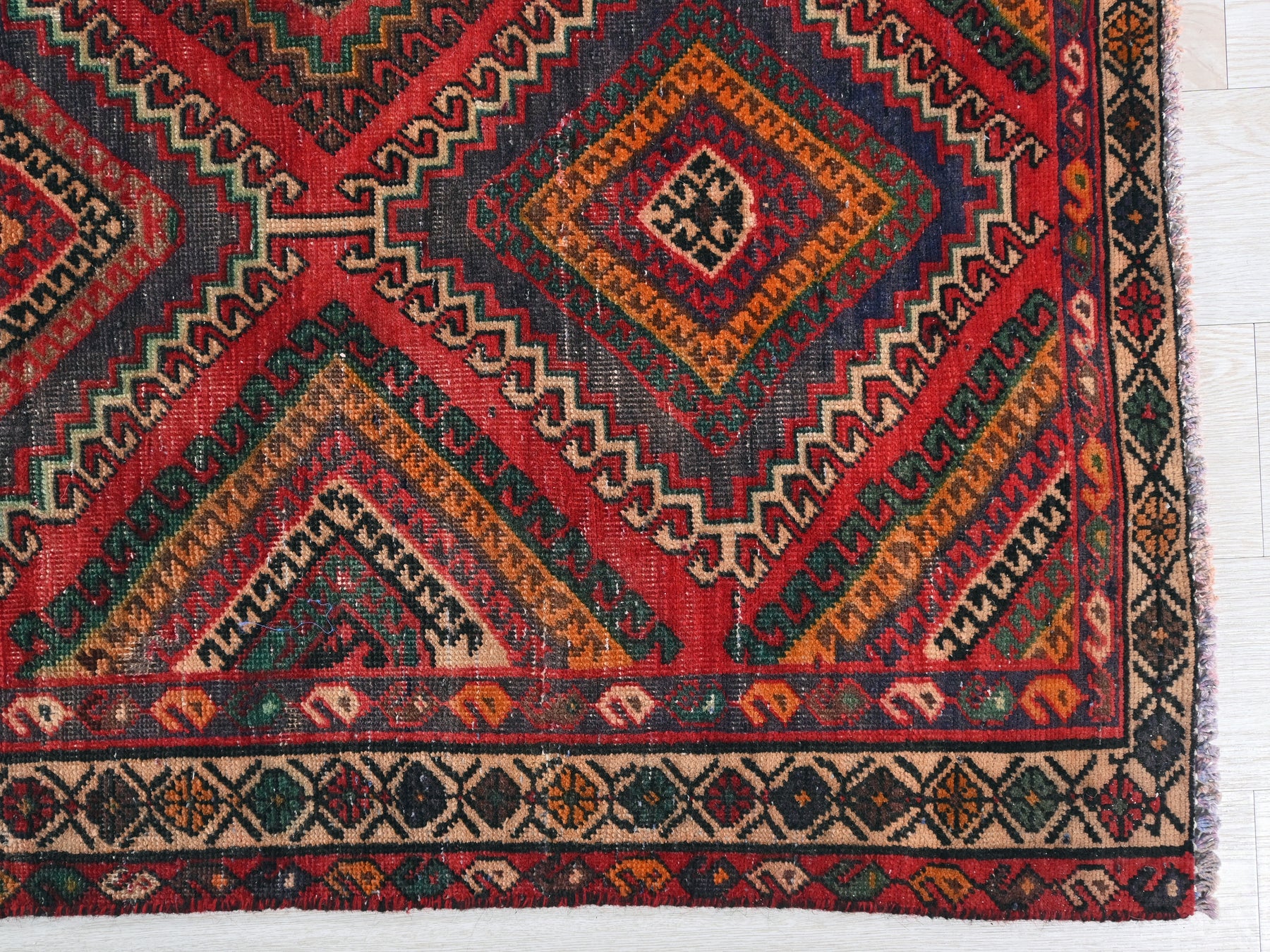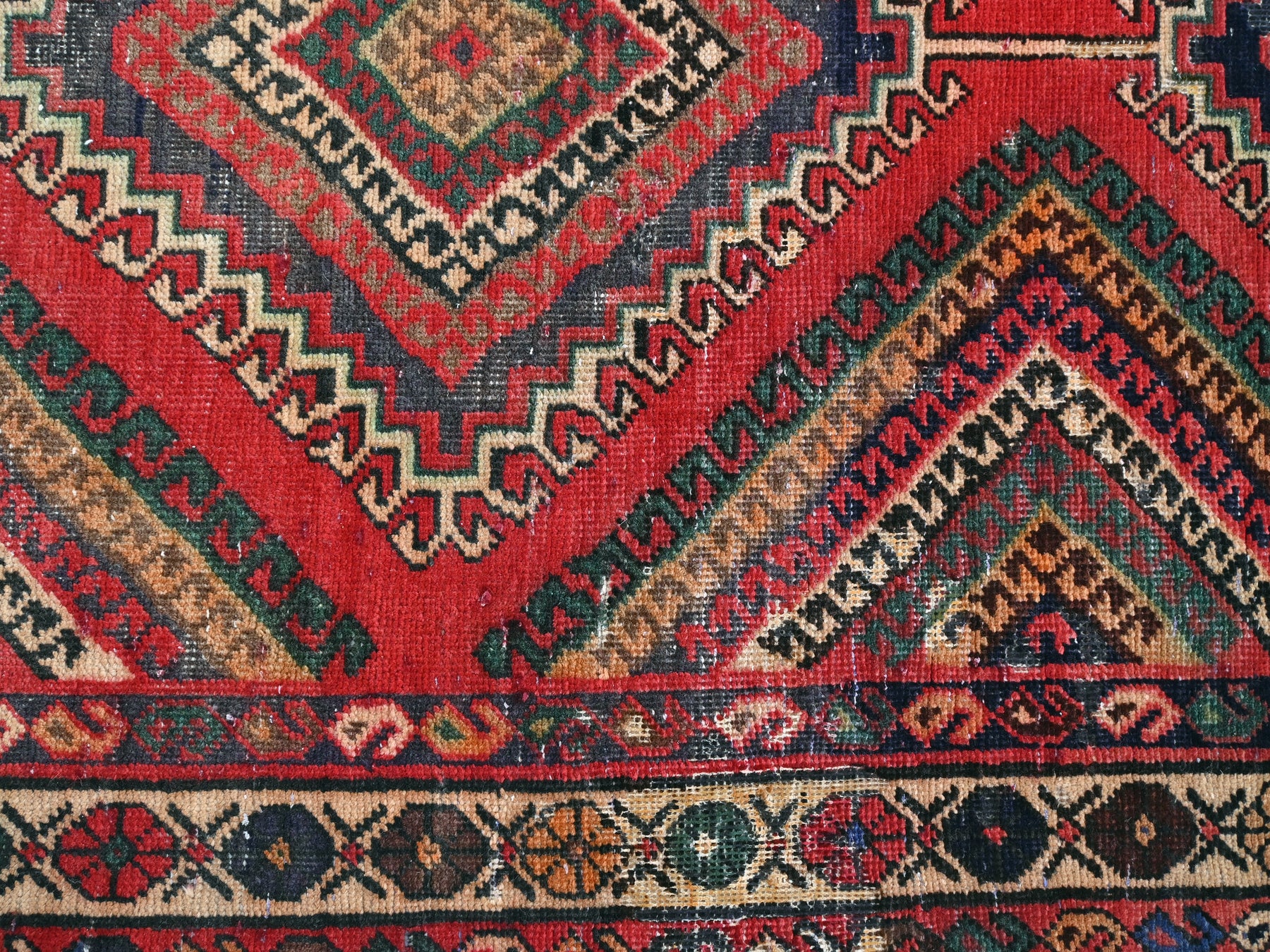 This is a hand-knotted, one-of-a-kind vintage rug. Due to the nature of this piece, there may be slight imperfections in its wear, shape, dimensions, and color. All of our rugs are professionally cleaned and repaired.