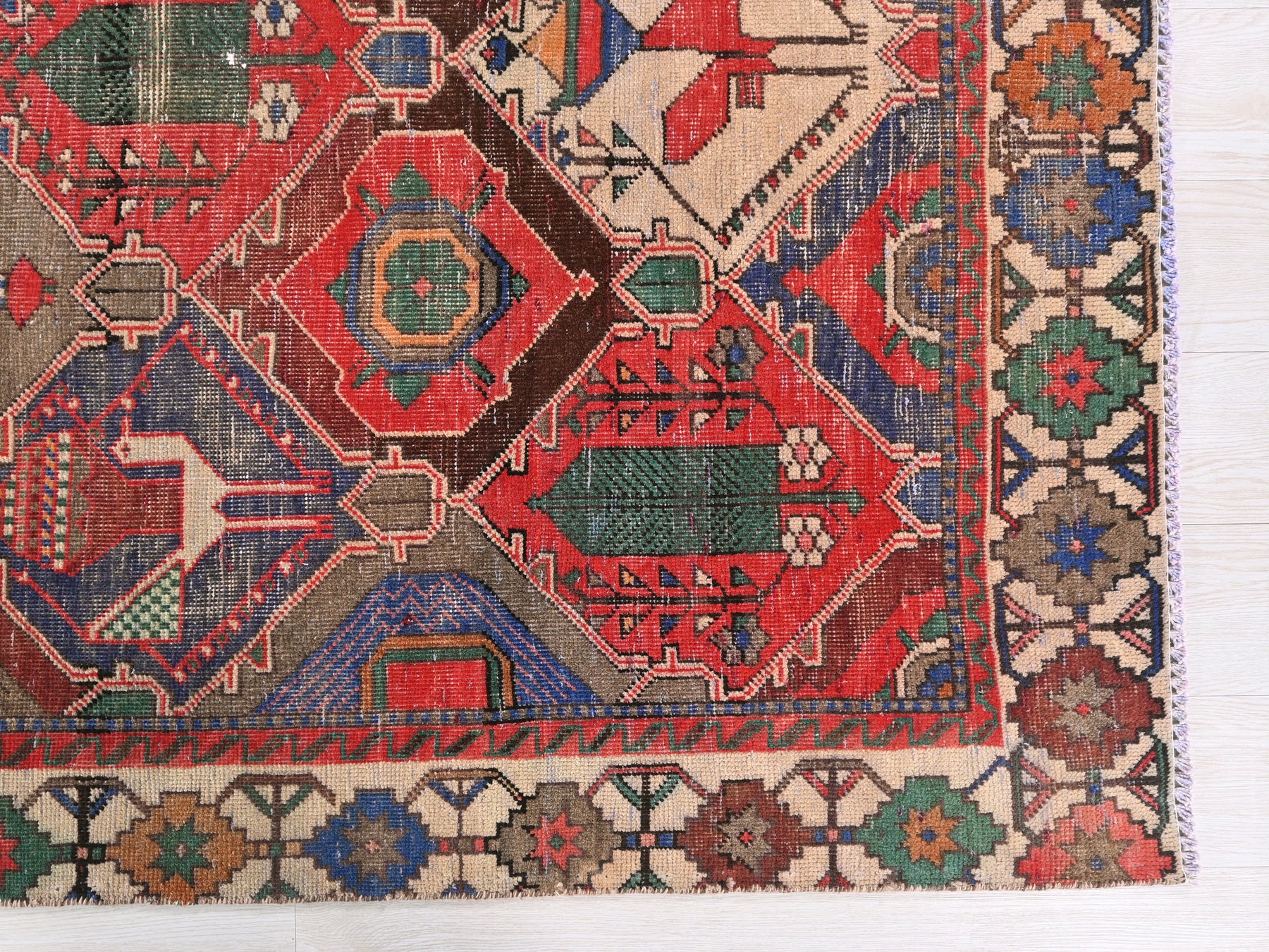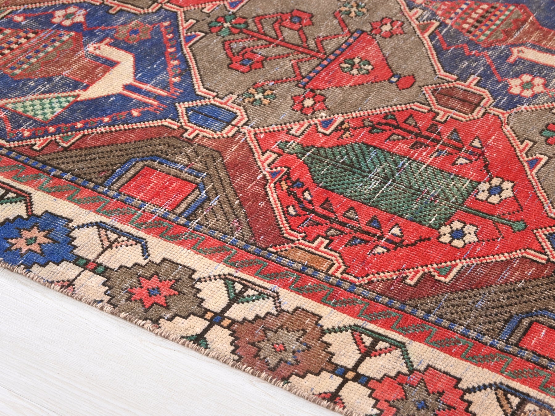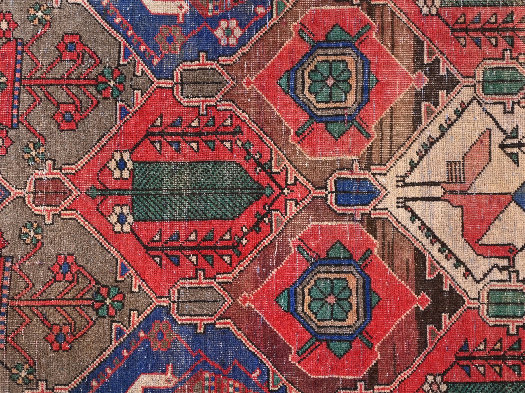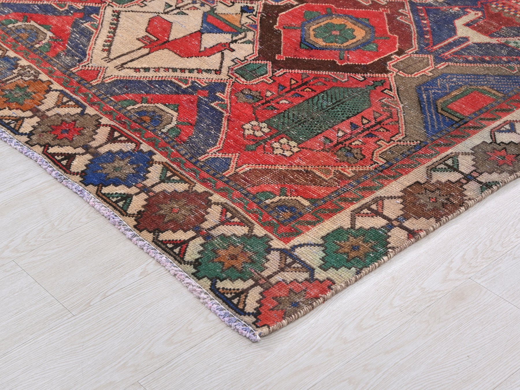 This is a hand-knotted, one-of-a-kind vintage rug. Due to the nature of this piece, there may be slight imperfections in its wear, shape, dimensions, and color. All of our rugs are professionally cleaned and repaired.