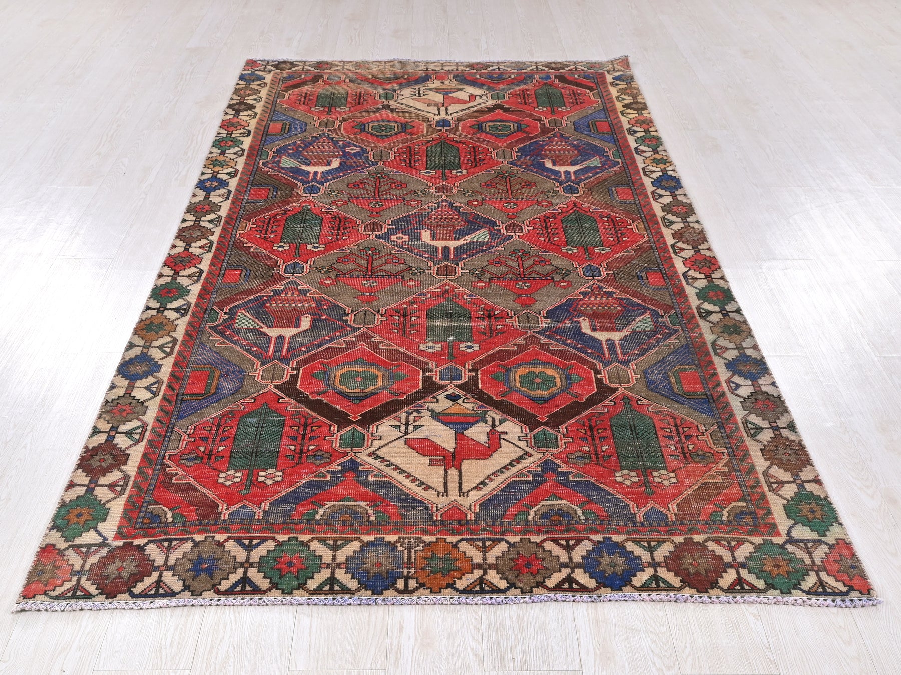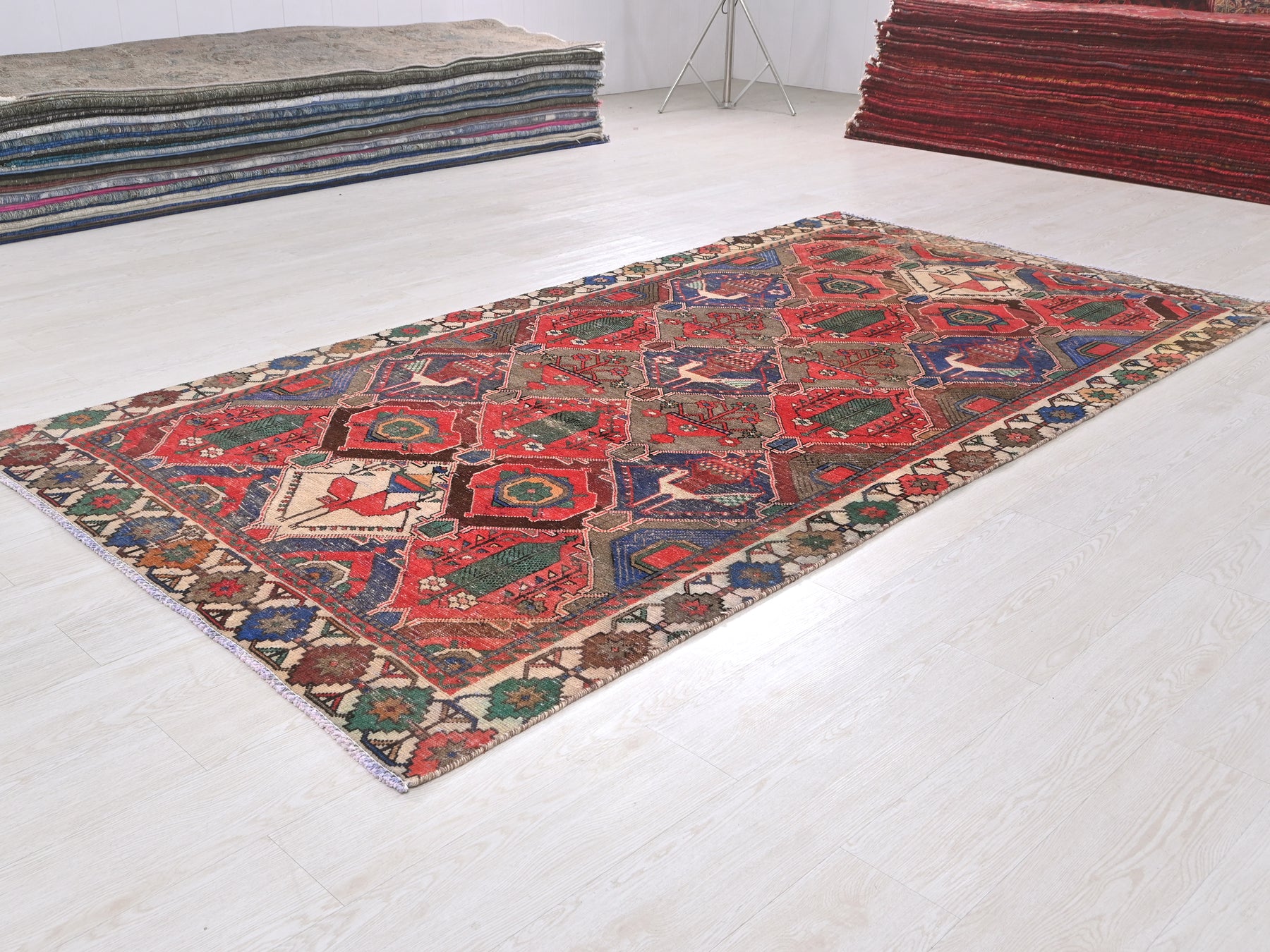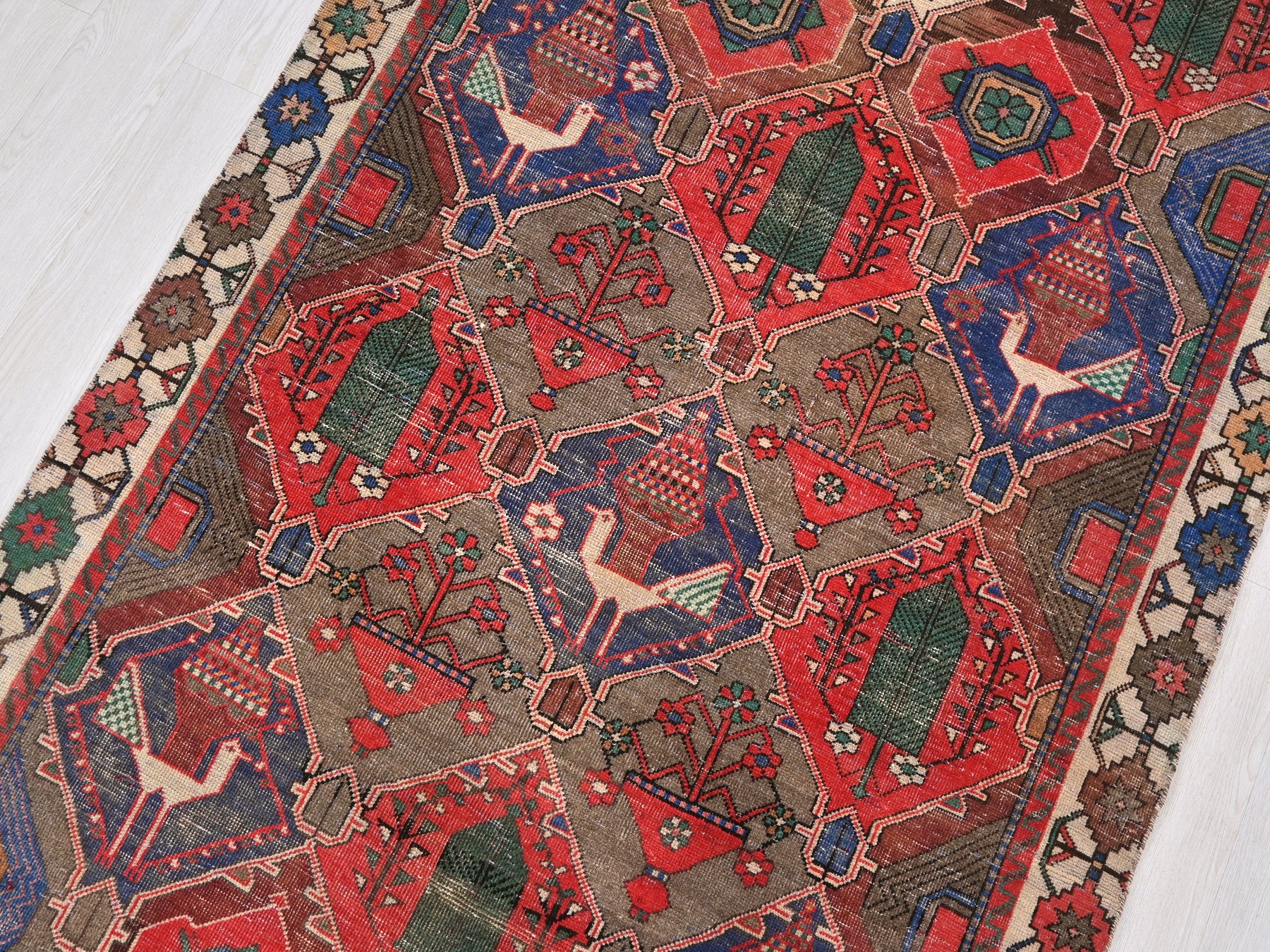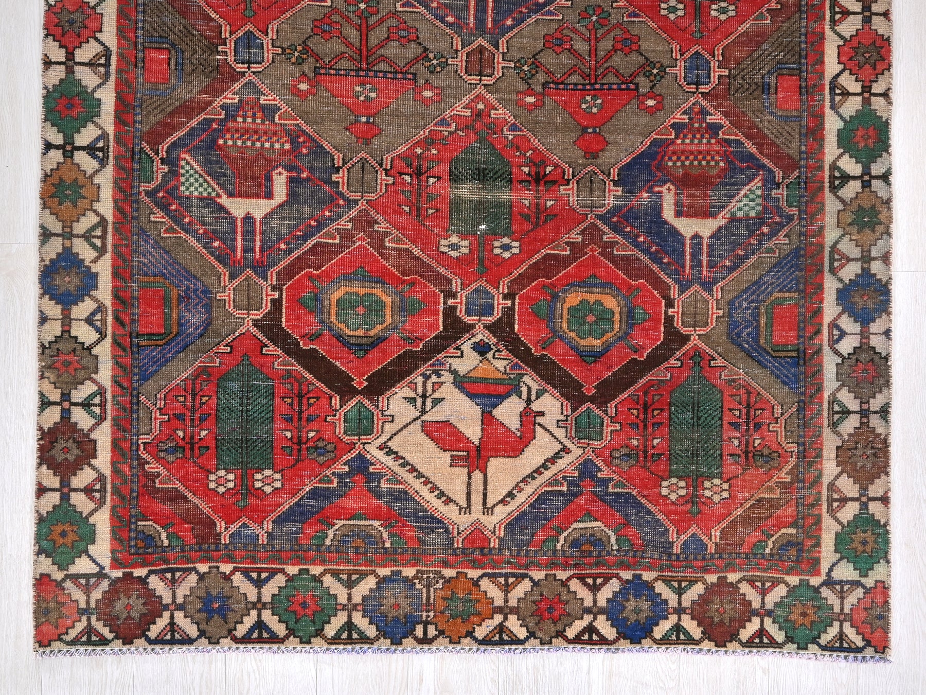 This is a hand-knotted, one-of-a-kind vintage rug. Due to the nature of this piece, there may be slight imperfections in its wear, shape, dimensions, and color. All of our rugs are professionally cleaned and repaired.