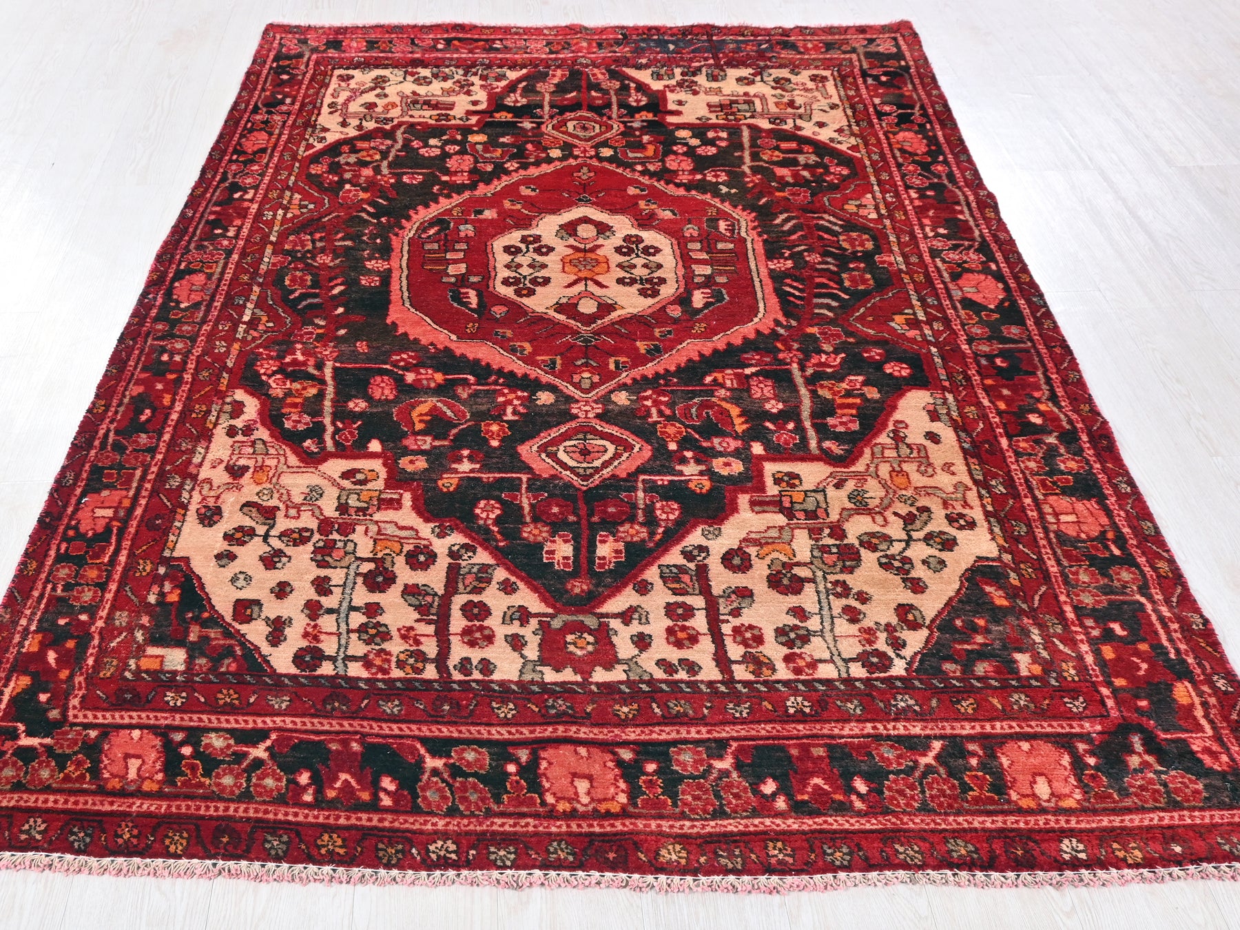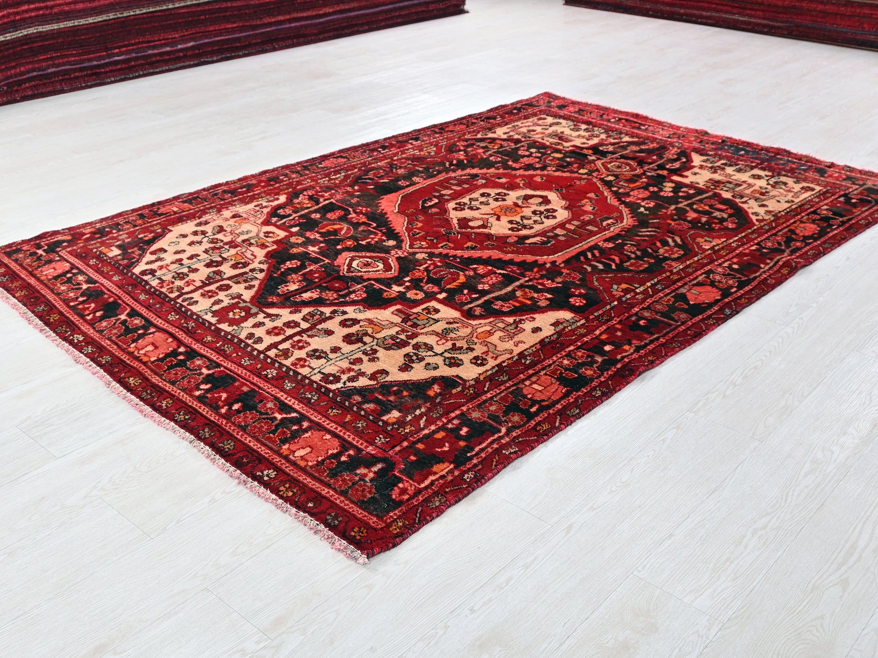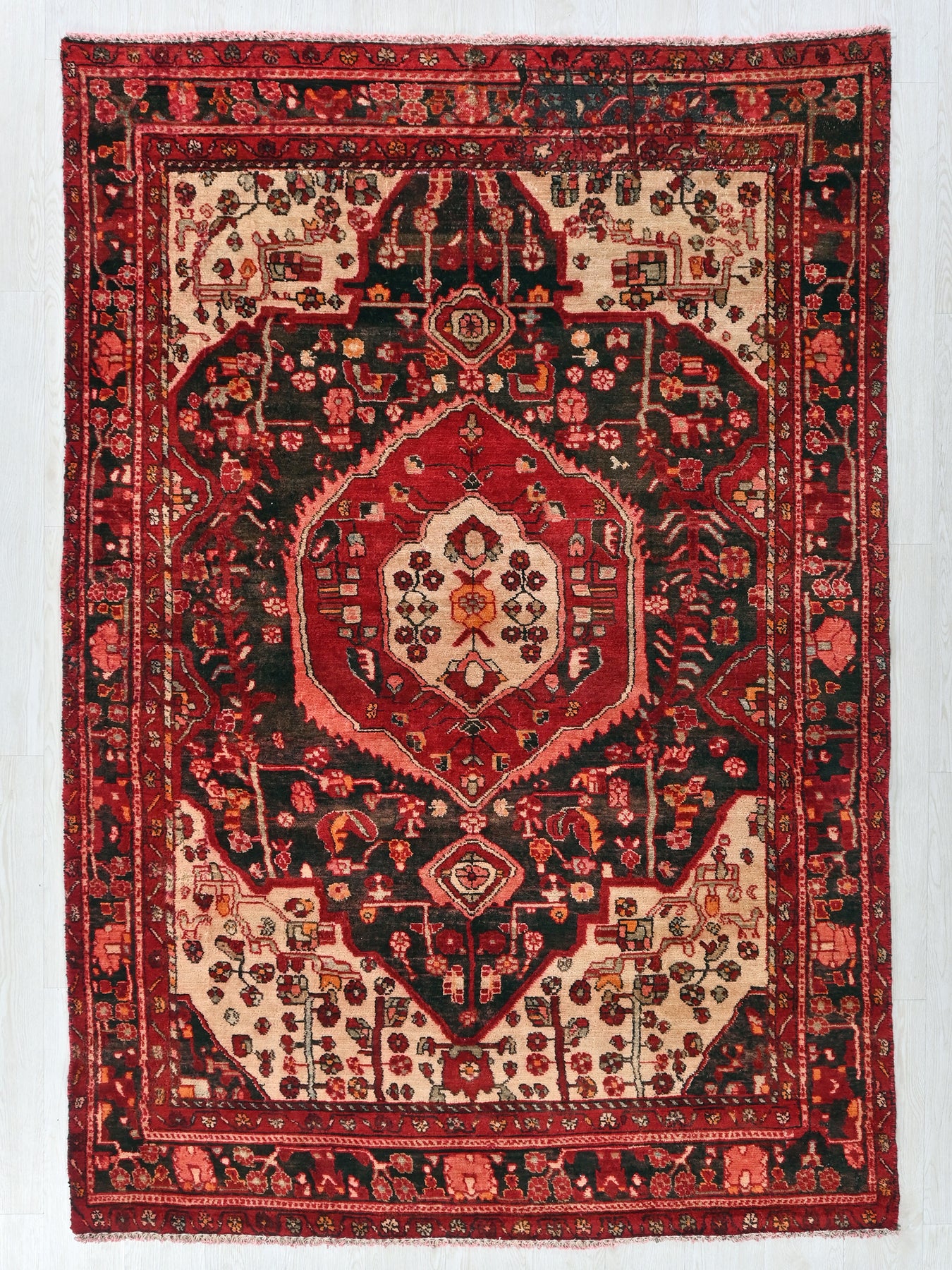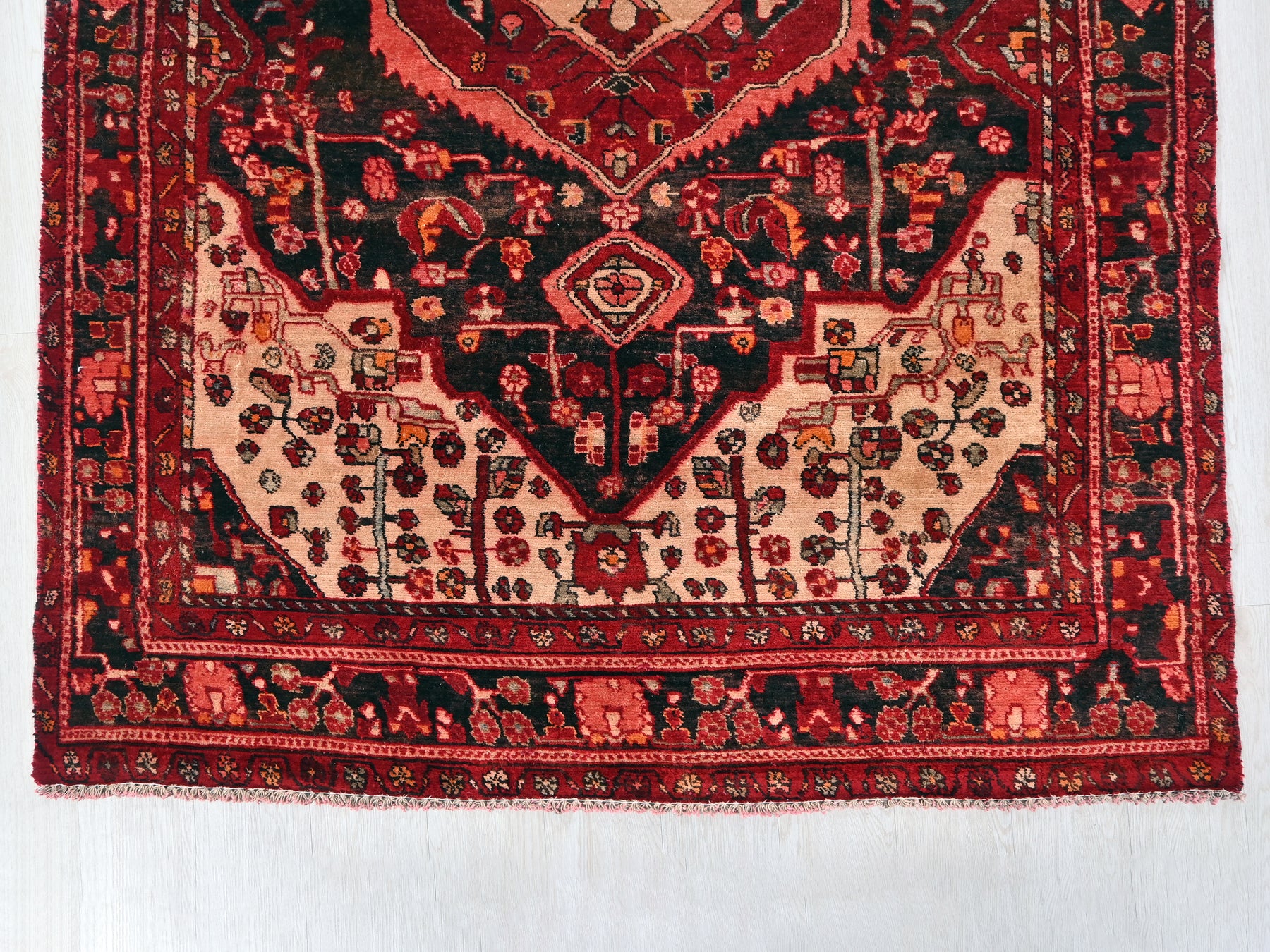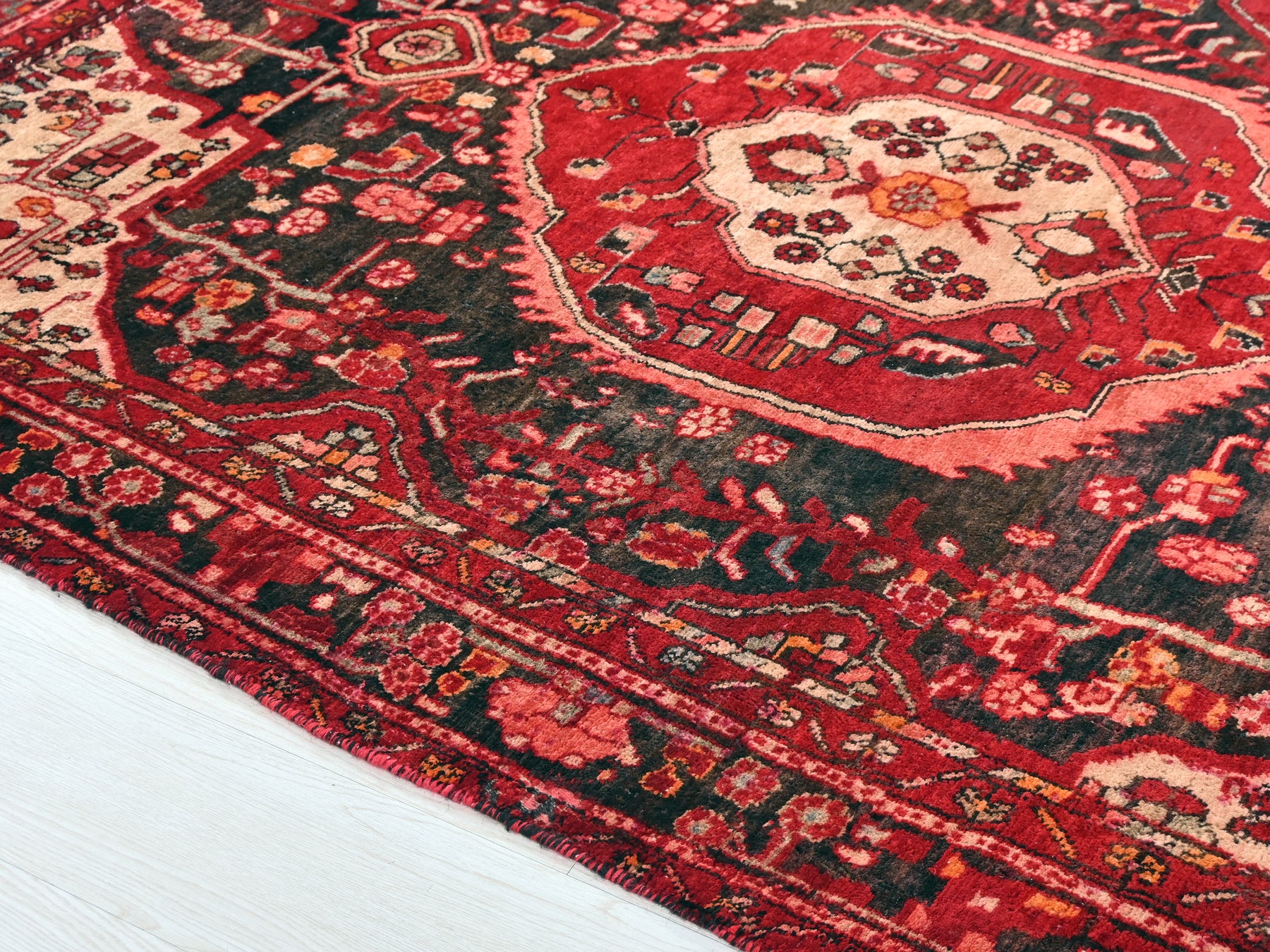 This is a hand-knotted, one-of-a-kind vintage rug. Due to the nature of this piece, there may be slight imperfections in its wear, shape, dimensions, and color. All of our rugs are professionally cleaned and repaired.
