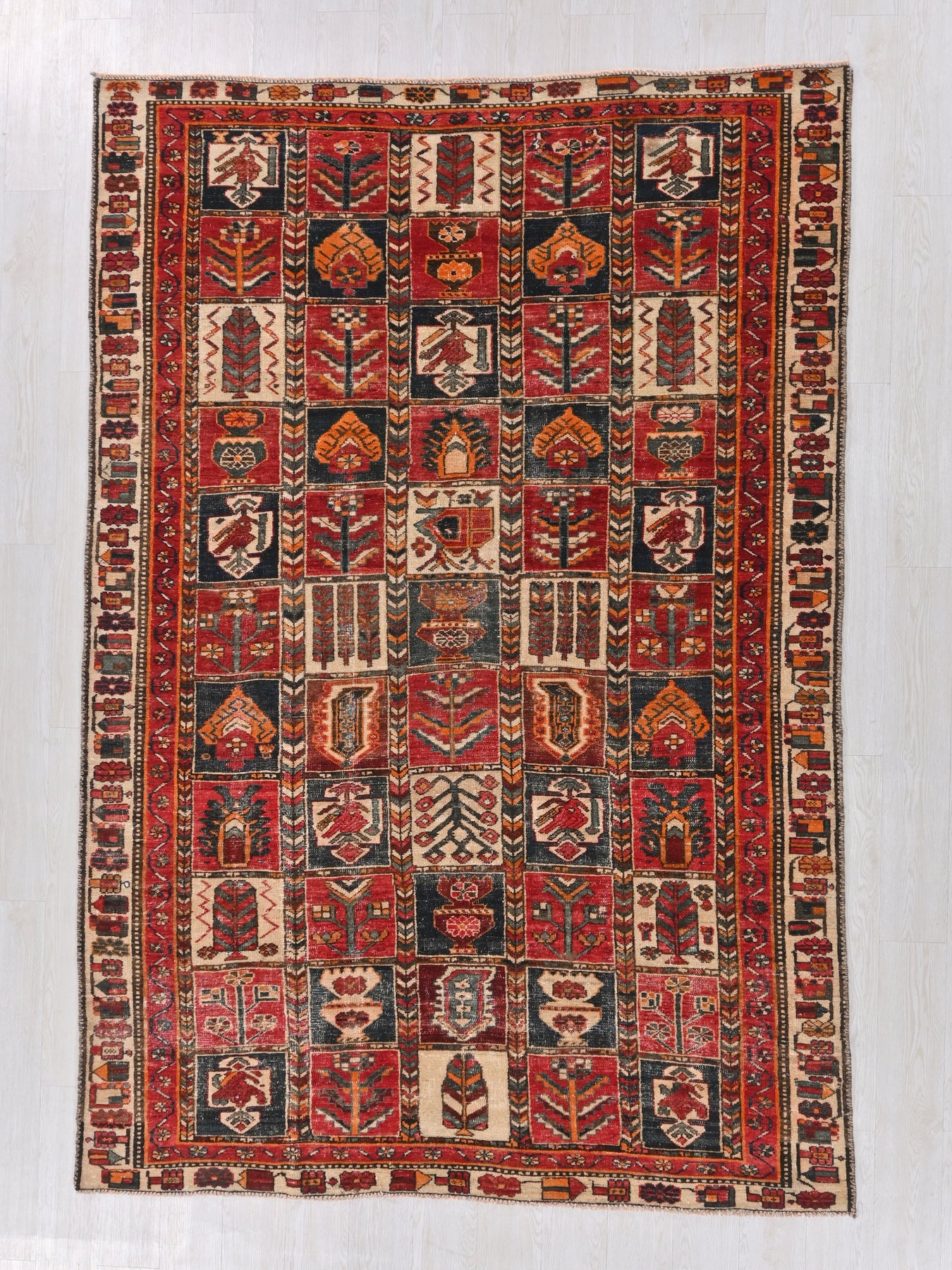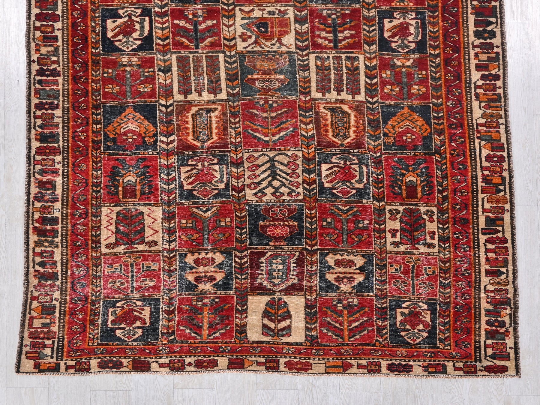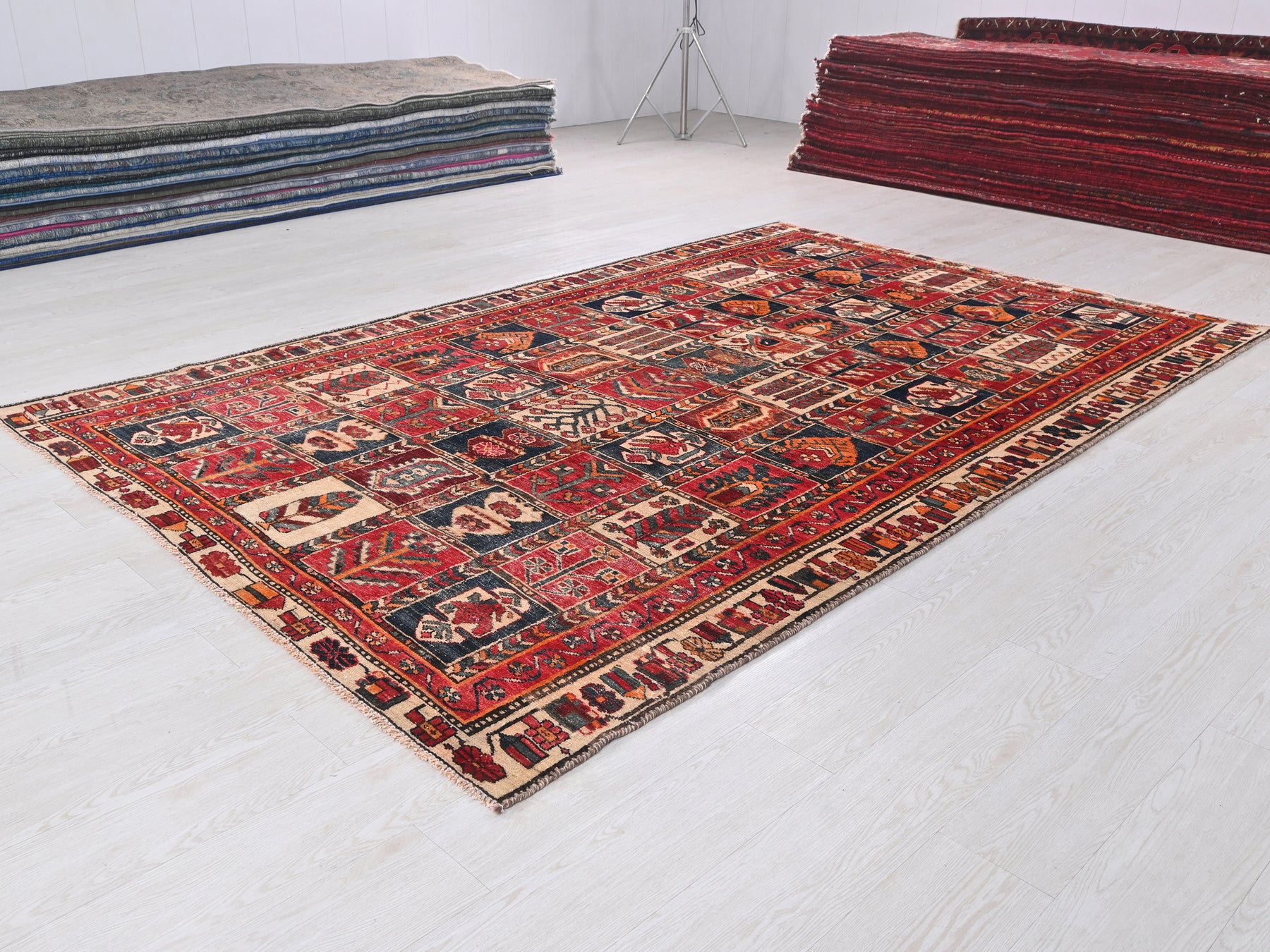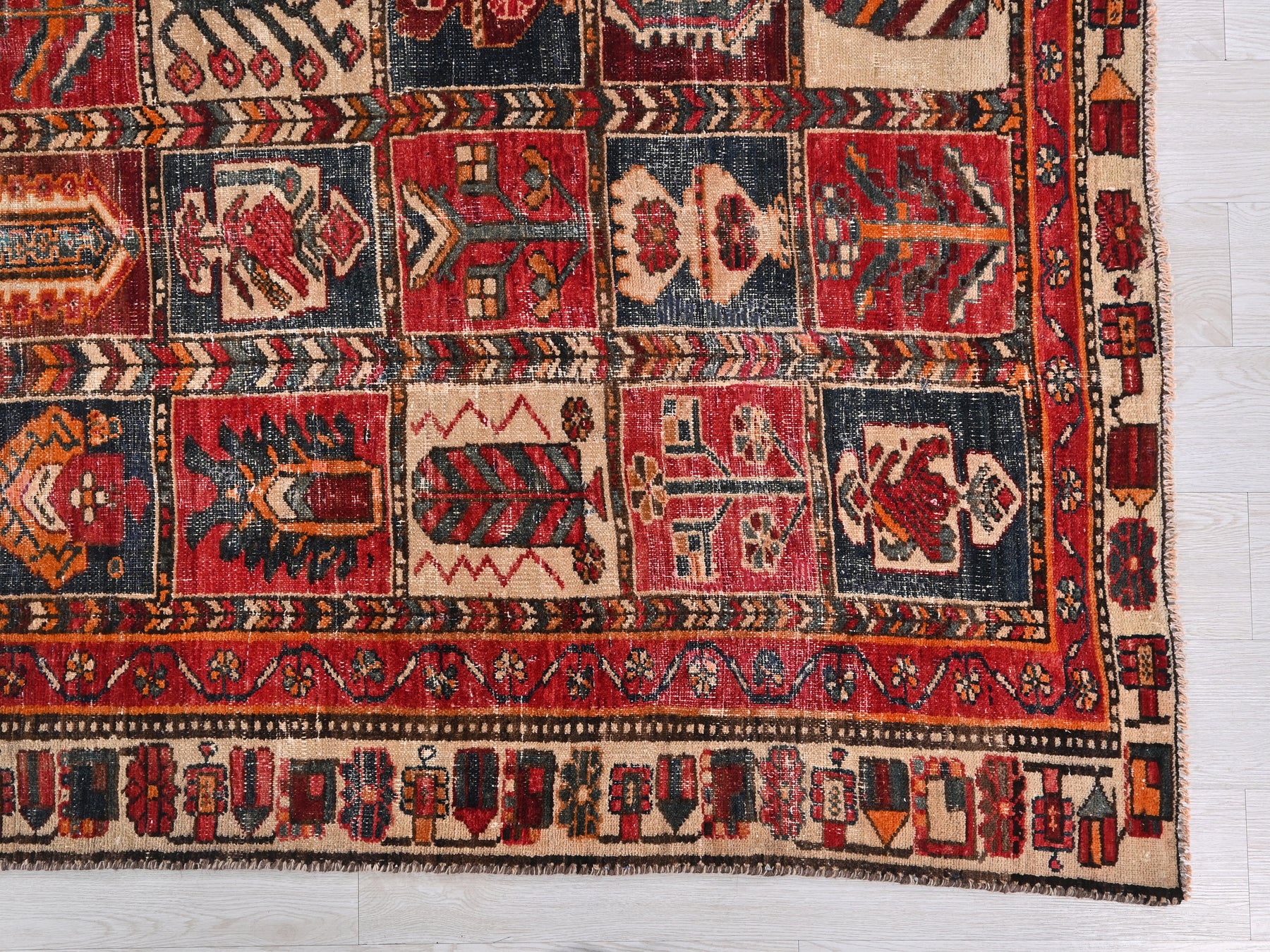 This is a hand-knotted, one-of-a-kind vintage rug. Due to the nature of this piece, there may be slight imperfections in its wear, shape, dimensions, and color. All of our rugs are professionally cleaned and repaired.