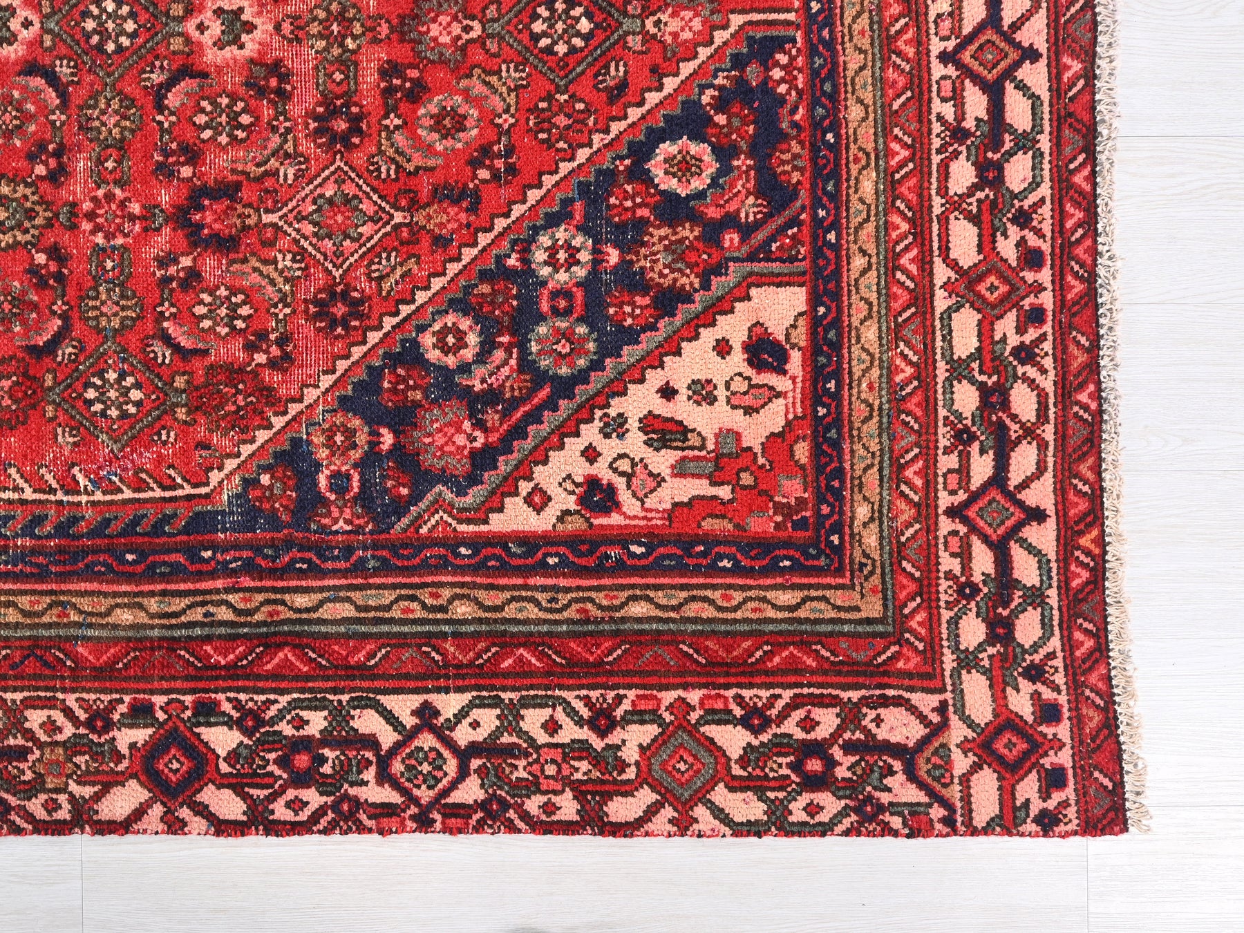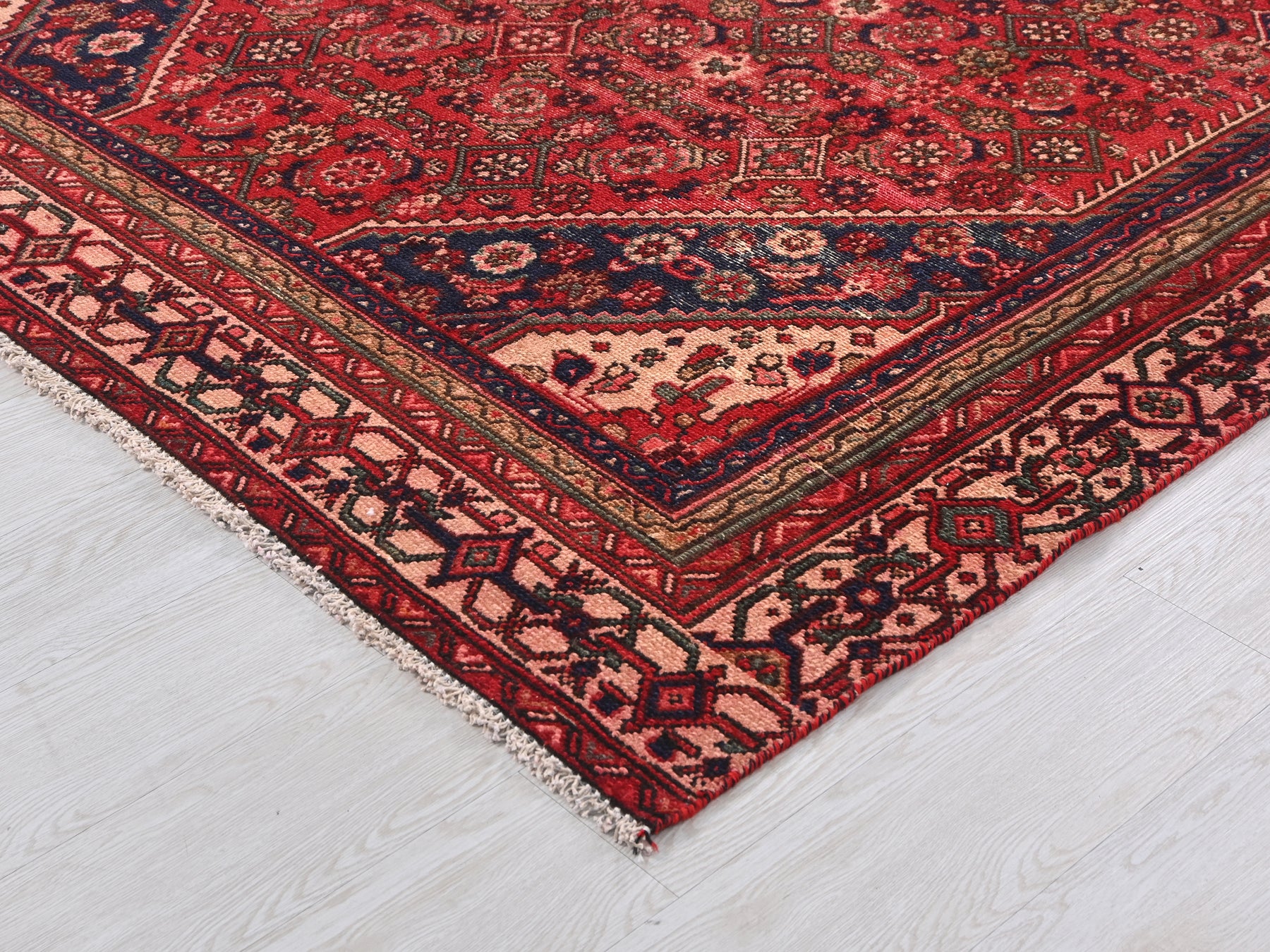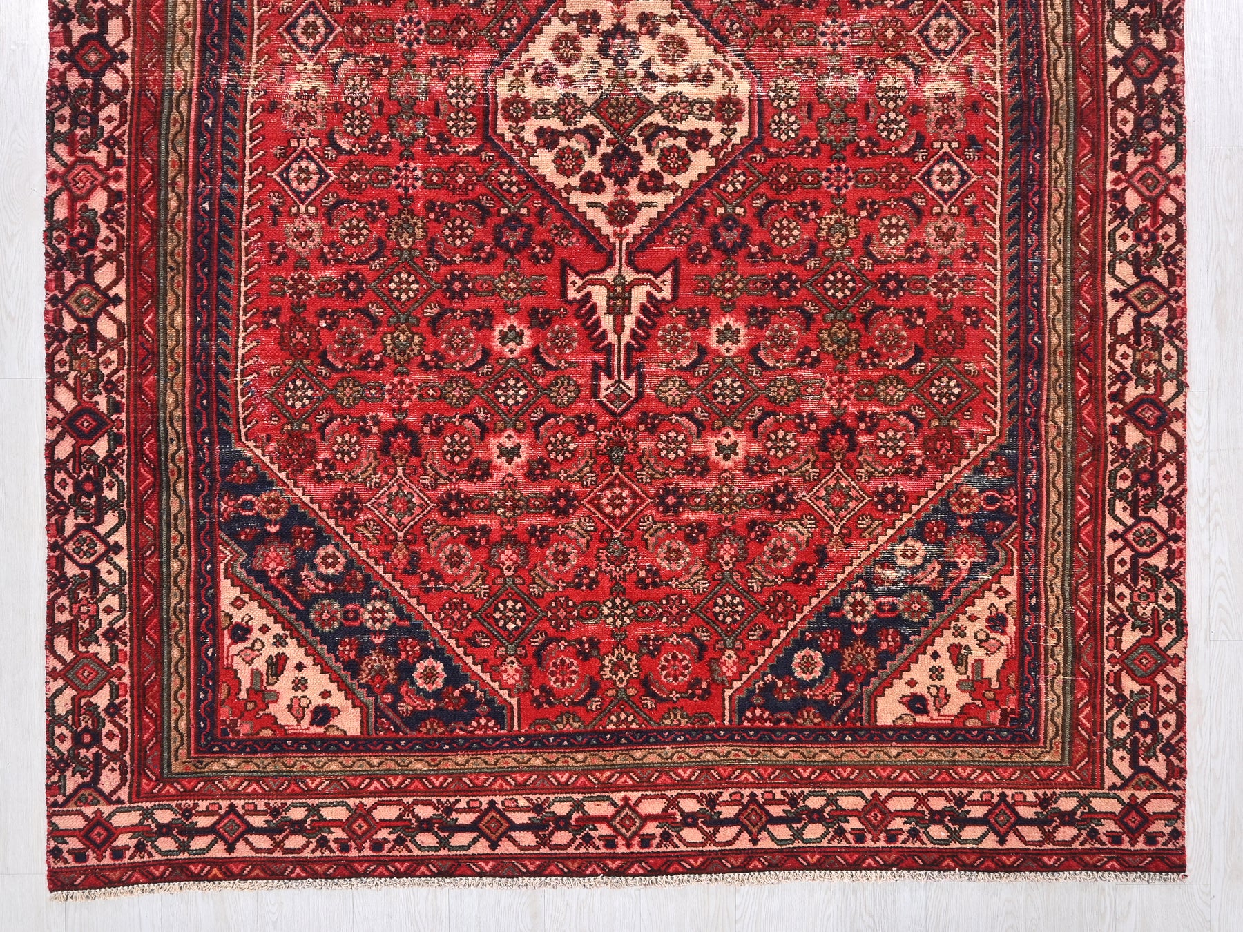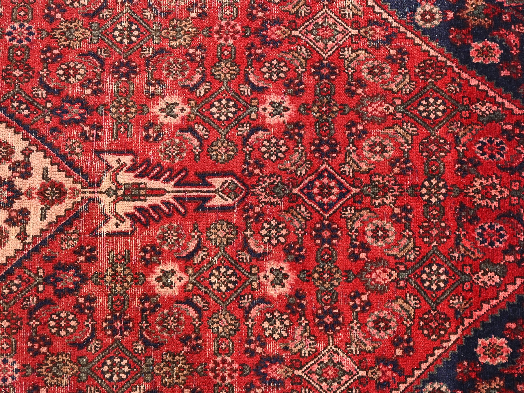 This is a hand-knotted, one-of-a-kind vintage rug. Due to the nature of this piece, there may be slight imperfections in its wear, shape, dimensions, and color. All of our rugs are professionally cleaned and repaired.
