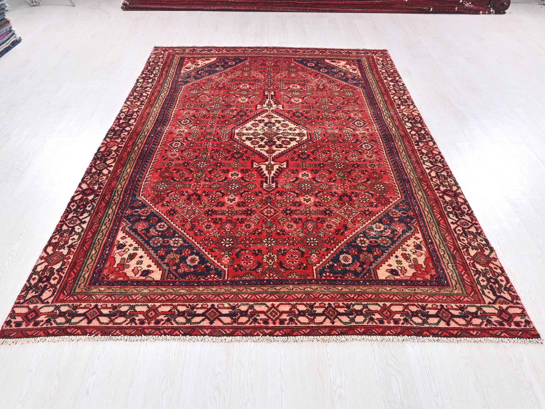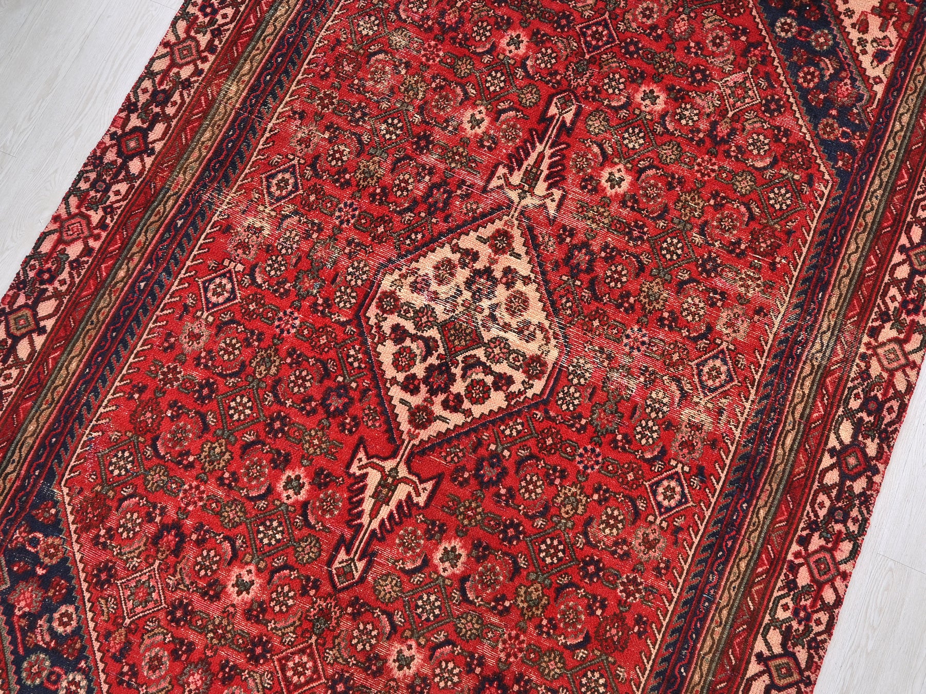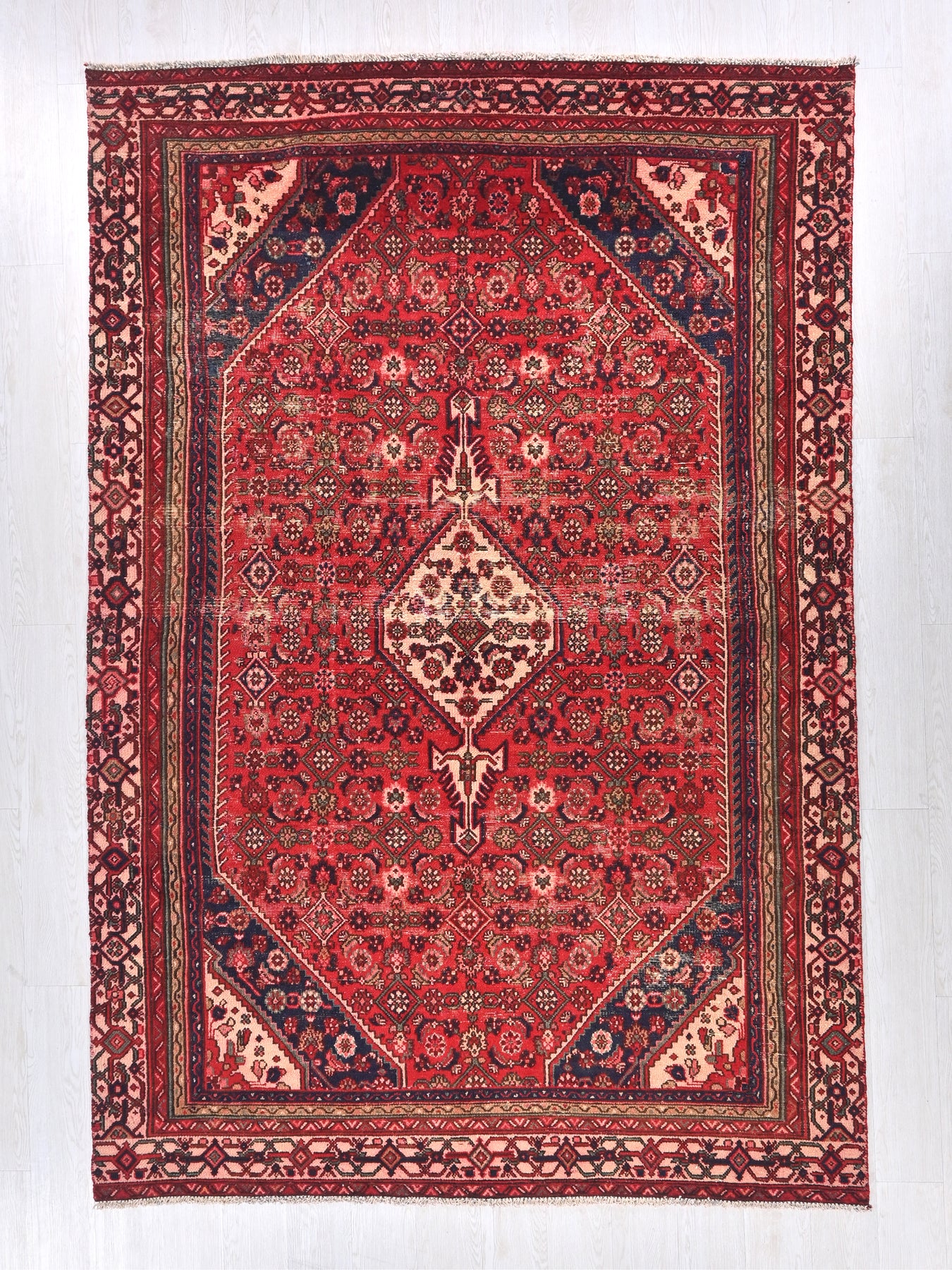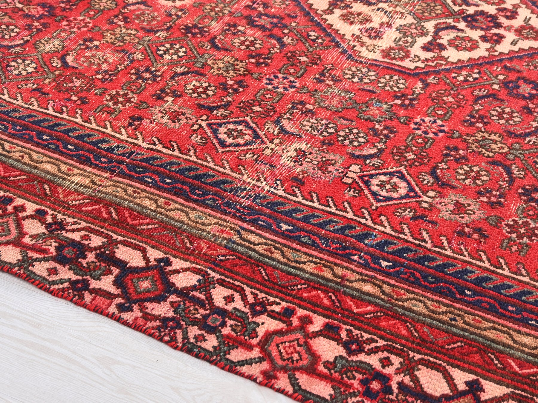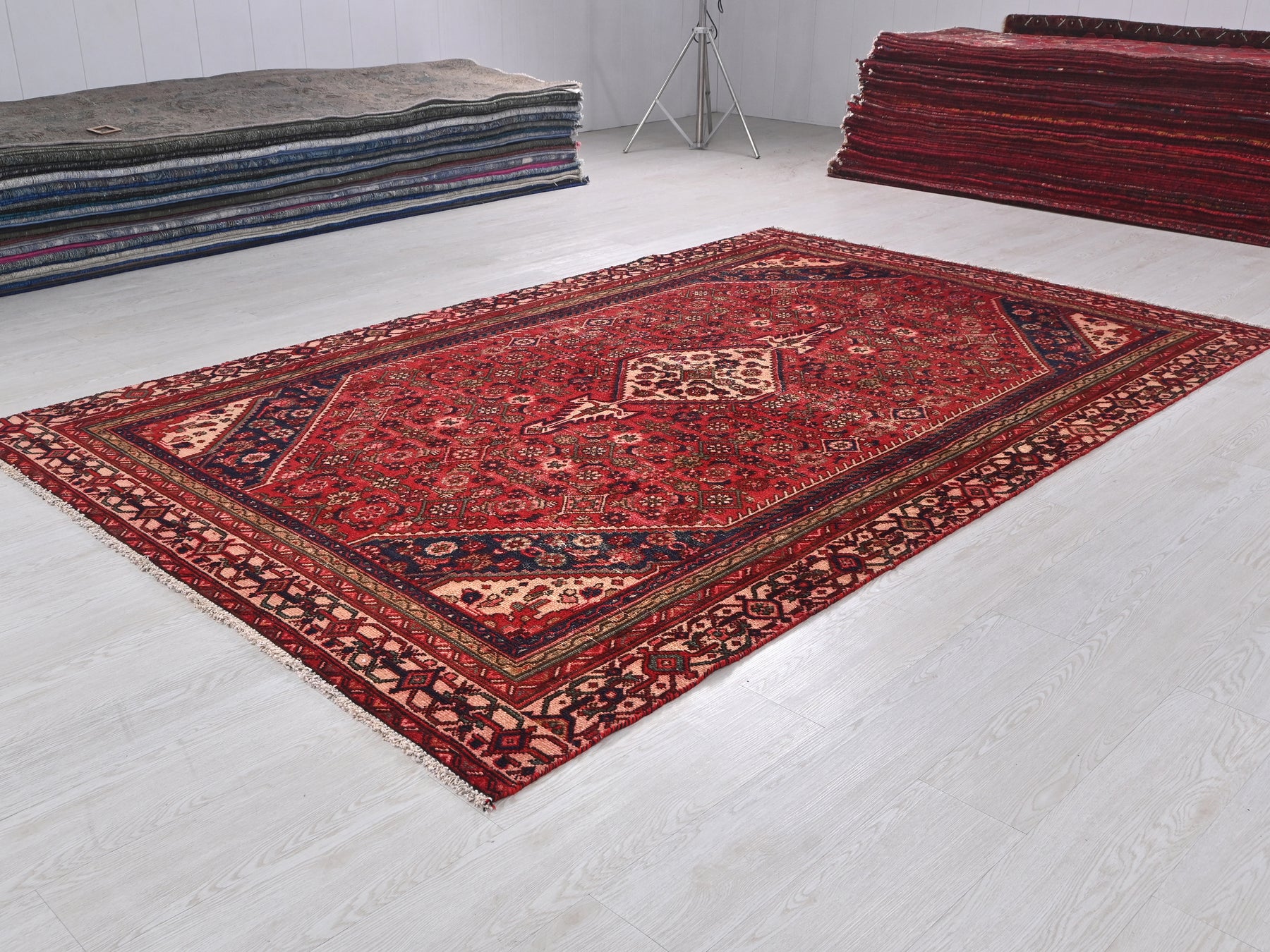 This is a hand-knotted, one-of-a-kind vintage rug. Due to the nature of this piece, there may be slight imperfections in its wear, shape, dimensions, and color. All of our rugs are professionally cleaned and repaired.