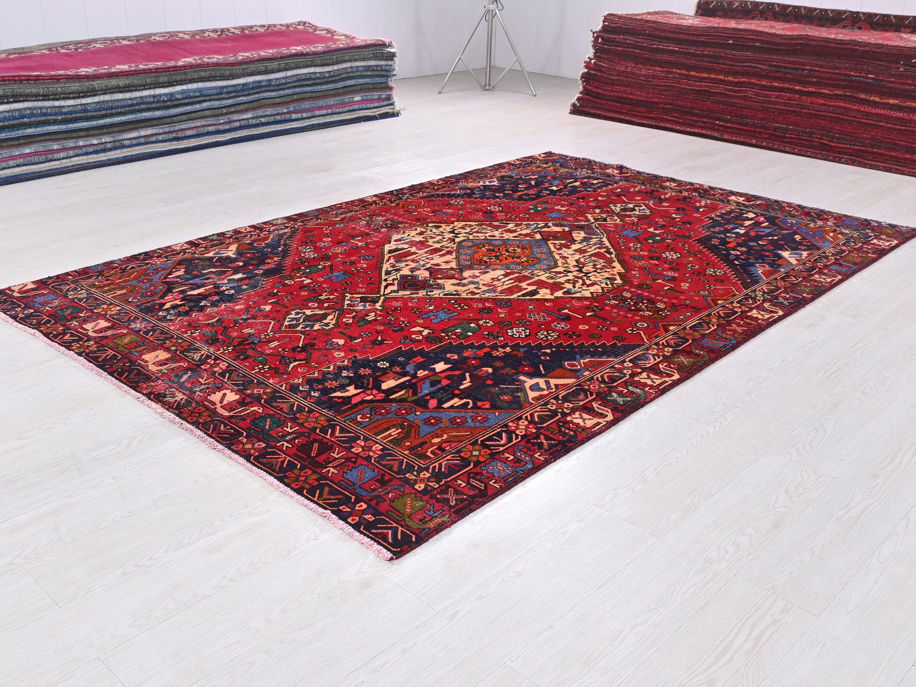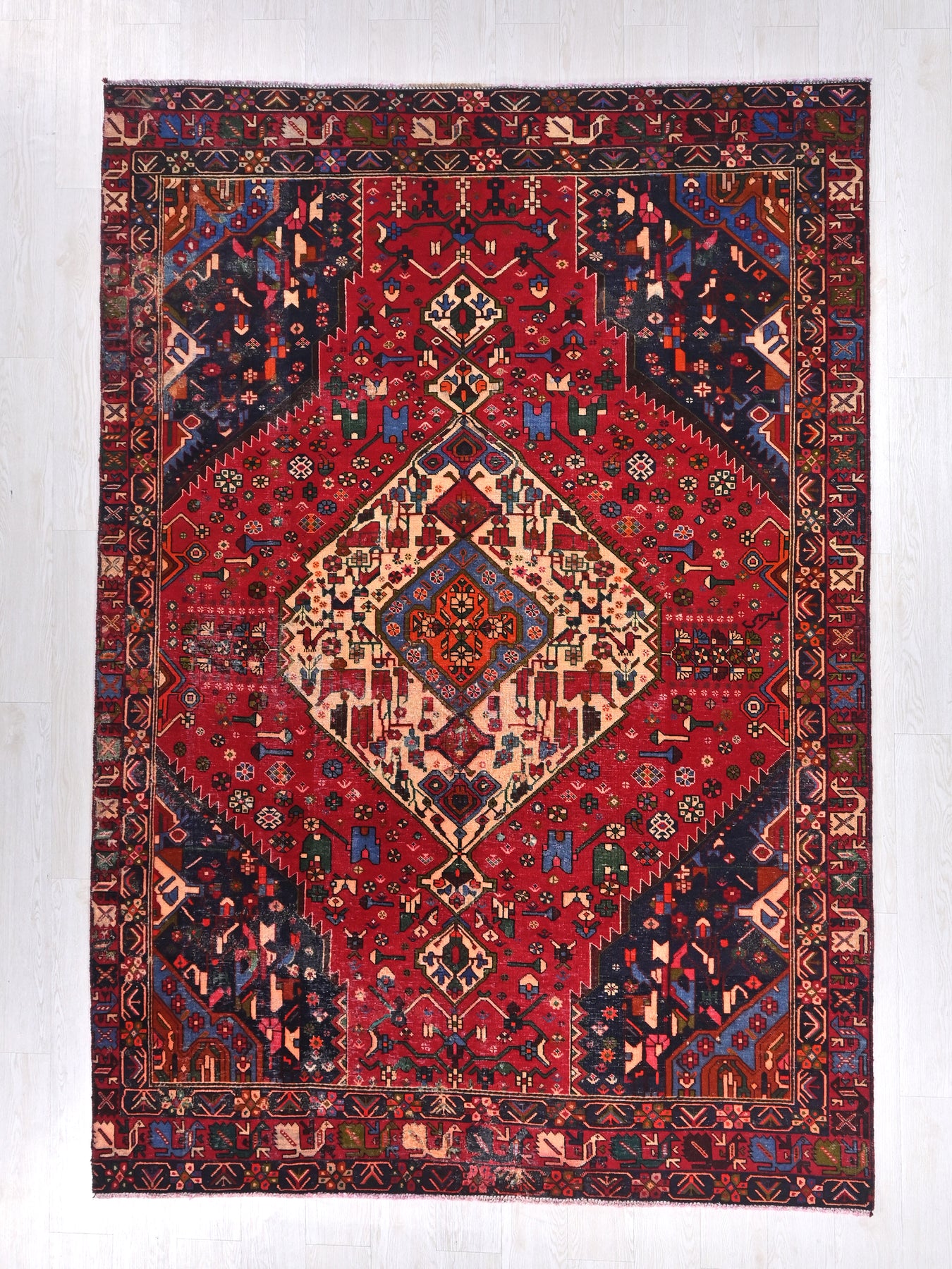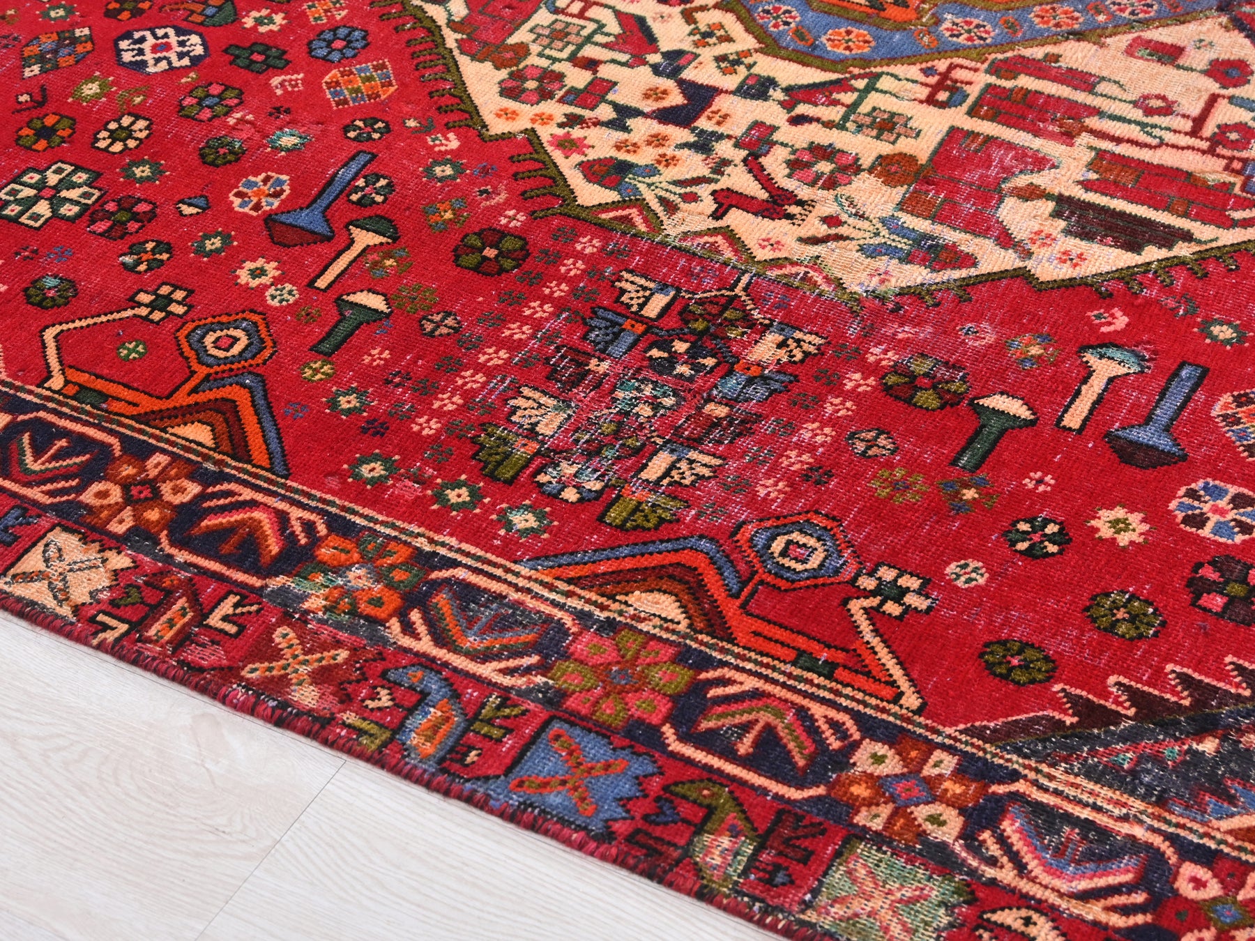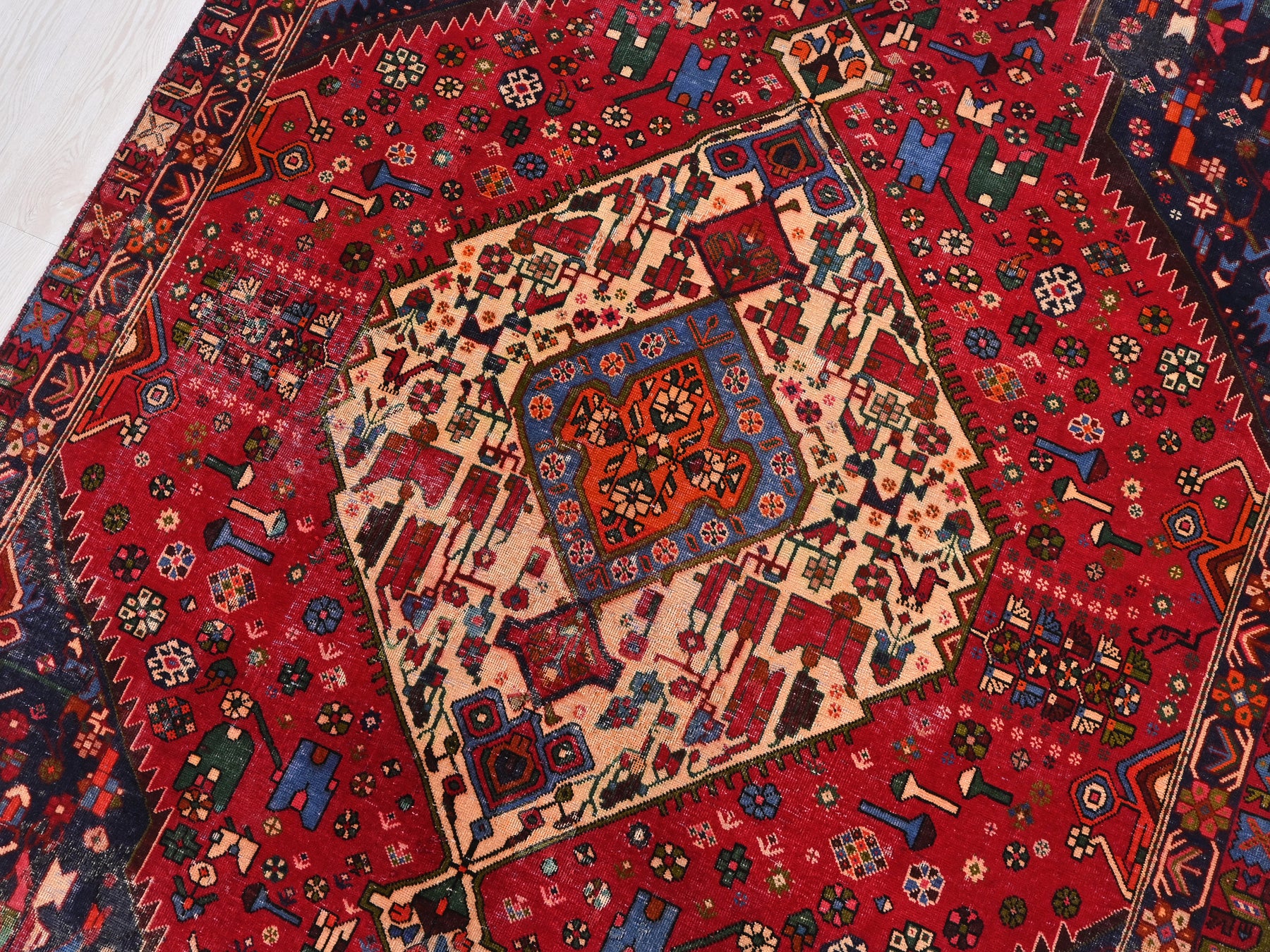 This is a hand-knotted, one-of-a-kind vintage rug. Due to the nature of this piece, there may be slight imperfections in its wear, shape, dimensions, and color. All of our rugs are professionally cleaned and repaired.
