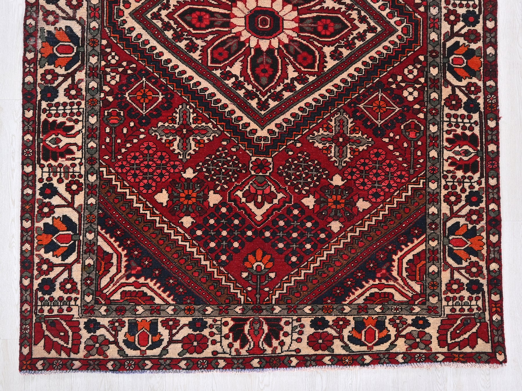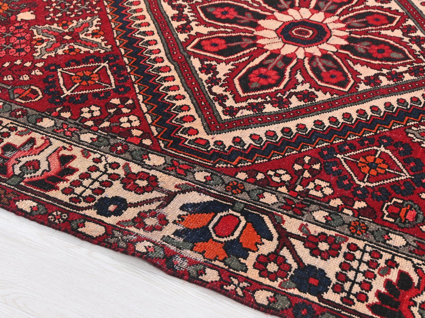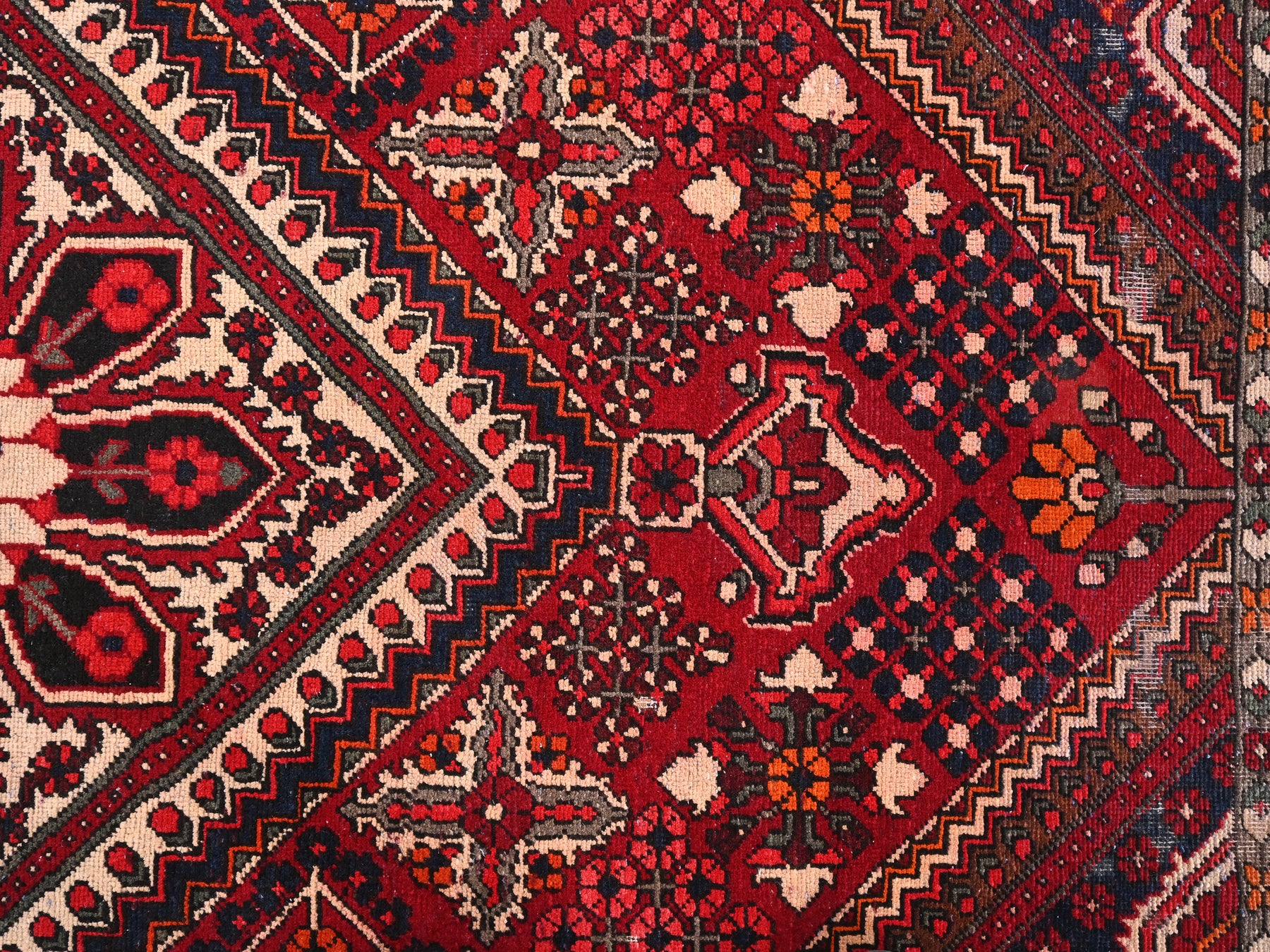 This is a hand-knotted, one-of-a-kind vintage rug. Due to the nature of this piece, there may be slight imperfections in its wear, shape, dimensions, and color. All of our rugs are professionally cleaned and repaired.