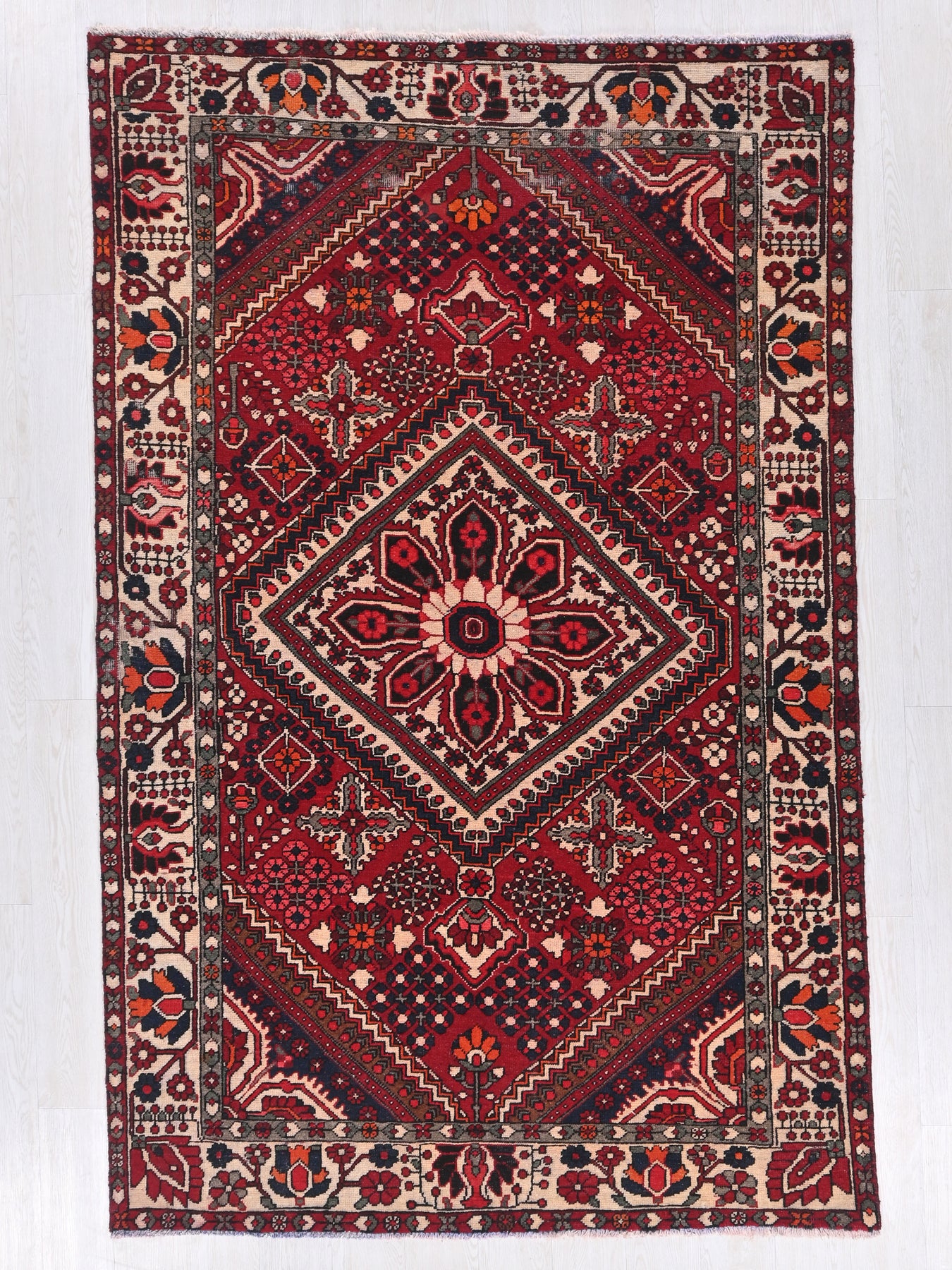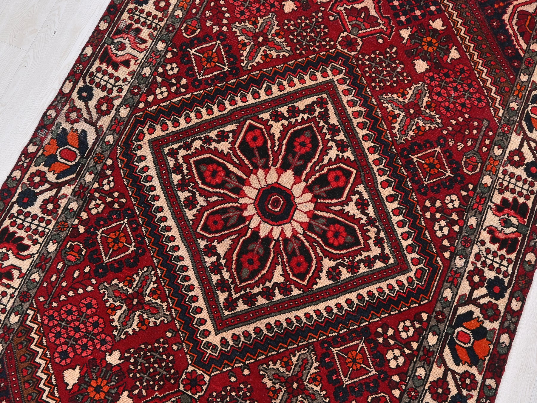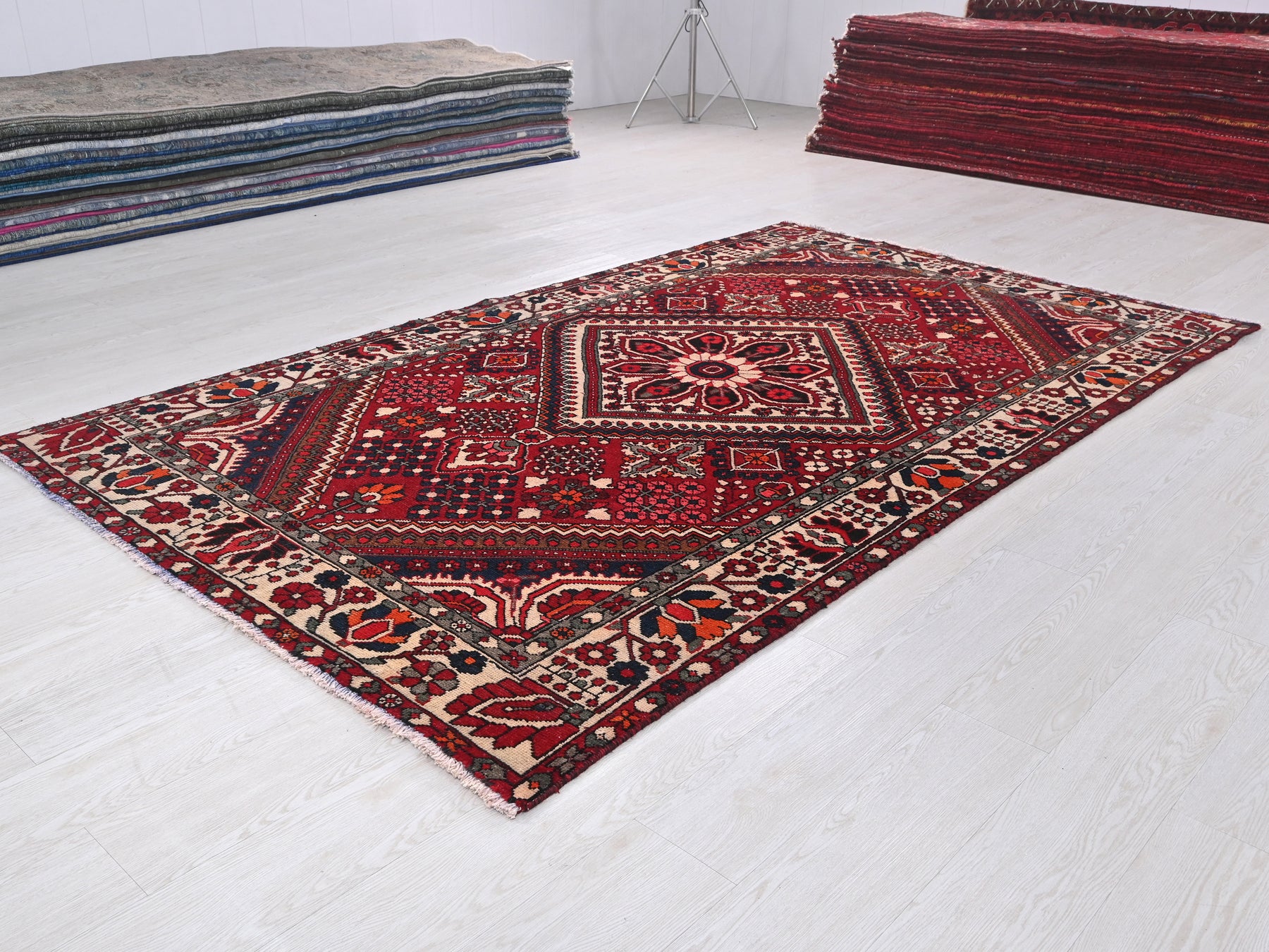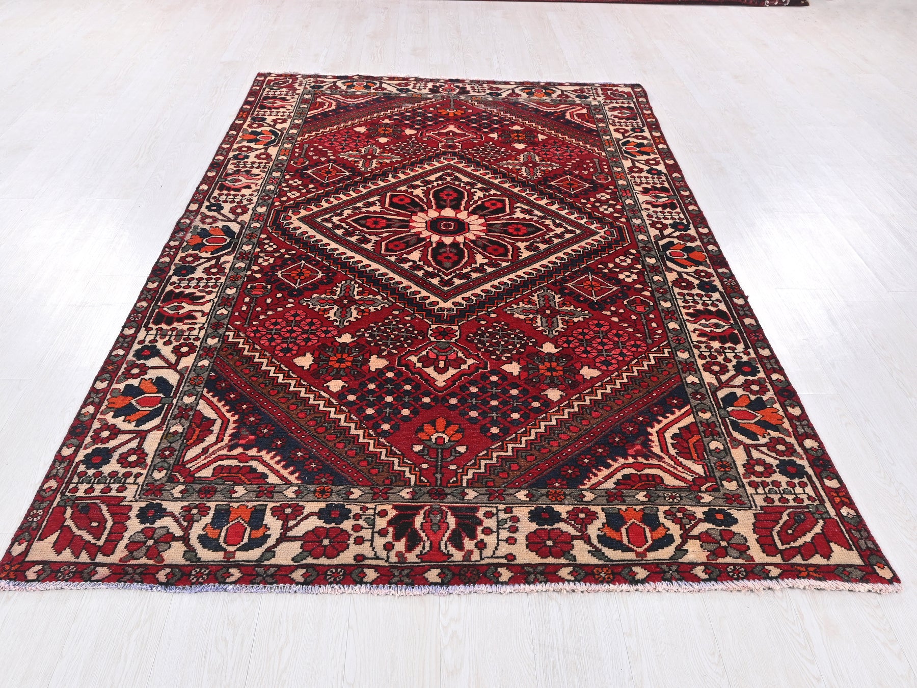 This is a hand-knotted, one-of-a-kind vintage rug. Due to the nature of this piece, there may be slight imperfections in its wear, shape, dimensions, and color. All of our rugs are professionally cleaned and repaired.
