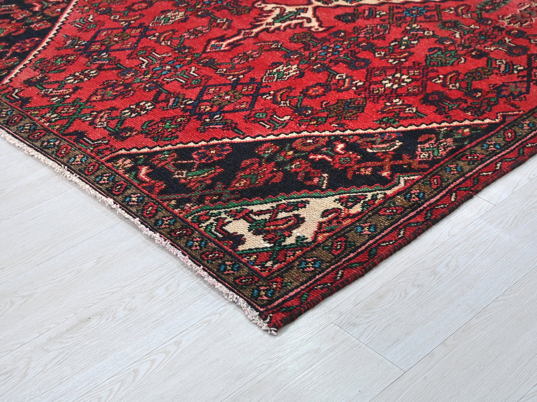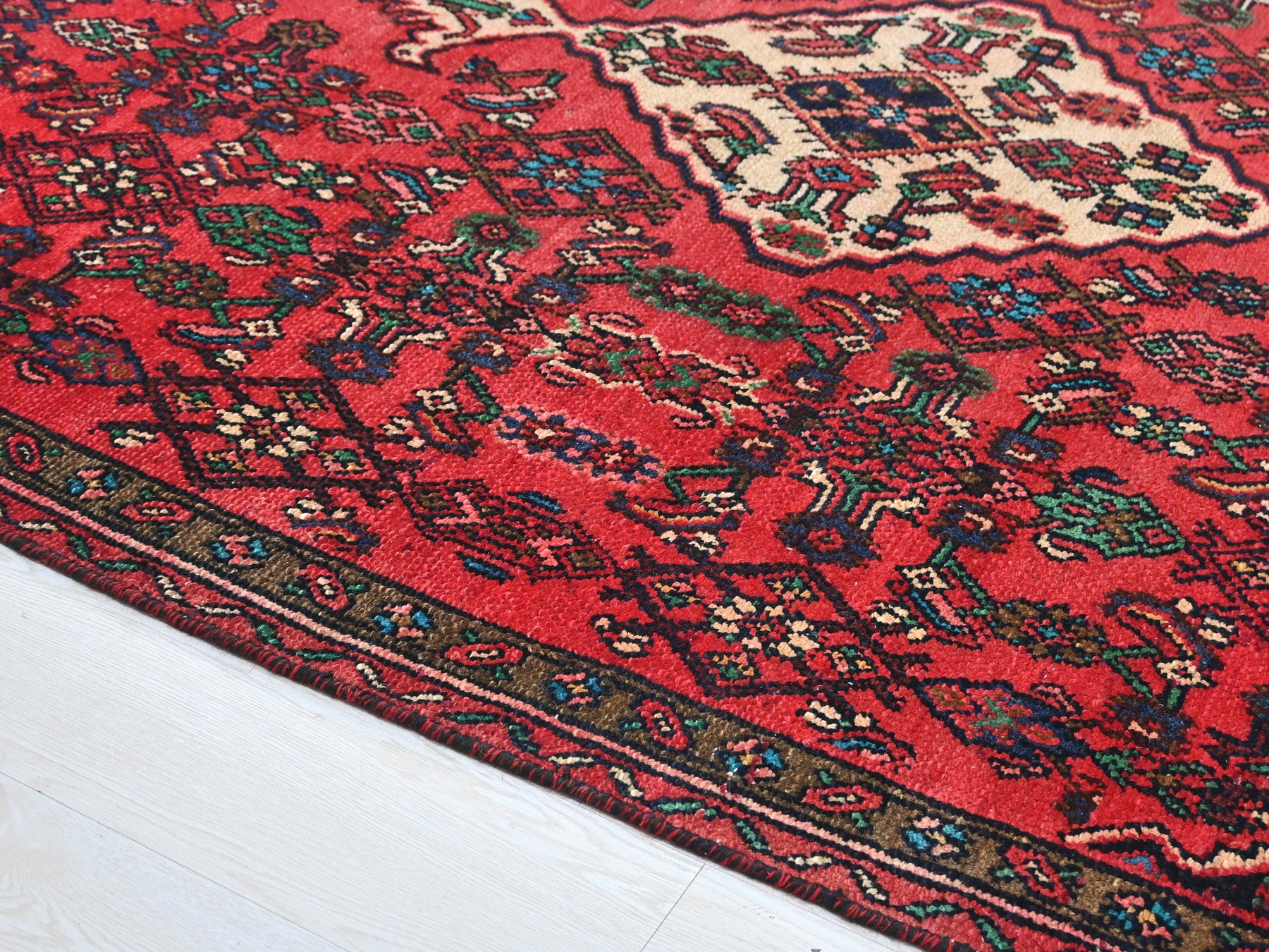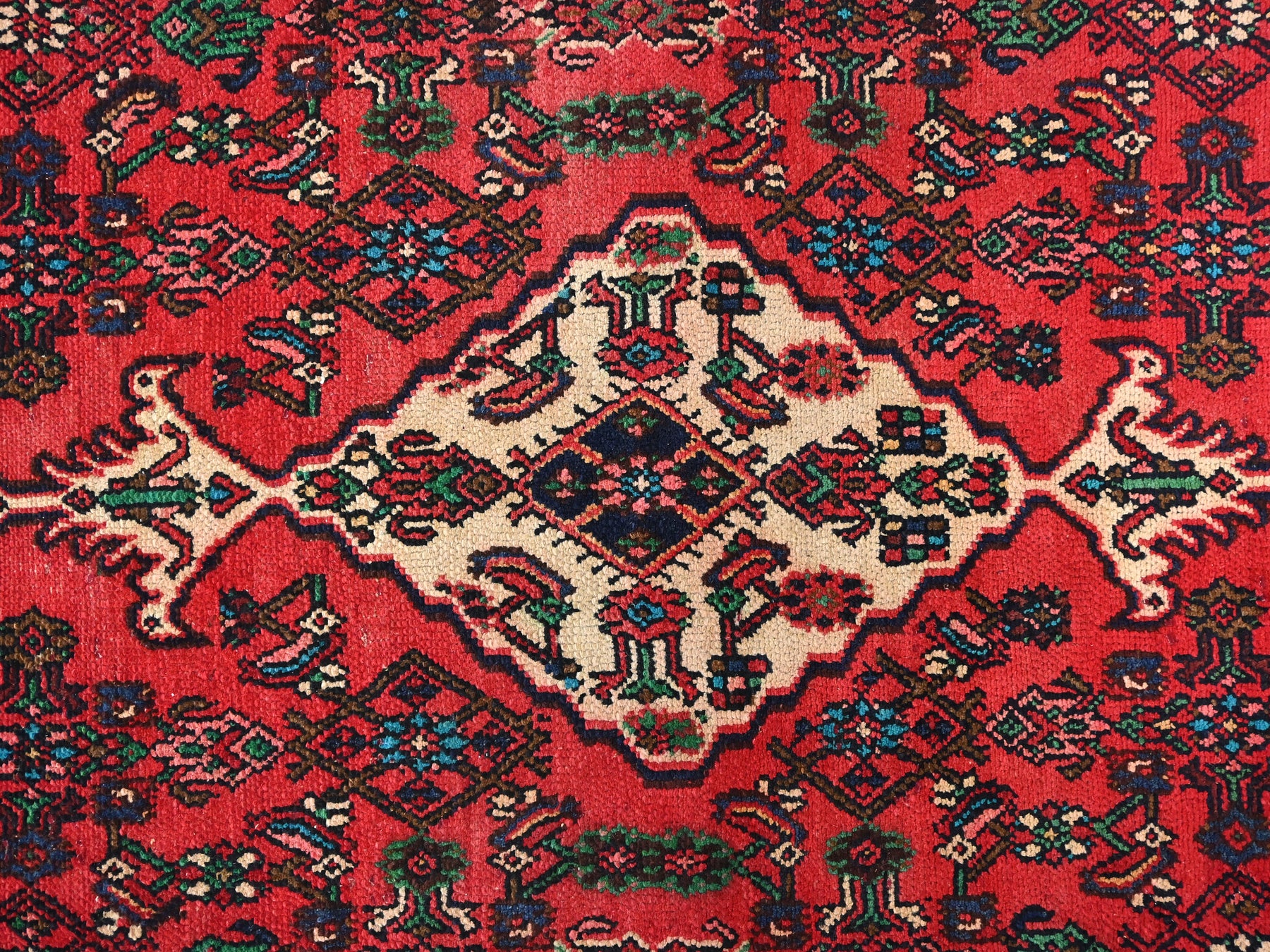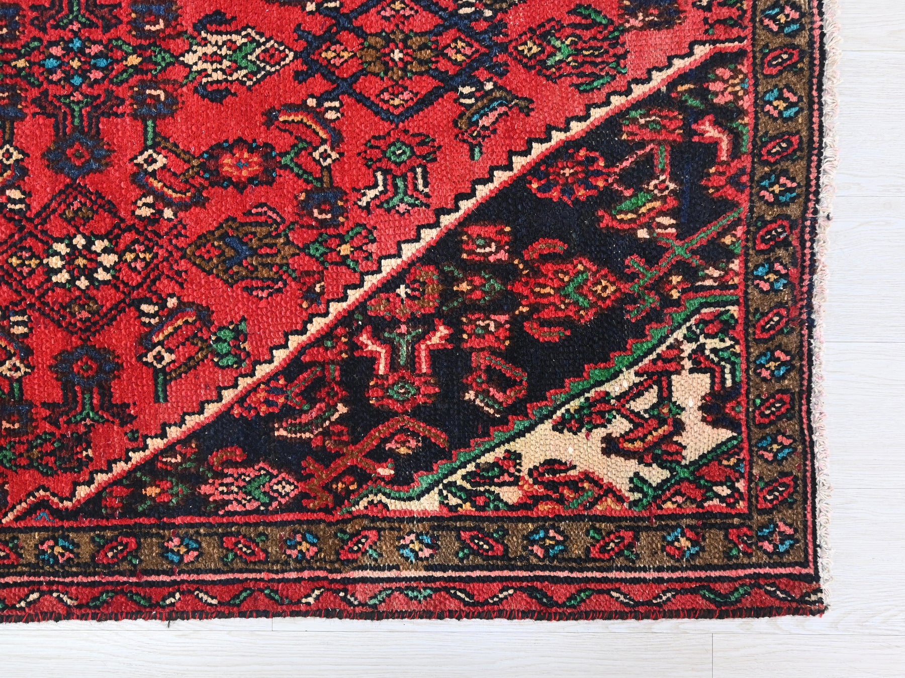 This is a hand-knotted, one-of-a-kind vintage rug. Due to the nature of this piece, there may be slight imperfections in its wear, shape, dimensions, and color. All of our rugs are professionally cleaned and repaired.