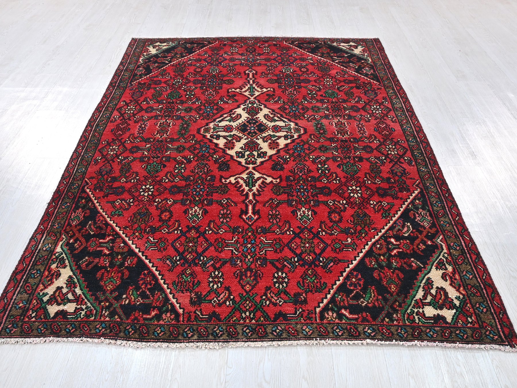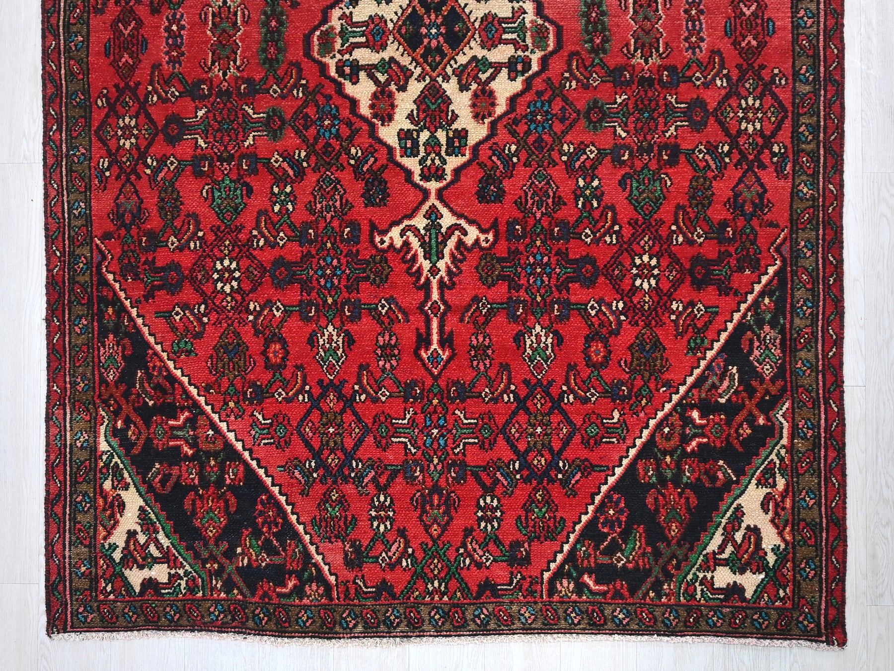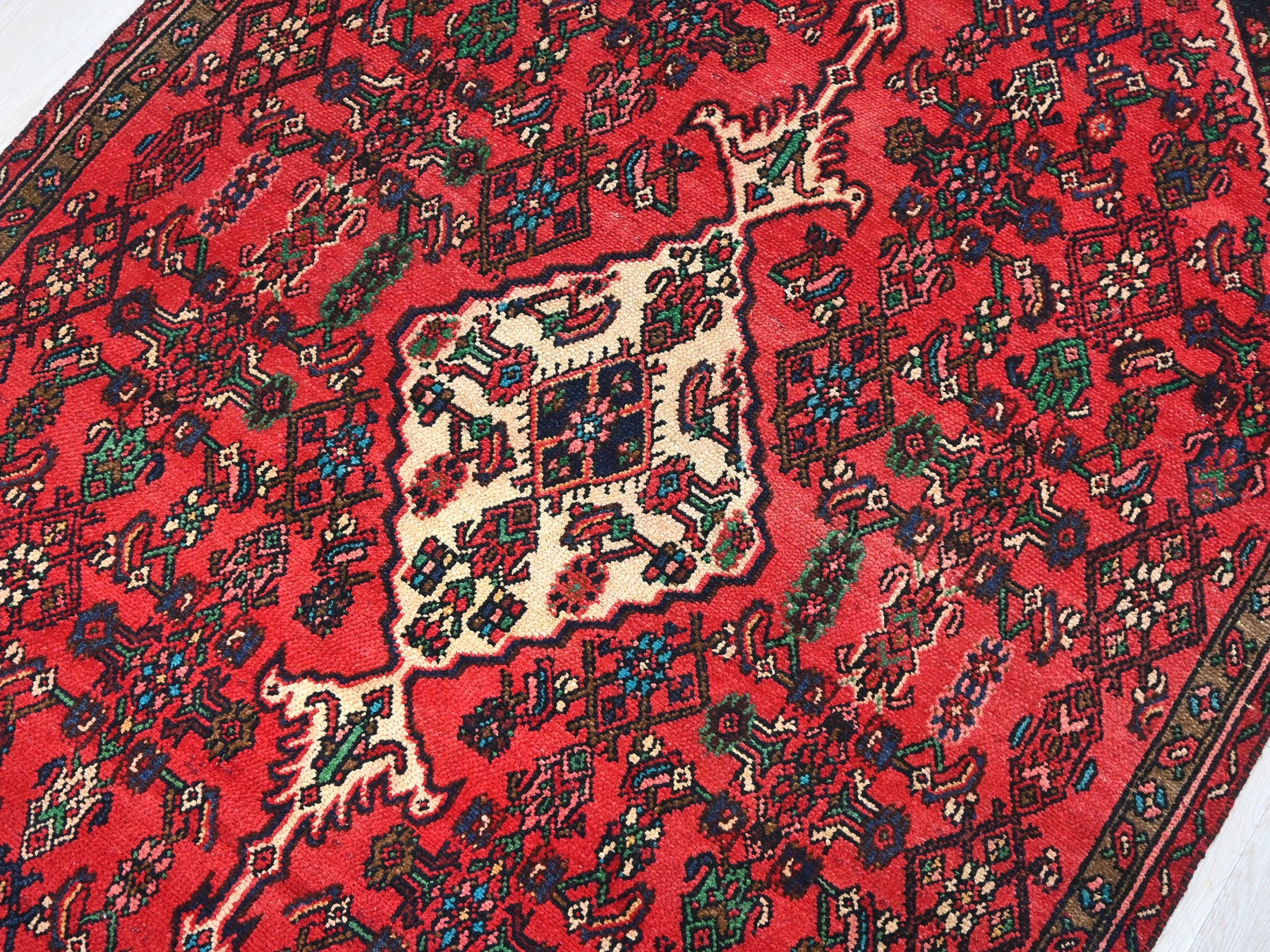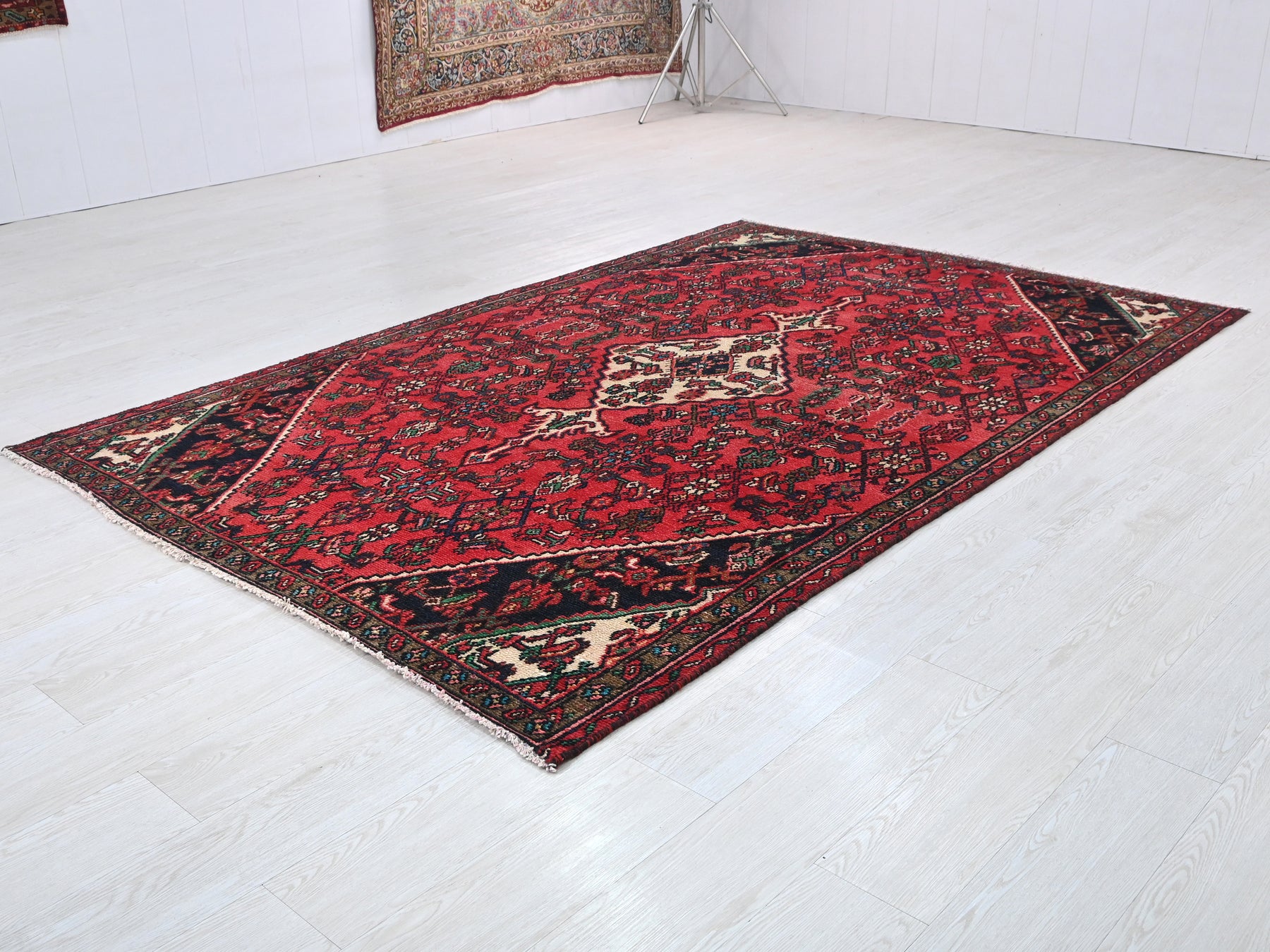 This is a hand-knotted, one-of-a-kind vintage rug. Due to the nature of this piece, there may be slight imperfections in its wear, shape, dimensions, and color. All of our rugs are professionally cleaned and repaired.