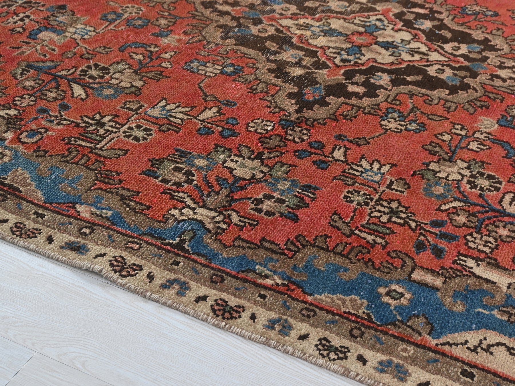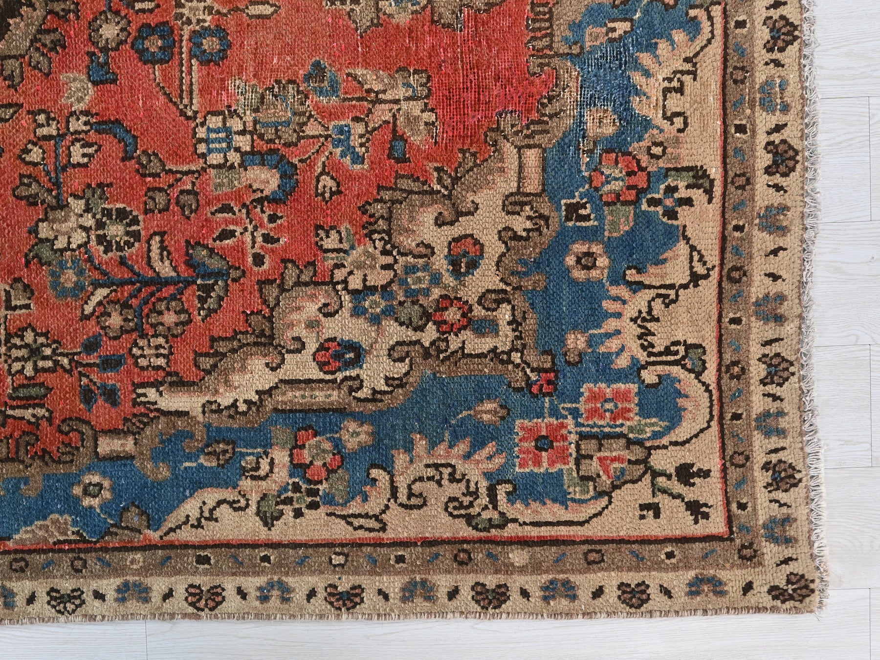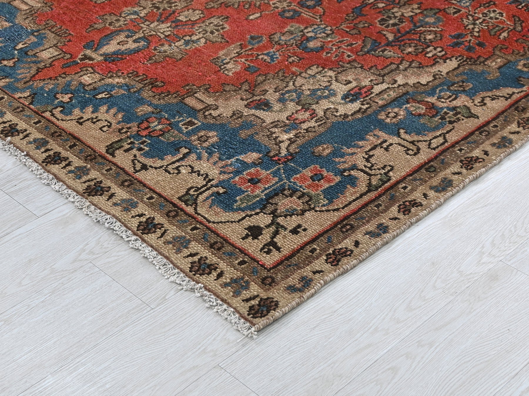 This is a hand-knotted, one-of-a-kind vintage rug. Due to the nature of this piece, there may be slight imperfections in its wear, shape, dimensions, and color. All of our rugs are professionally cleaned and repaired.