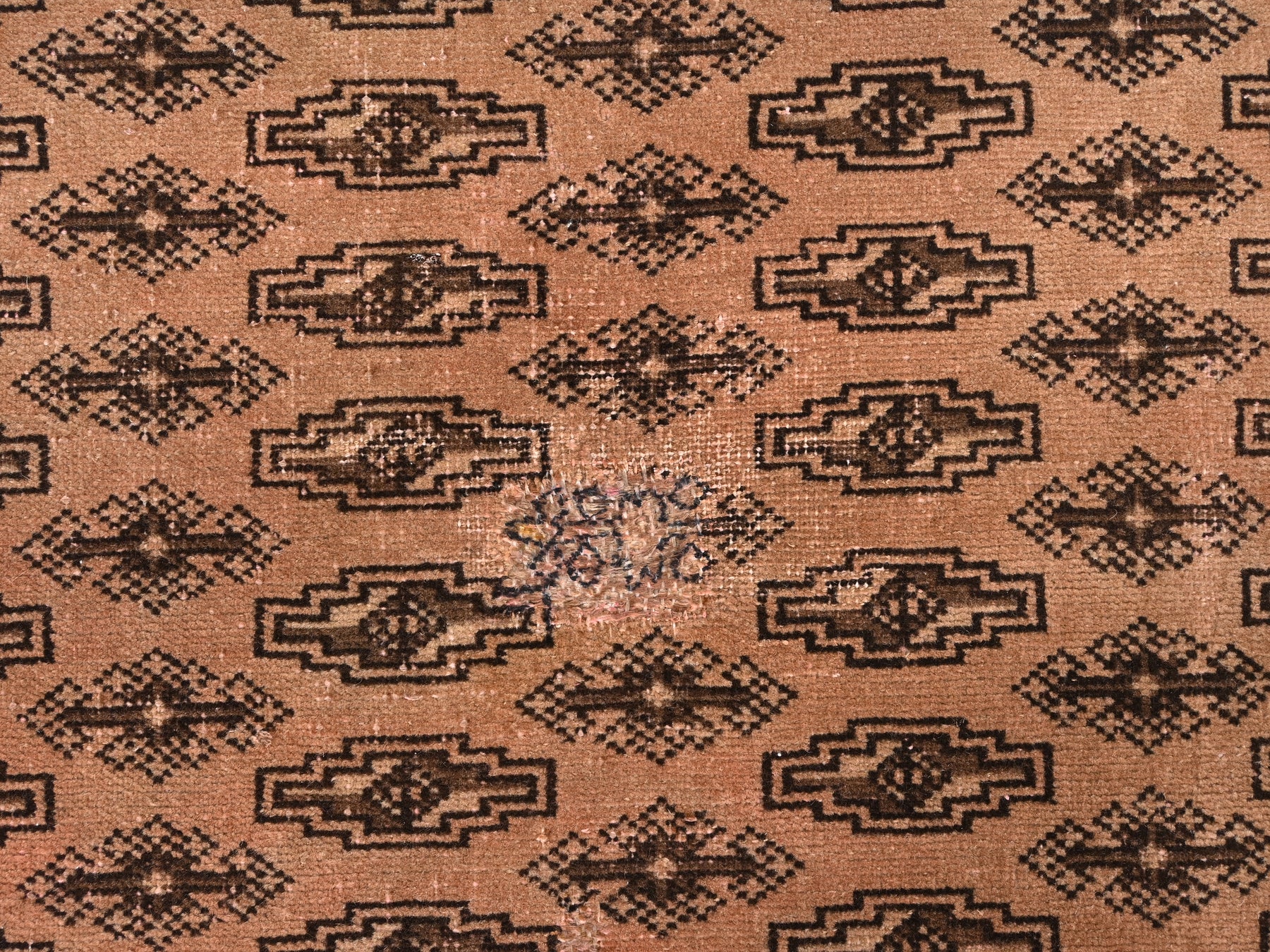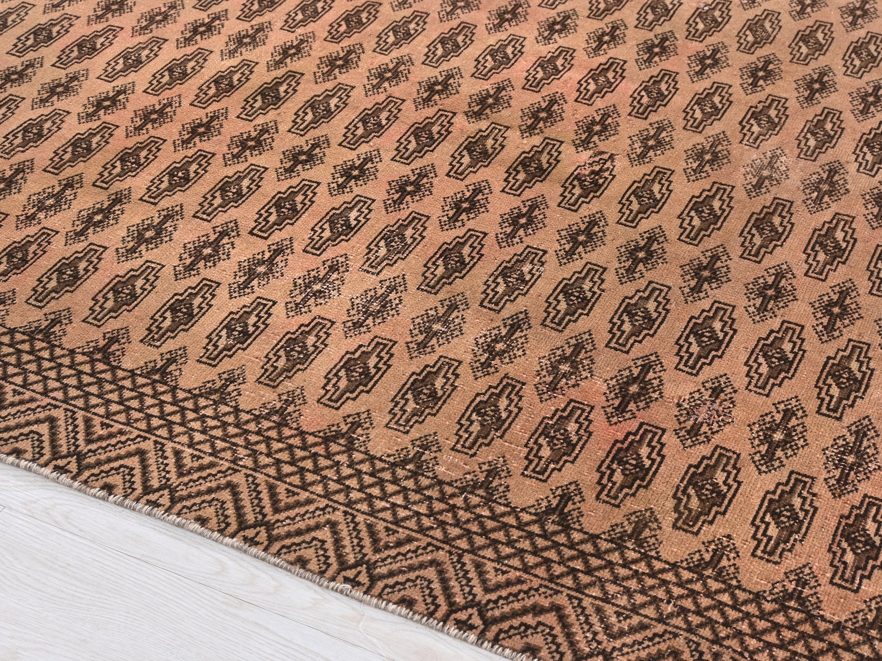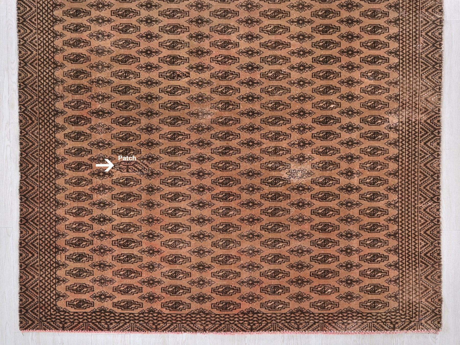 This is a hand-knotted, one-of-a-kind vintage rug. Due to the nature of this piece, there may be slight imperfections in its wear, shape, dimensions, and color. All of our rugs are professionally cleaned and repaired.
