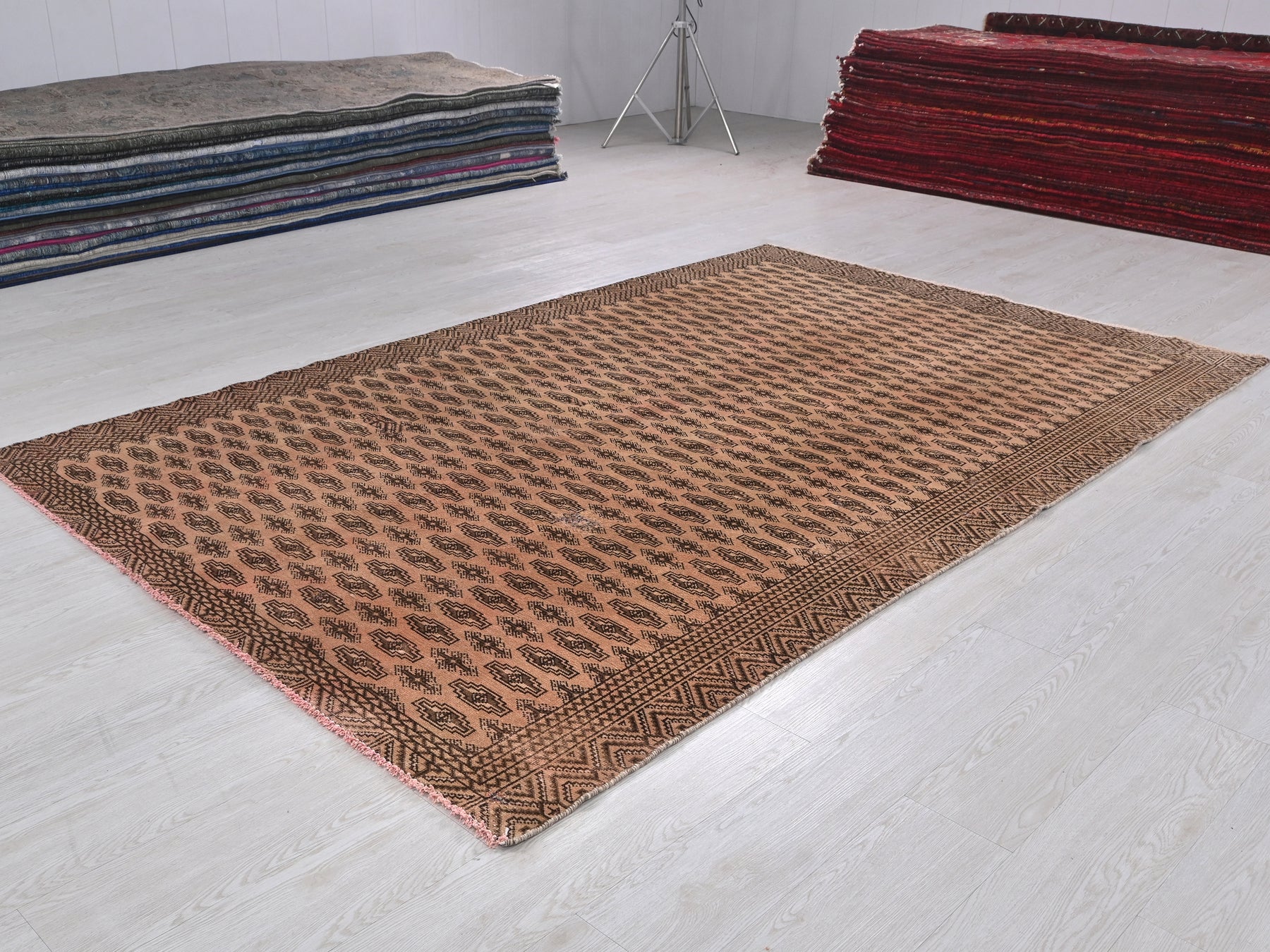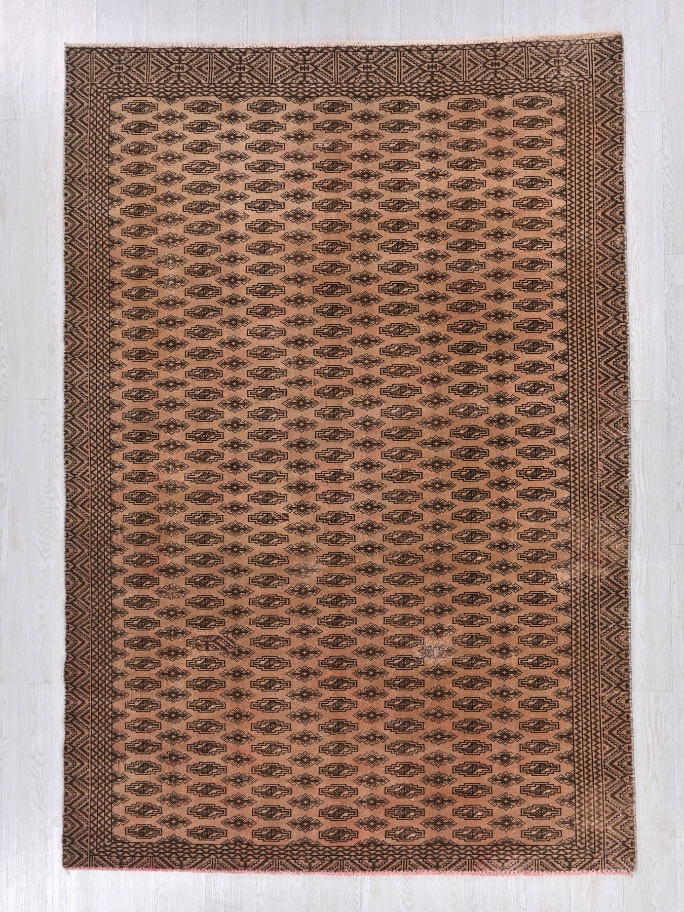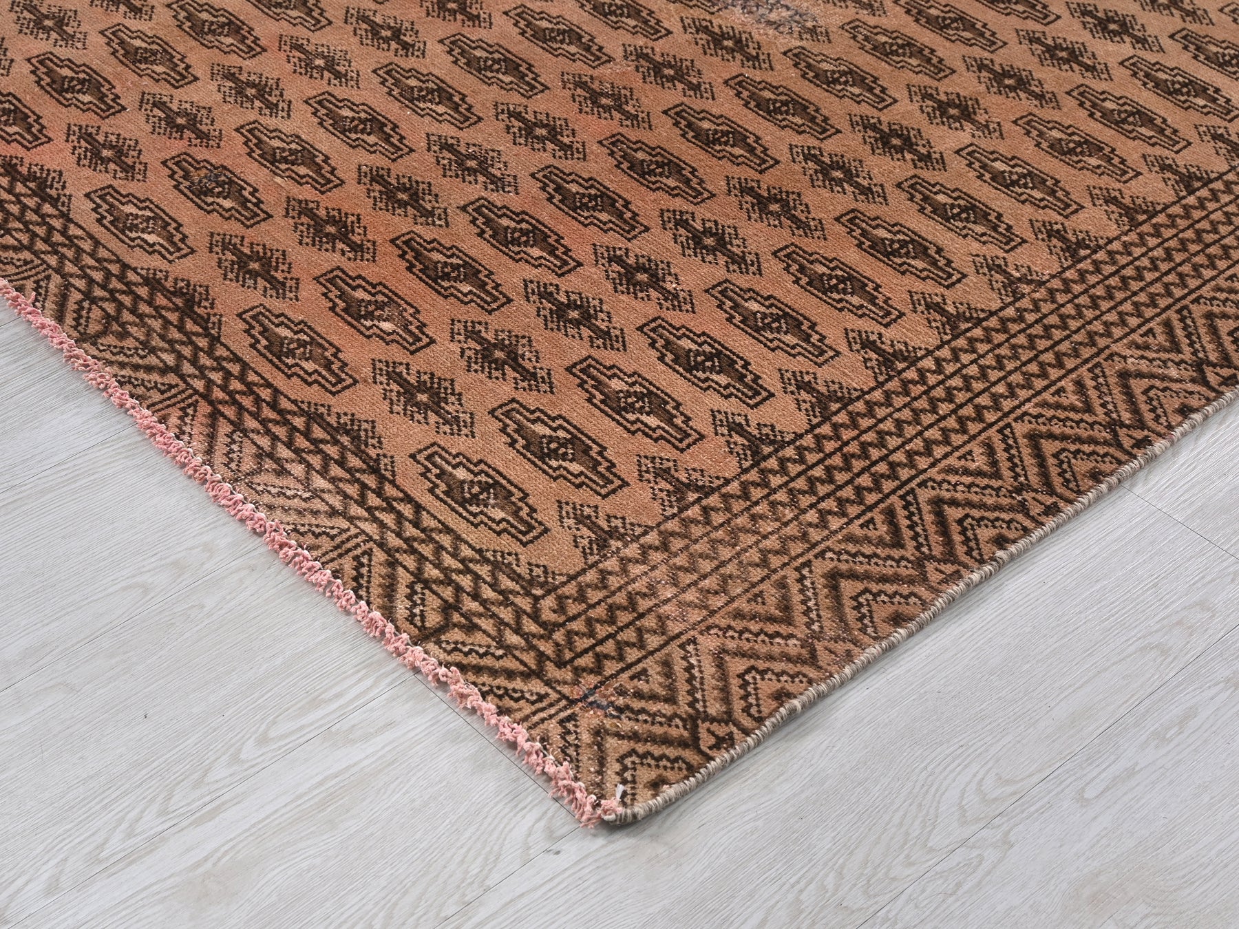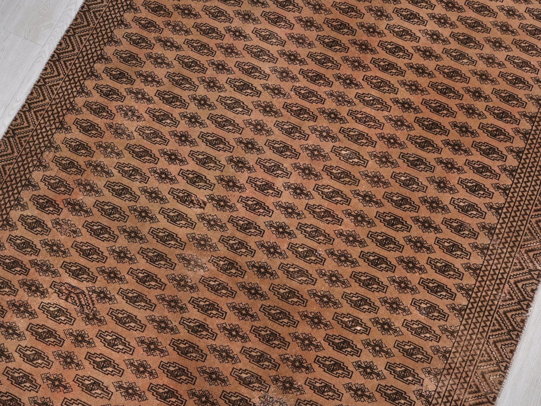 This is a hand-knotted, one-of-a-kind vintage rug. Due to the nature of this piece, there may be slight imperfections in its wear, shape, dimensions, and color. All of our rugs are professionally cleaned and repaired.