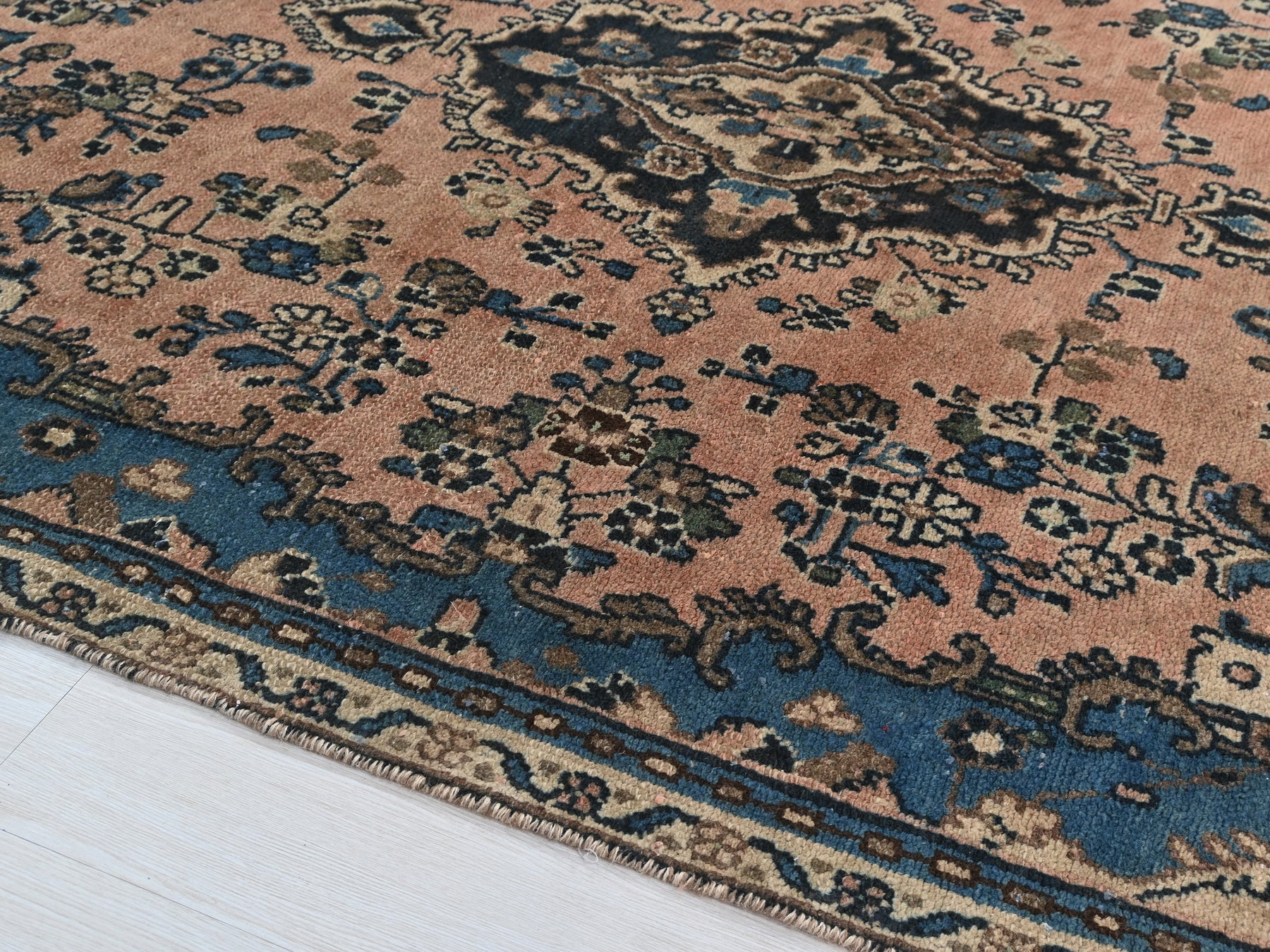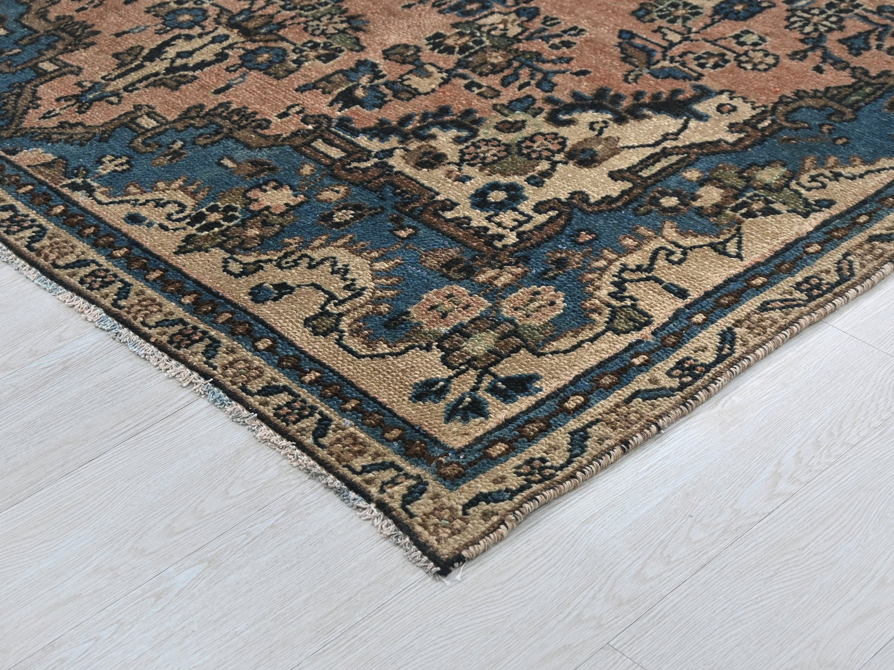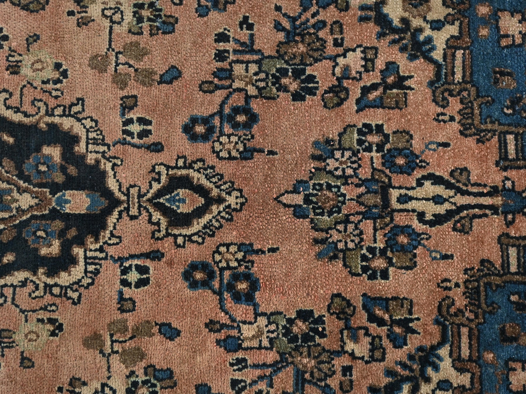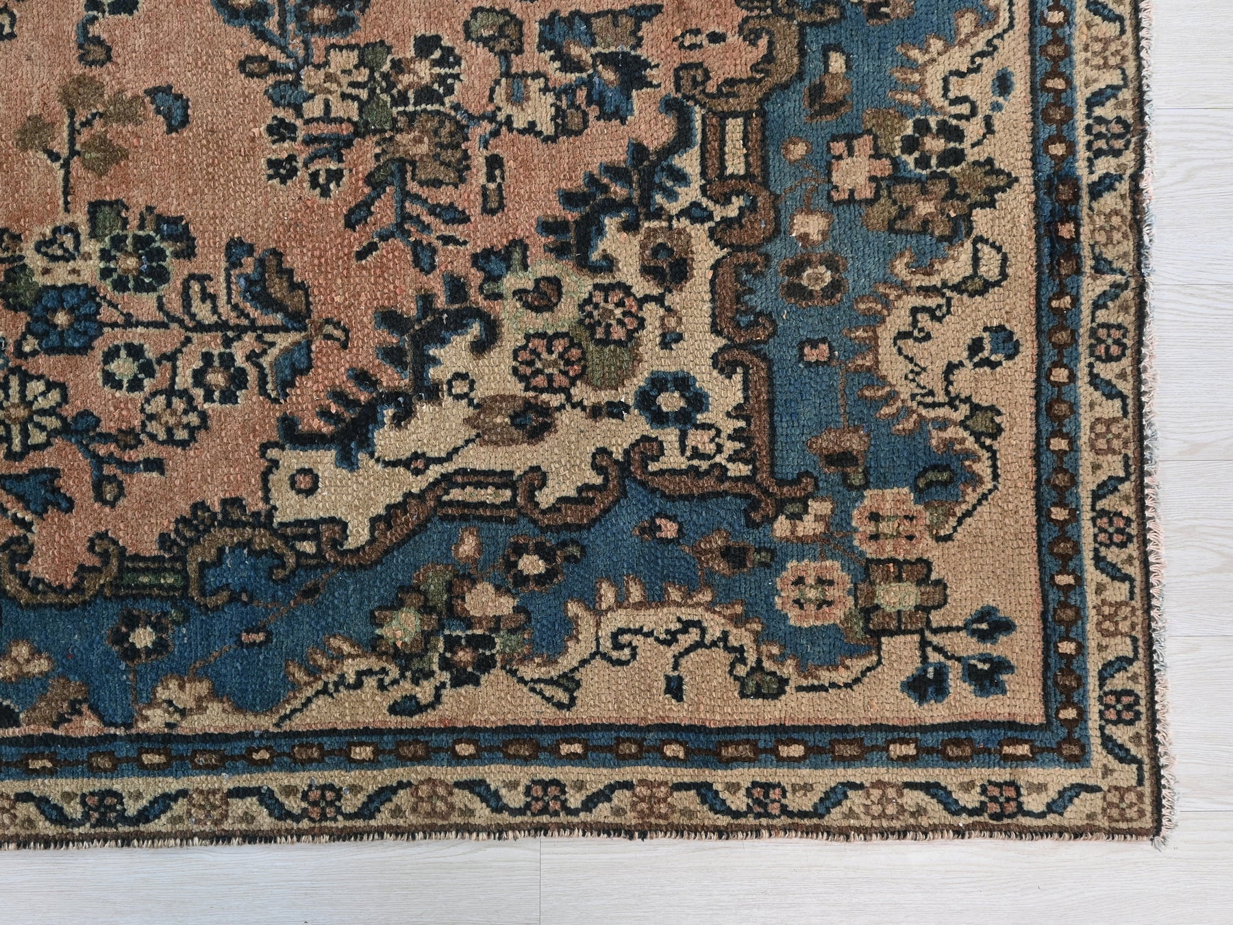 This is a hand-knotted, one-of-a-kind vintage rug. Due to the nature of this piece, there may be slight imperfections in its wear, shape, dimensions, and color. All of our rugs are professionally cleaned and repaired.