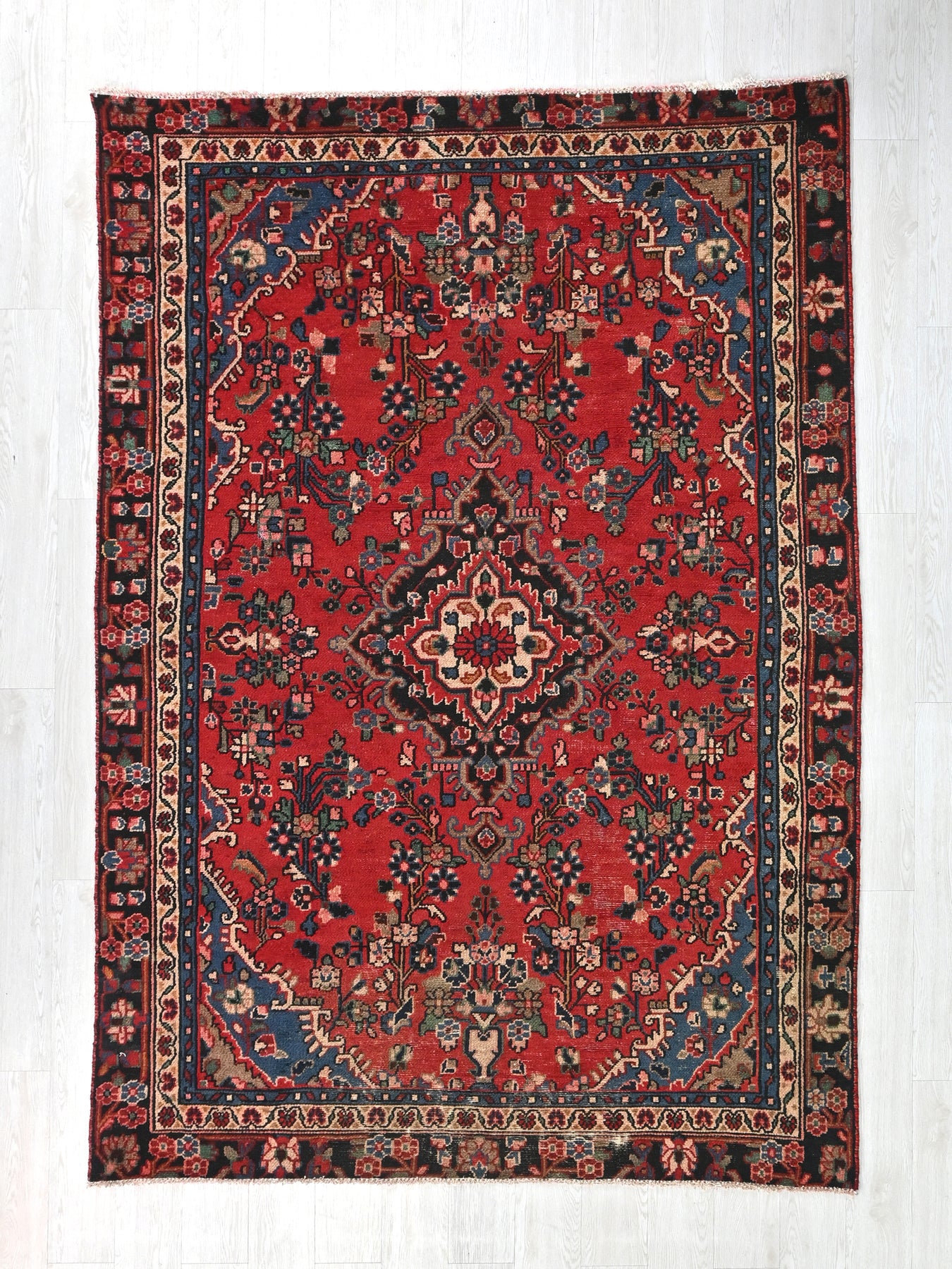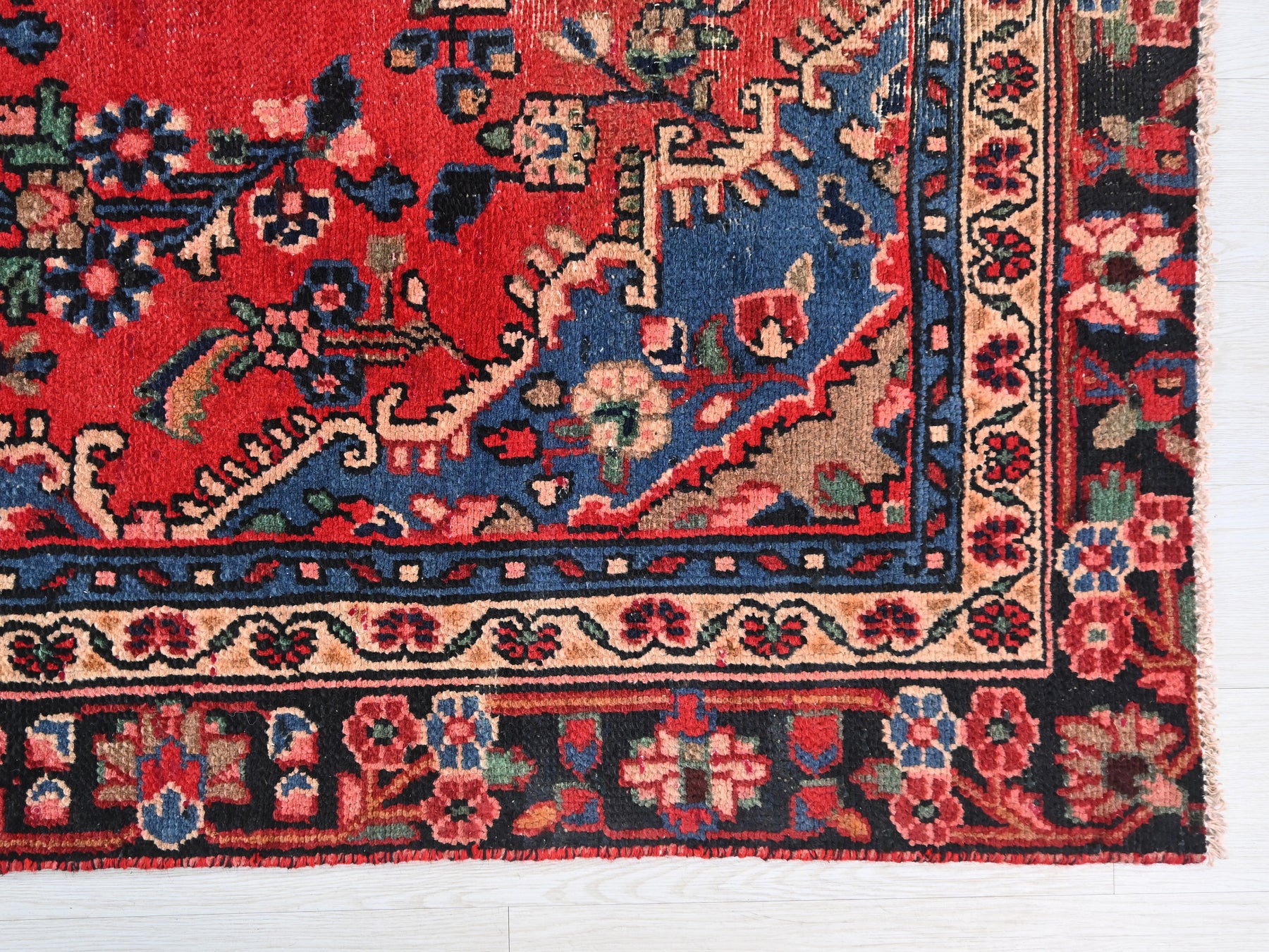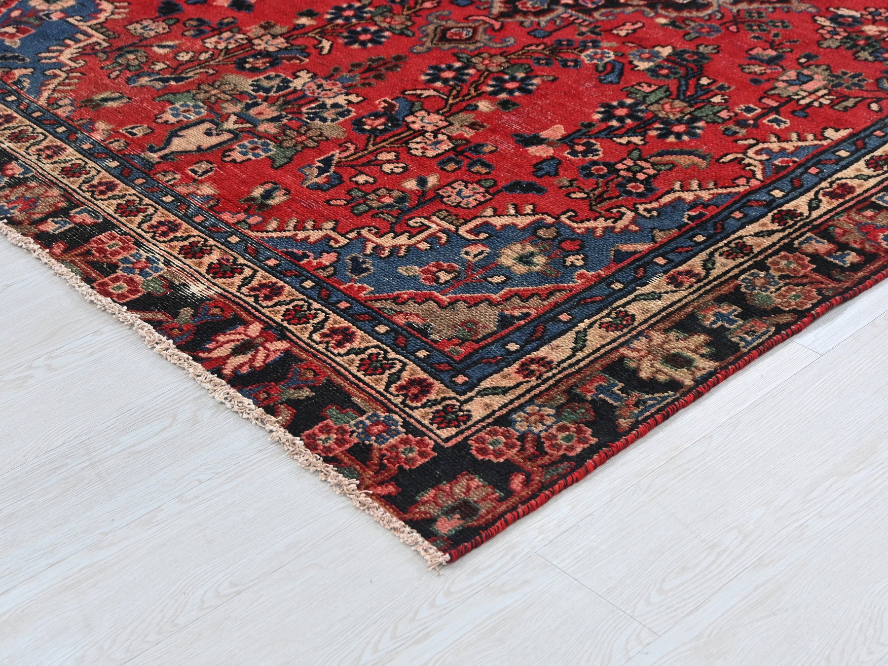 This is a hand-knotted, one-of-a-kind vintage rug. Due to the nature of this piece, there may be slight imperfections in its wear, shape, dimensions, and color. All of our rugs are professionally cleaned and repaired.
