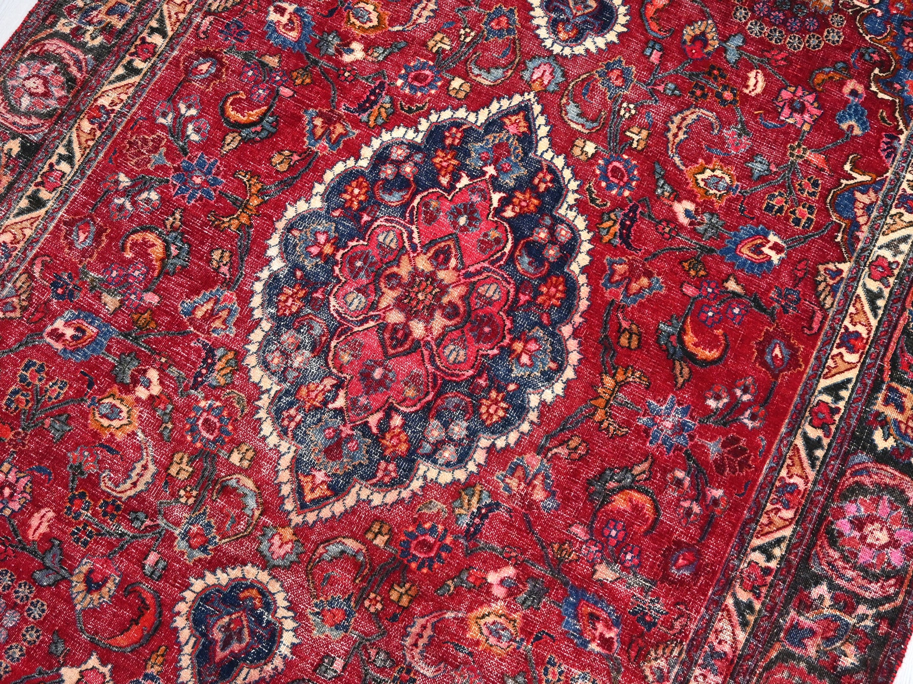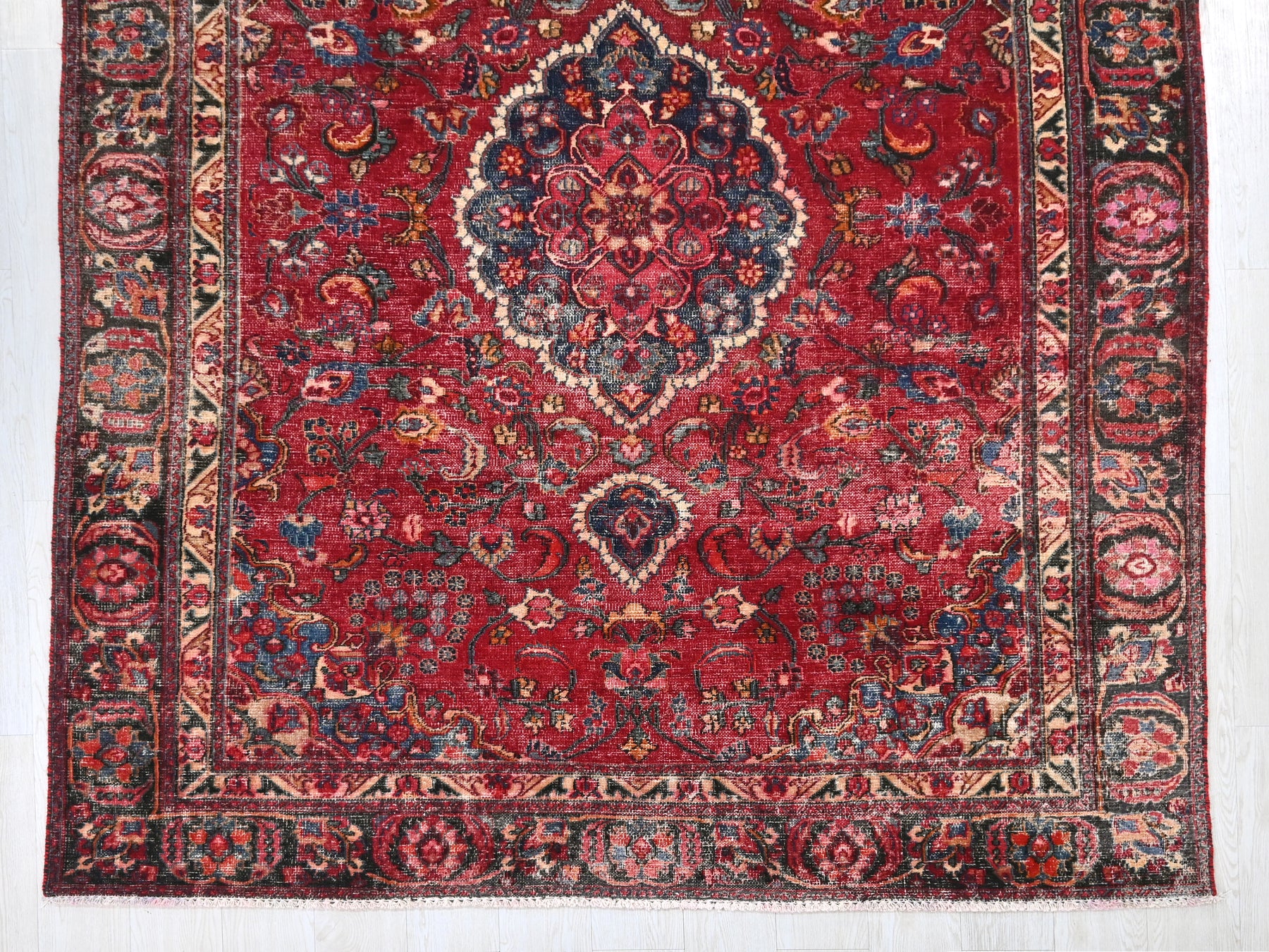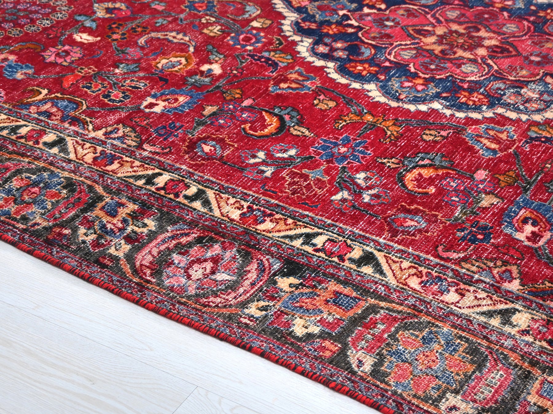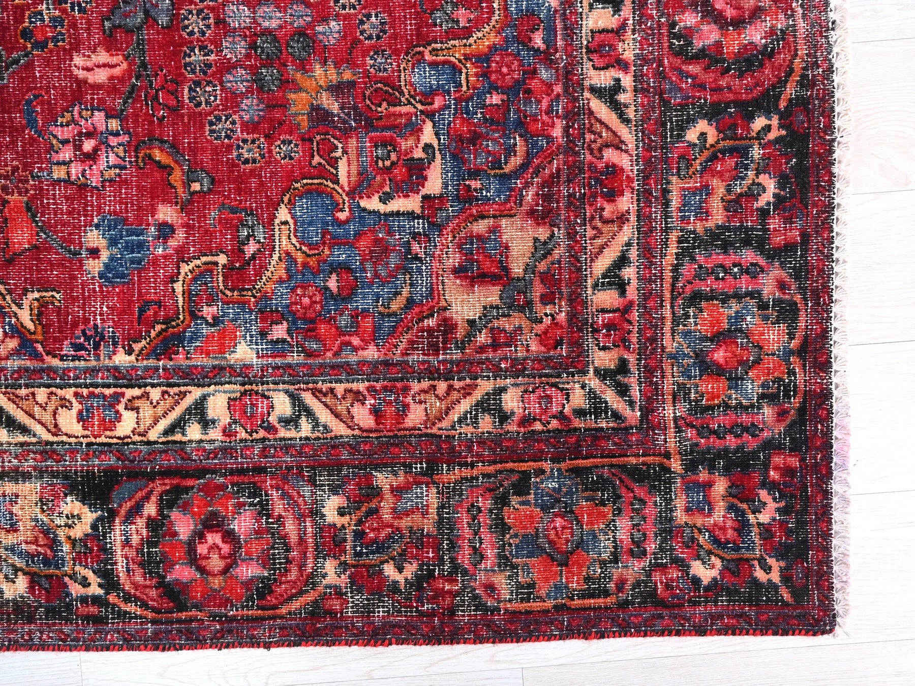 This is a hand-knotted, one-of-a-kind vintage rug. Due to the nature of this piece, there may be slight imperfections in its wear, shape, dimensions, and color. All of our rugs are professionally cleaned and repaired.