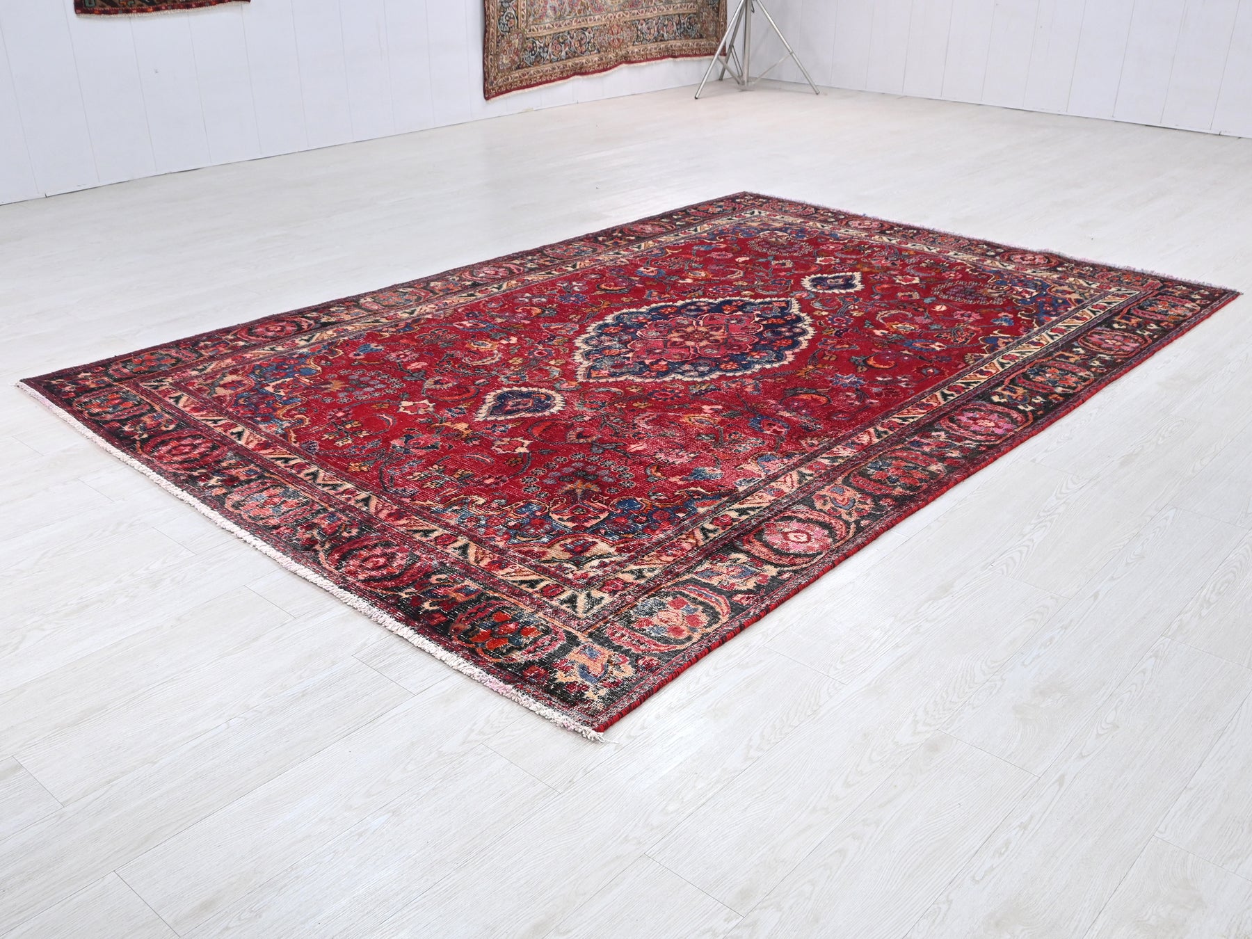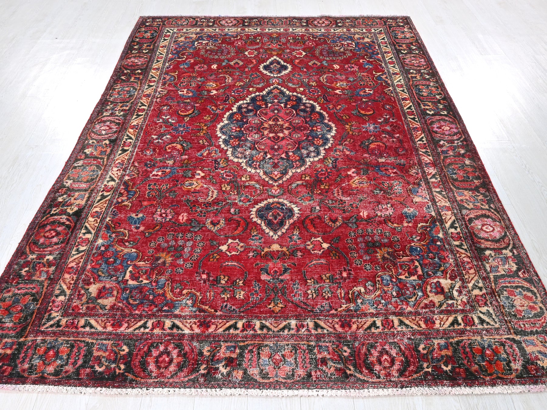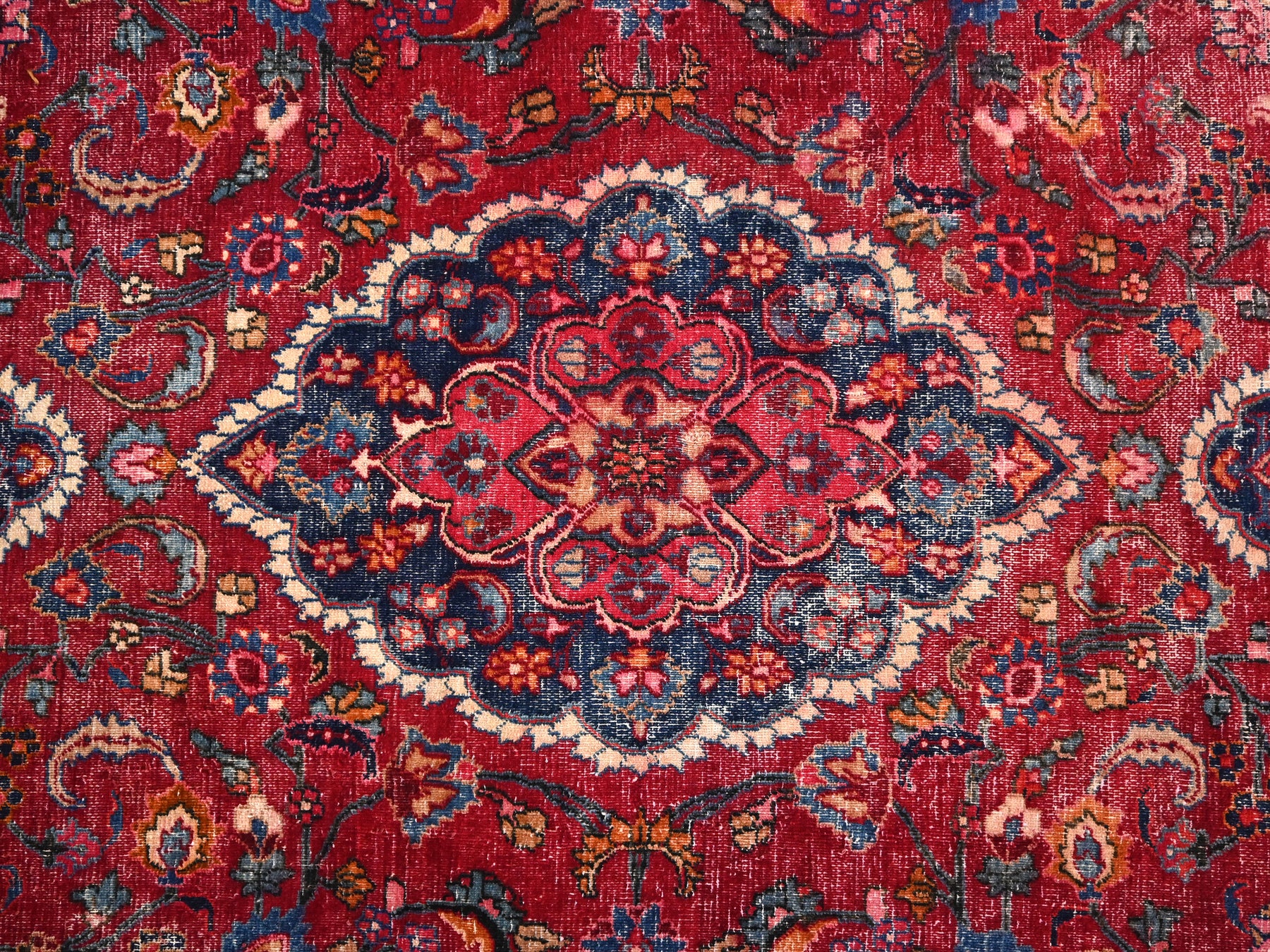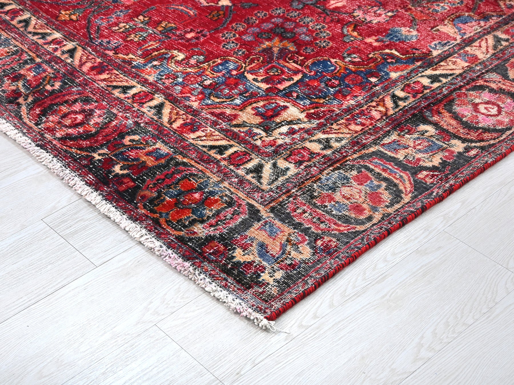 This is a hand-knotted, one-of-a-kind vintage rug. Due to the nature of this piece, there may be slight imperfections in its wear, shape, dimensions, and color. All of our rugs are professionally cleaned and repaired.