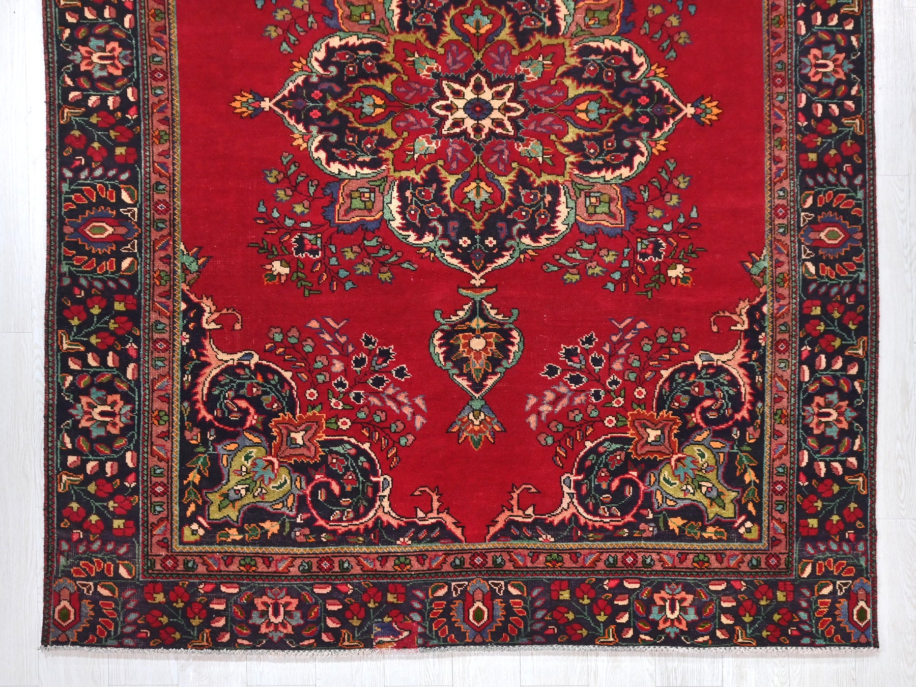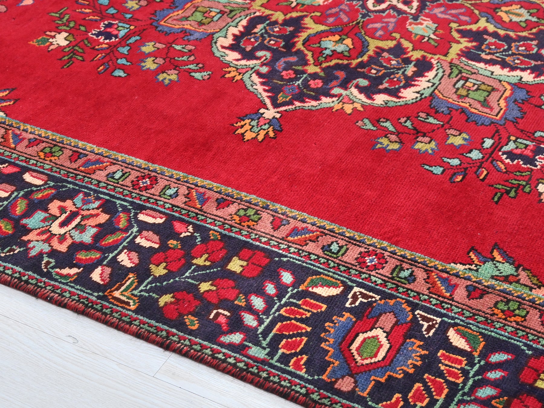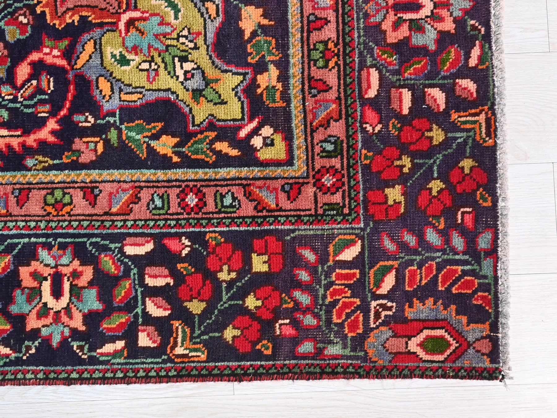 This is a hand-knotted, one-of-a-kind vintage rug. Due to the nature of this piece, there may be slight imperfections in its wear, shape, dimensions, and color. All of our rugs are professionally cleaned and repaired.