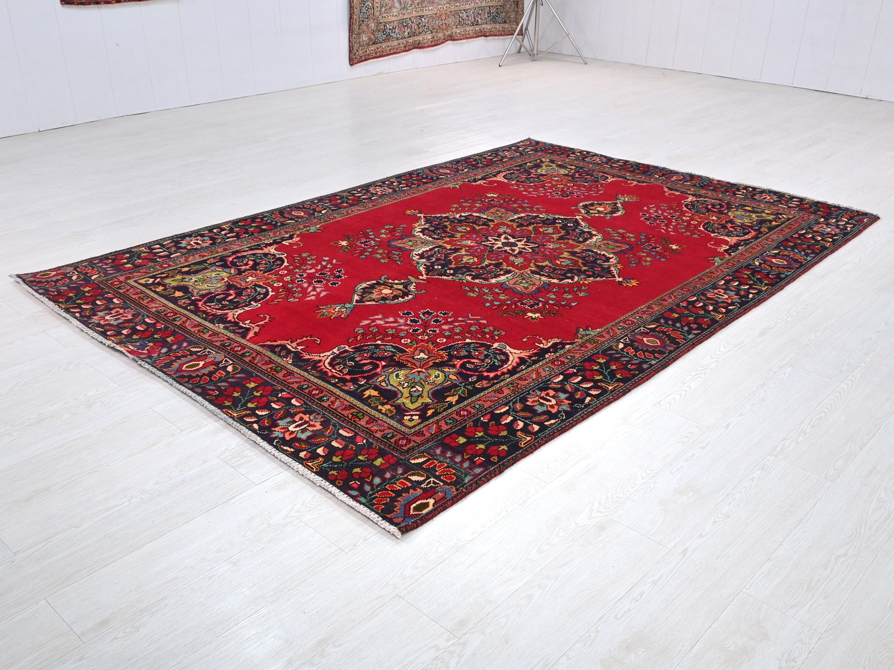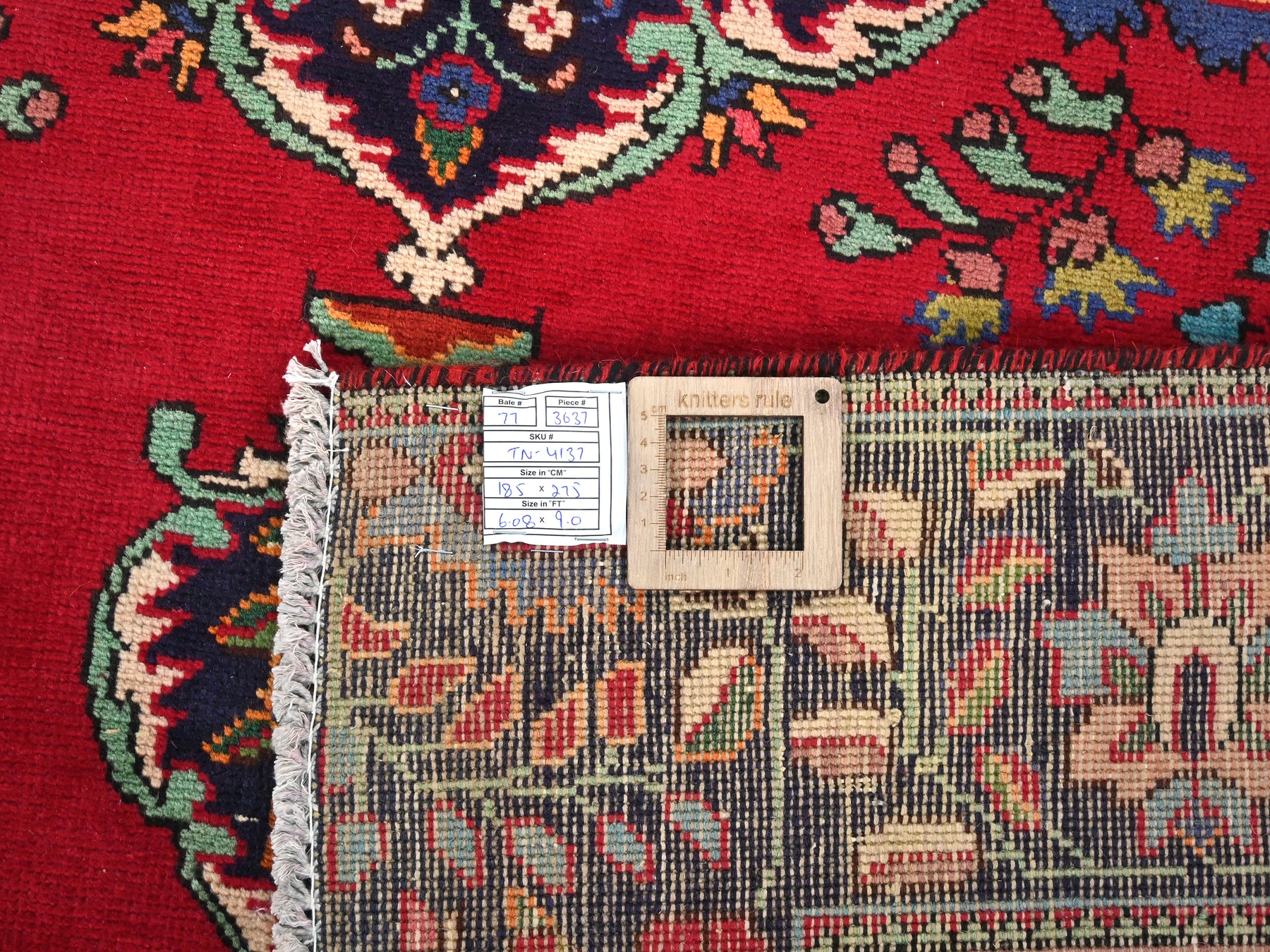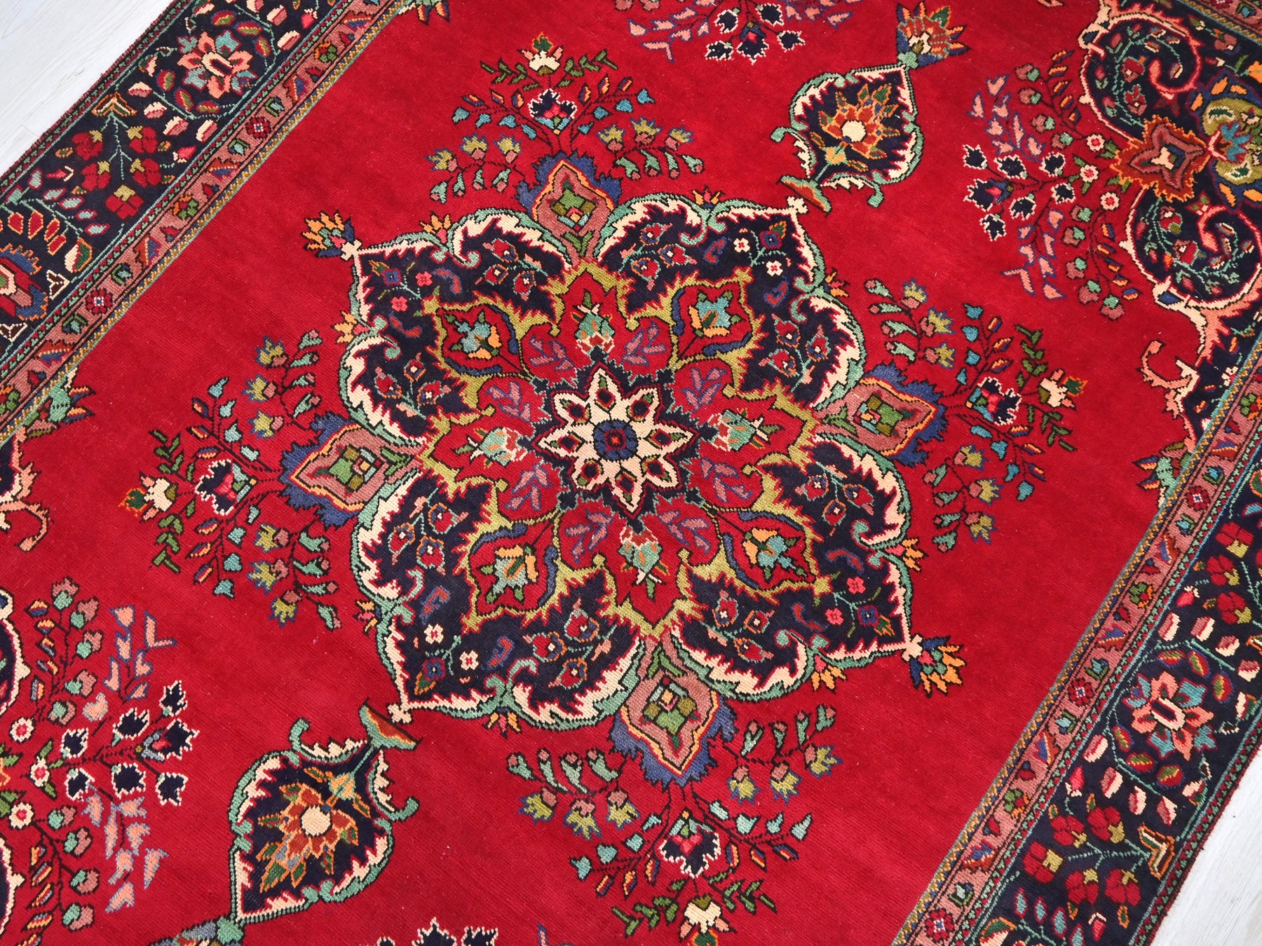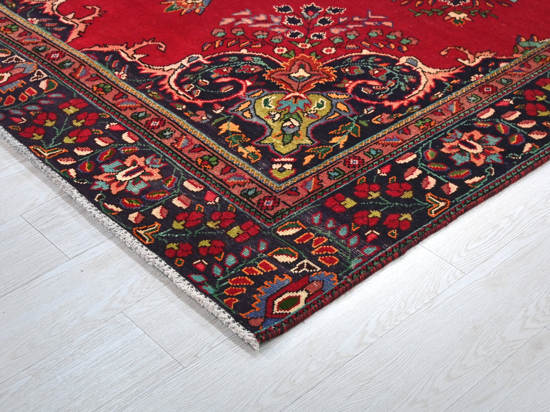 This is a hand-knotted, one-of-a-kind vintage rug. Due to the nature of this piece, there may be slight imperfections in its wear, shape, dimensions, and color. All of our rugs are professionally cleaned and repaired.